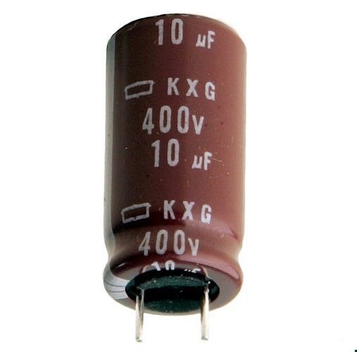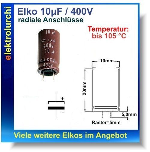 Elko 10µF/400V, 10uF, 105°C, RM=5mm, Ø10mm x H20mm, KXG, 2St.