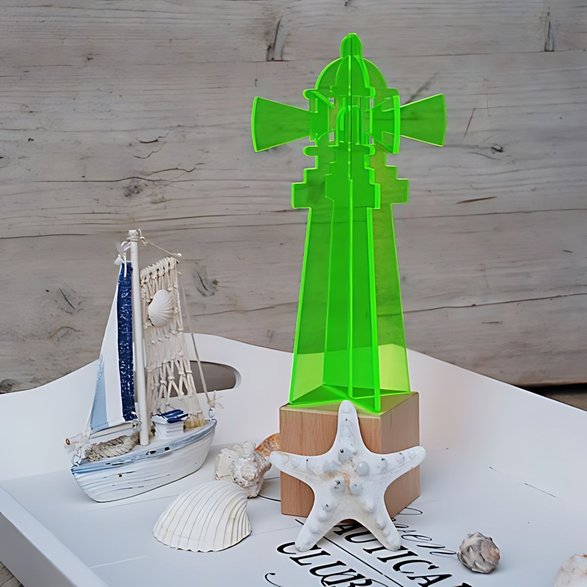 Elliot Lichtzauber Leuchtturm 3D 20cm grün Holzsockel 5x5cm