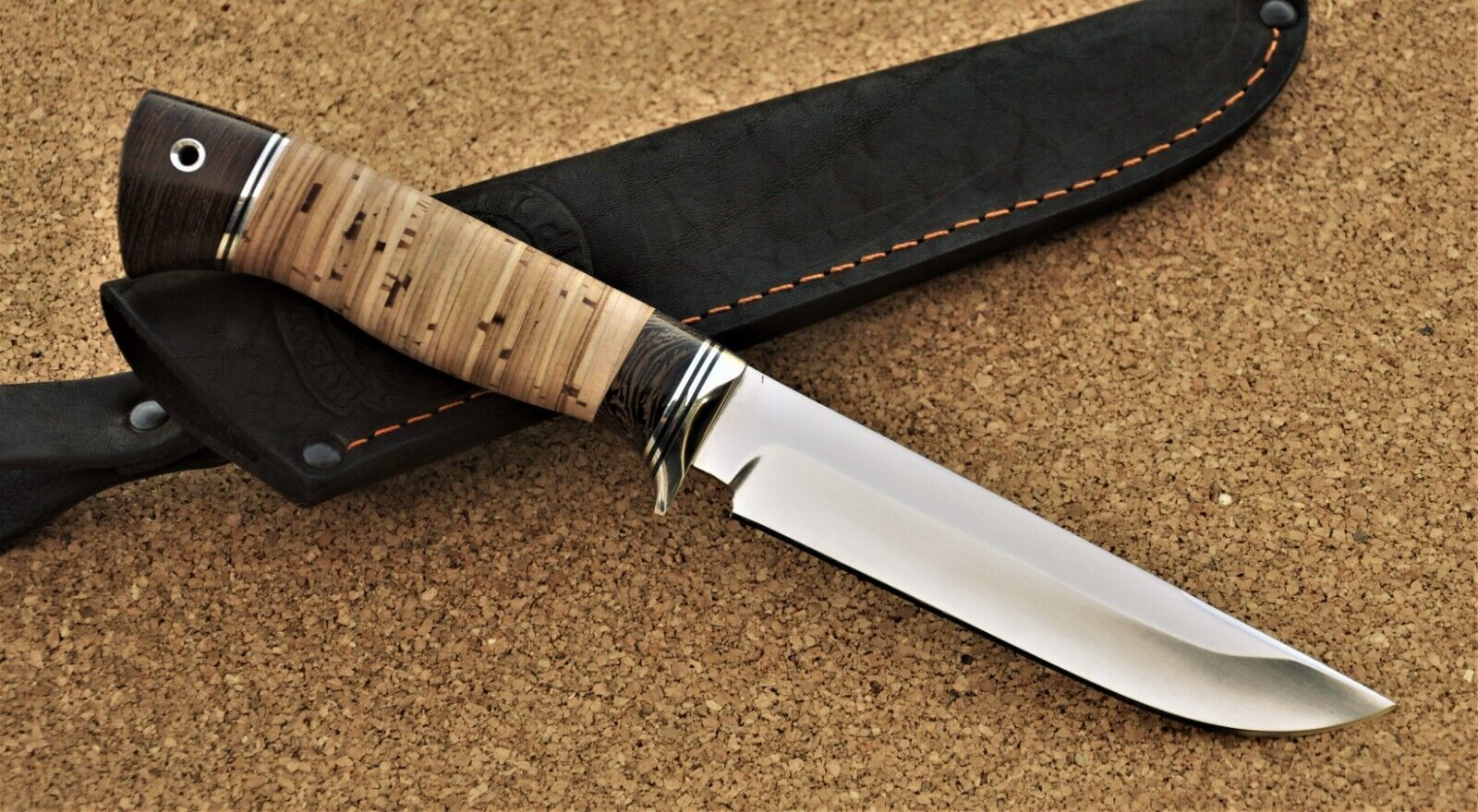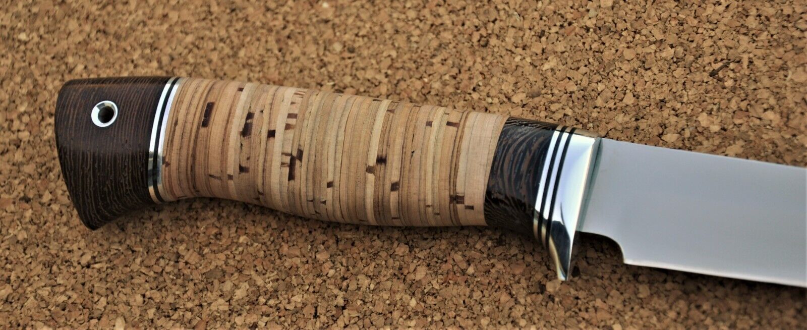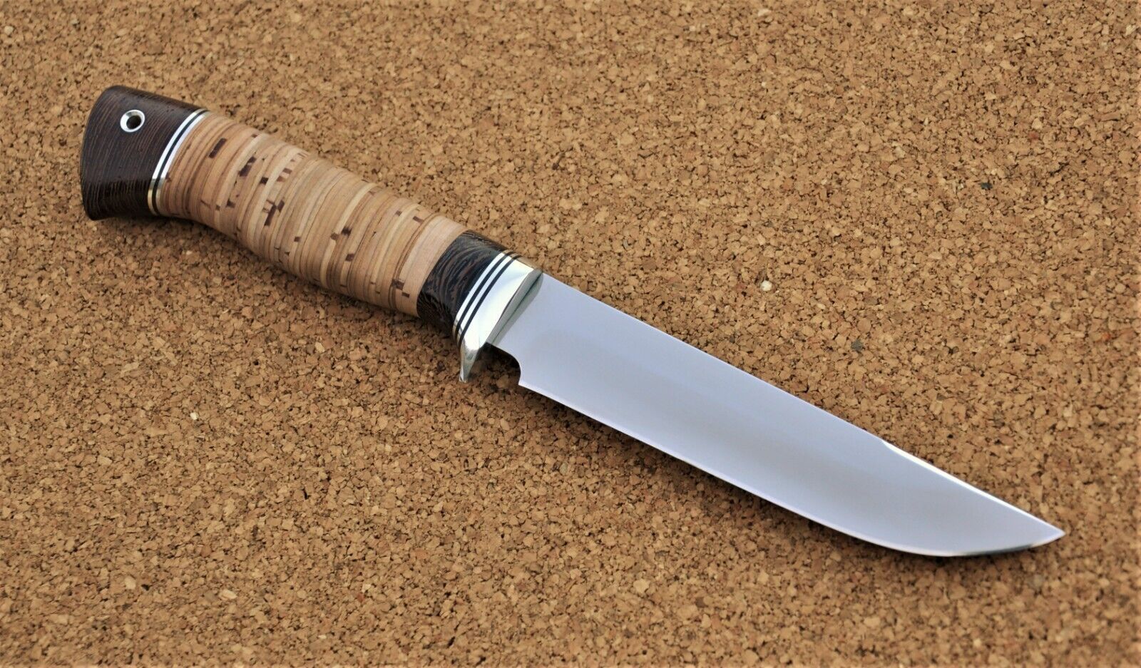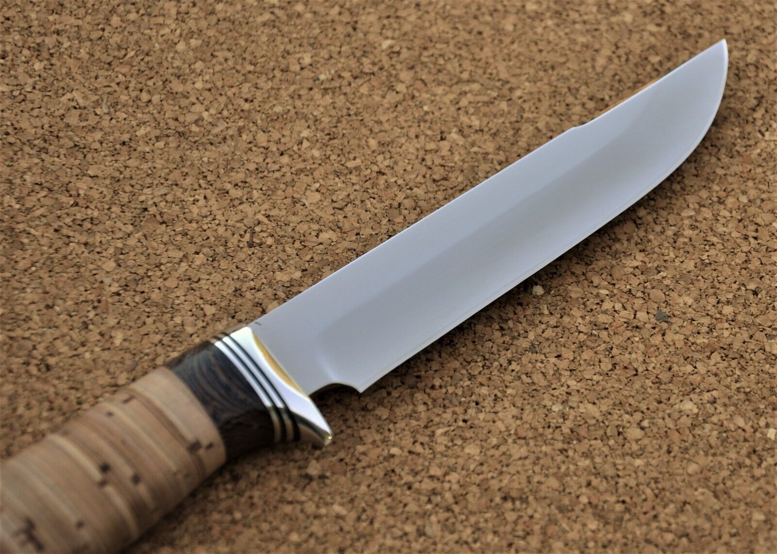 Zum Verkauf steht ein Jagdmesser aus rostfreiem Stahl Elmax der Firma Nazarov Knives aus Russland. Parameter: Messerlänge: ca. 253 mm Klingenlänge: ca. 133 mm Rückenstärke: ca. 2,4 mm Klingenbreite: ca. 25 mm Stahl: Elmax (poliert) HRC: 62 Griffmaterial: Birkenrinde+Wenge+Alu Gewicht: ca. 109 Gramm