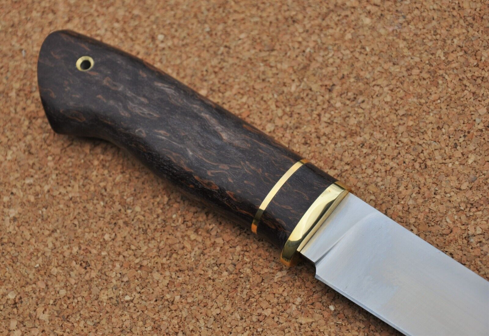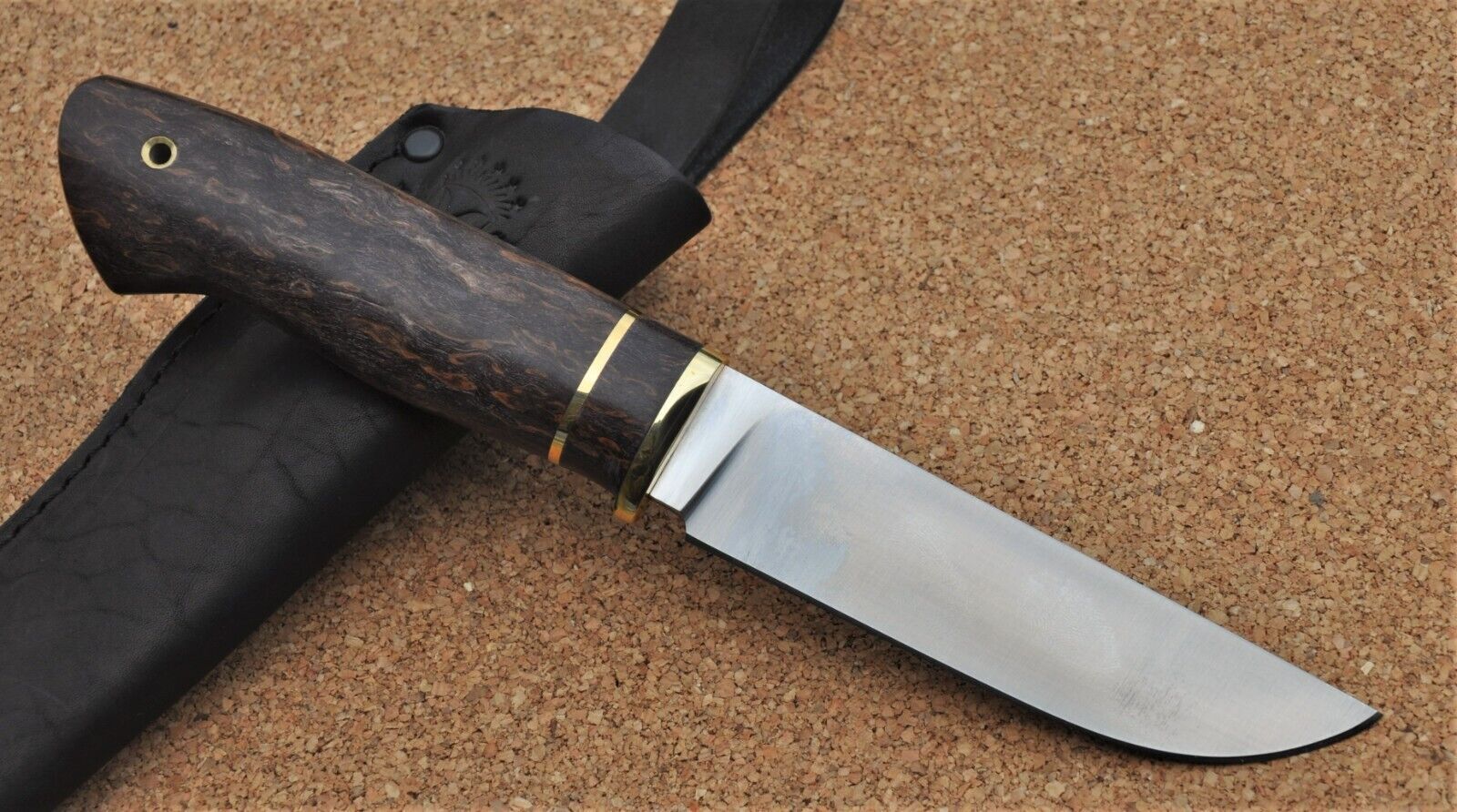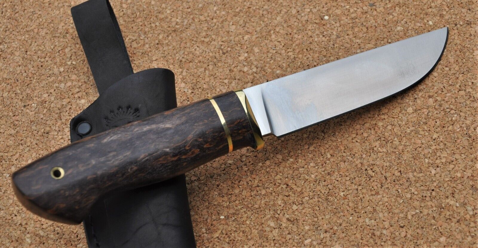 Zum Verkauf steht ein Jagdmesser aus rostfreiem Stahl Elmax der Firma Nazarov Knives aus Russland. Parameter: Messerlänge: ca. 255 mm Klingenlänge: ca. 130 mm Rückenstärke: ca. 3,5 mm Klingenbreite: ca. 29 mm Stahl: Elmax (satiniert) HRC: 62 Griffmaterial: stabilisierte karelische Birke+Messing Gewi