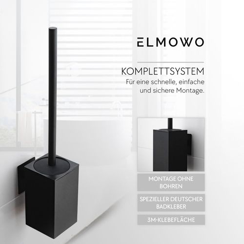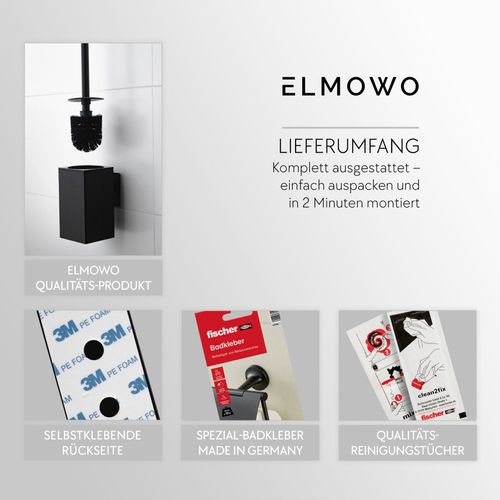 ELMOWO Edelstahl Klobürste ohne Bohren Wandmontage hängend WC-Garnitur schwarz