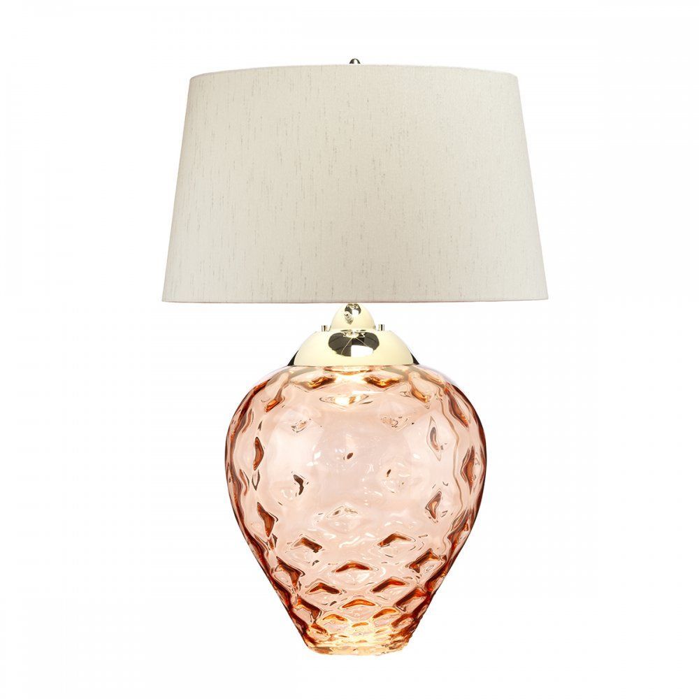 Elstead Lighting Elstead Samara Tischlampe groß Lachsfarben Schirm taupe 79cm