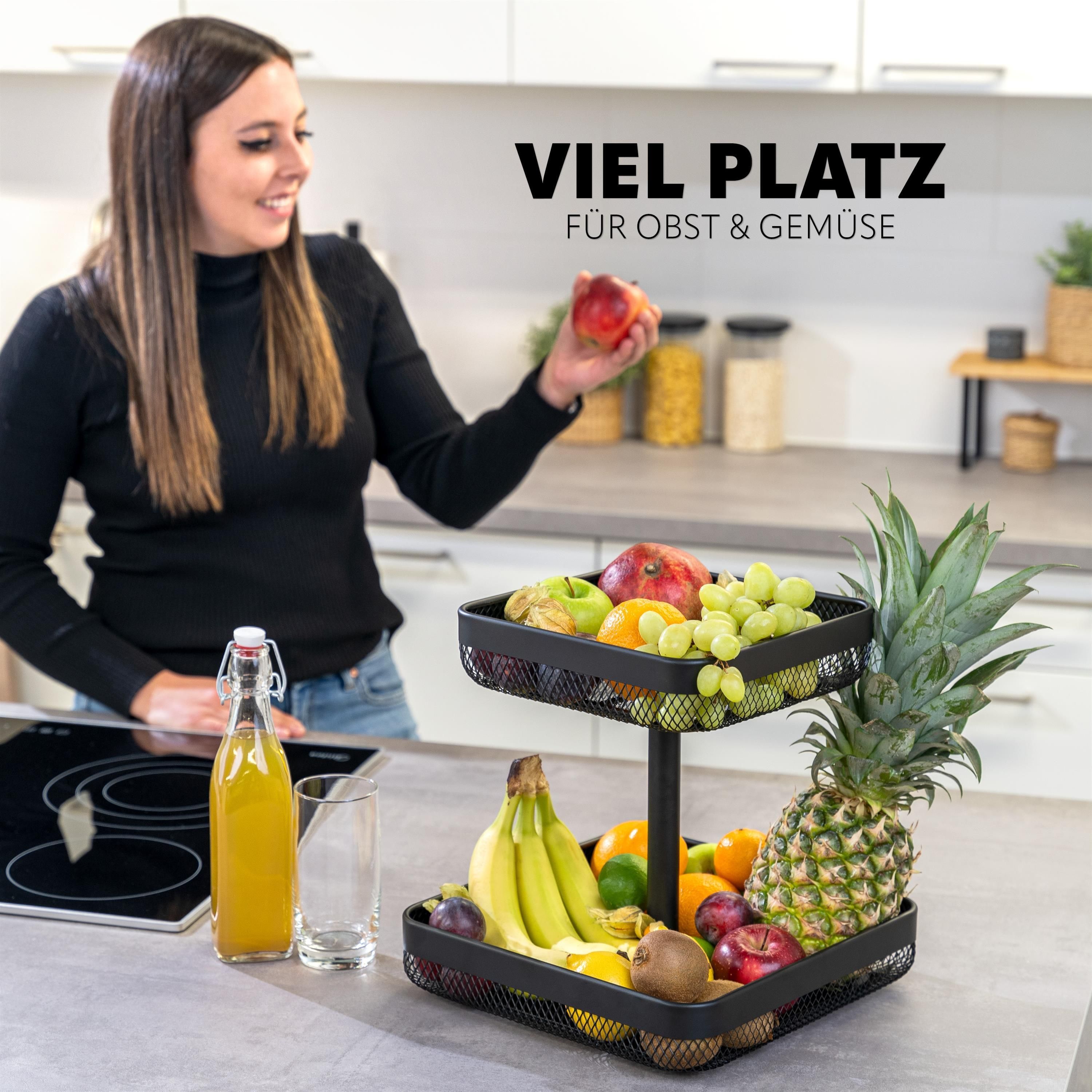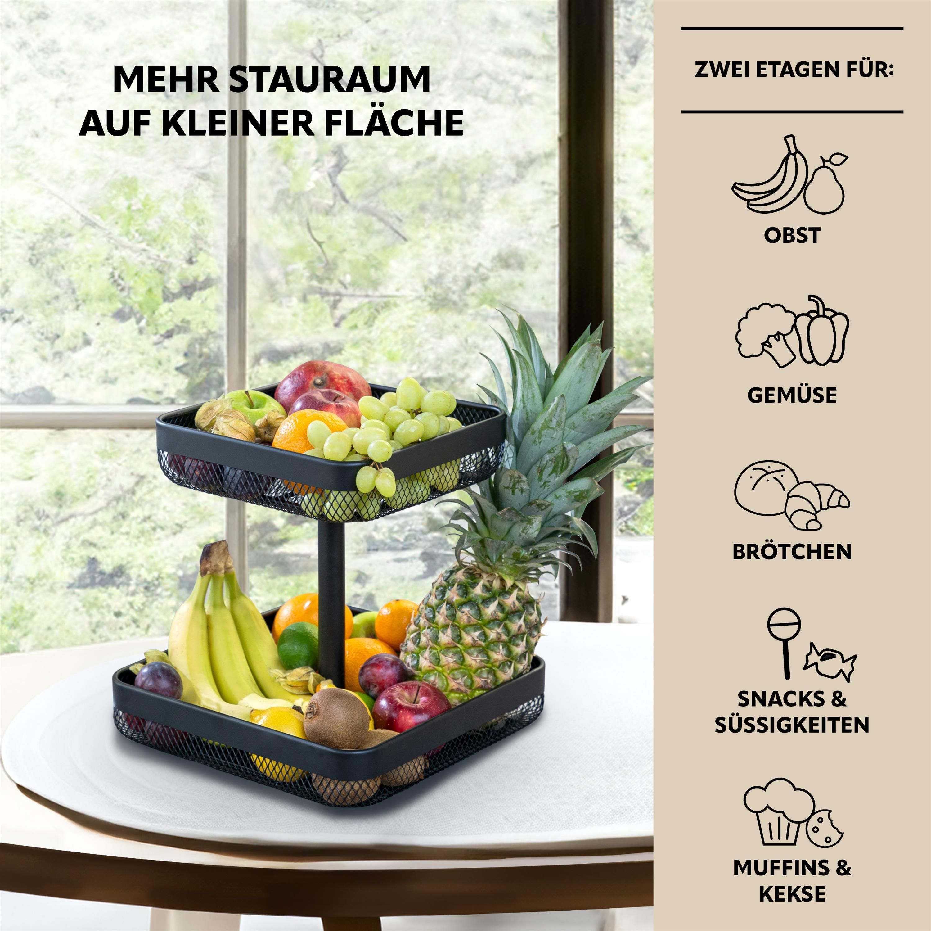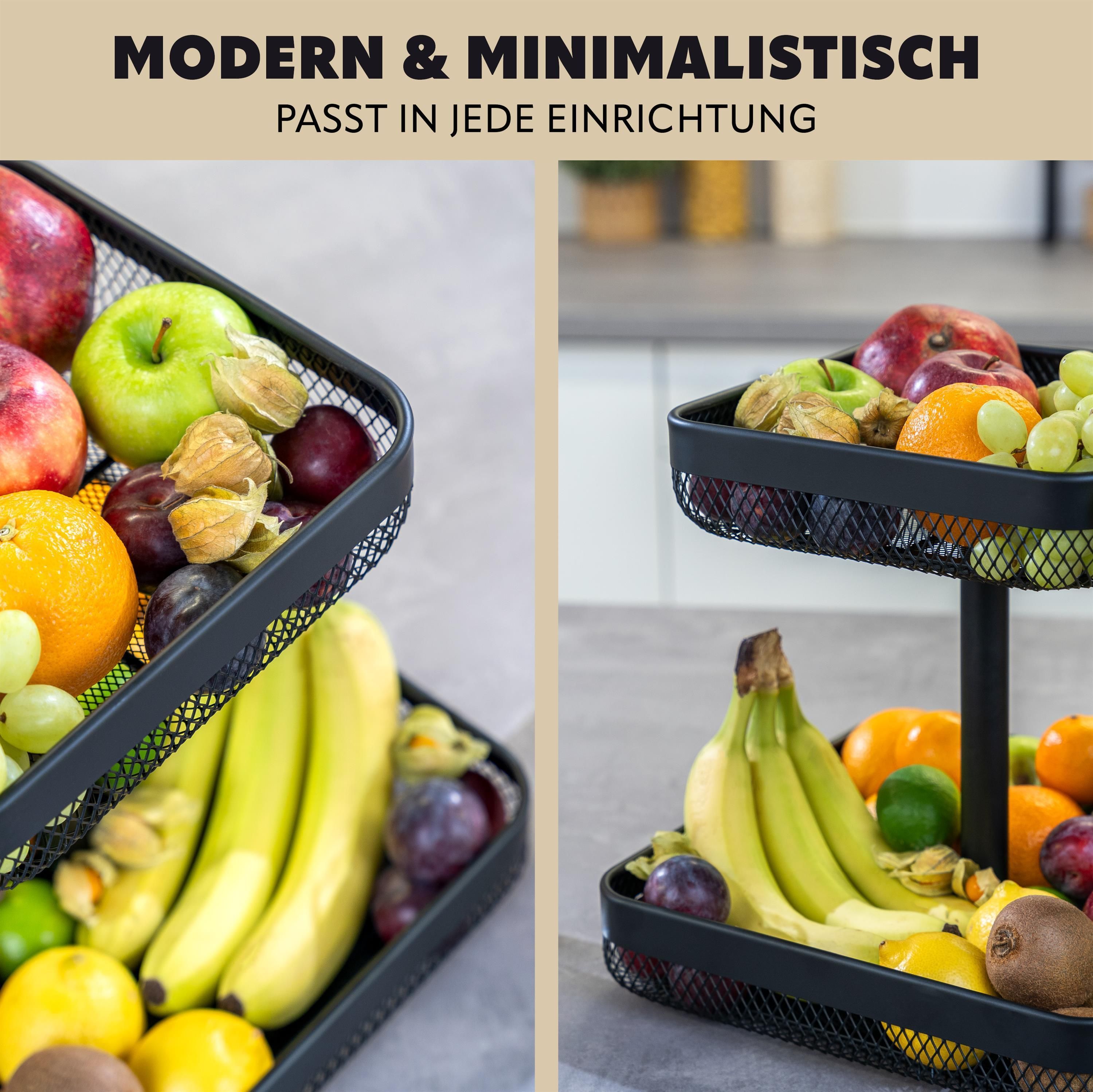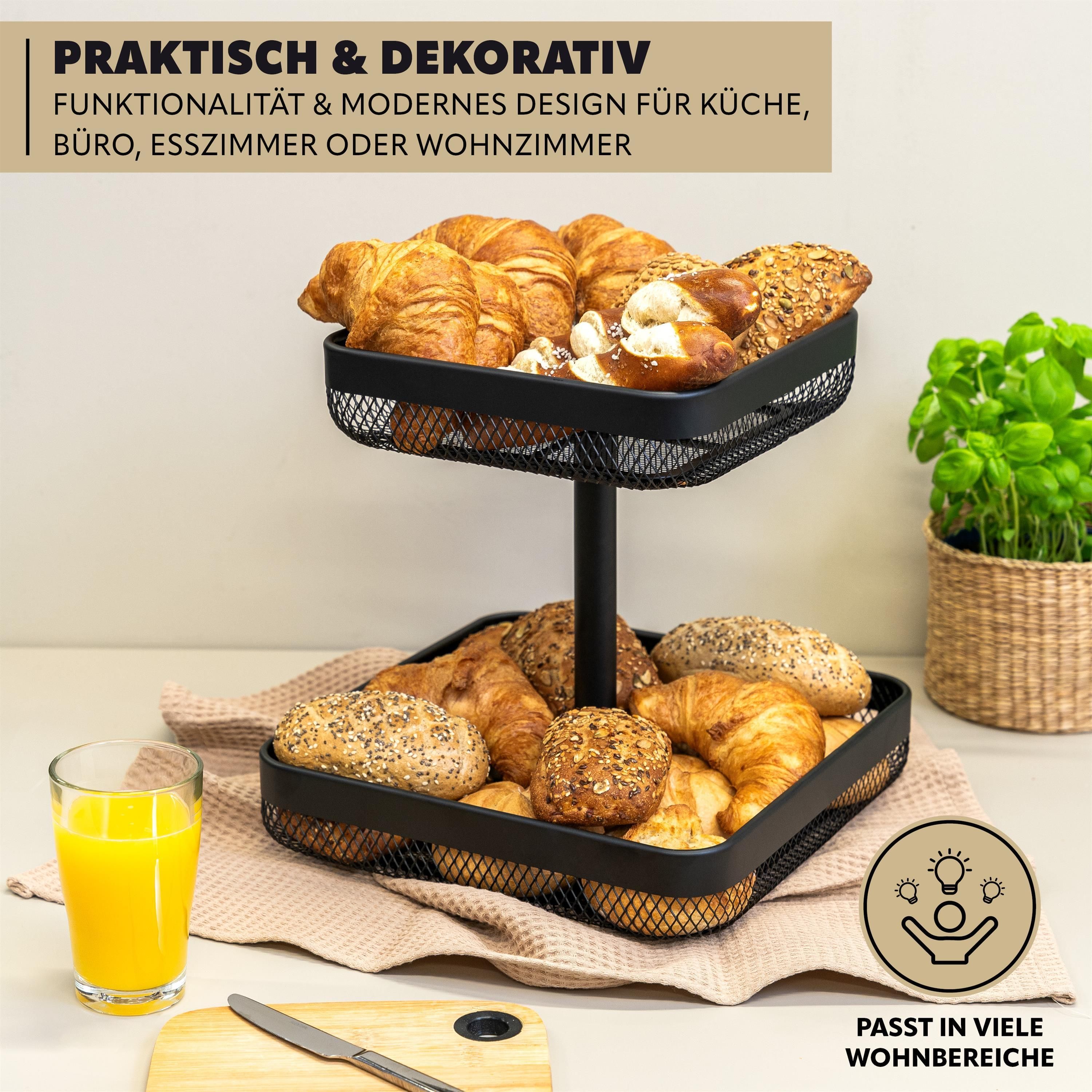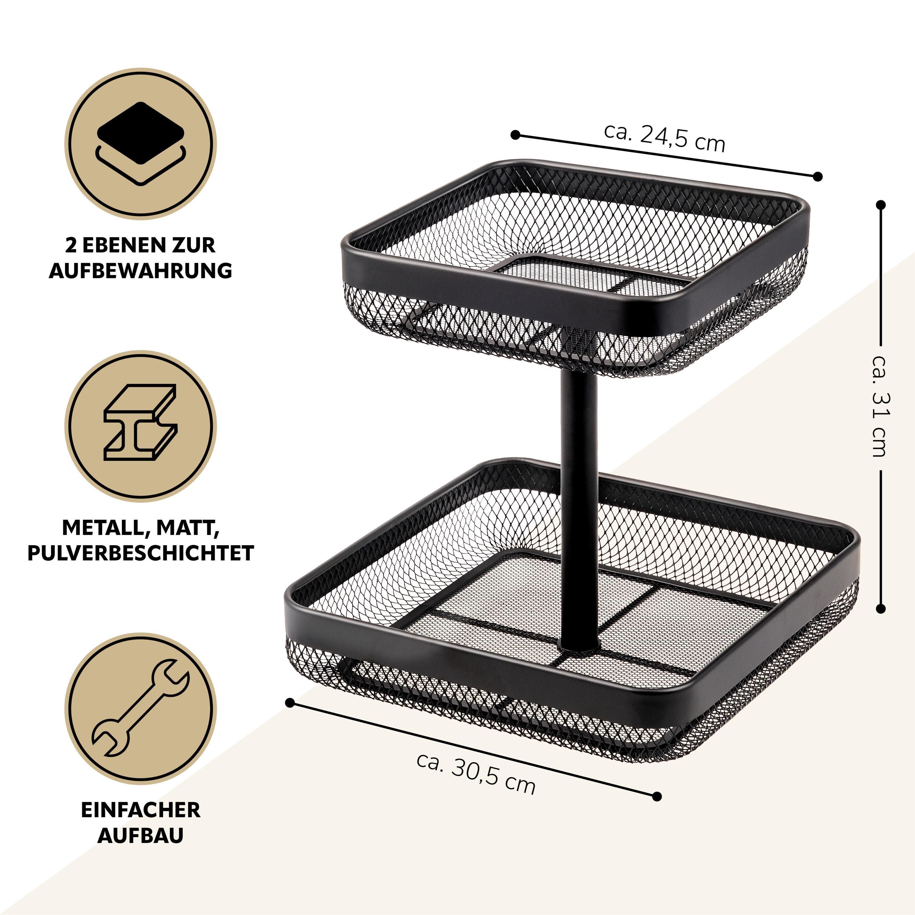 eluno 2-stöckige eckige Obstetagere / Brotkorb, Obstkorb aus schwarzem Metall