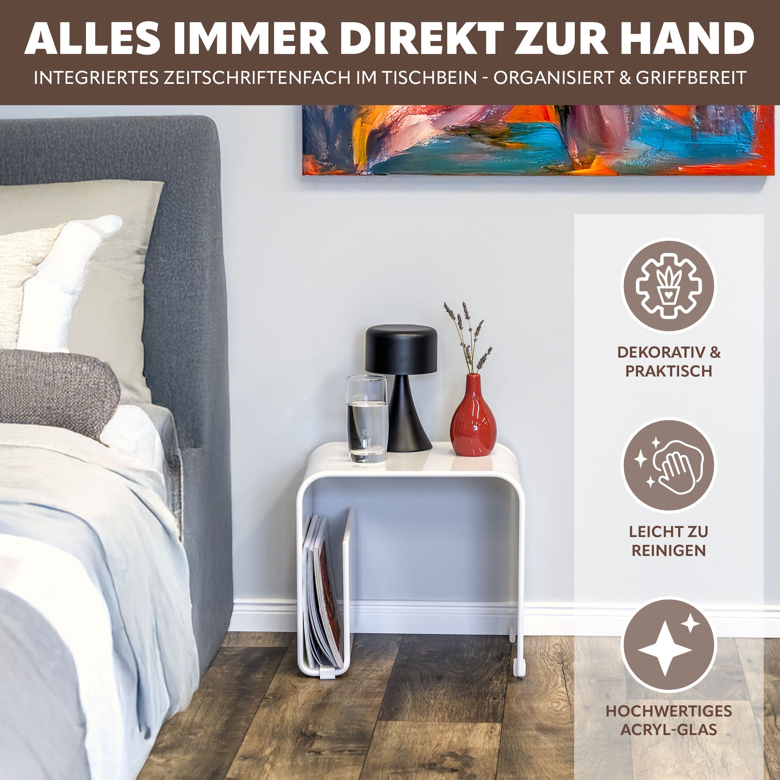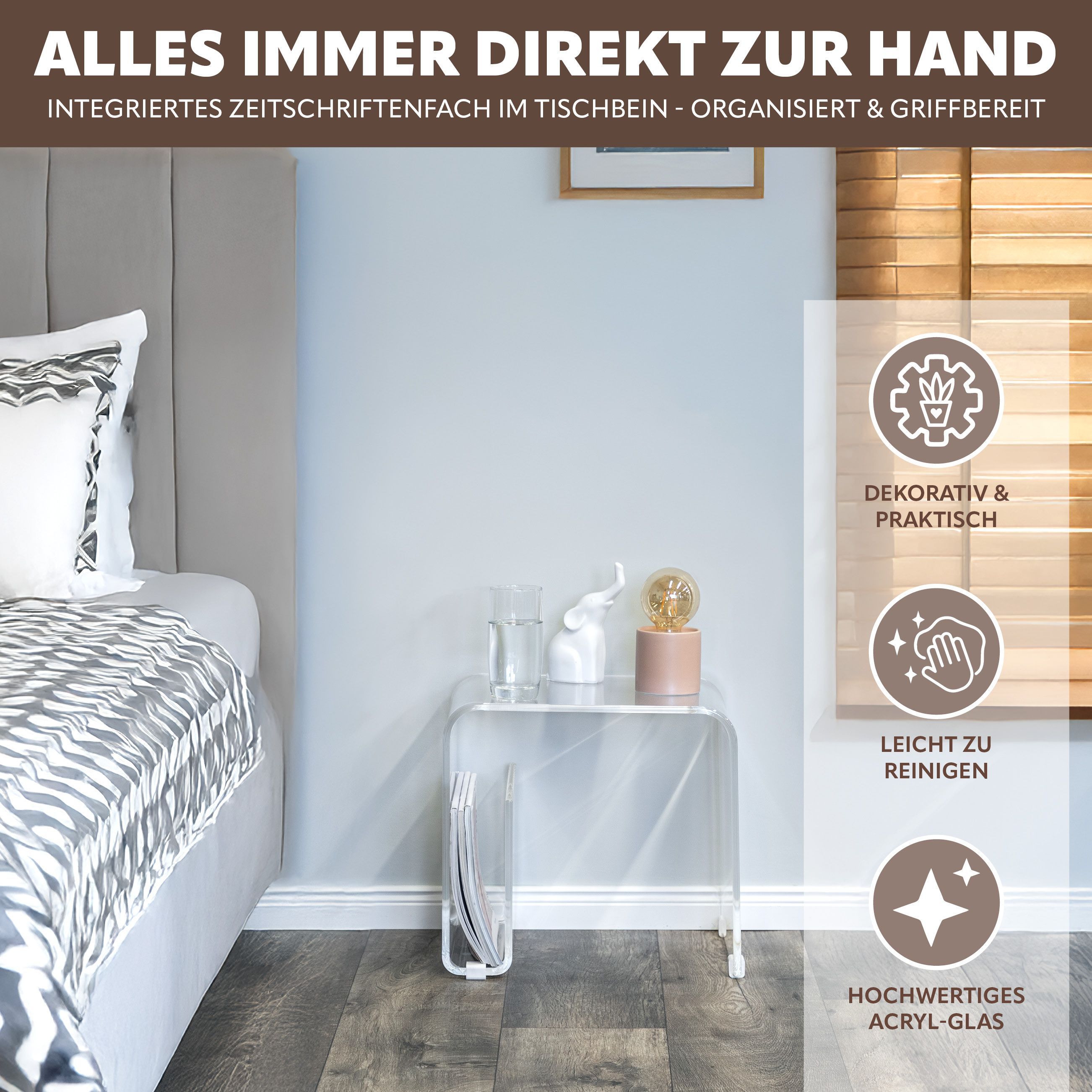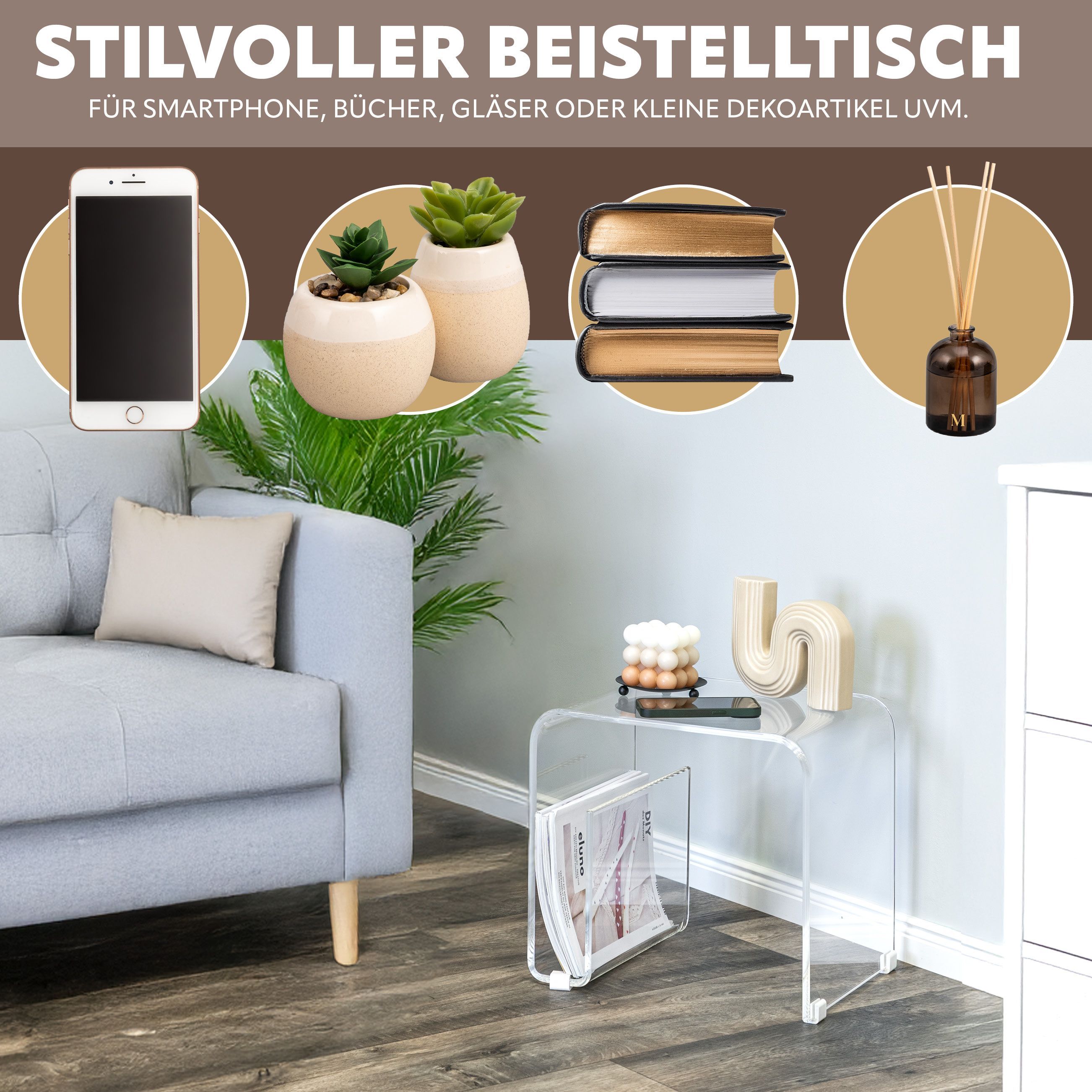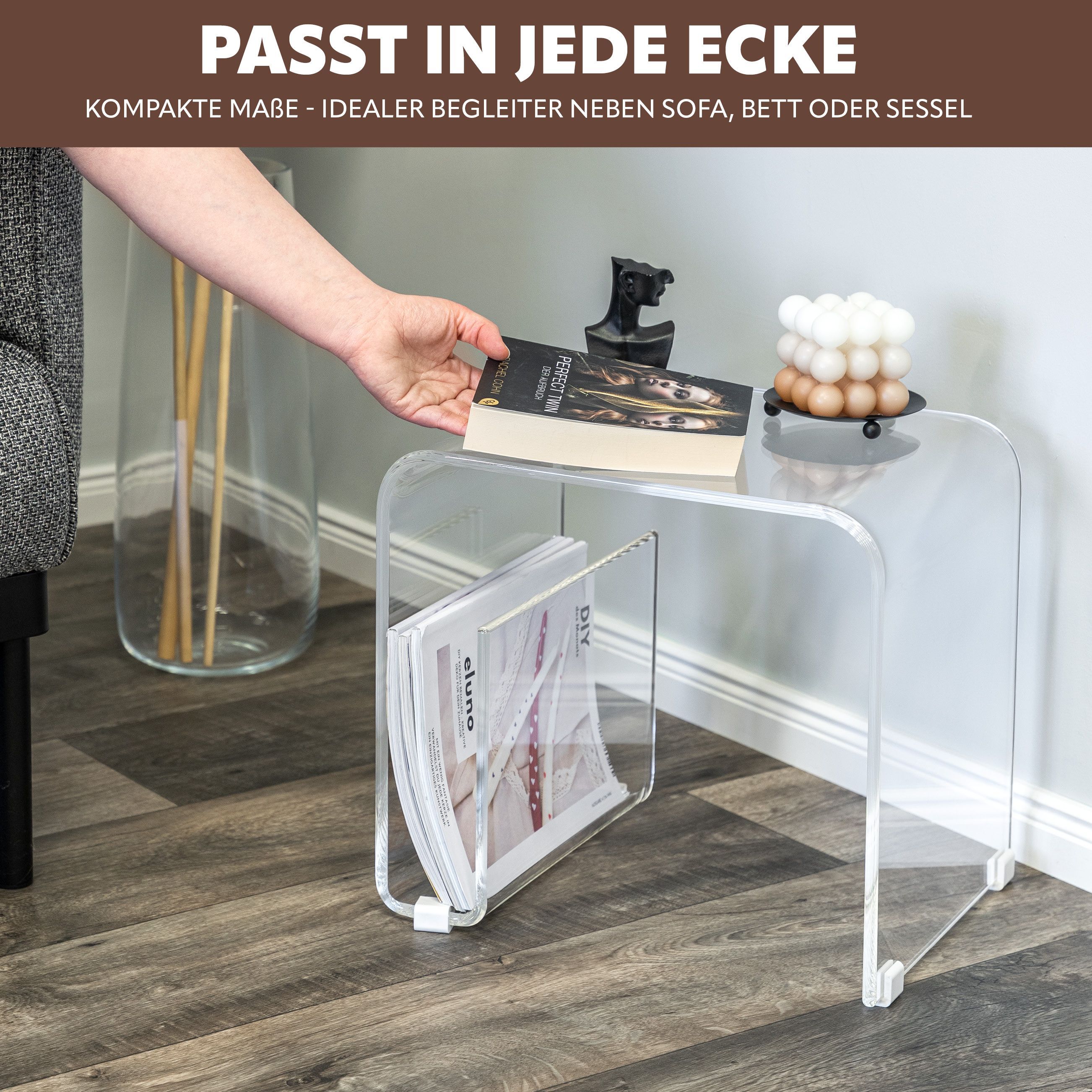 eluno 2in1 Beistelltisch aus Acryl mit seitlichem Magazinhalter