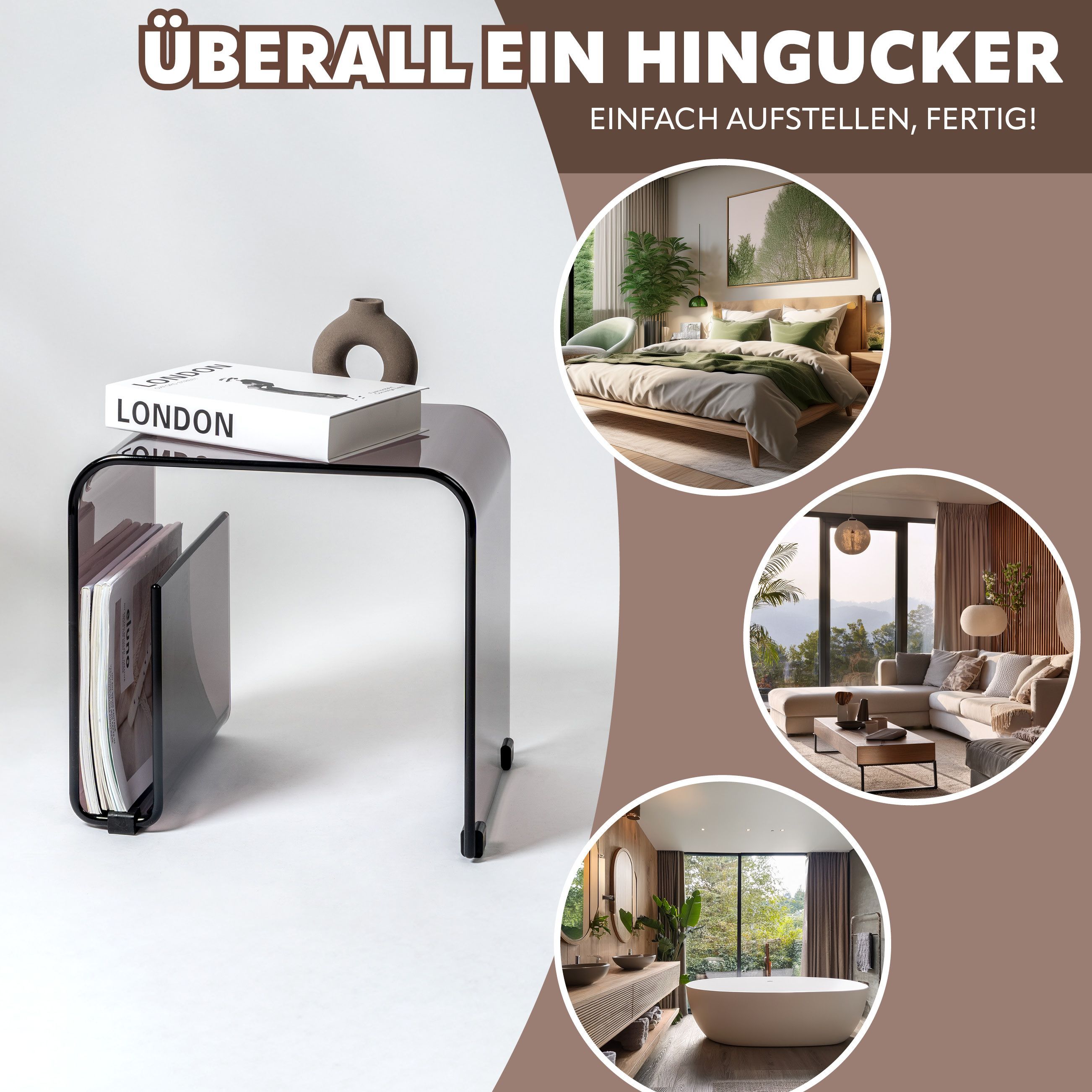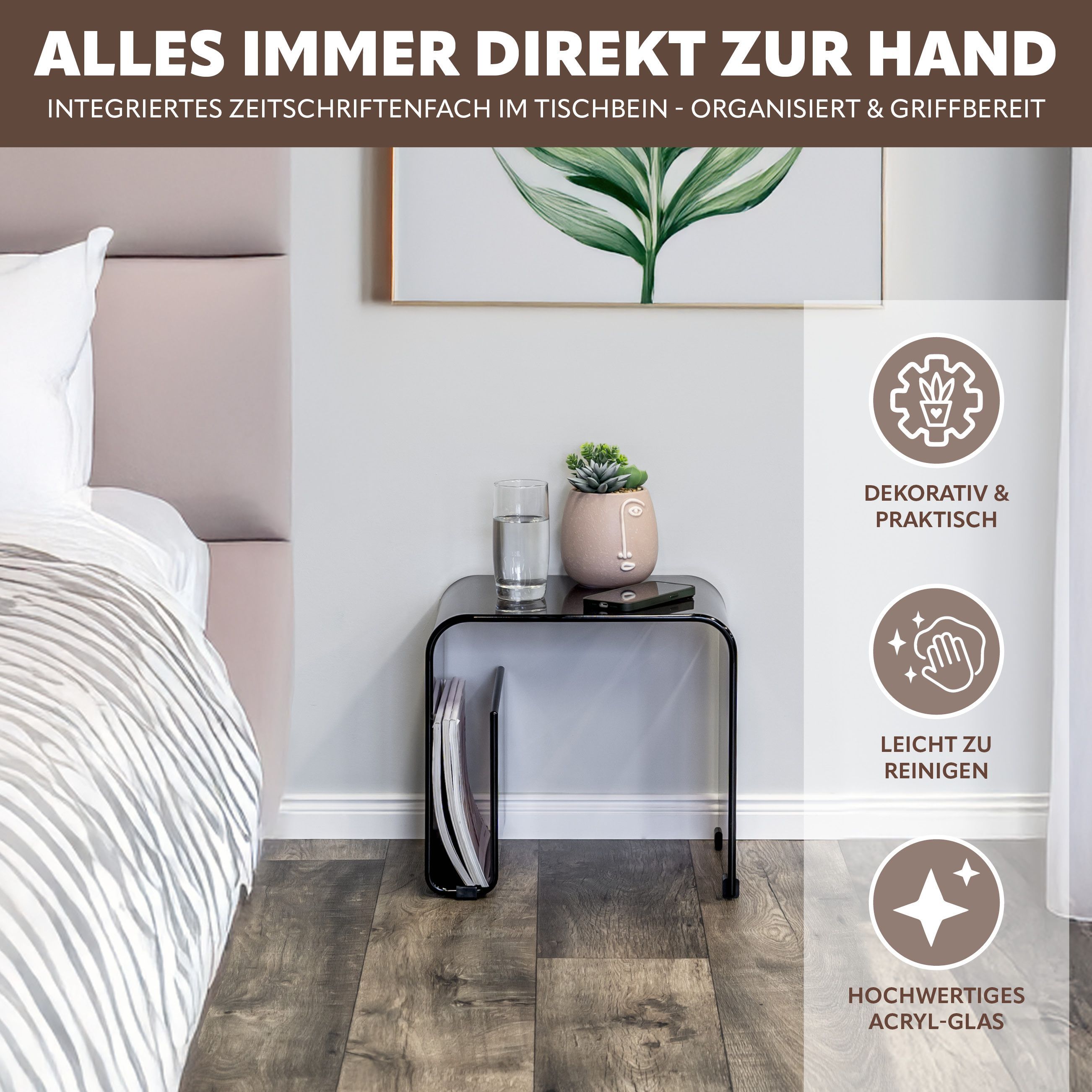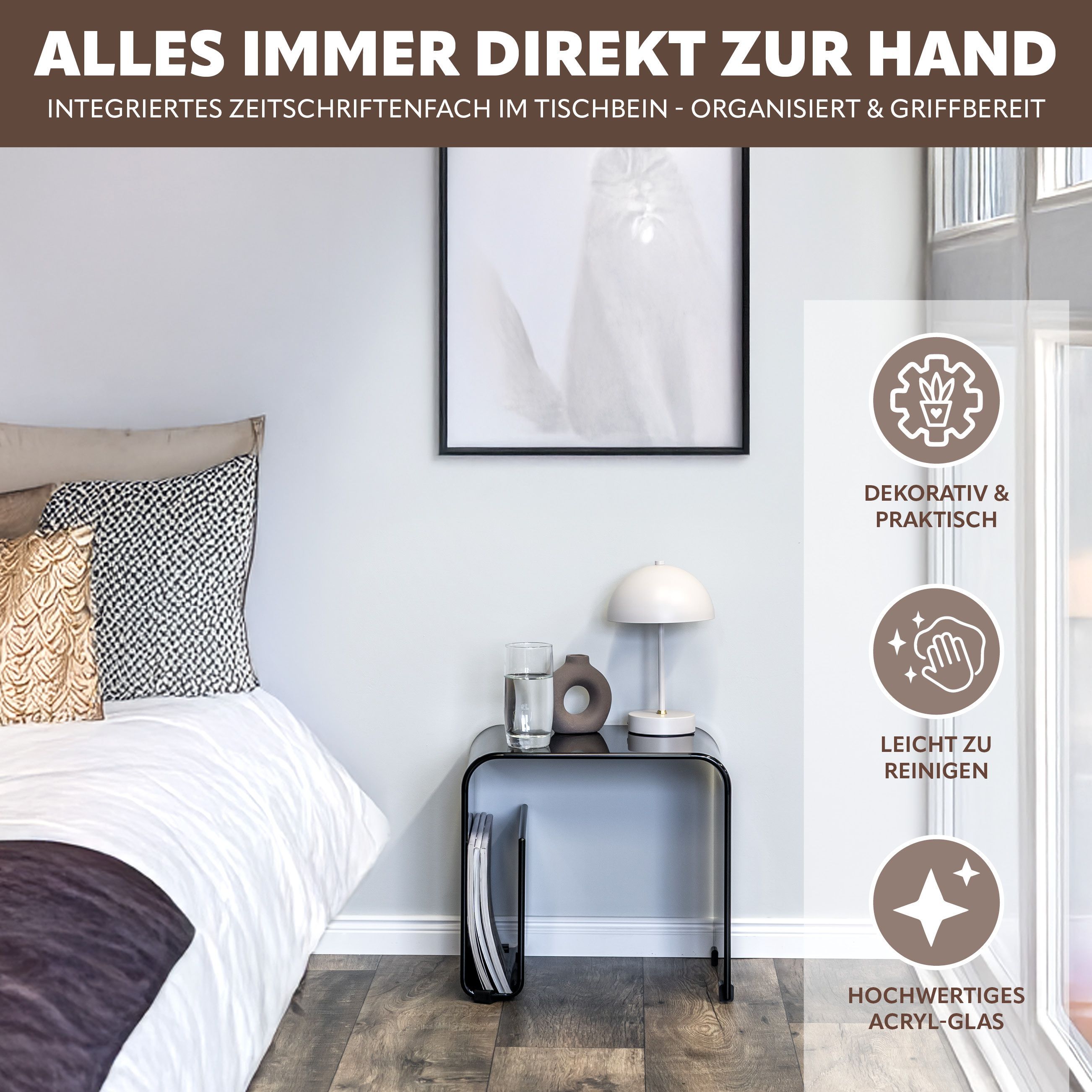 eluno 2in1 Beistelltisch aus Acryl mit seitlichem Magazinhalter