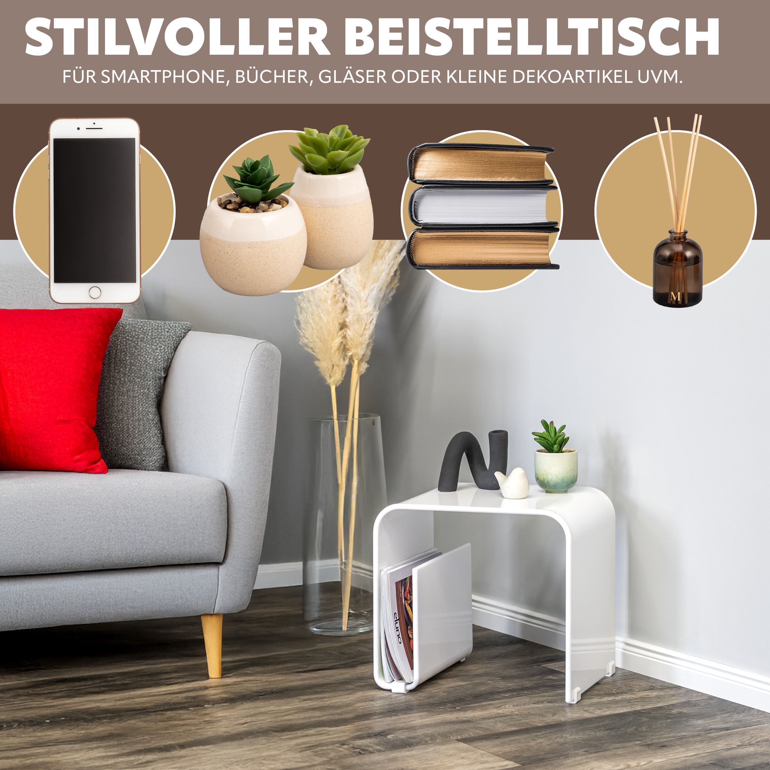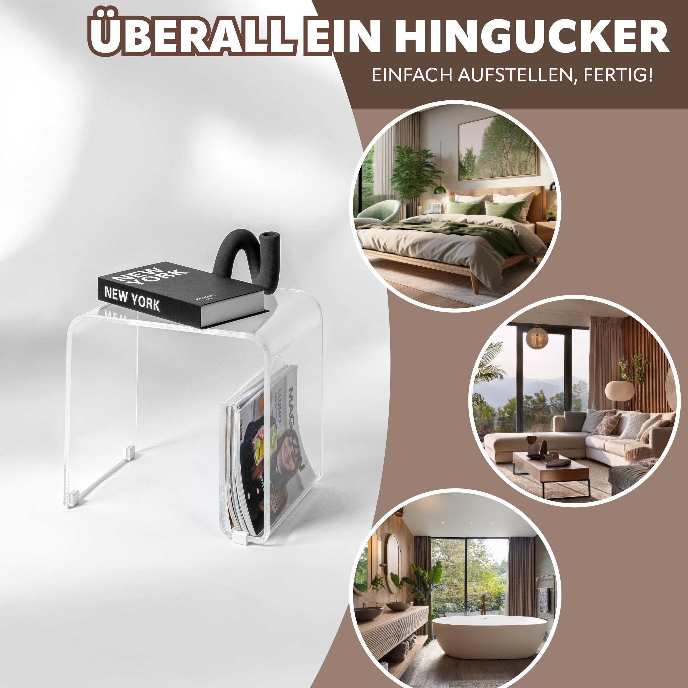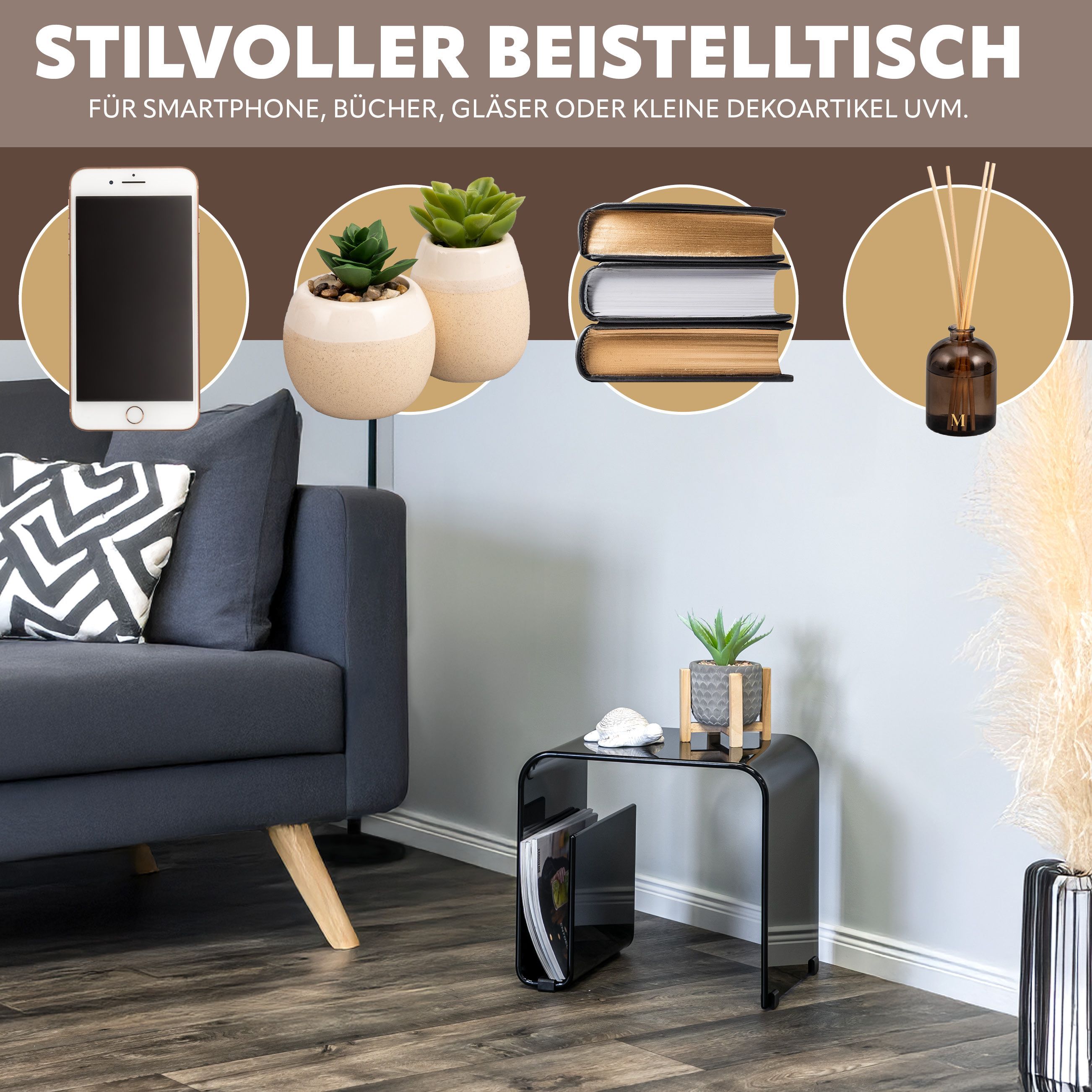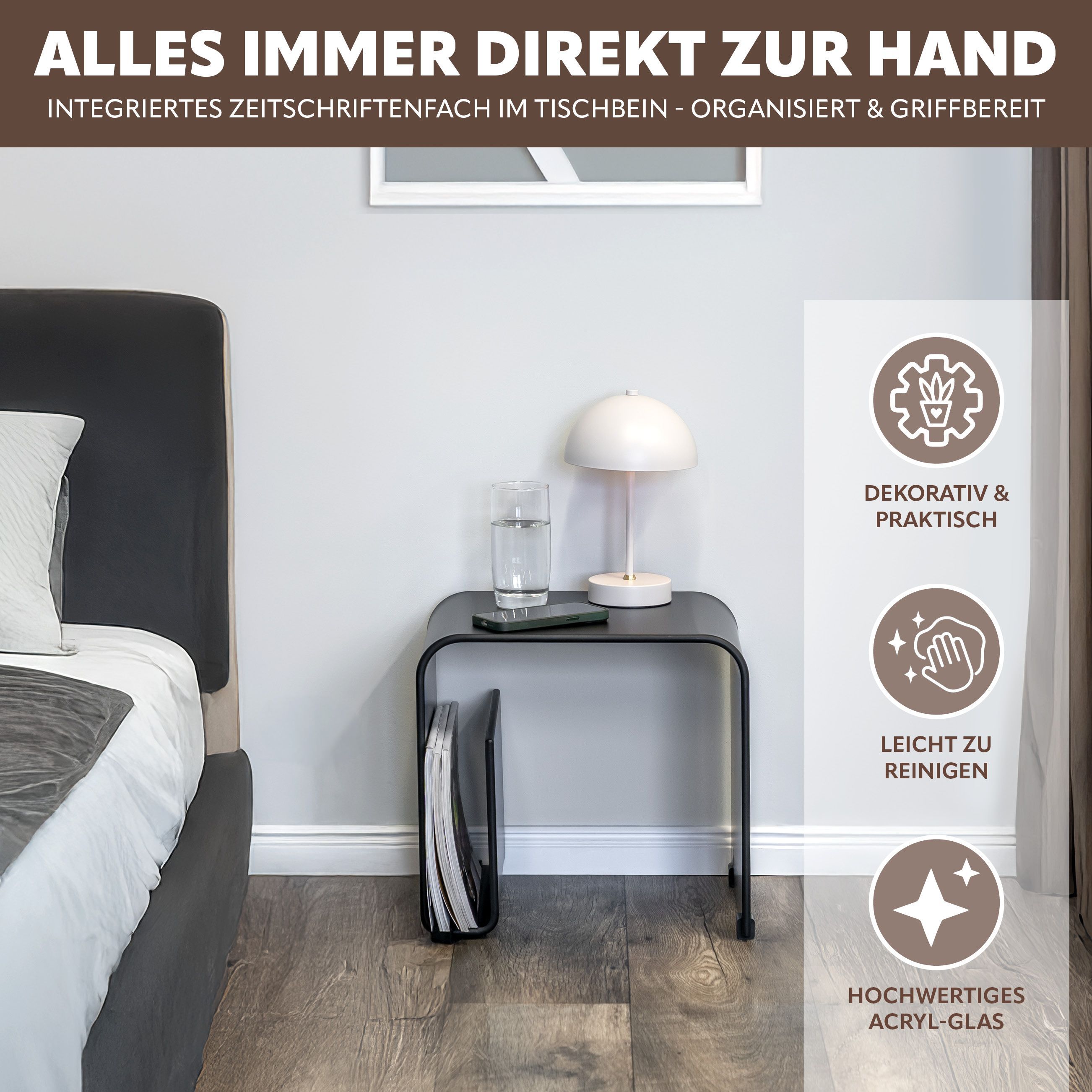 eluno 2in1 Beistelltisch aus Acryl mit seitlichem Magazinhalter