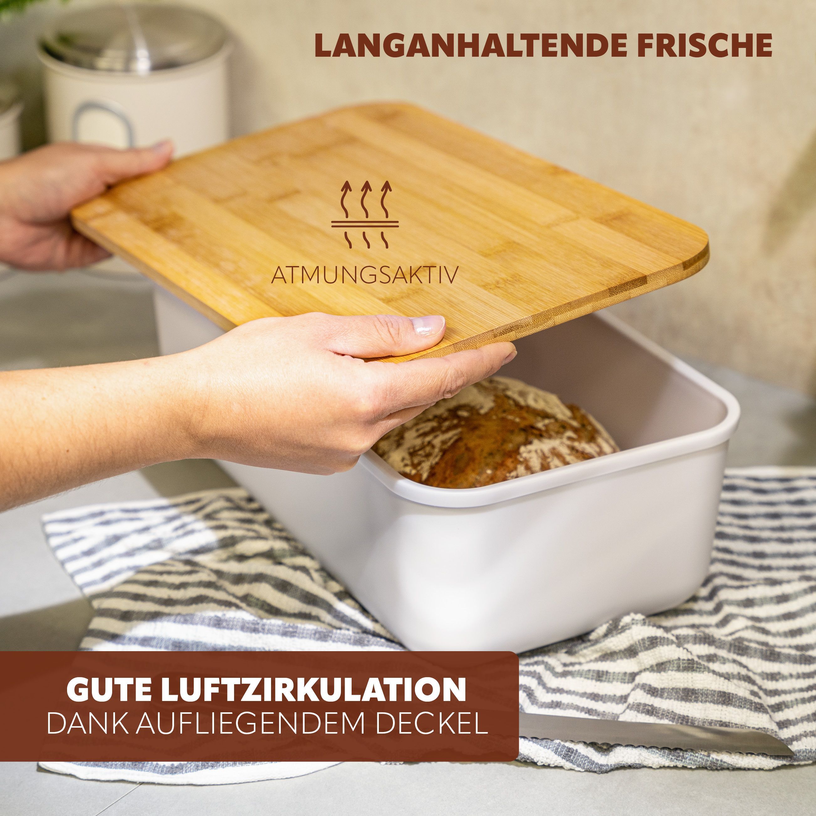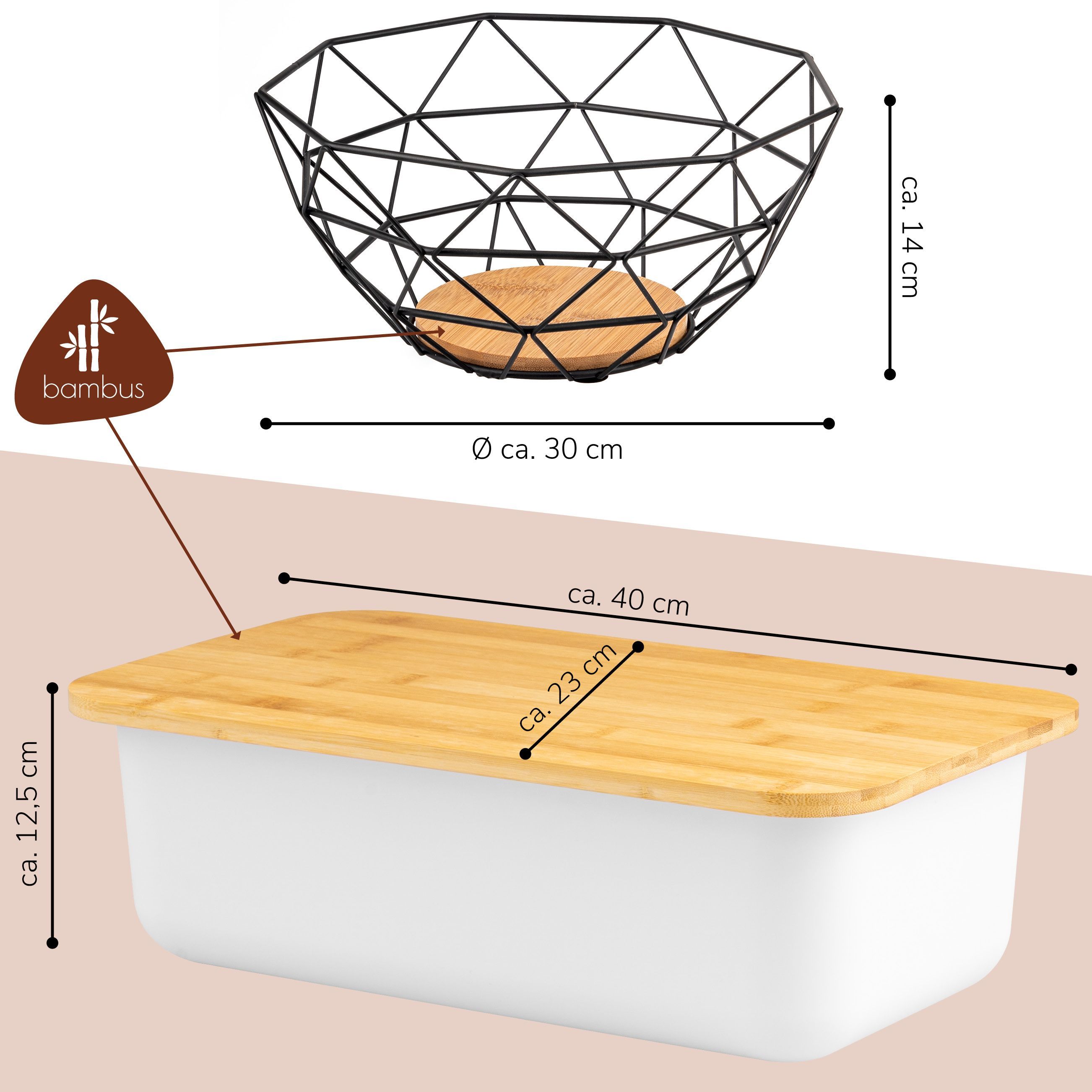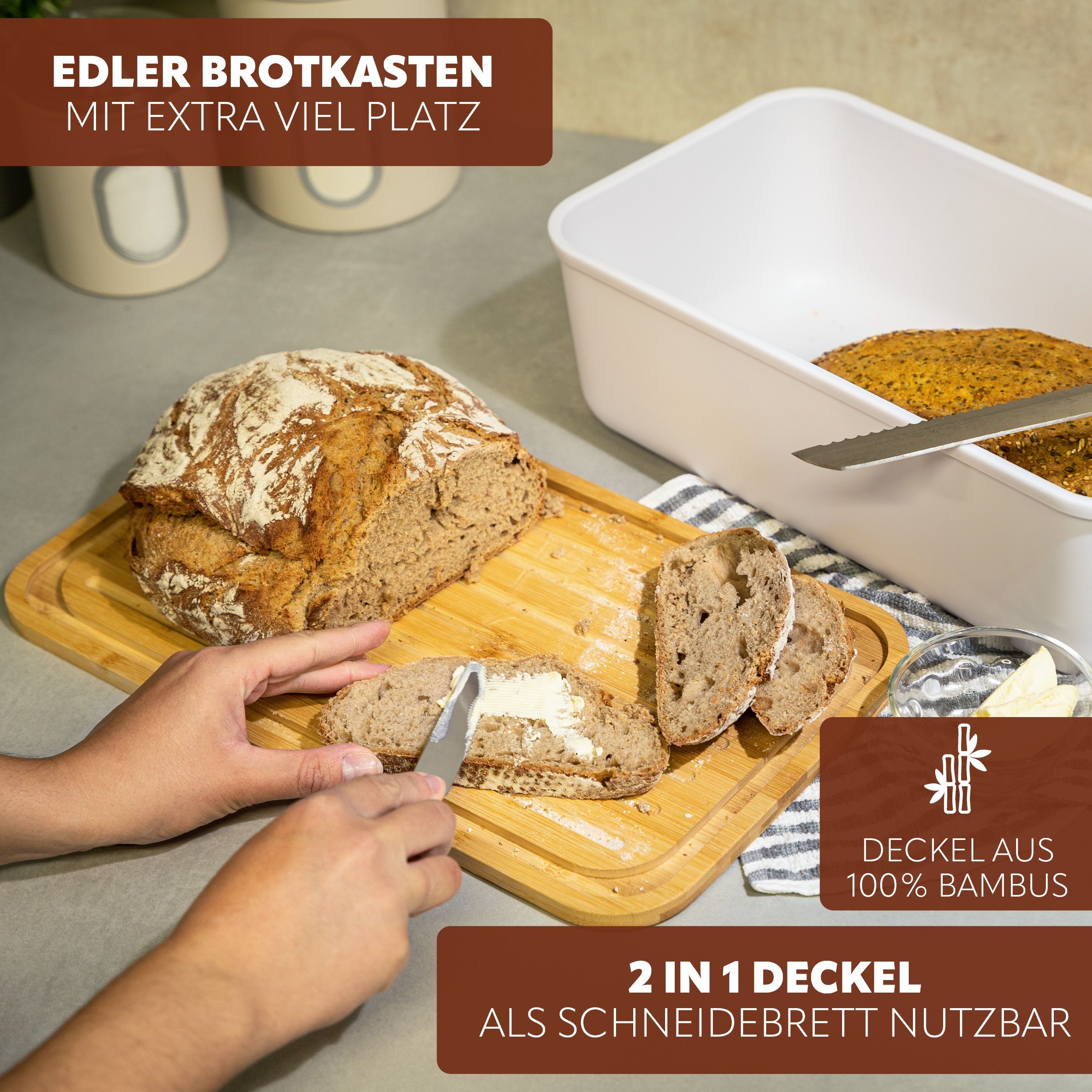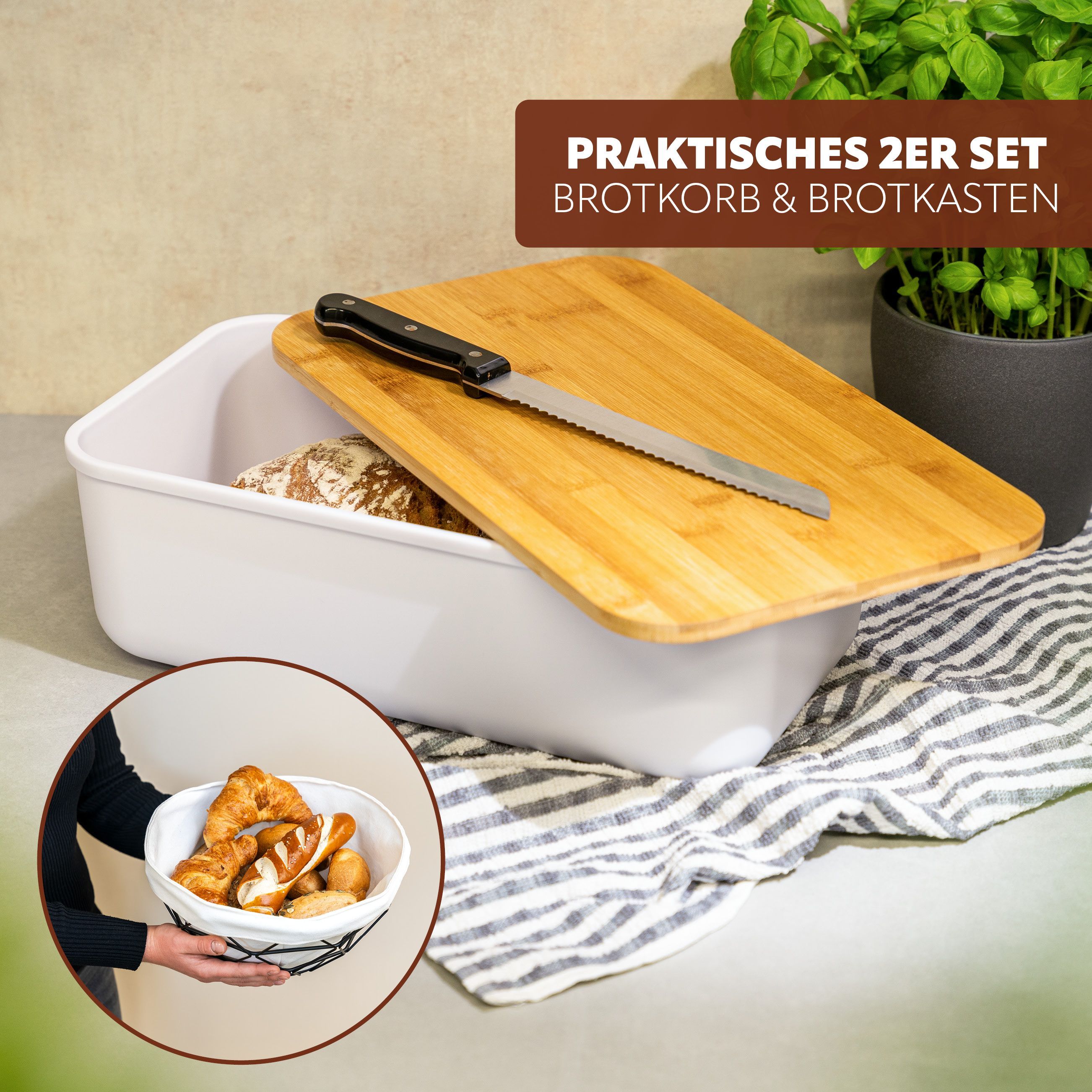 eluno 2tlg. Brotaufbewahrungs-Set - Brotkasten und Brotkorb (weiß)