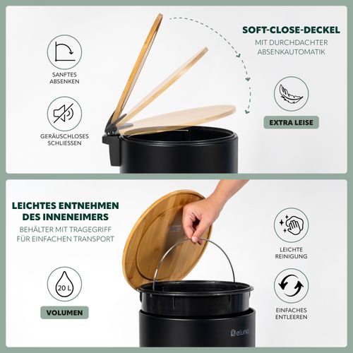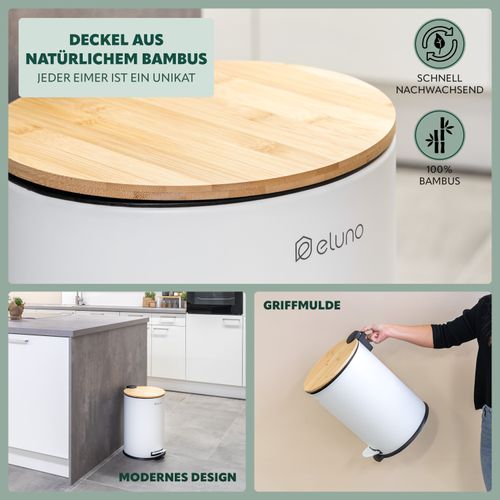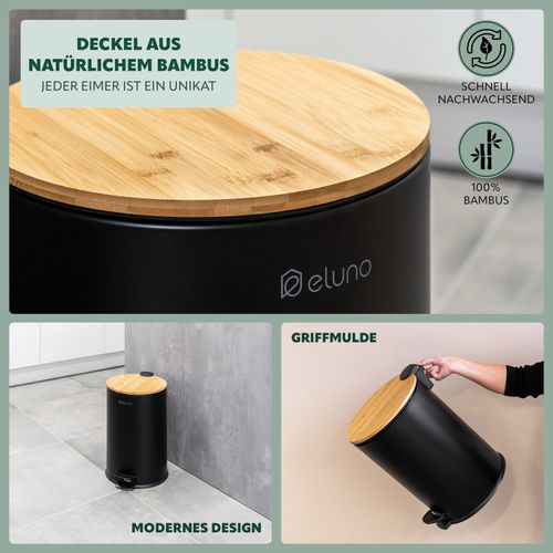 eluno Abfalleimer, 20 Liter Fassungsvermögen aus Bambus und Metall