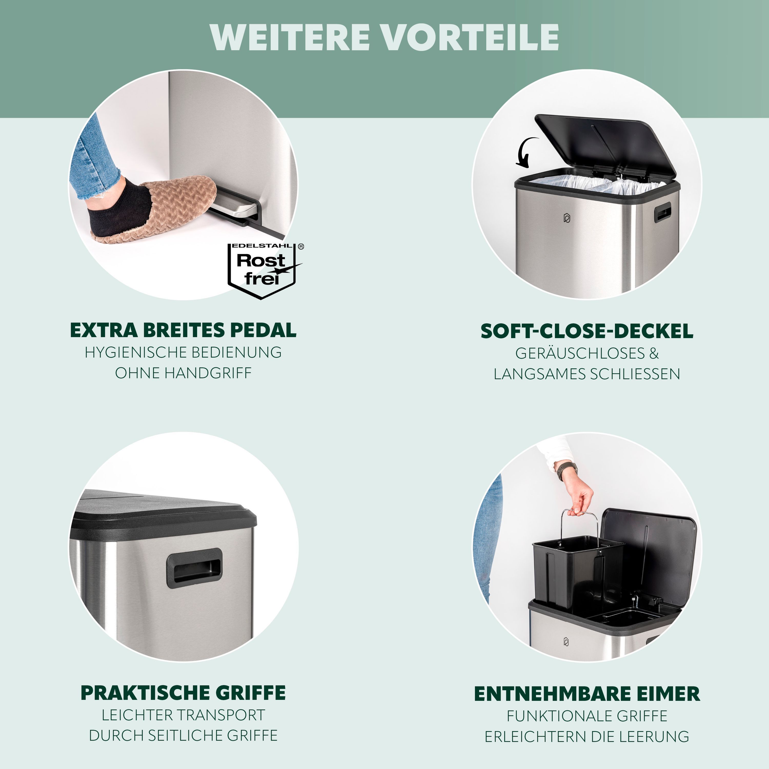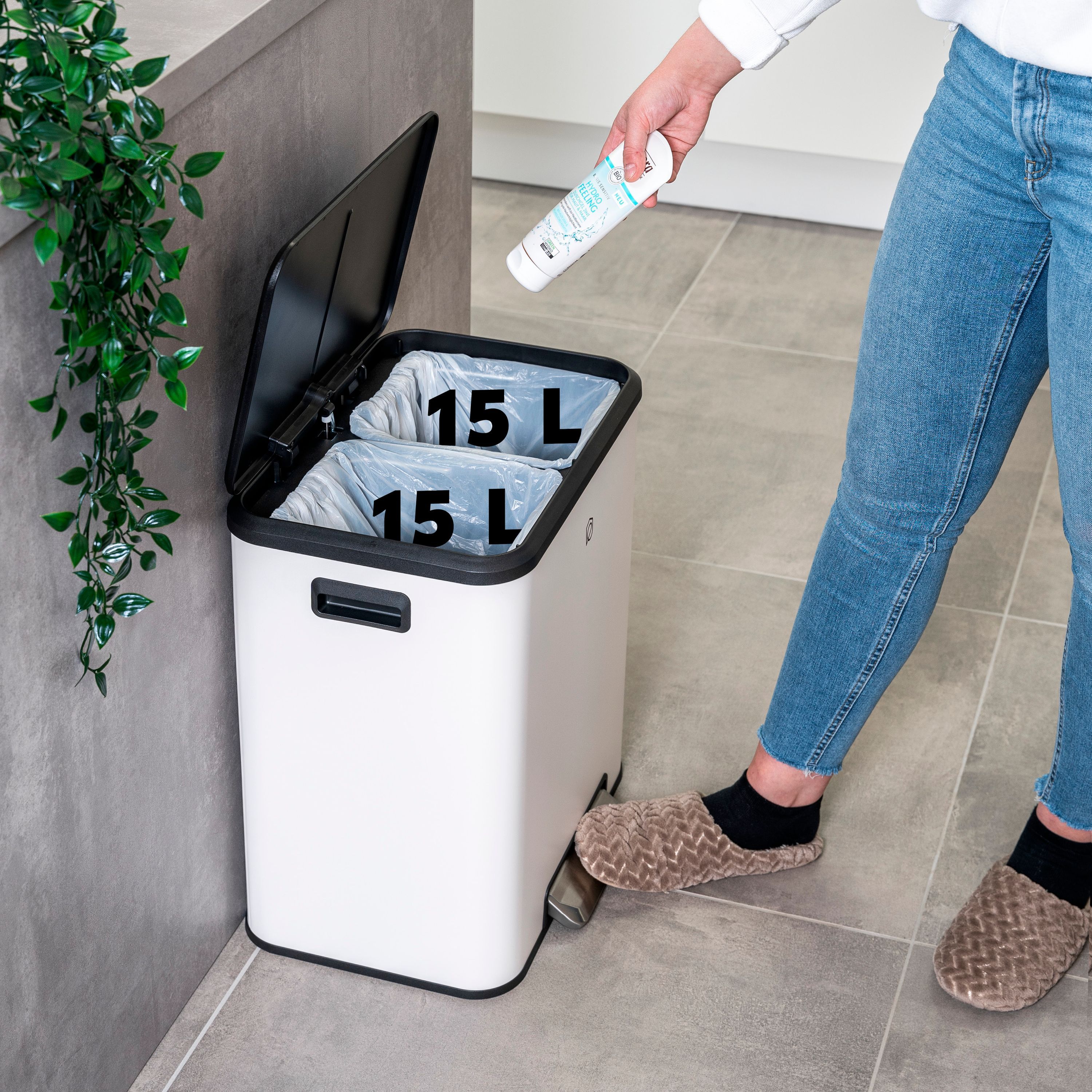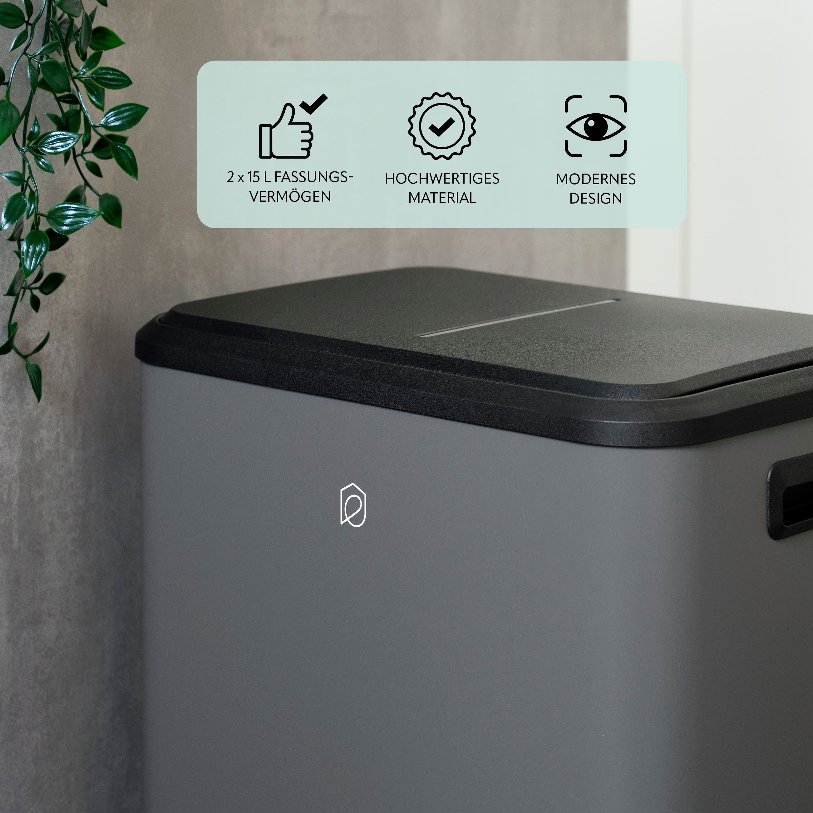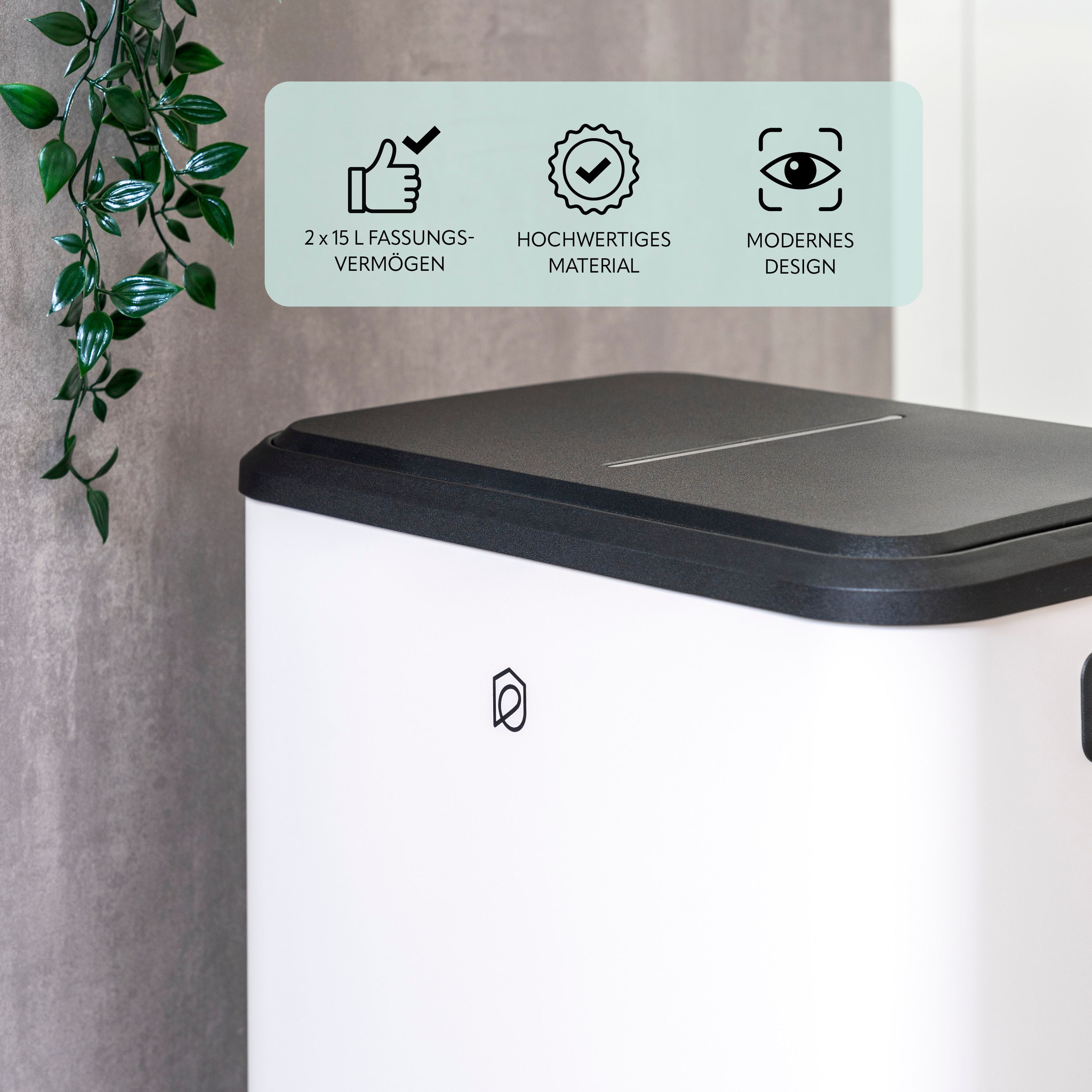 eluno Abfalleimer, Treteimer - 2 Abteile je 15 Liter Fassungsvermögen