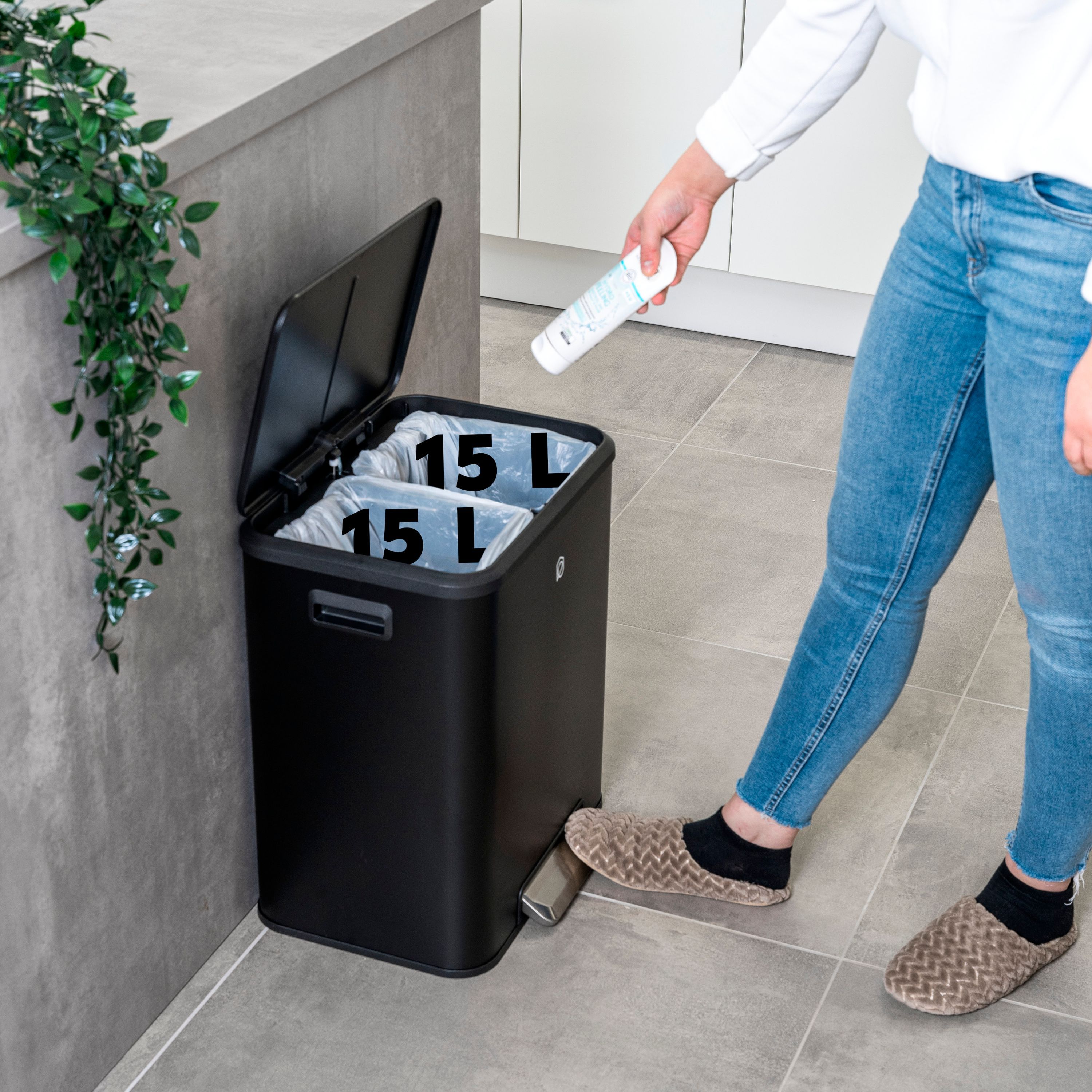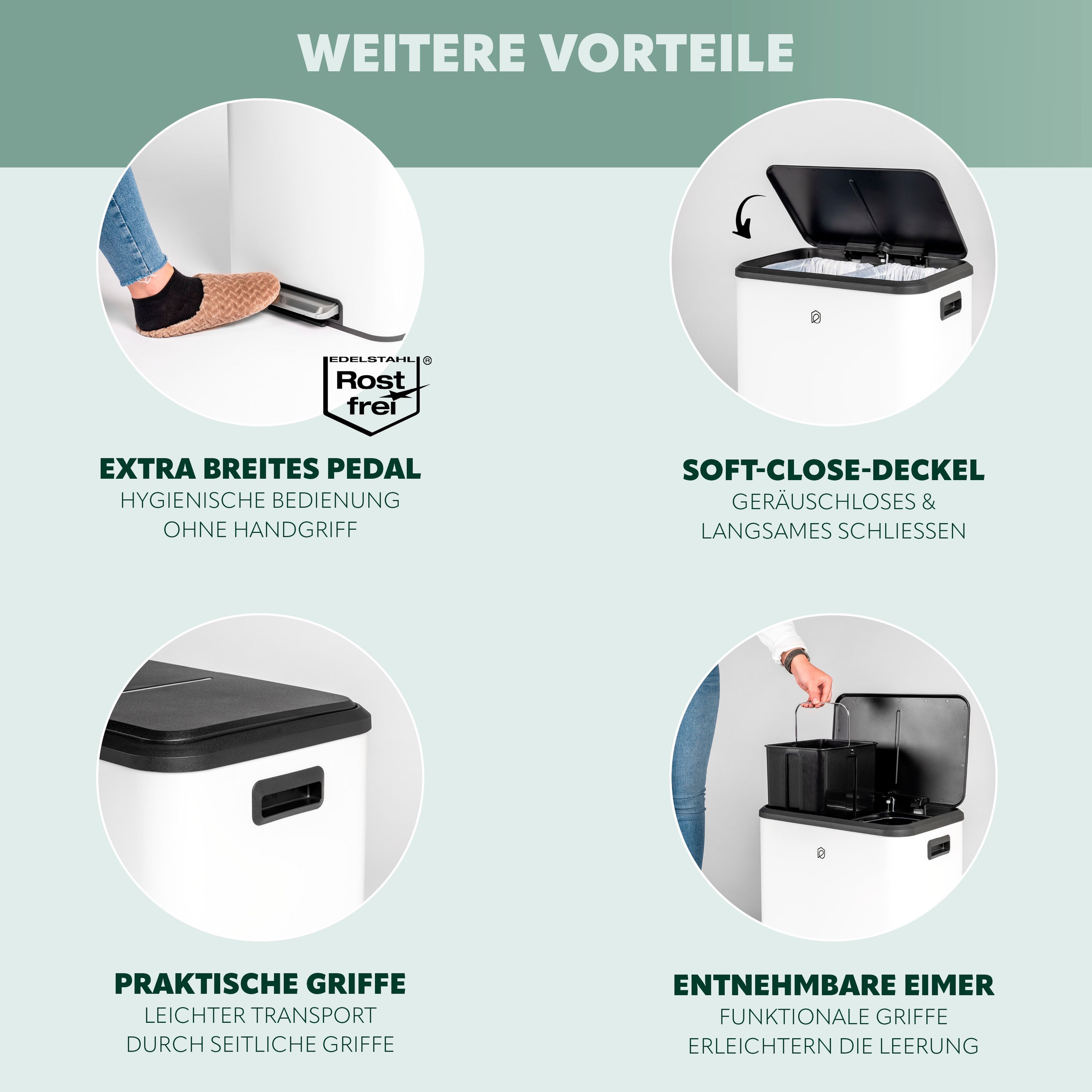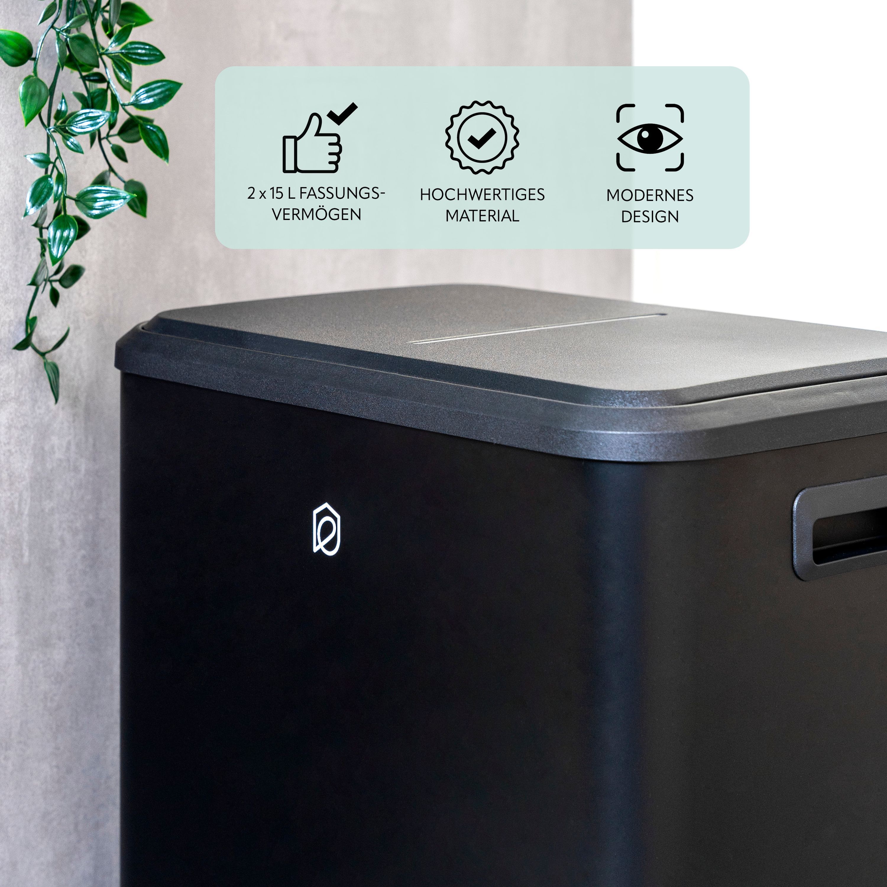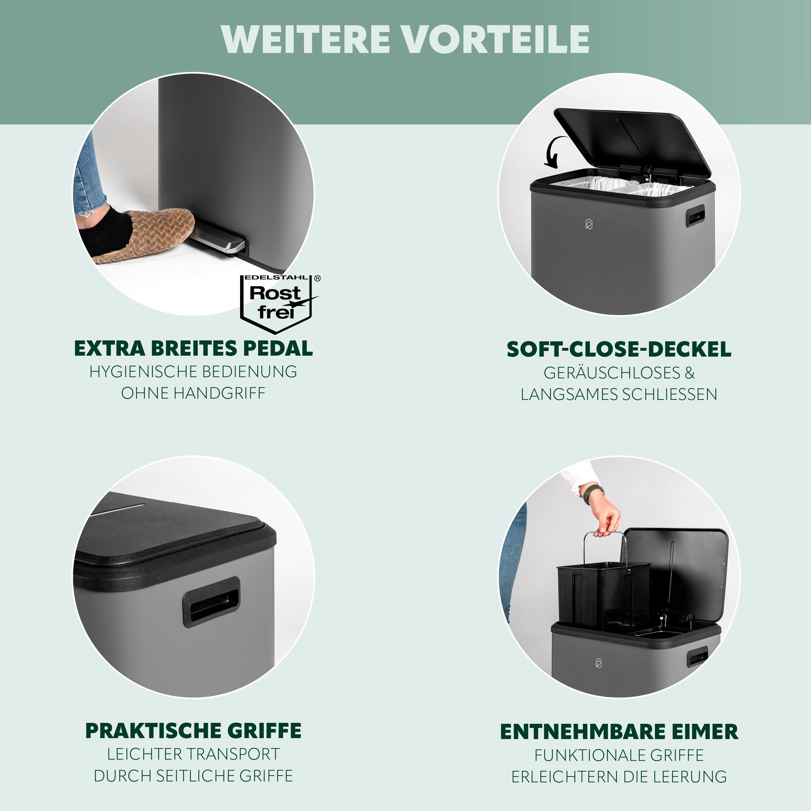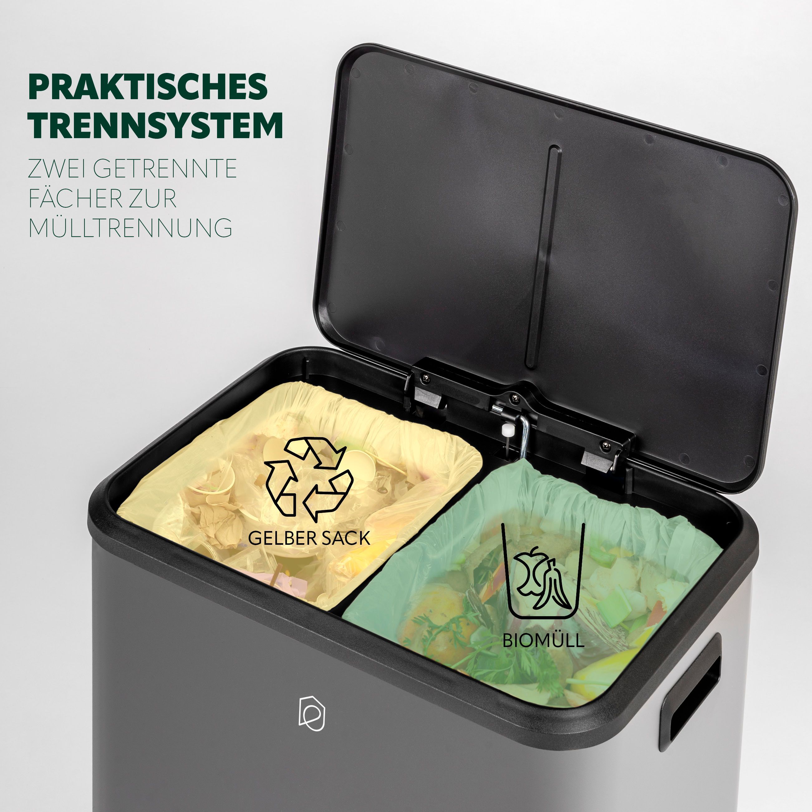 eluno Abfalleimer, Treteimer - 2 Abteile je 15 Liter Fassungsvermögen
