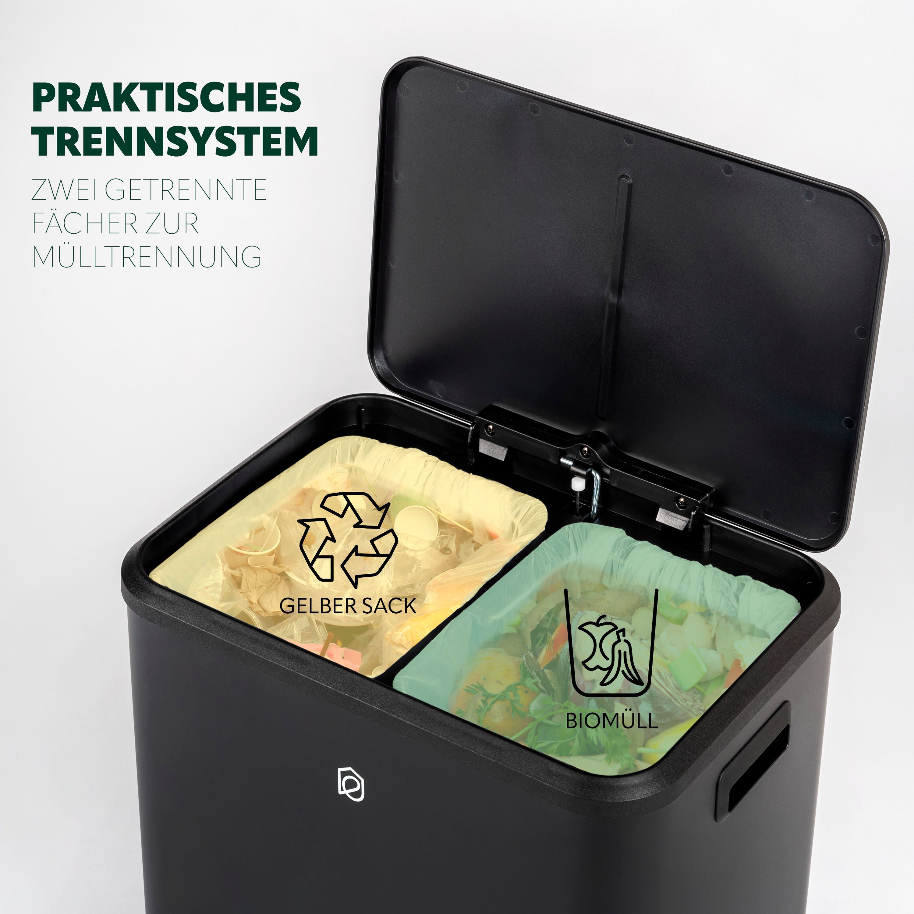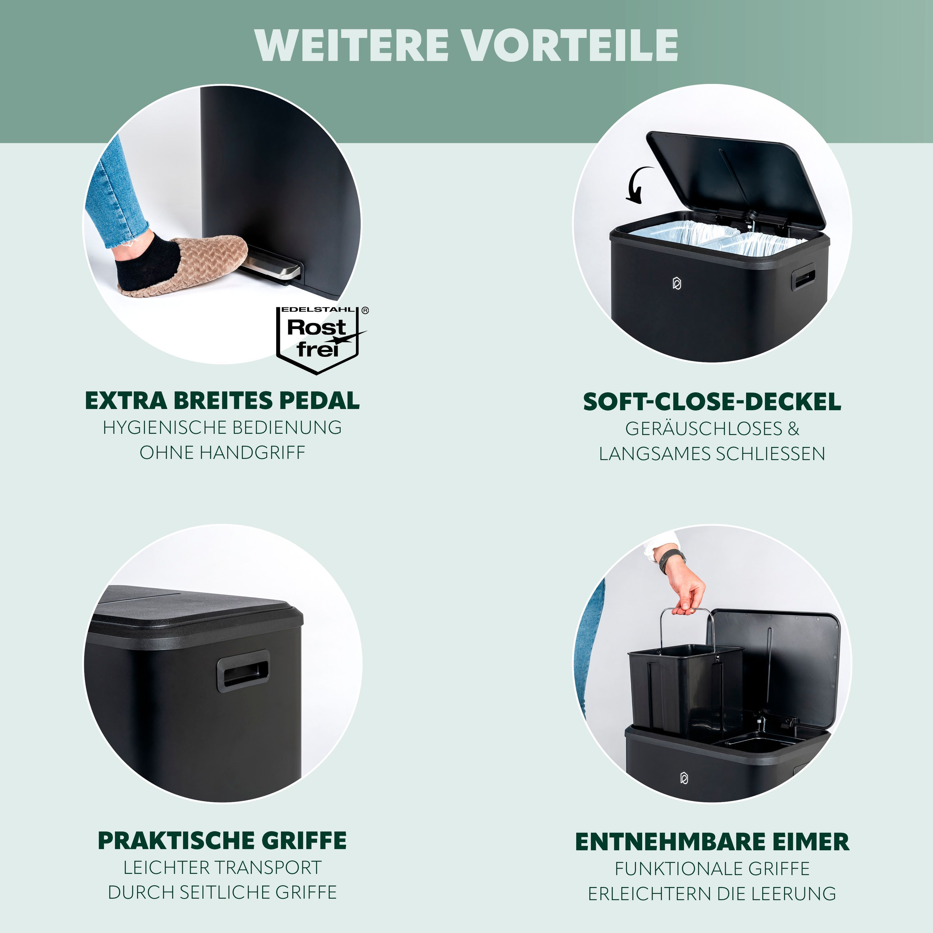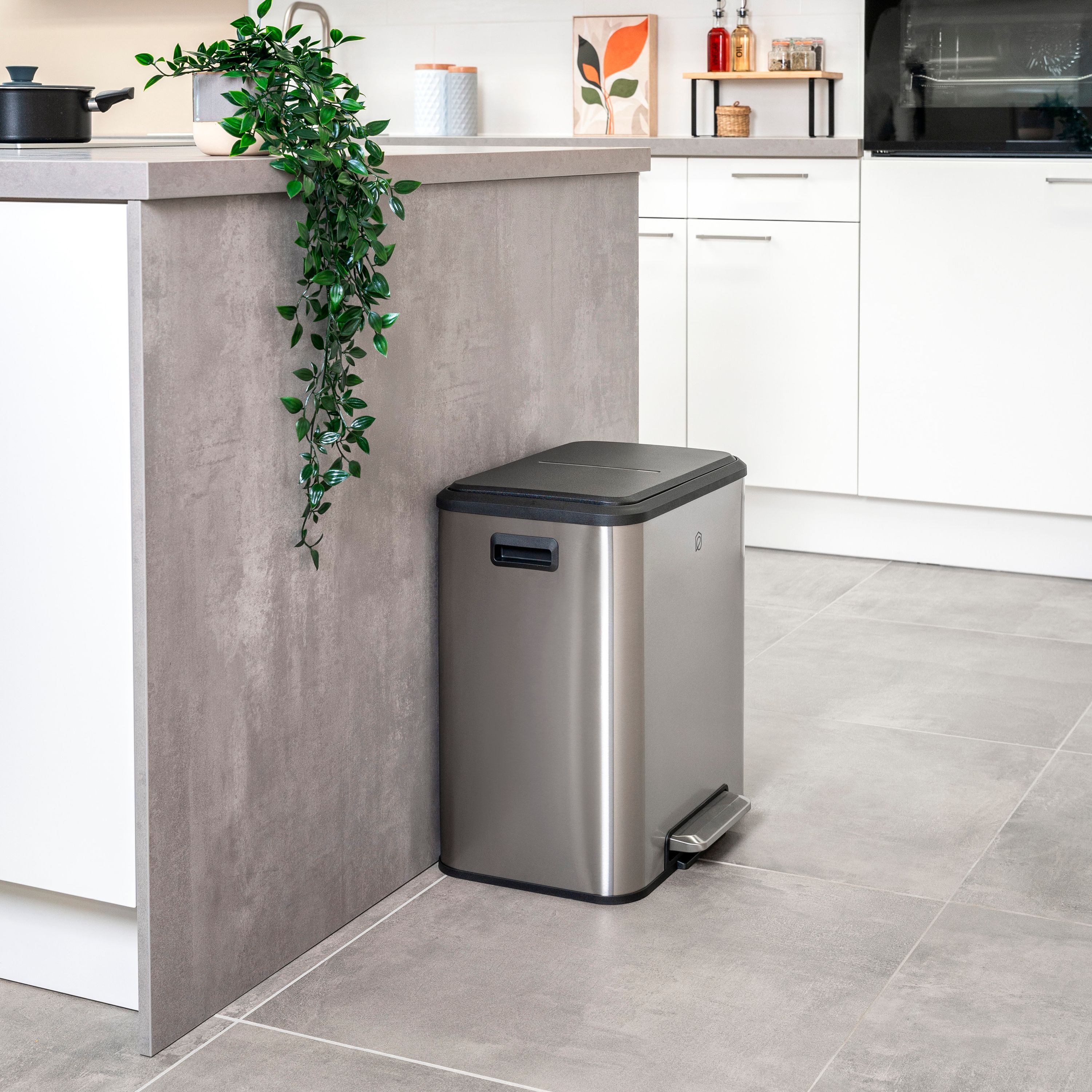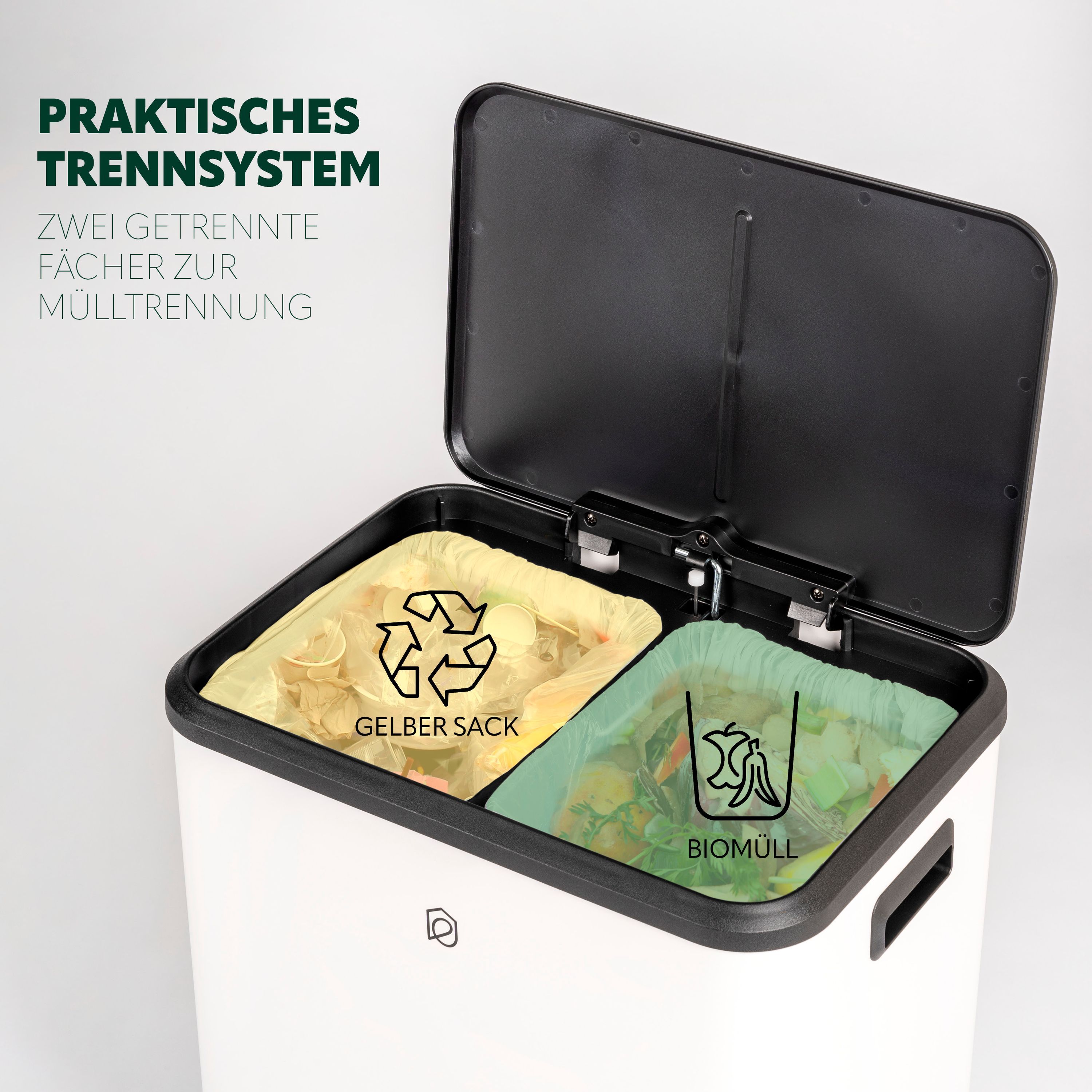 eluno Abfalleimer, Treteimer - 2 Abteile je 15 Liter Fassungsvermögen