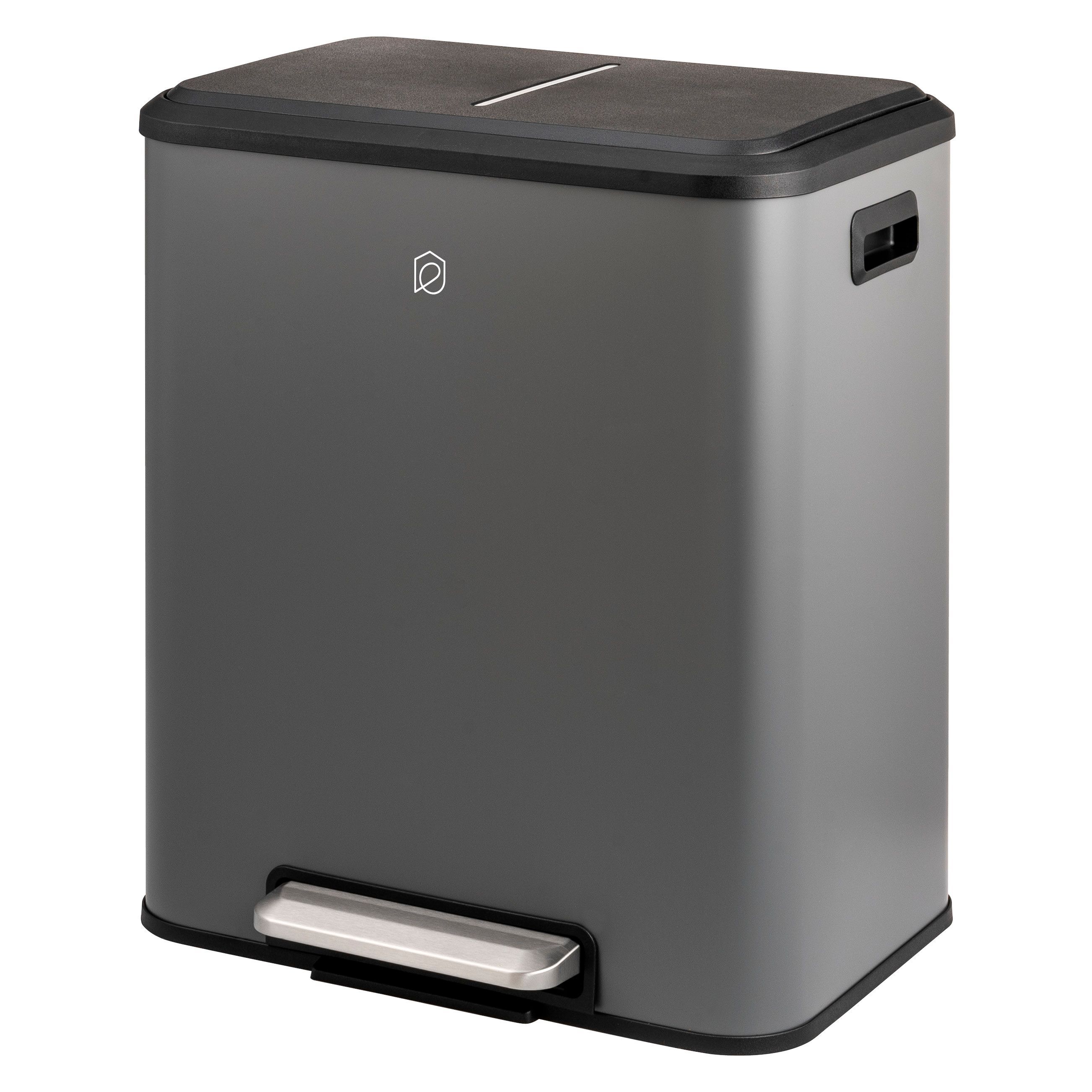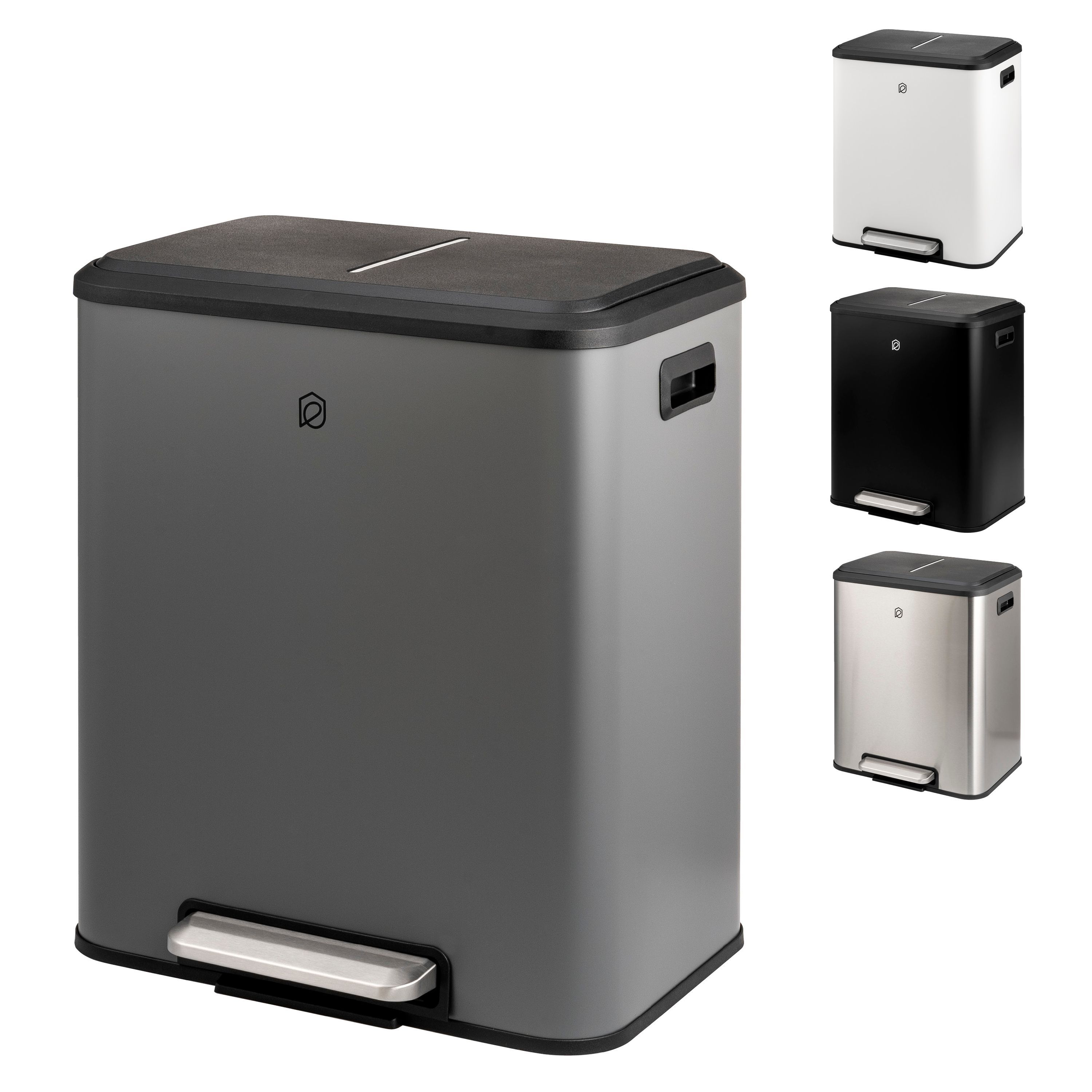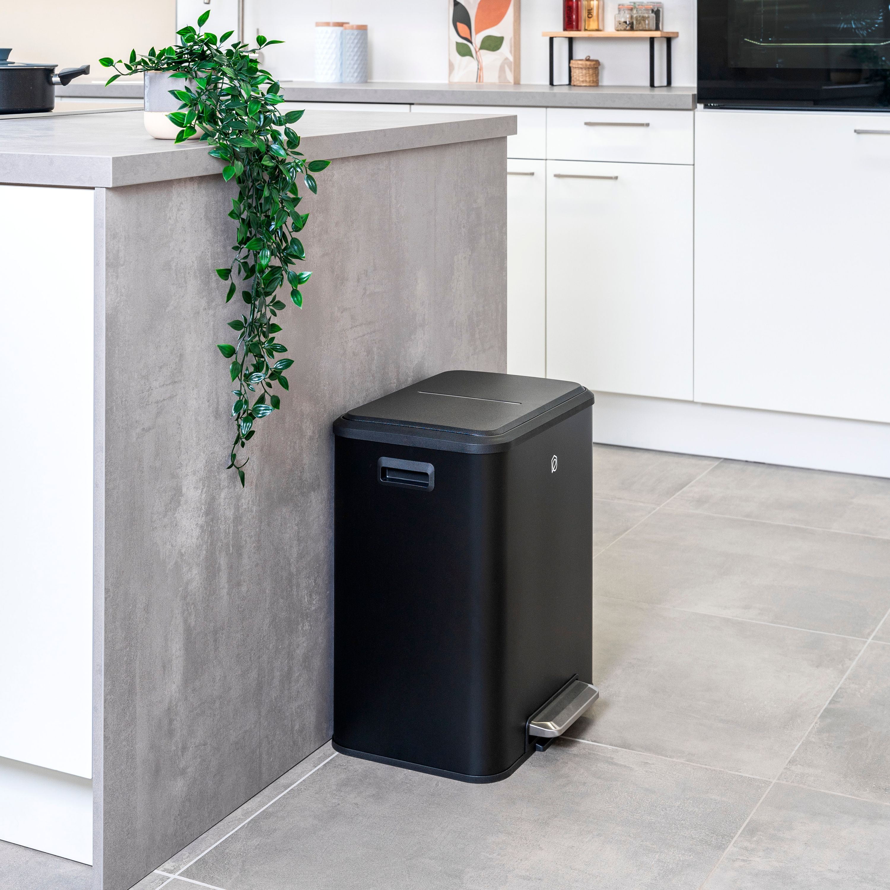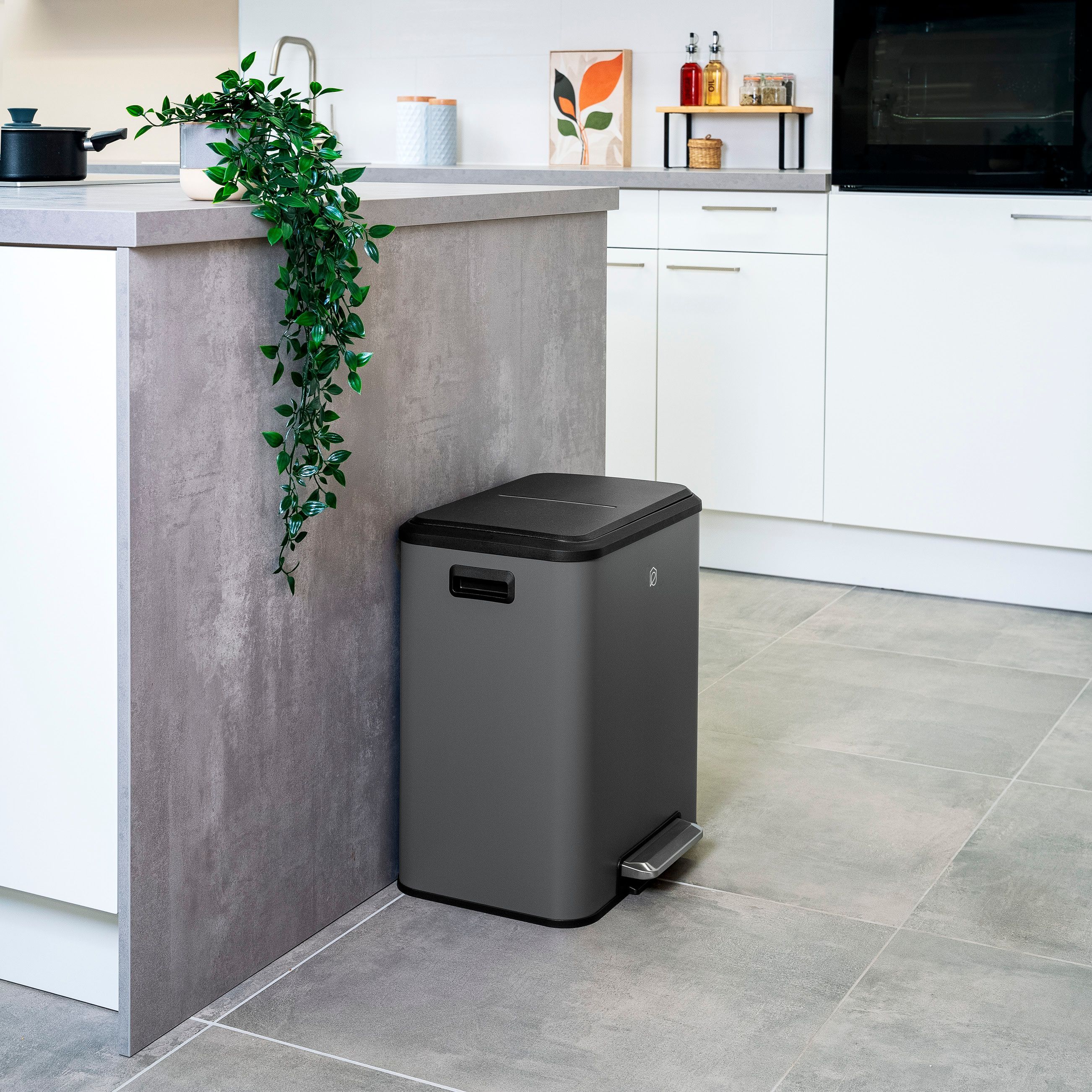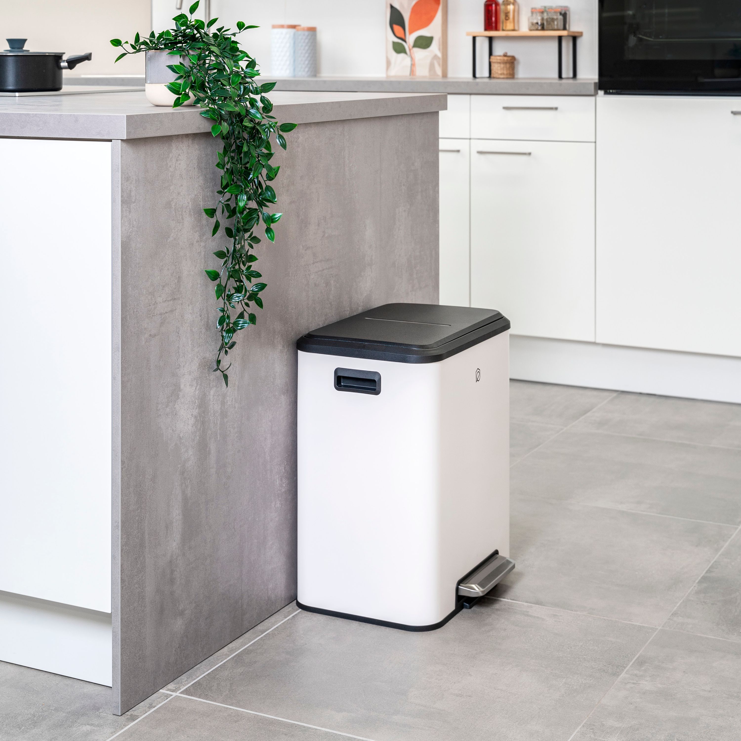 eluno Abfalleimer, Treteimer - 2 Abteile je 15 Liter Fassungsvermögen