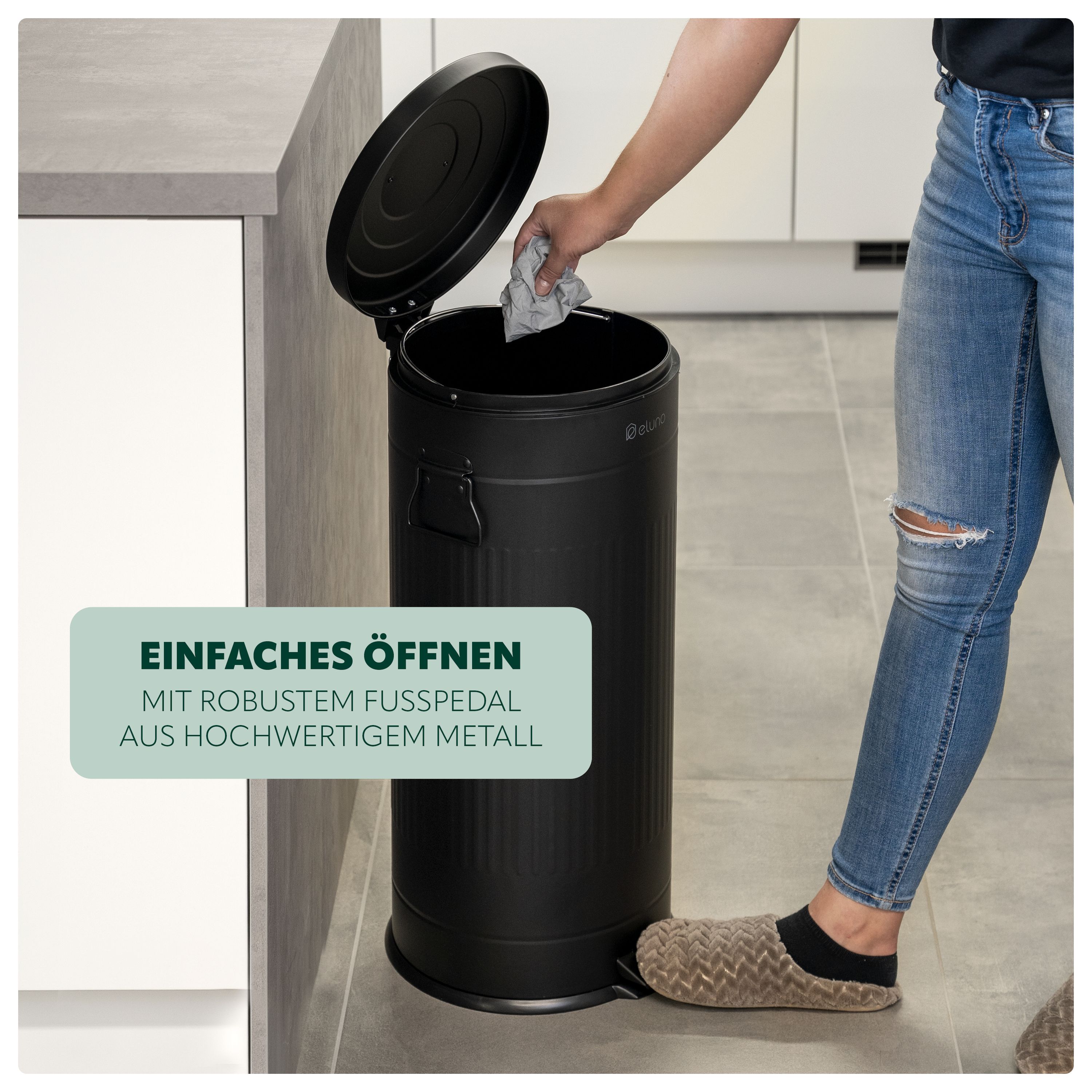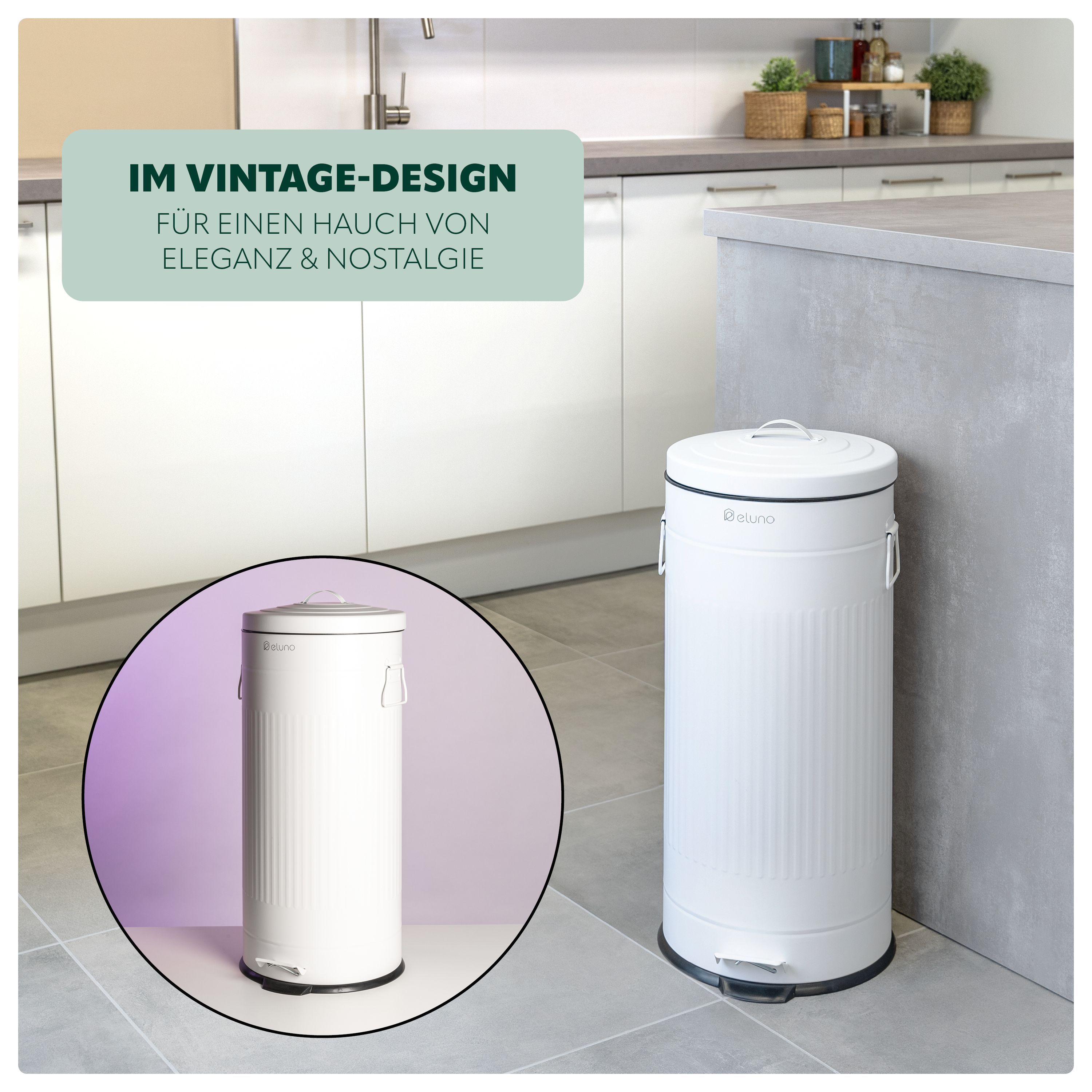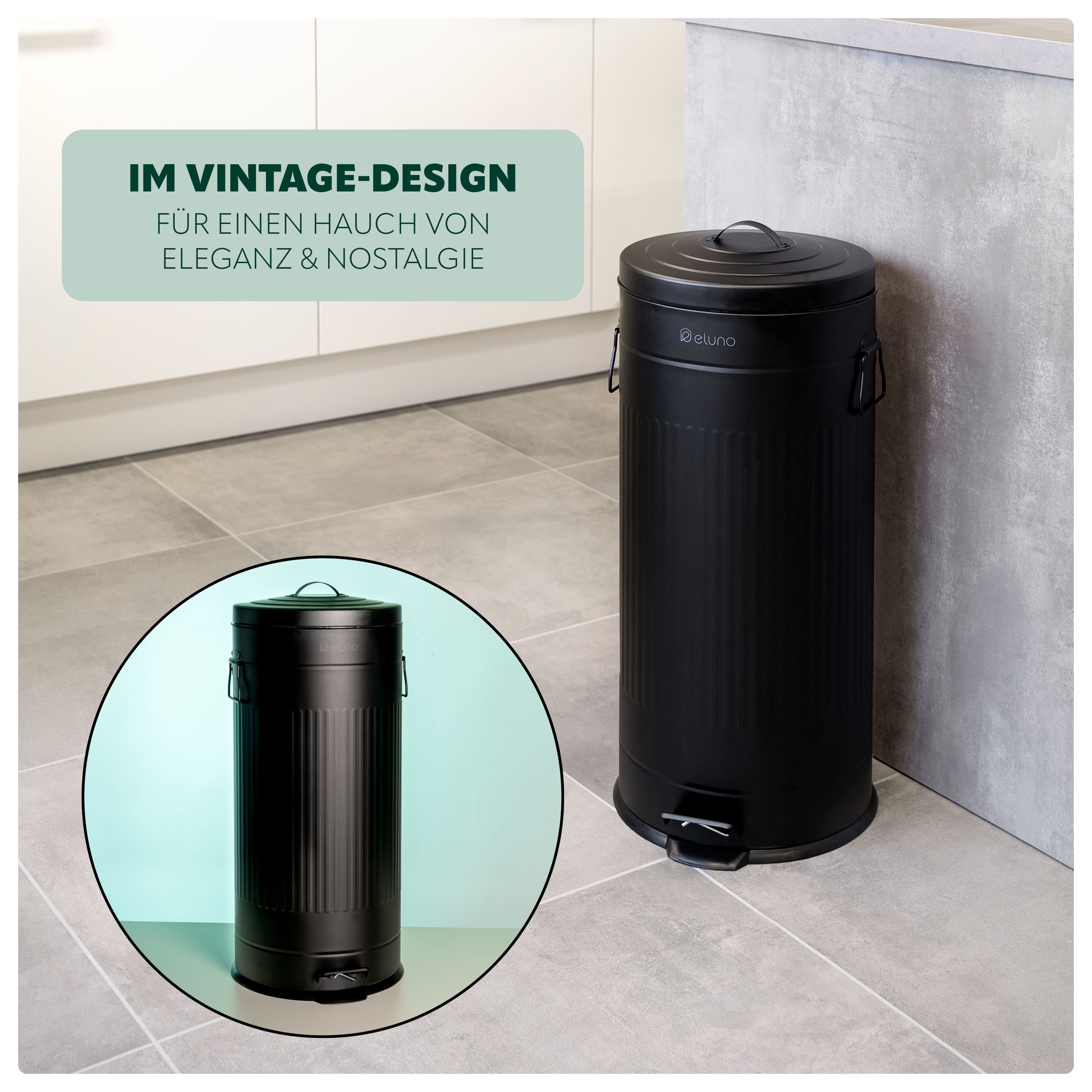 eluno Abfalleimer Vintage, Treteimer, 30 Liter Fassungsvermögen aus Metall