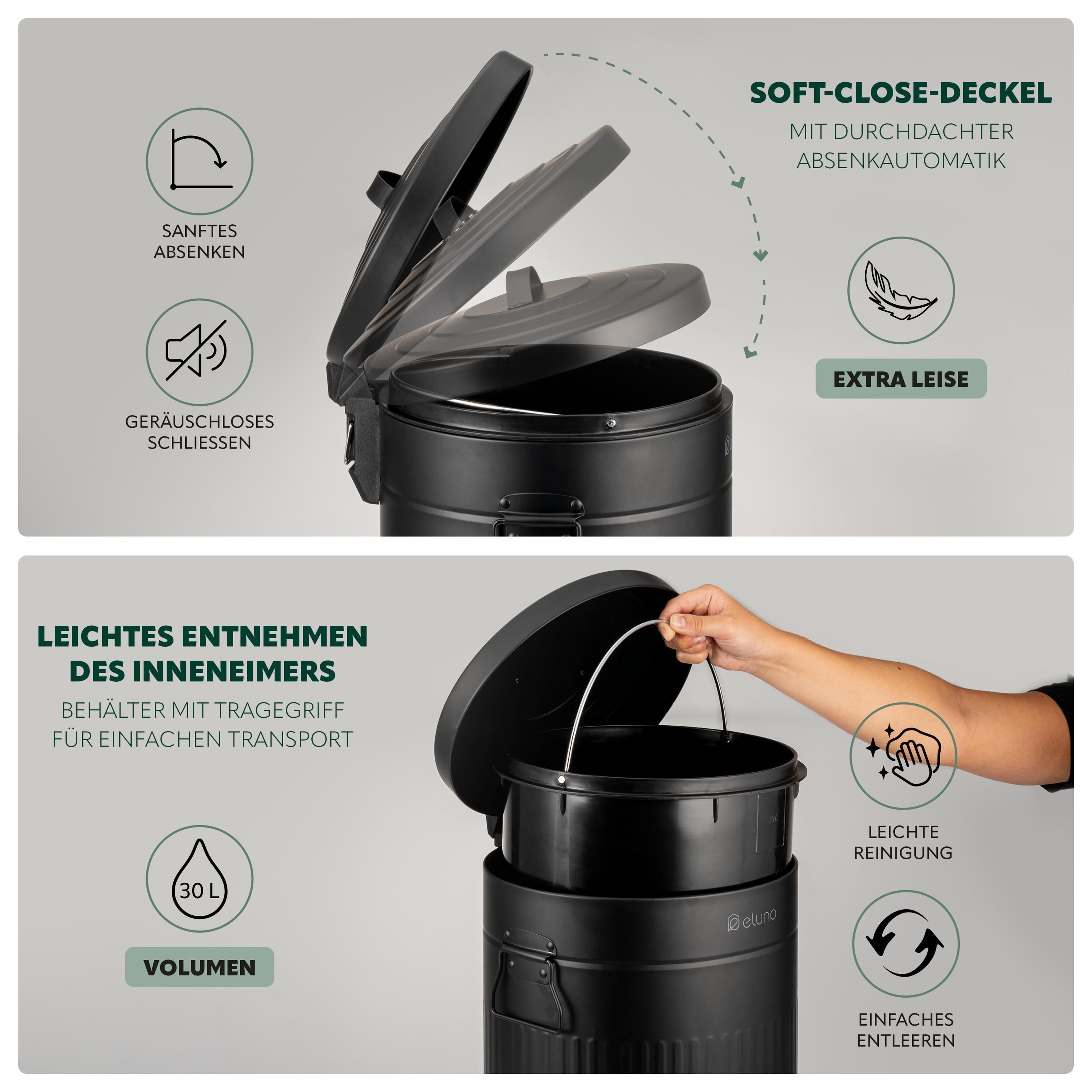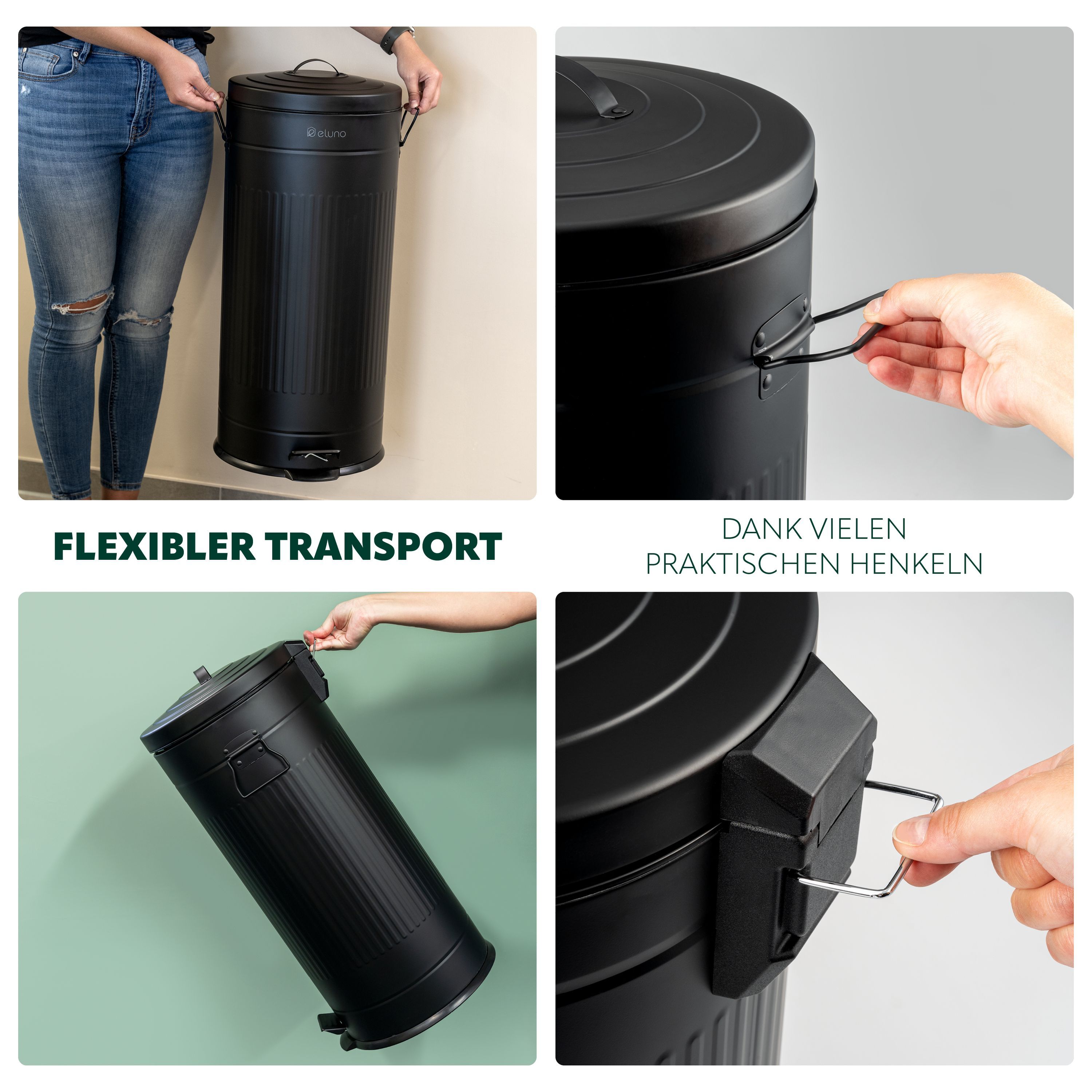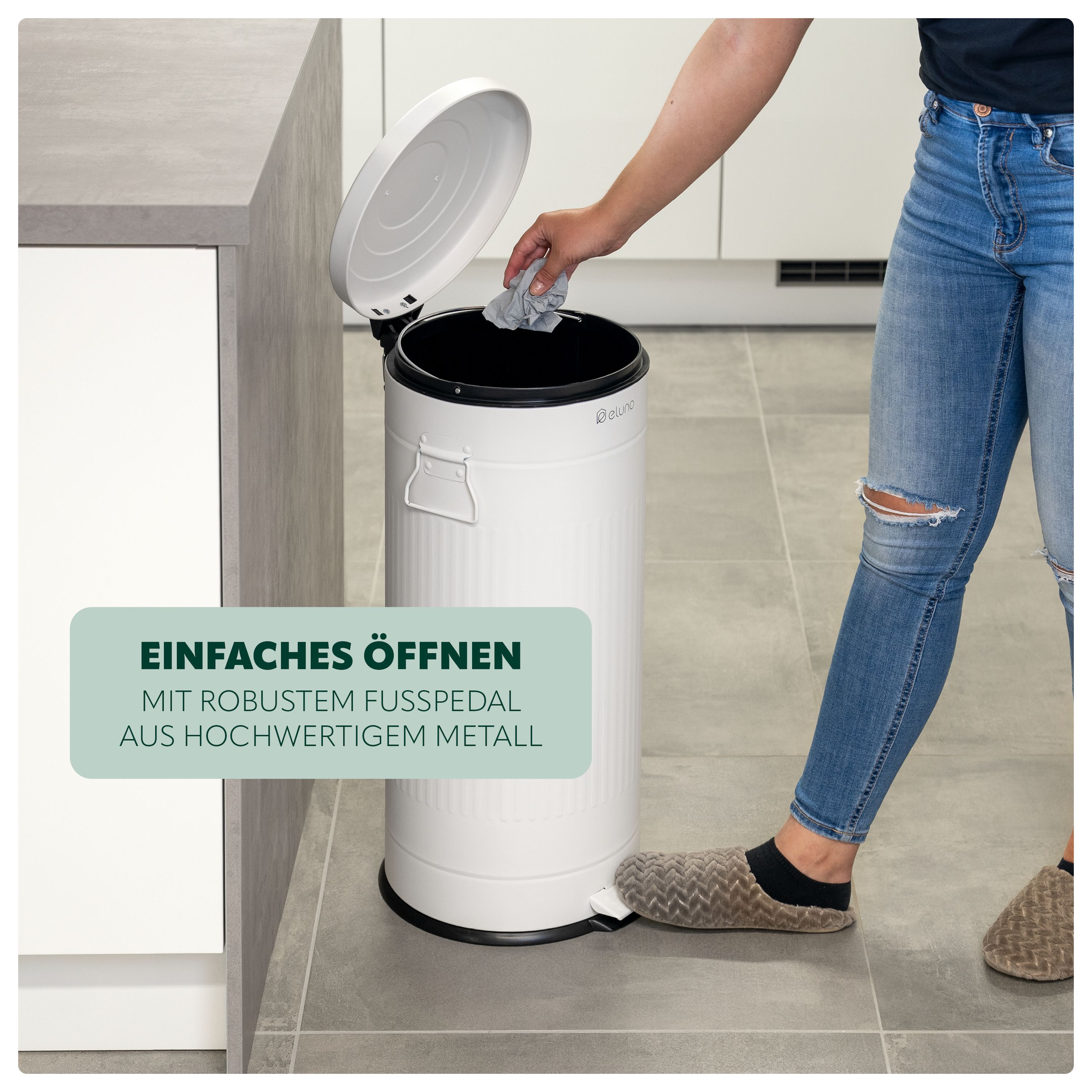 eluno Abfalleimer Vintage, Treteimer, 30 Liter Fassungsvermögen aus Metall