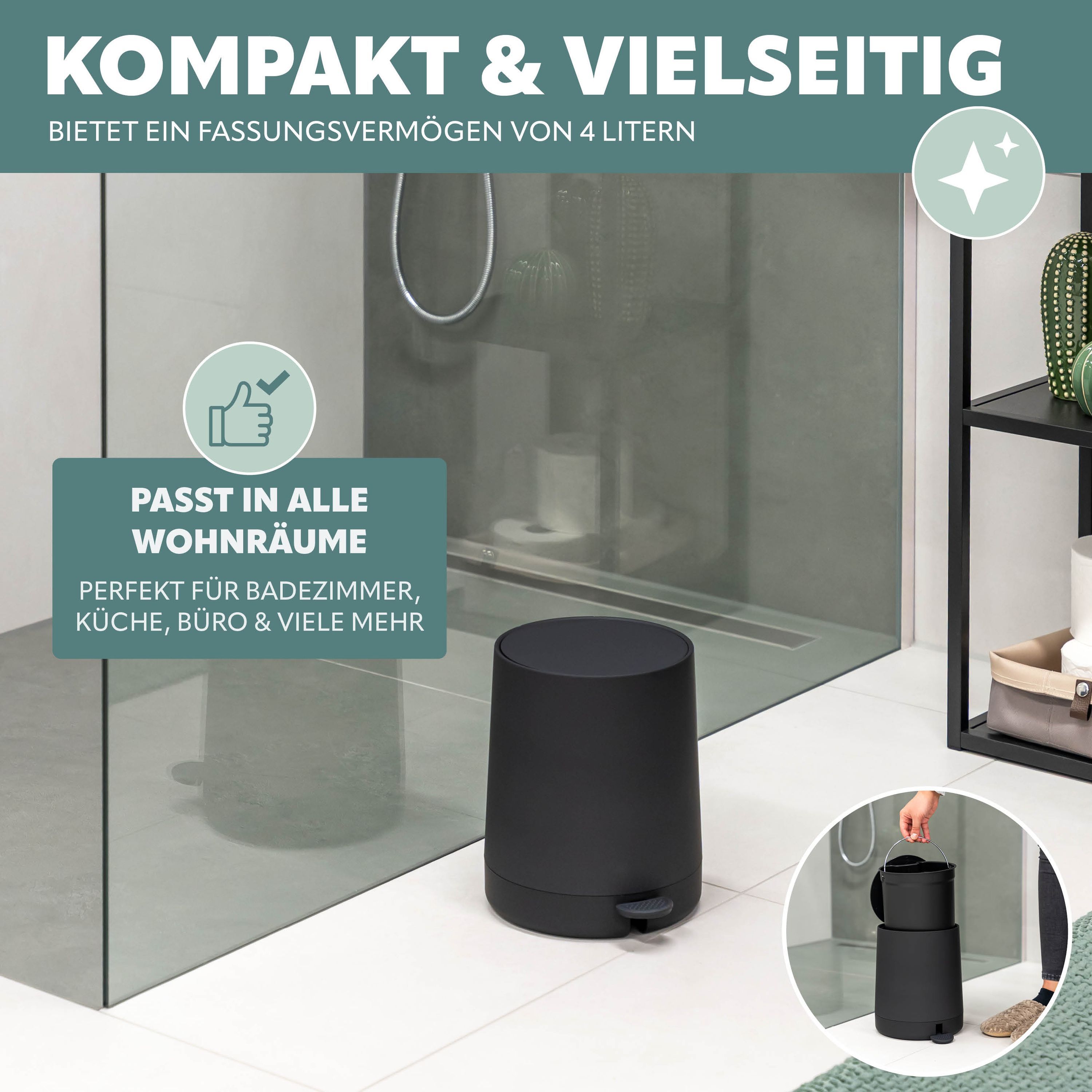 inkl. Kosmetikeimer mit 4 Liter Fassungsvermögen und Soft-Close-Funktion