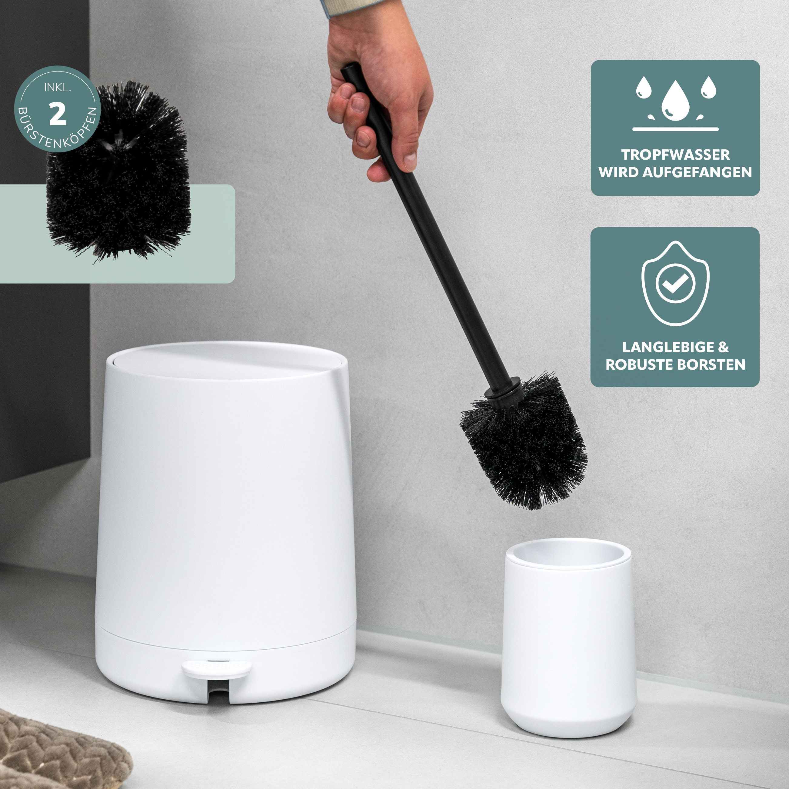 inkl. WC-Garnitur mit herausnehmbarem Abtropfbehälter, inkl. Ersatzbürstenkopf