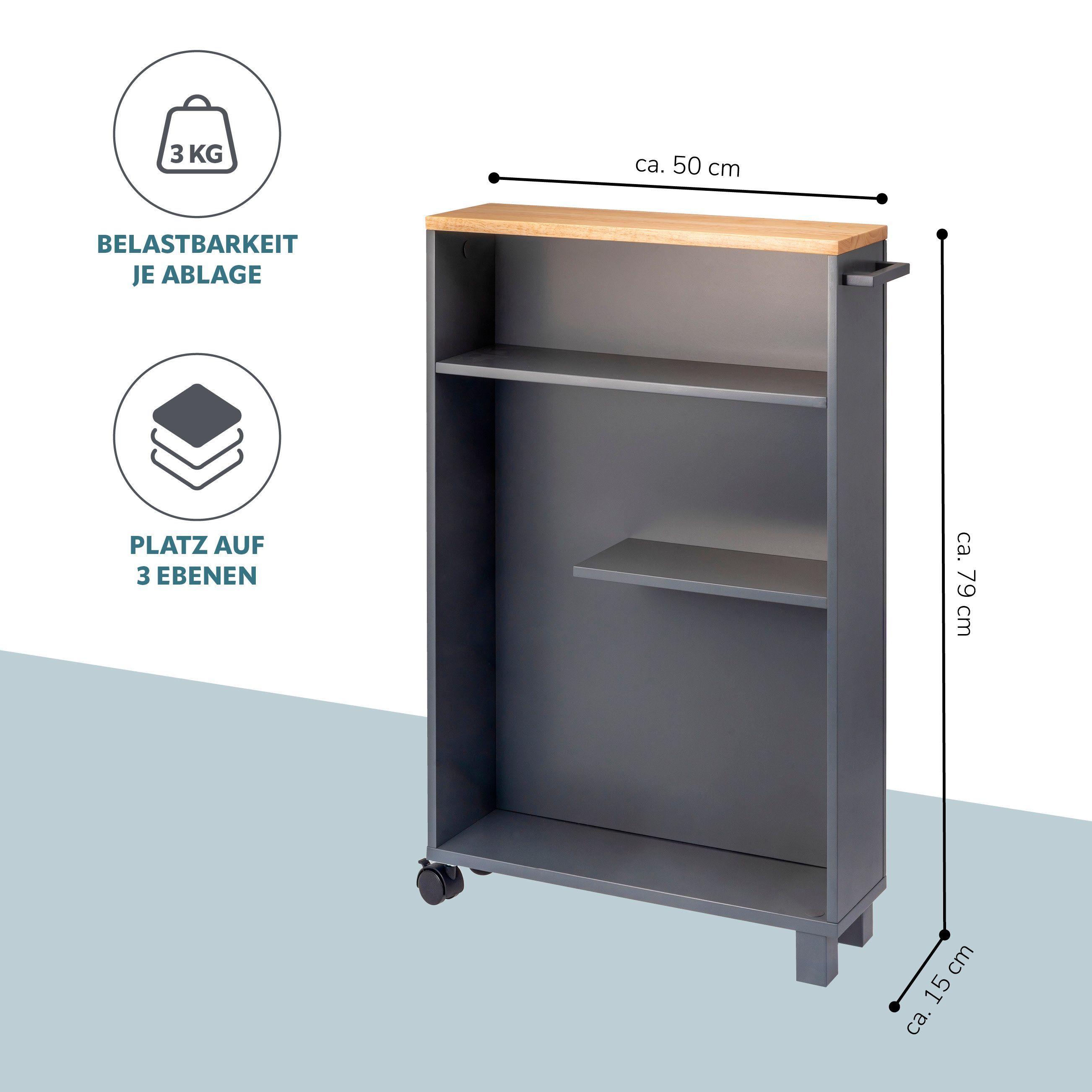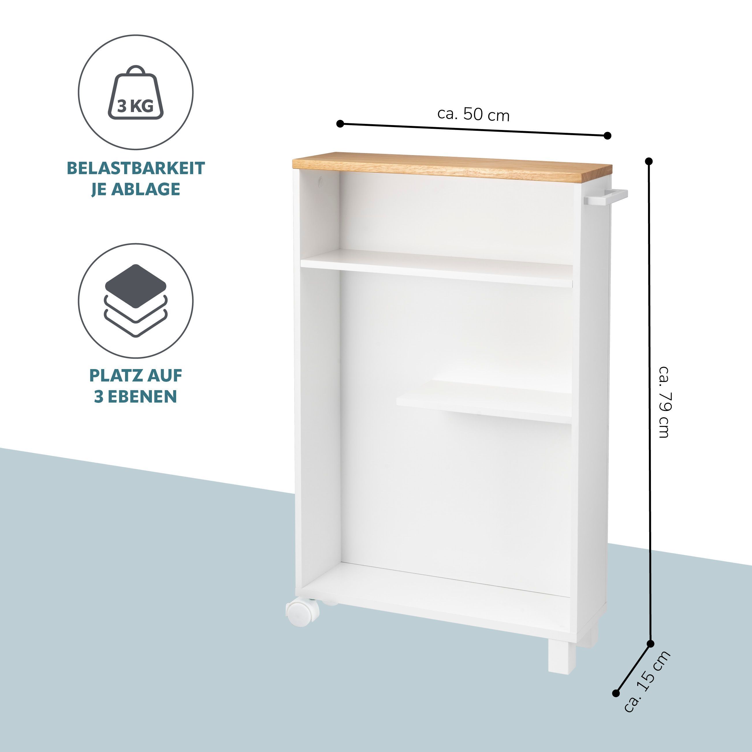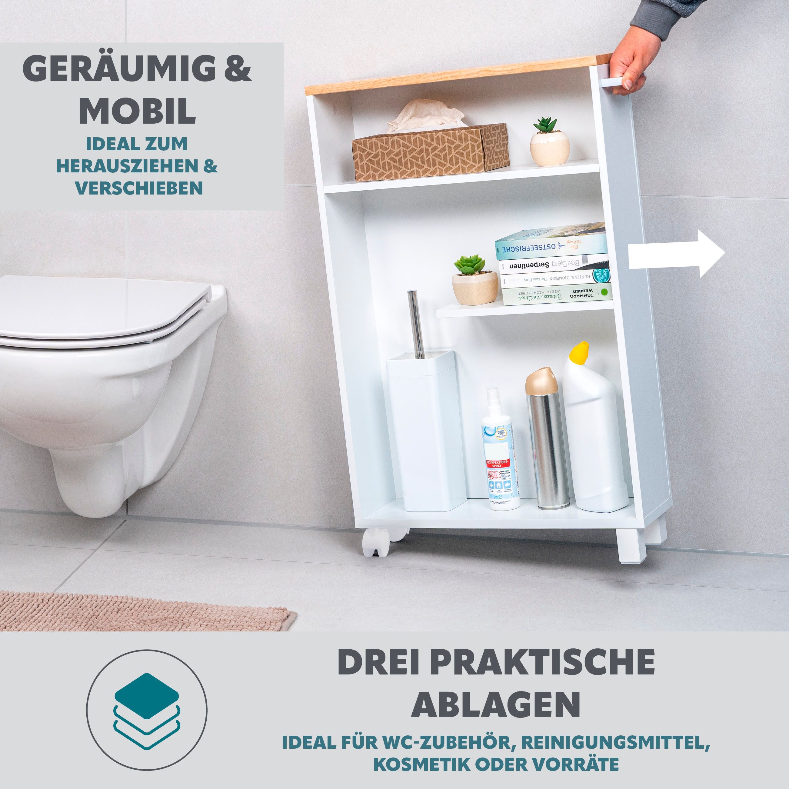 eluno Bad-Rollwagen, Küchen-Nischenwagen, Bad-Organizer mit 3 Ebenen aus Holz