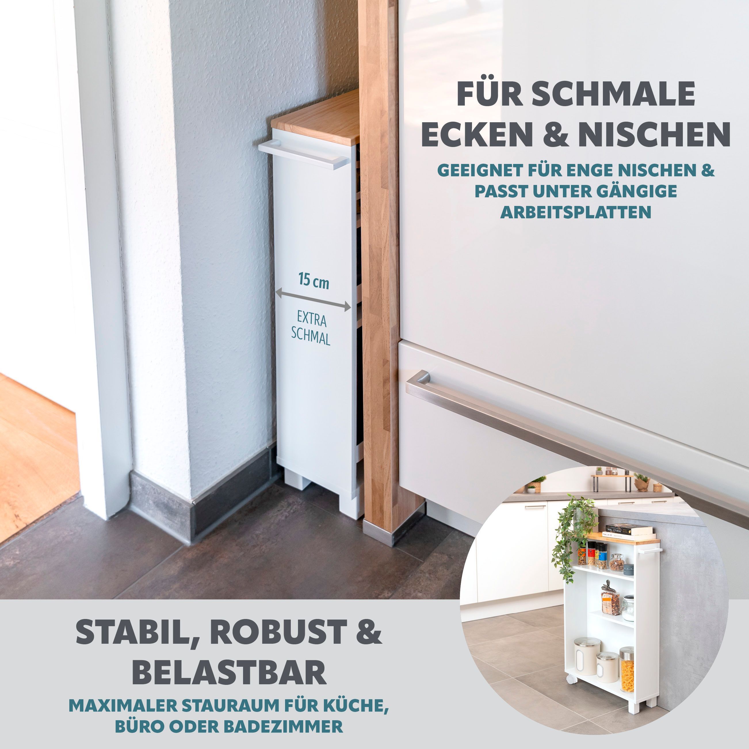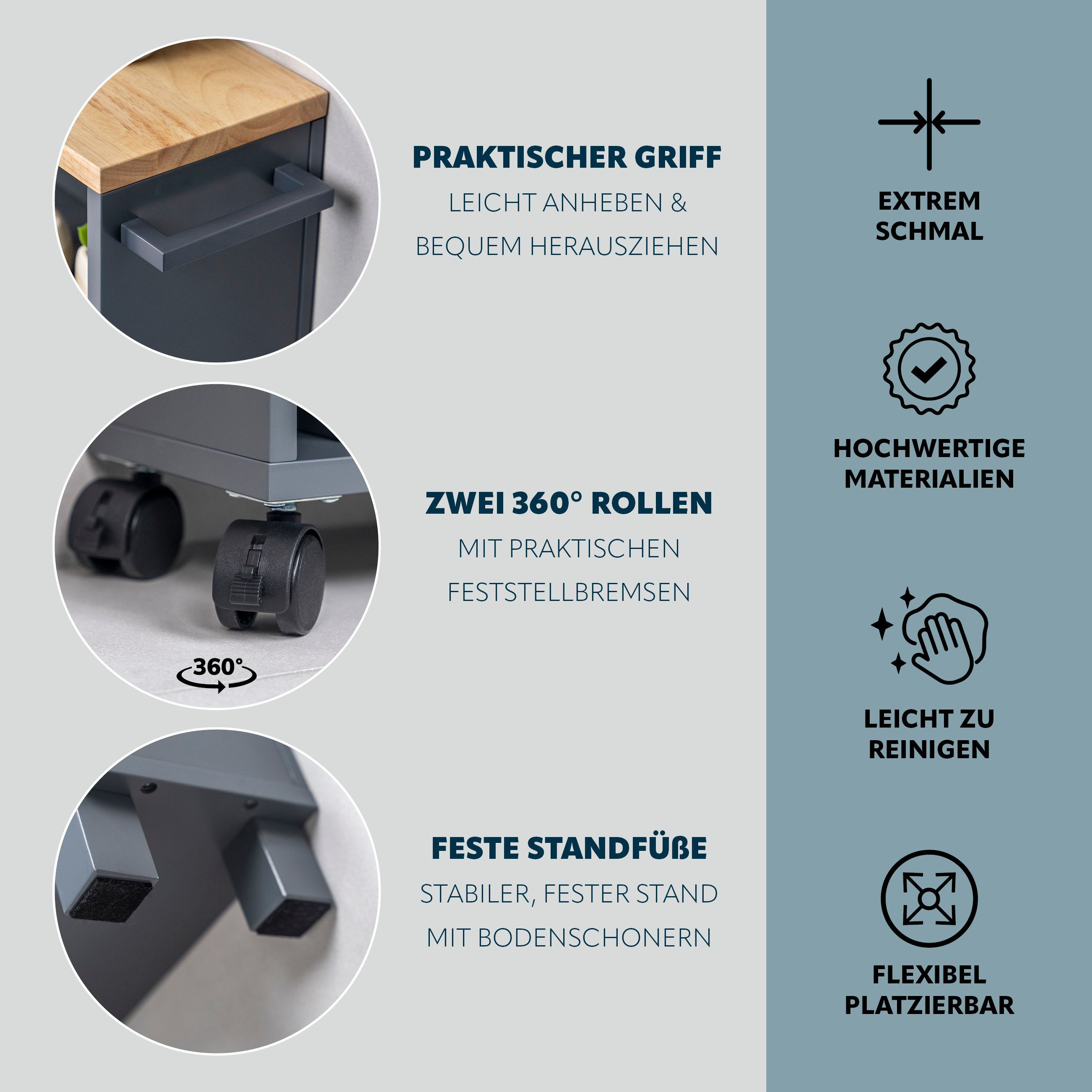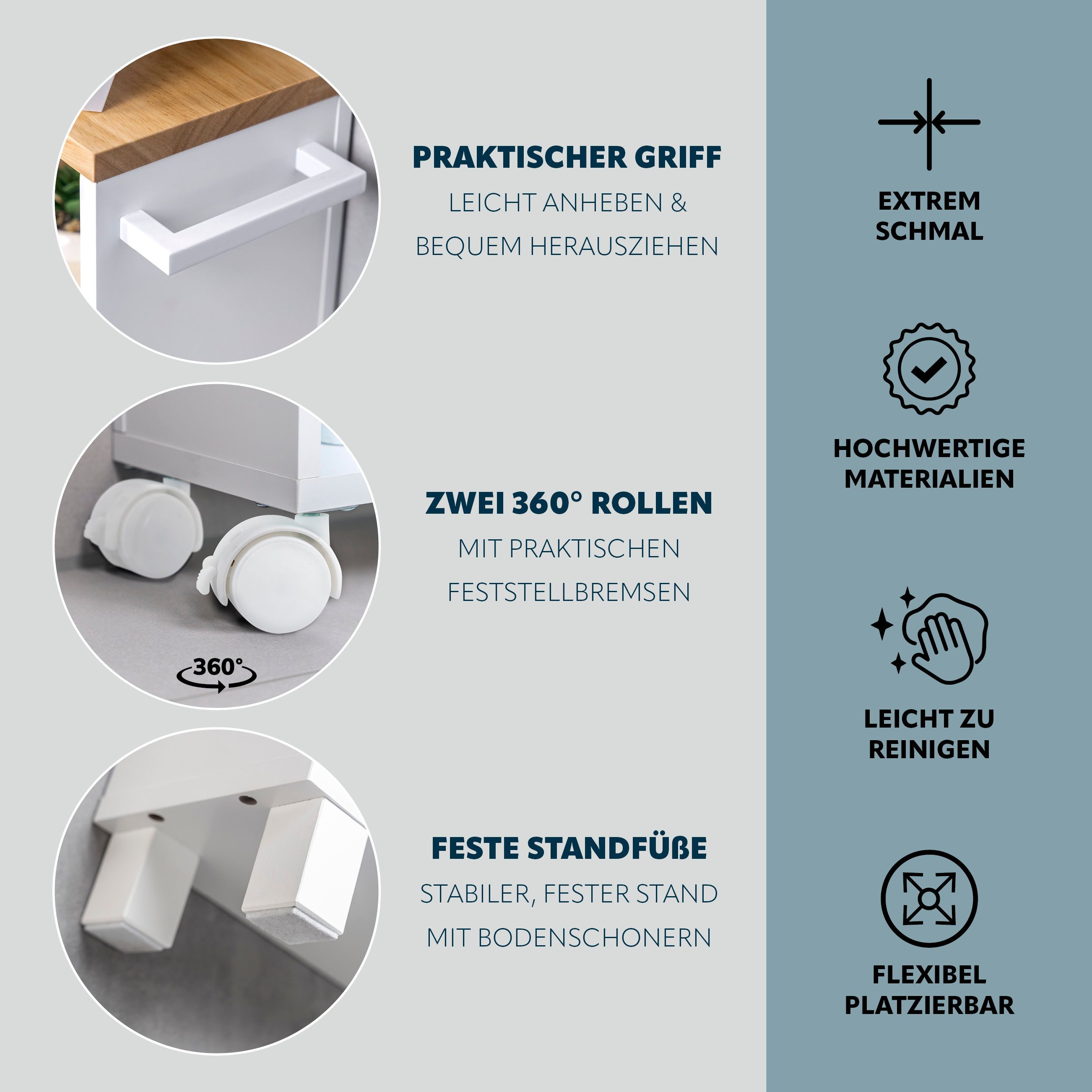 eluno Bad-Rollwagen, Küchen-Nischenwagen, Bad-Organizer mit 3 Ebenen aus Holz