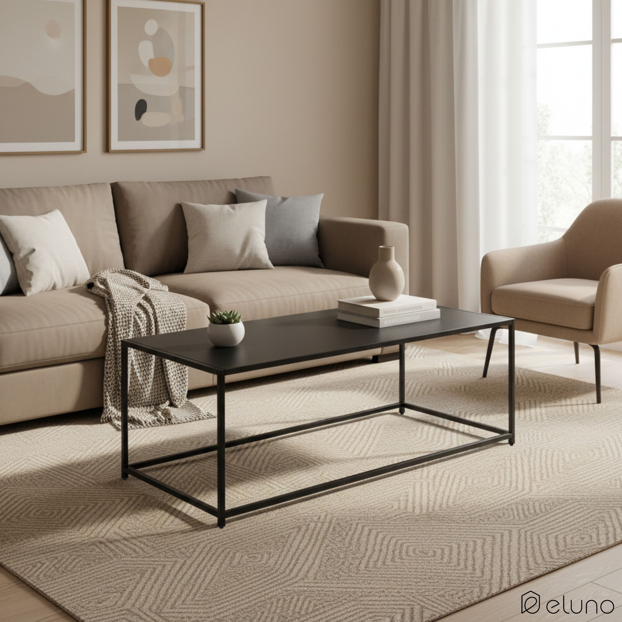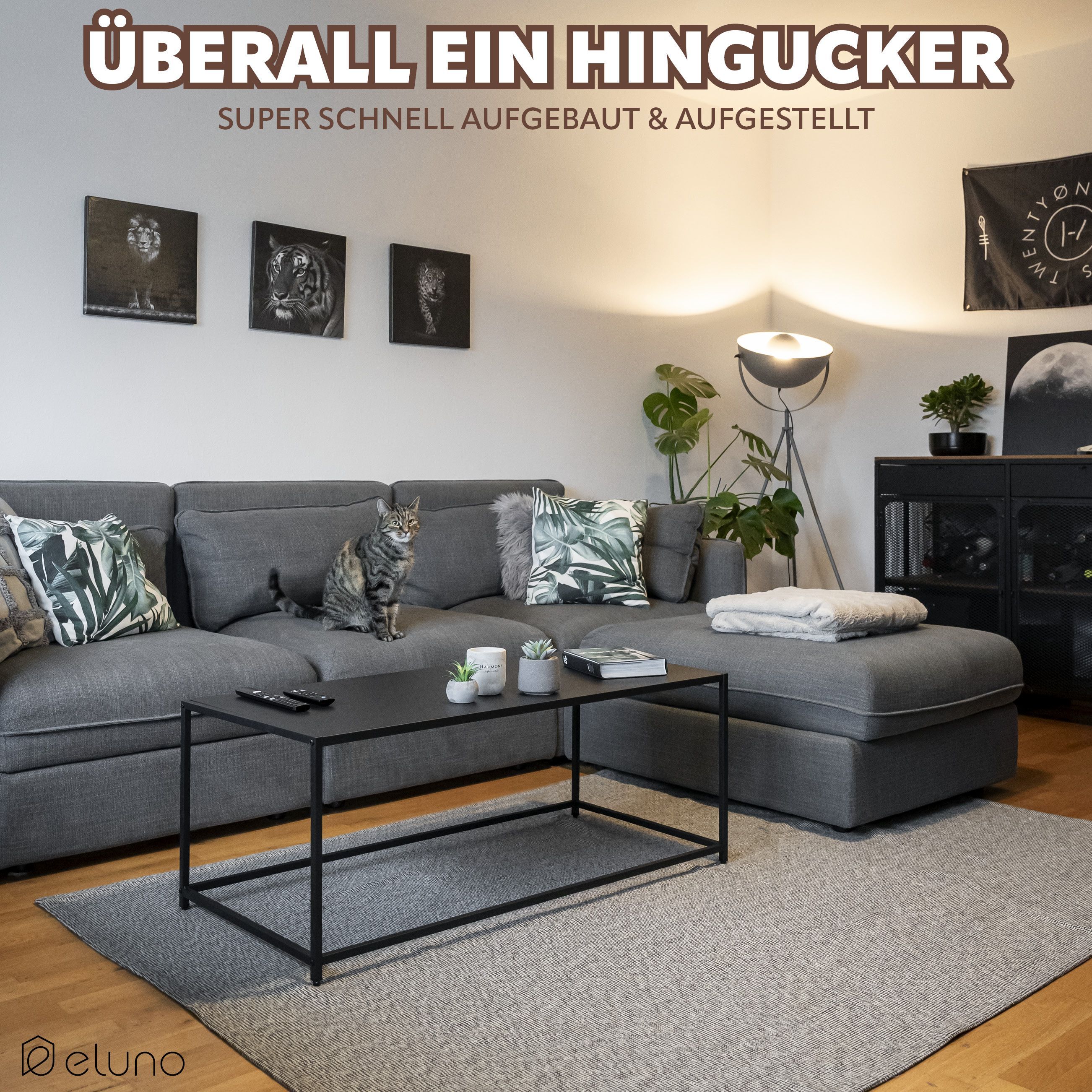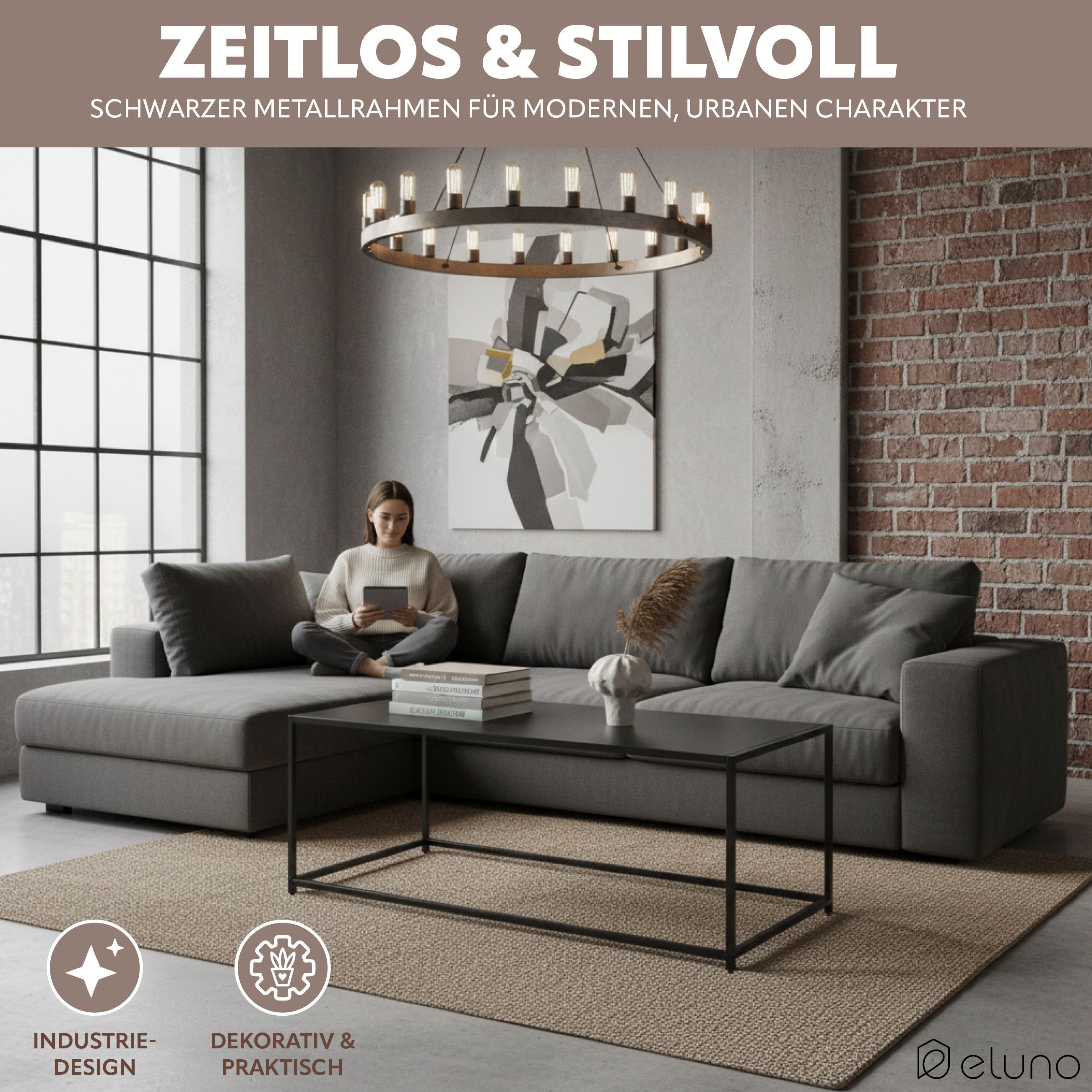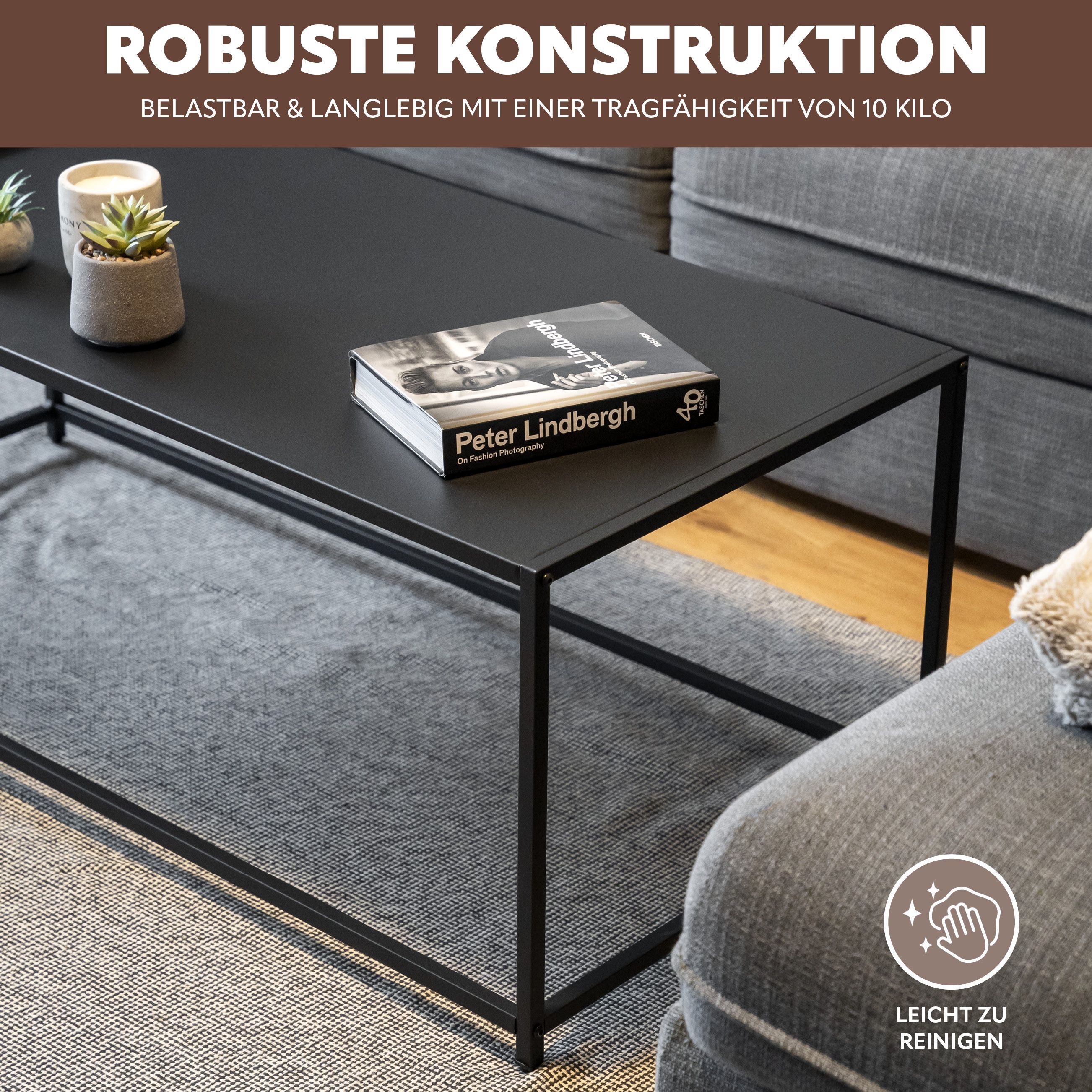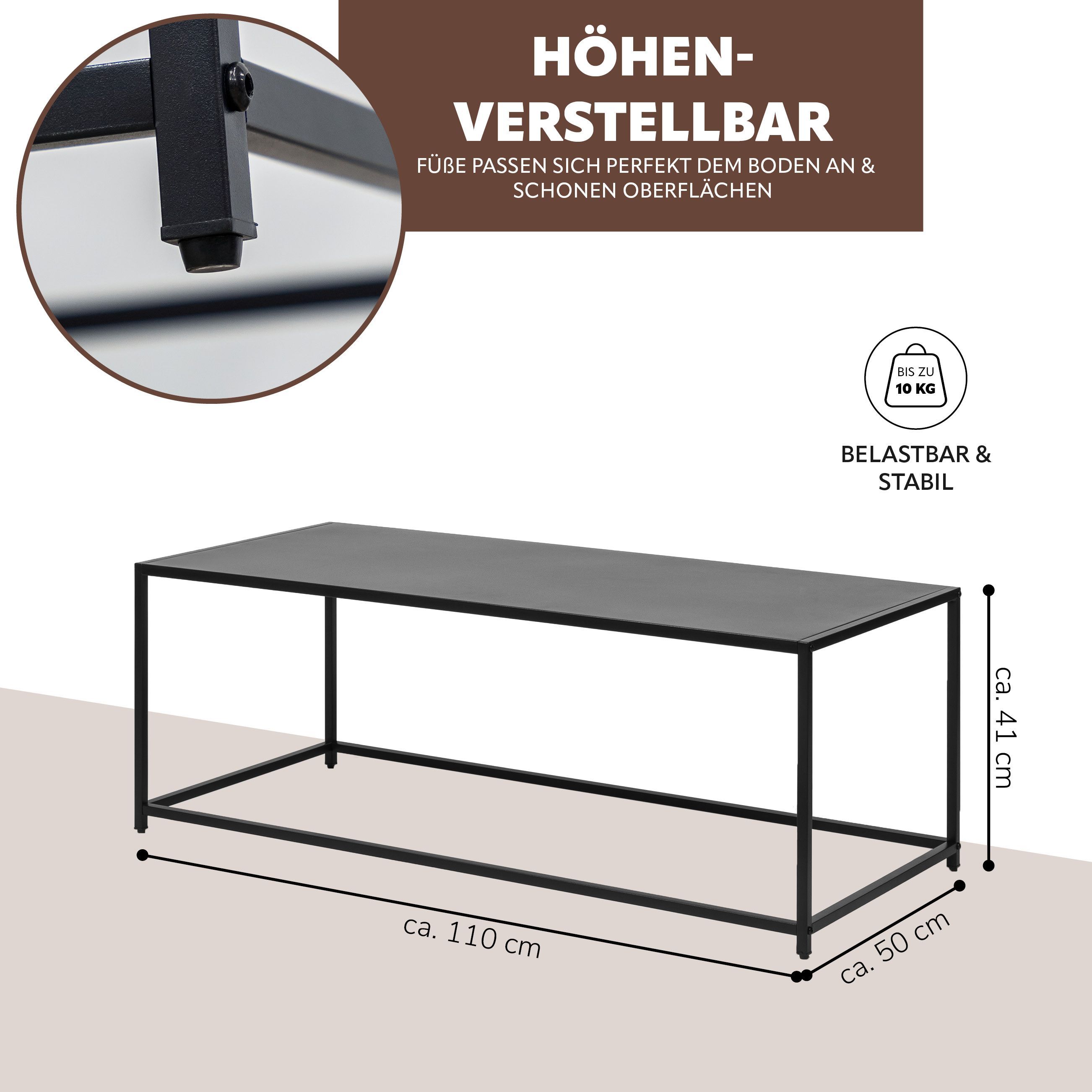 eluno Couchtisch im Industrie-Design aus schwarzem Metall 110 x 41 x 50 cm