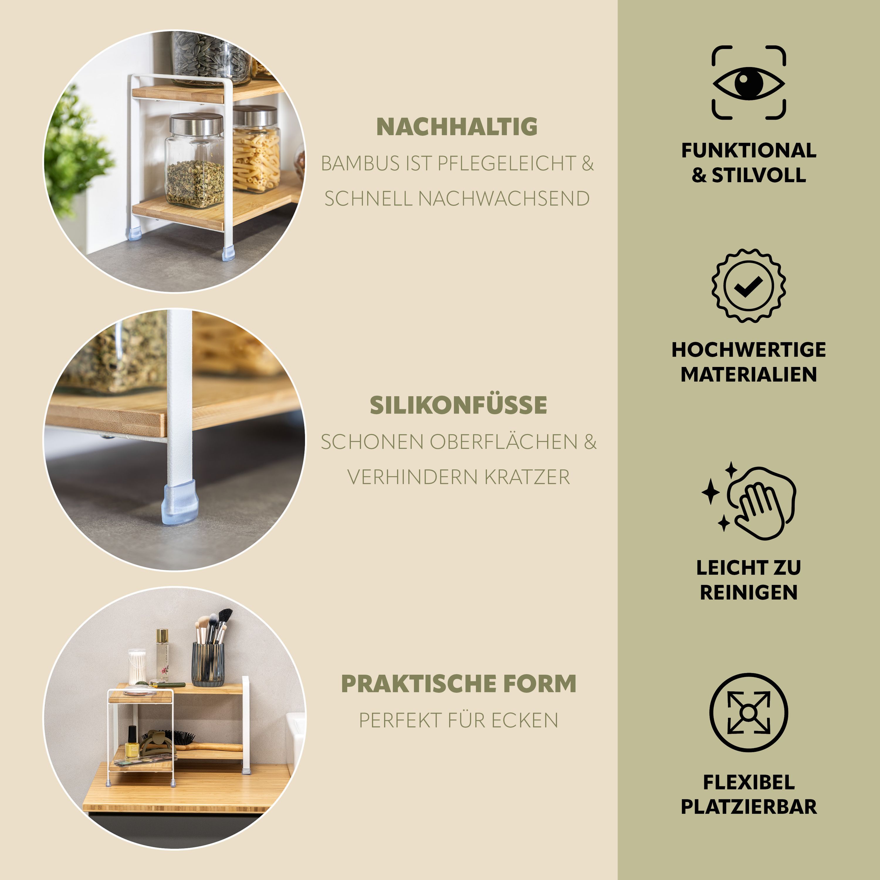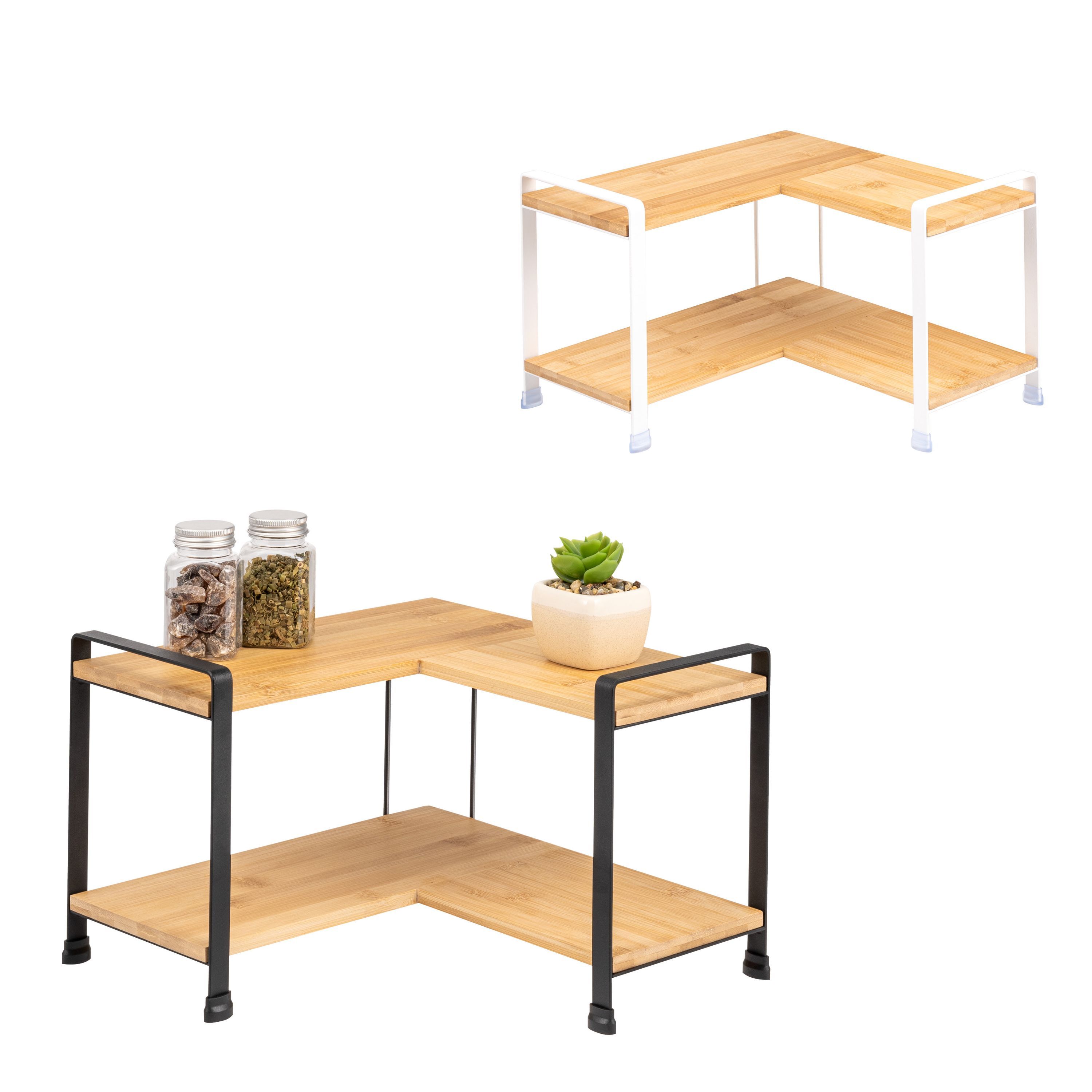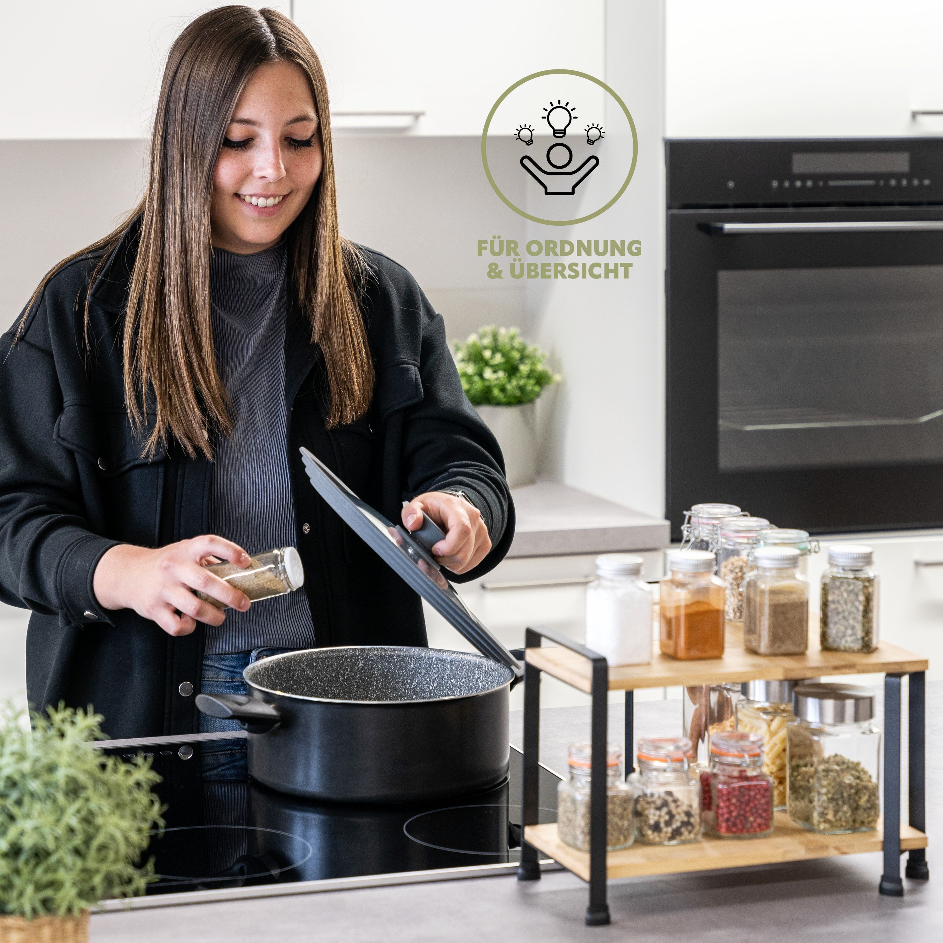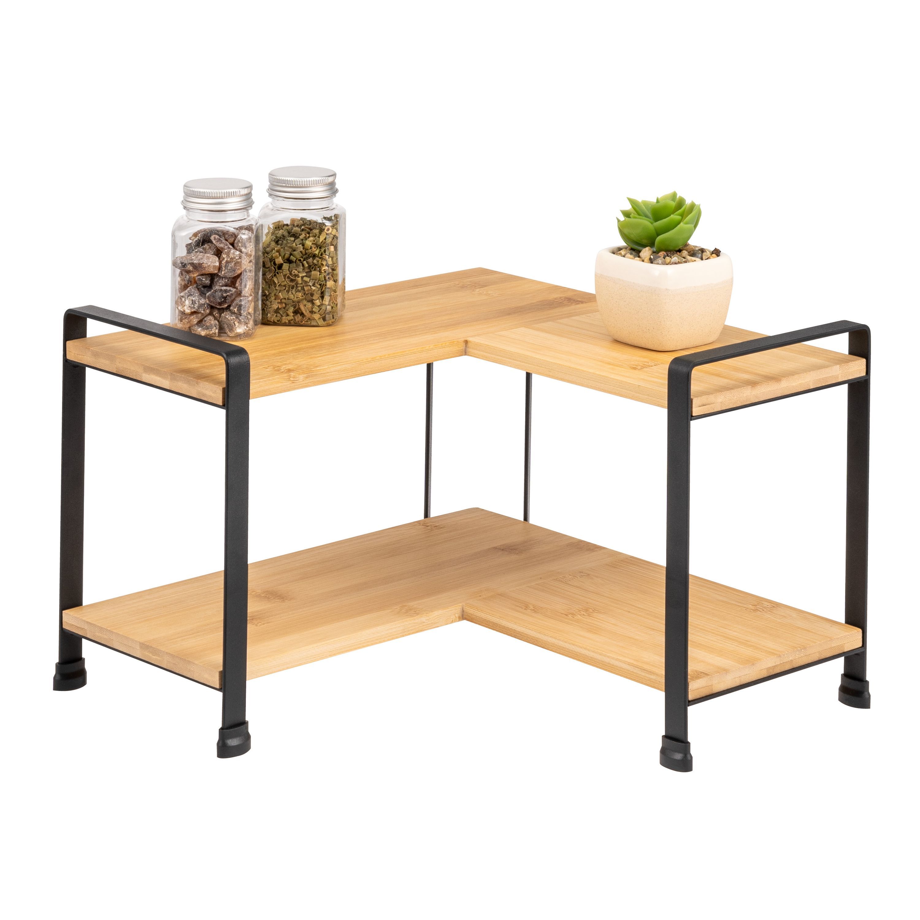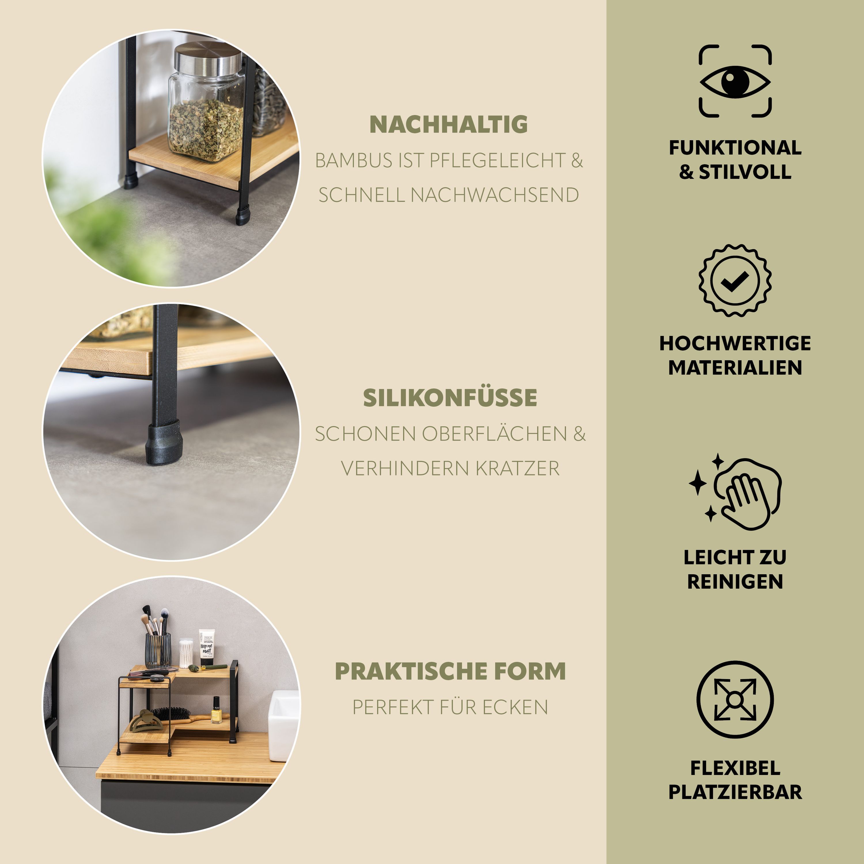 eluno Gewürzeckregal, Kücheneckregal aus Bambus und Metall