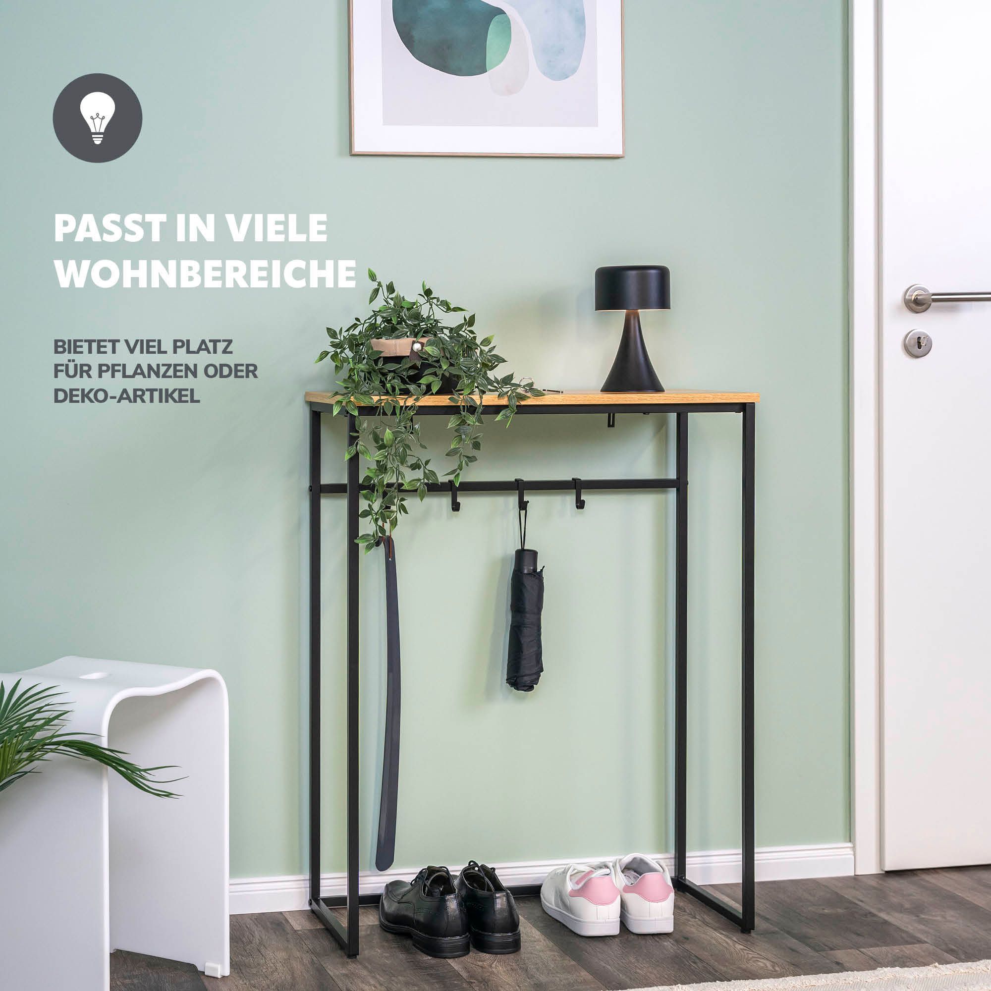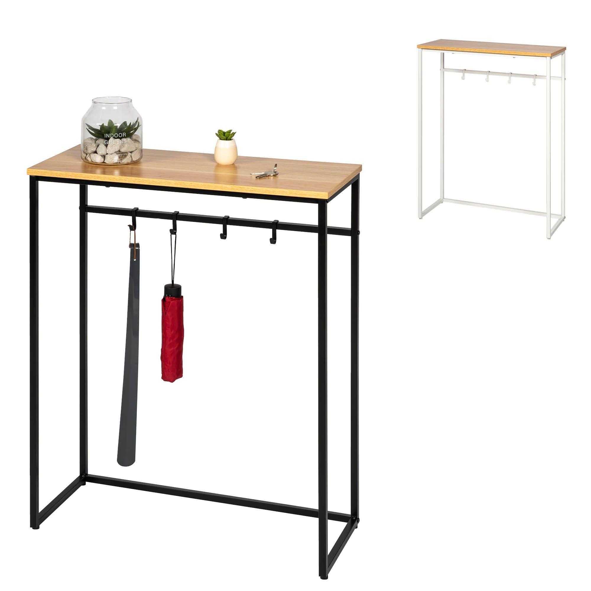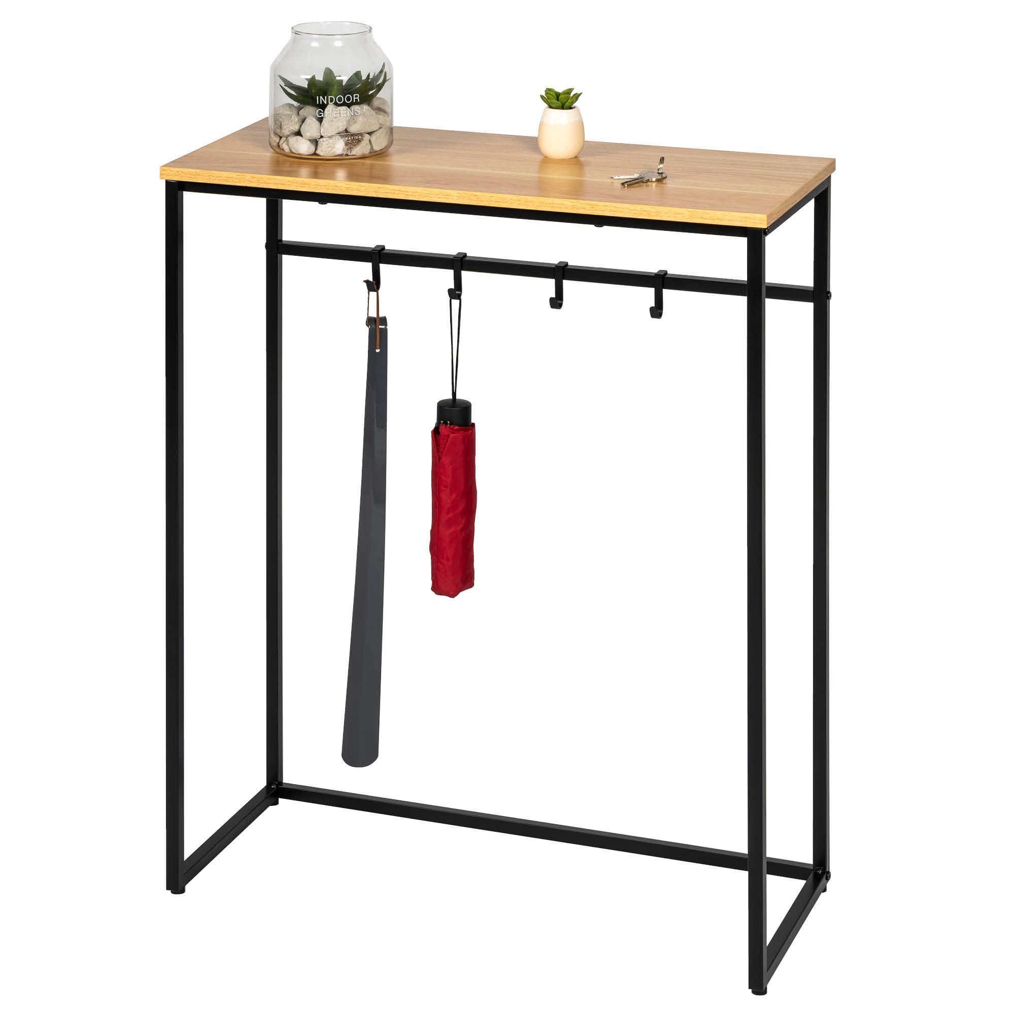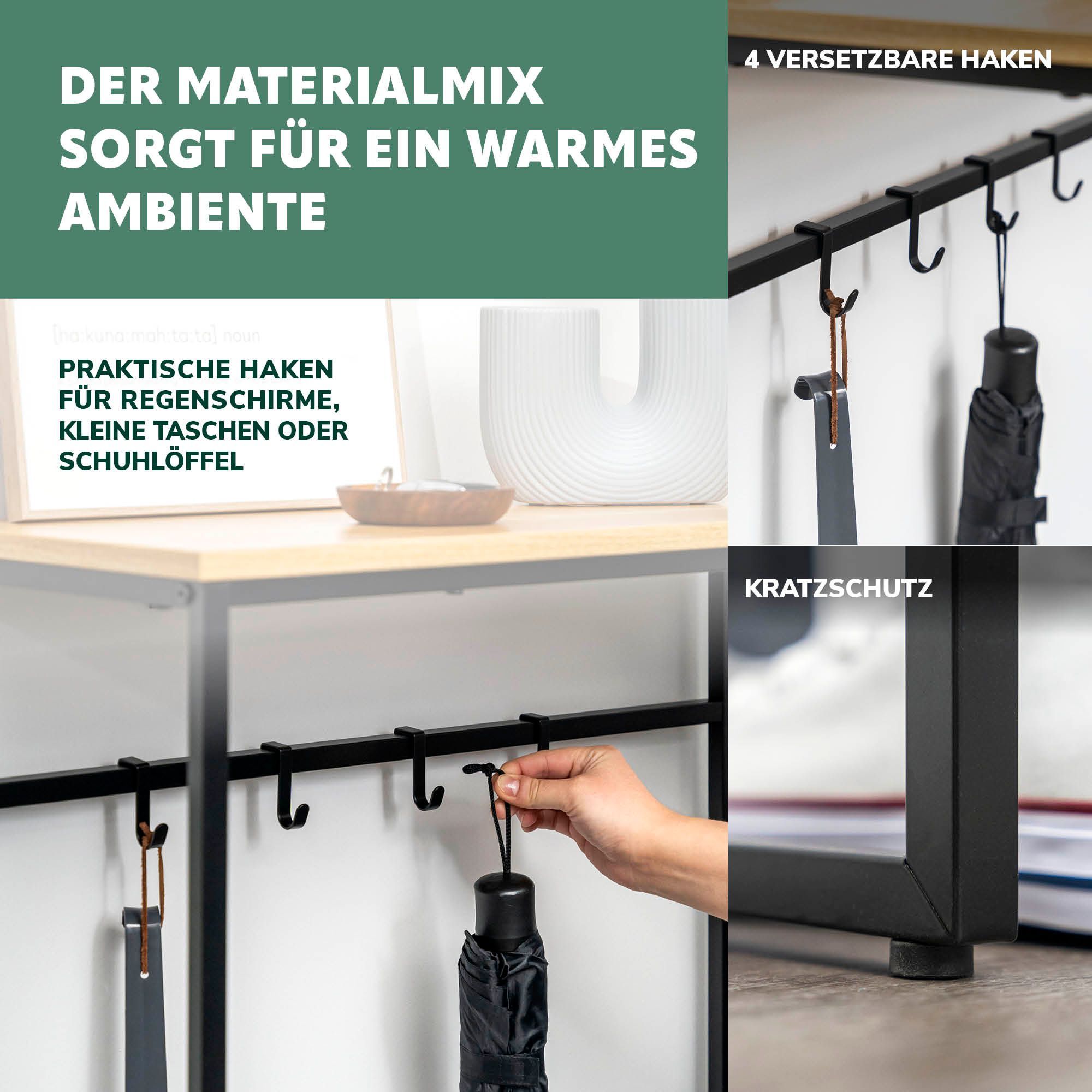 eluno Konsolentisch aus Metall mit 1 Holzablage, höhenverstellbare Füße, 4 Haken