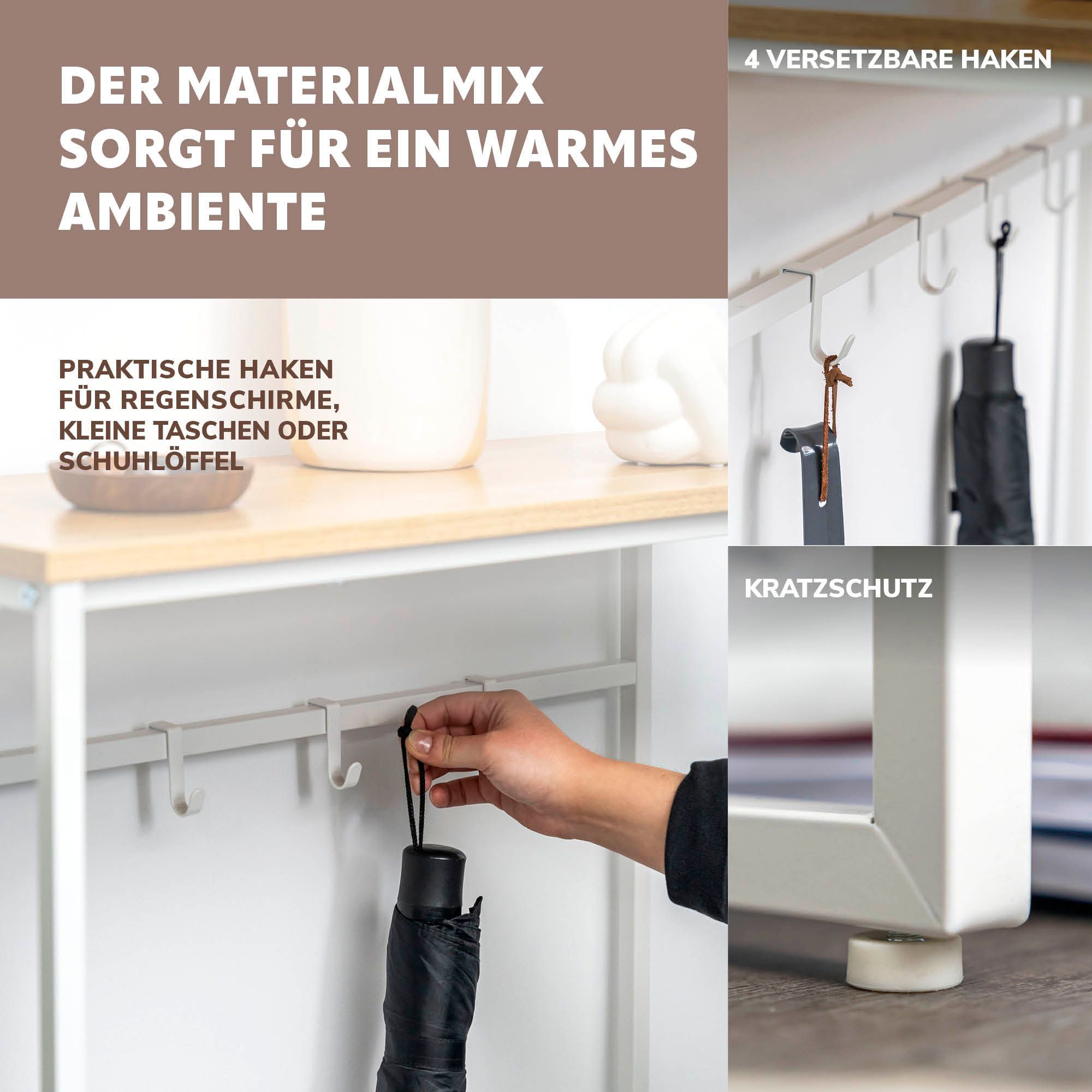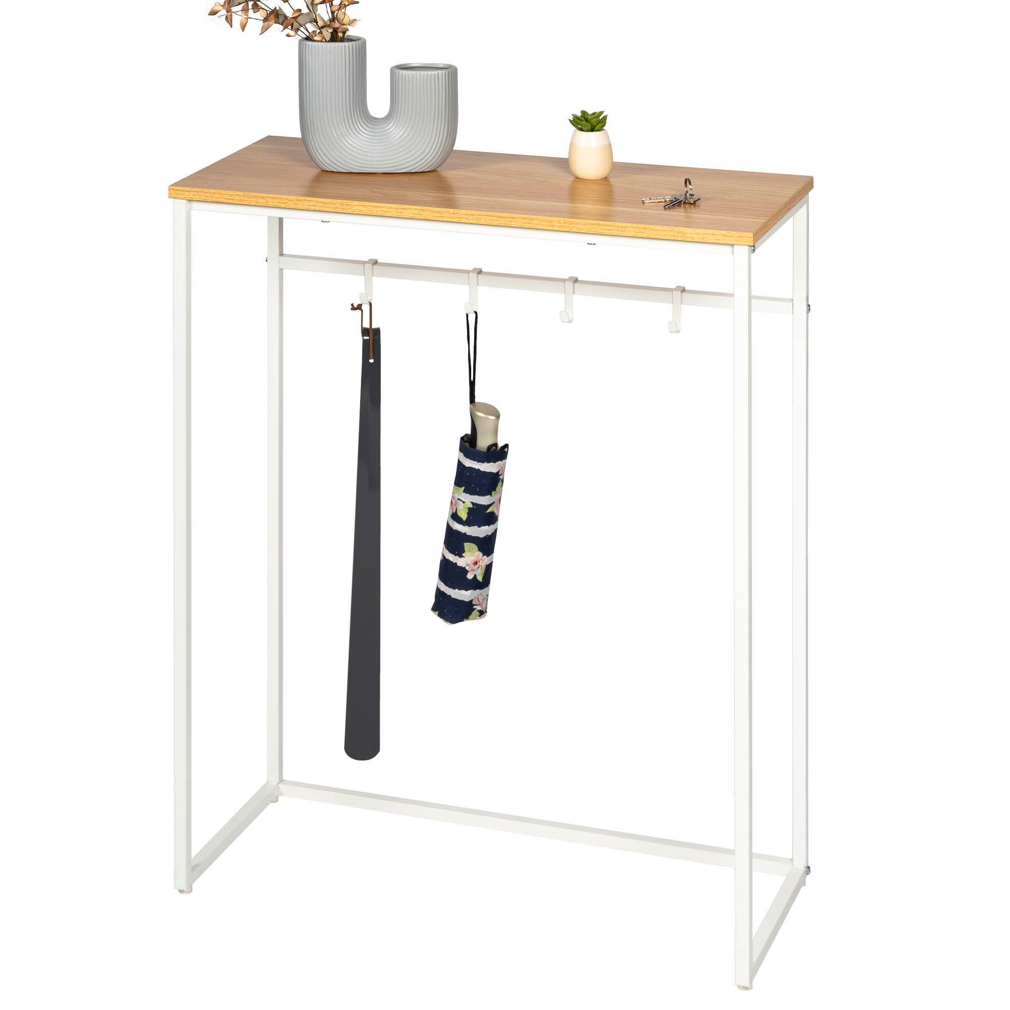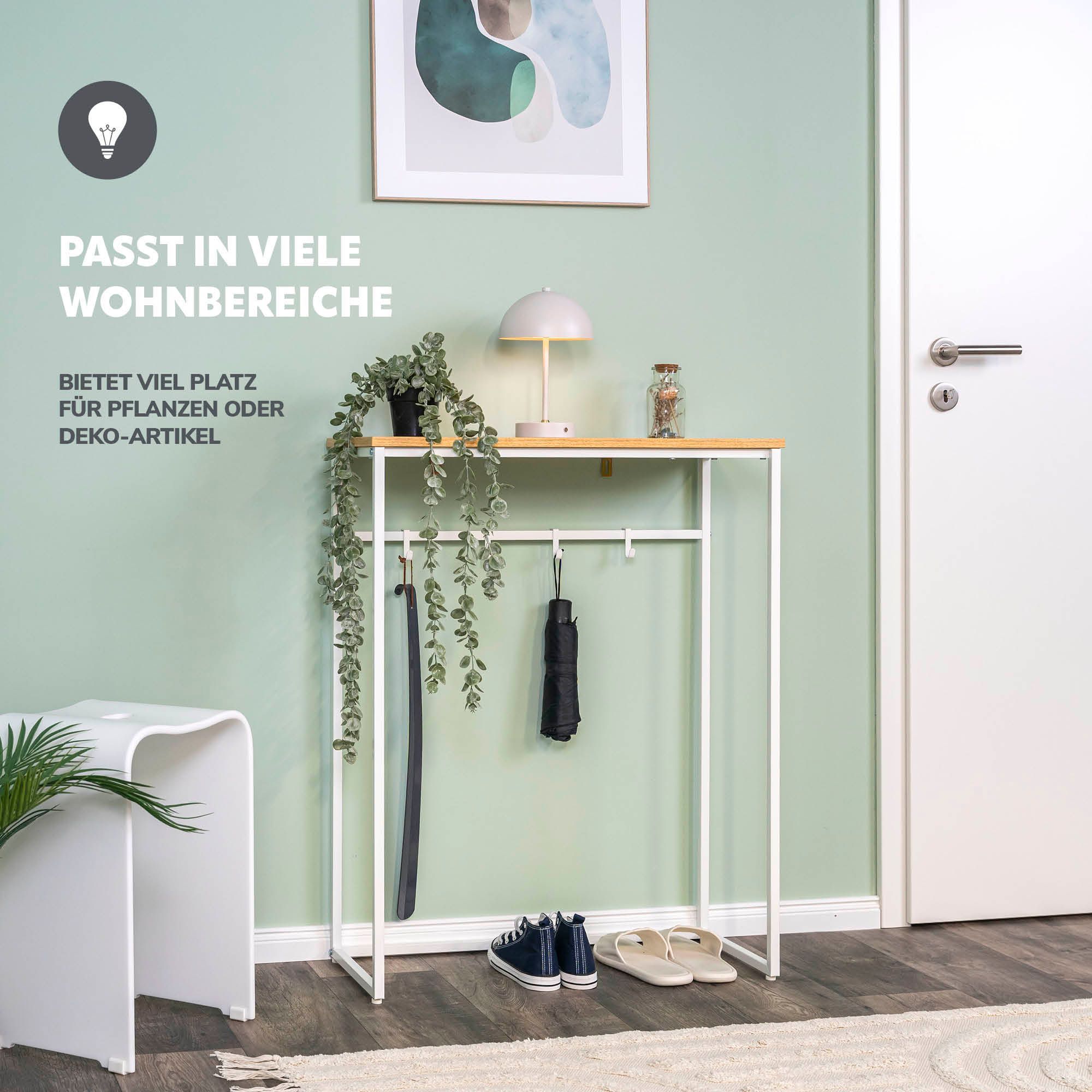 eluno Konsolentisch aus Metall mit 1 Holzablage, höhenverstellbare Füße, 4 Haken