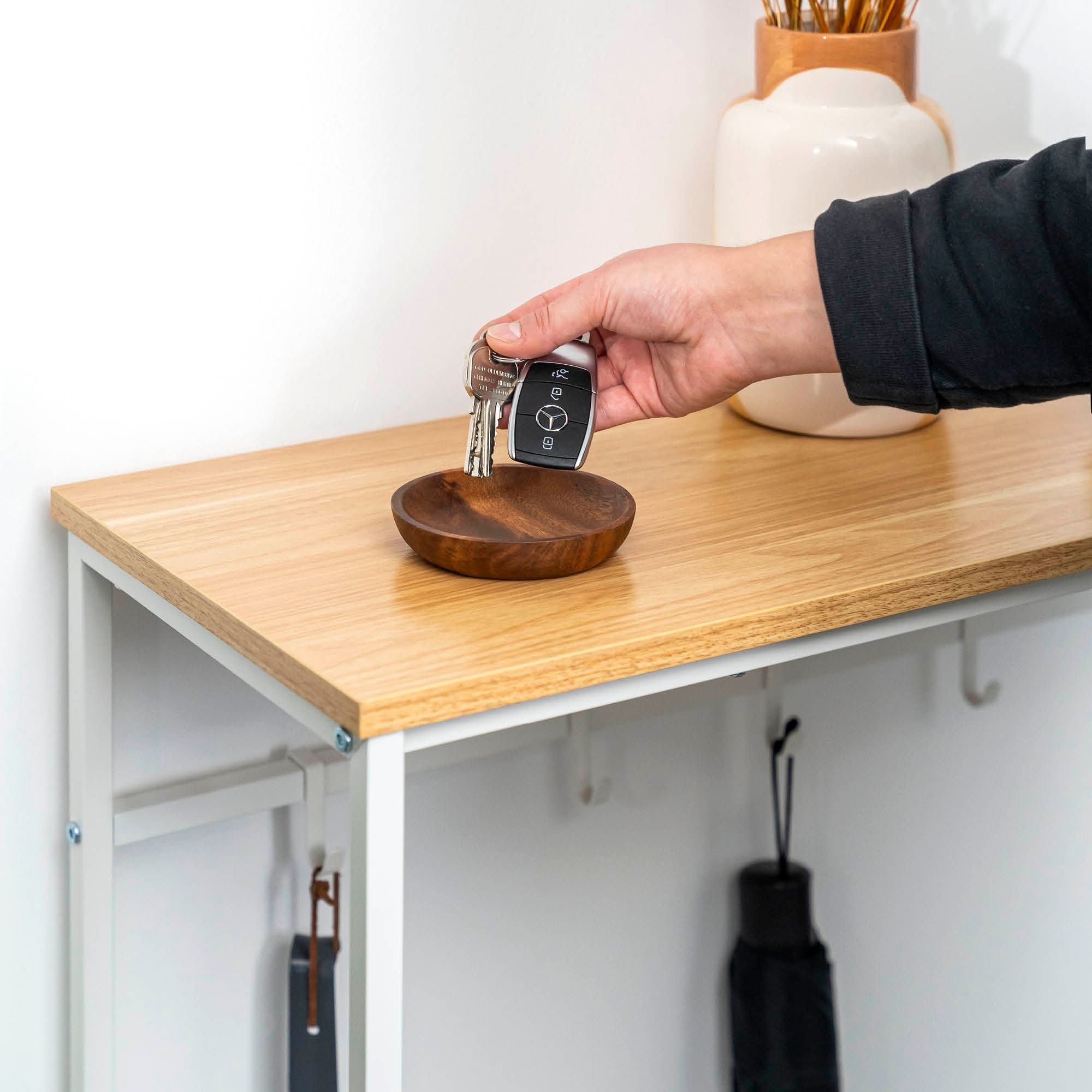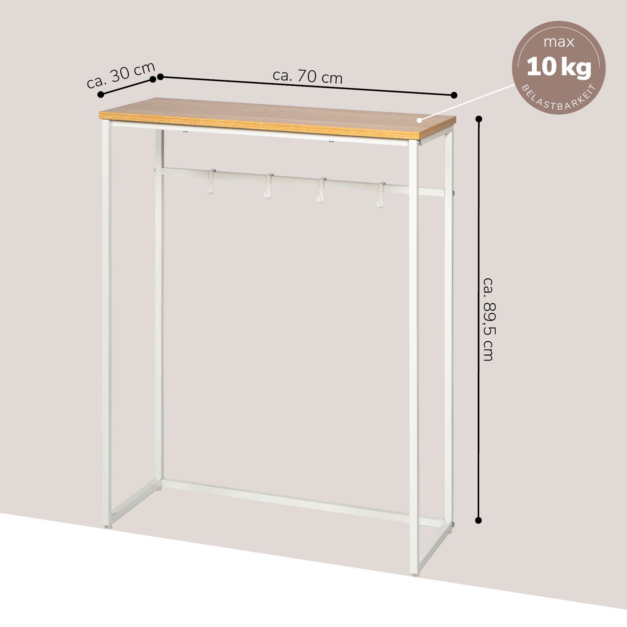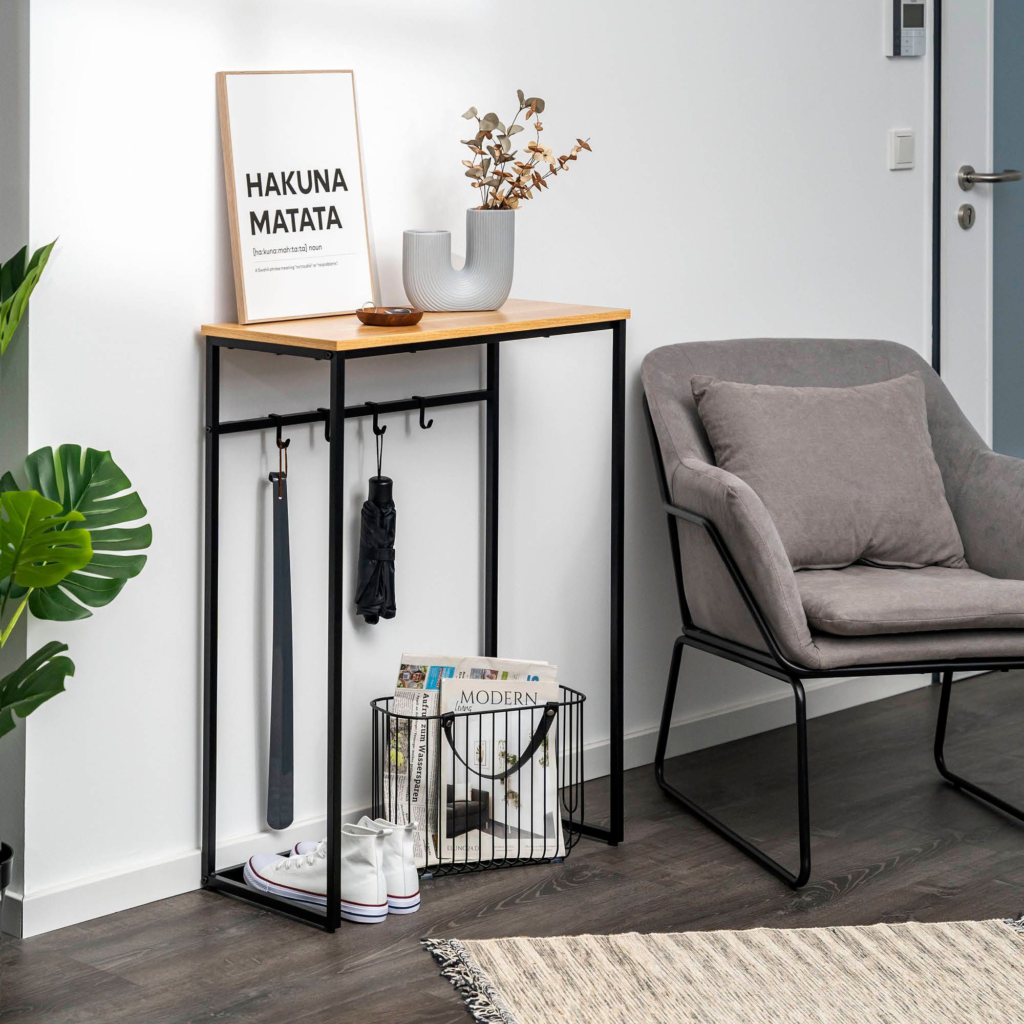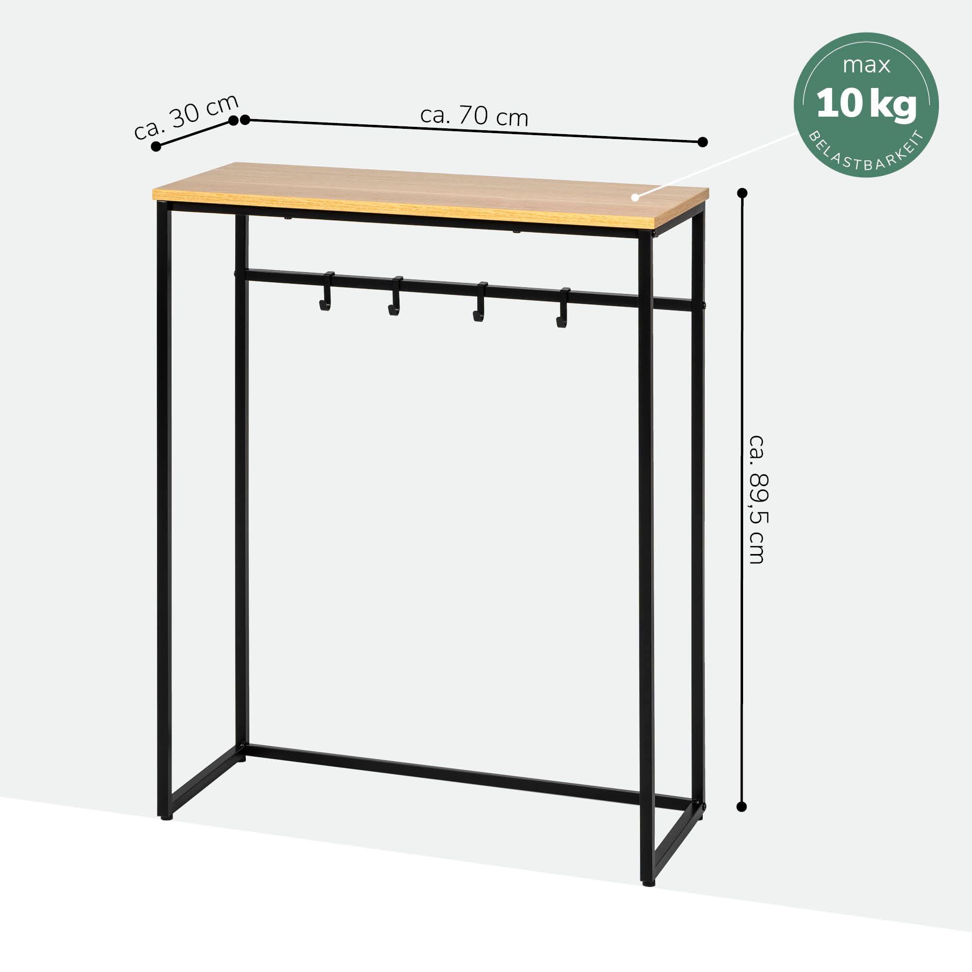 eluno Konsolentisch aus Metall mit 1 Holzablage, höhenverstellbare Füße, 4 Haken