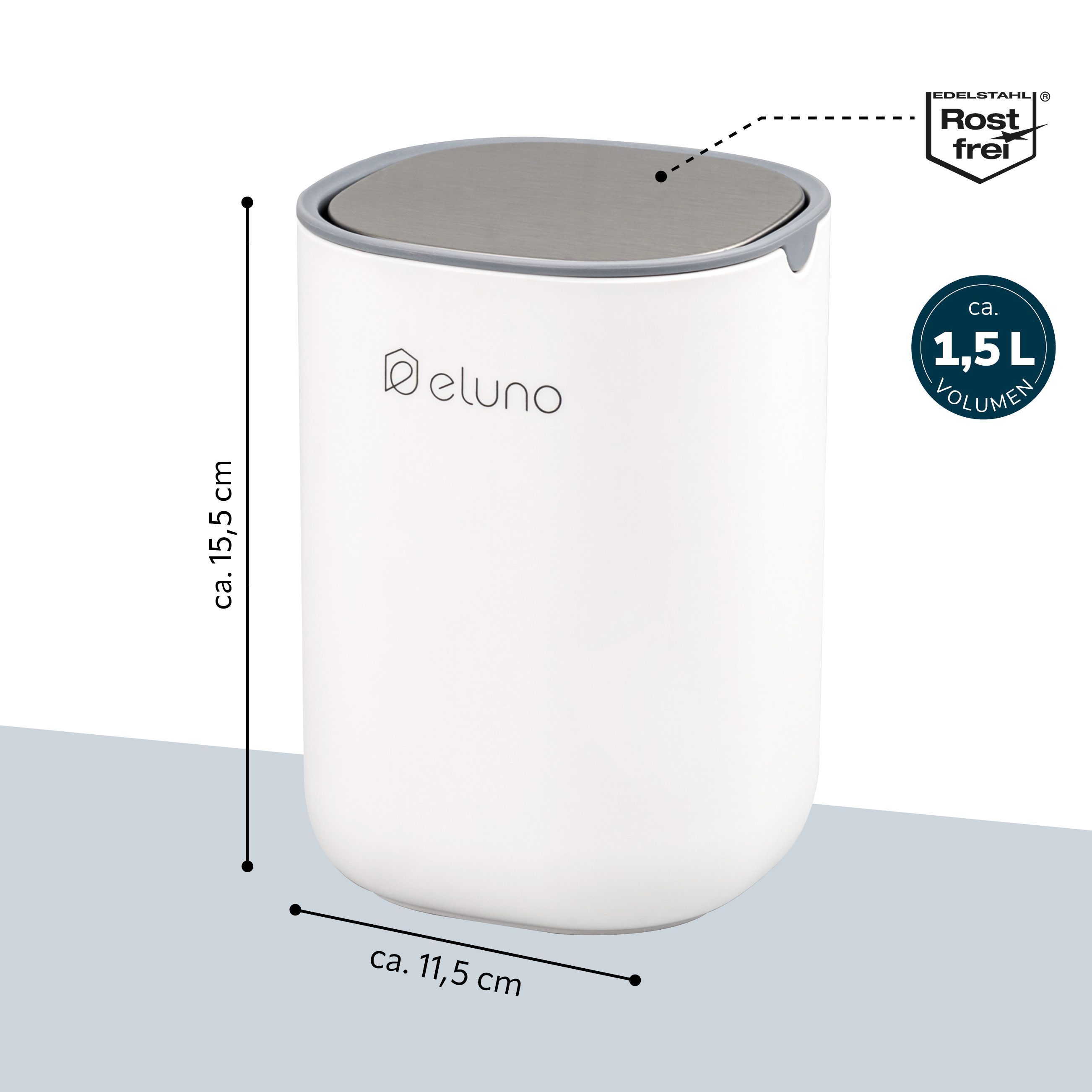 eluno Kosmetikeimer EDOLO mit Schwingdeckel - 1,5 Liter aus Kunststoff