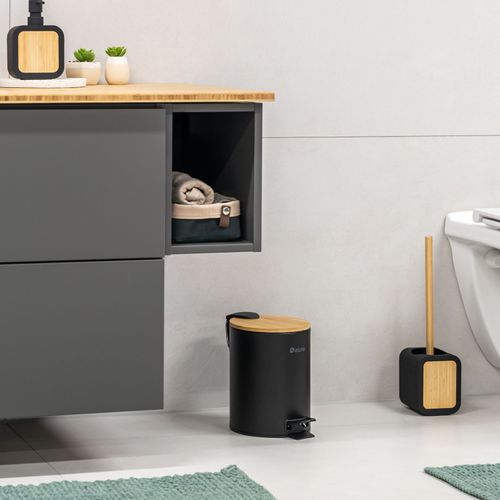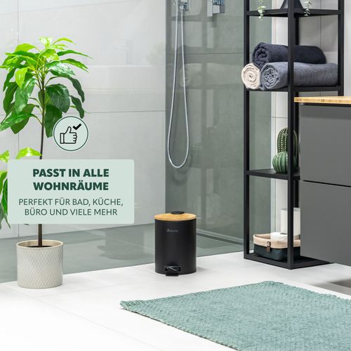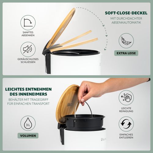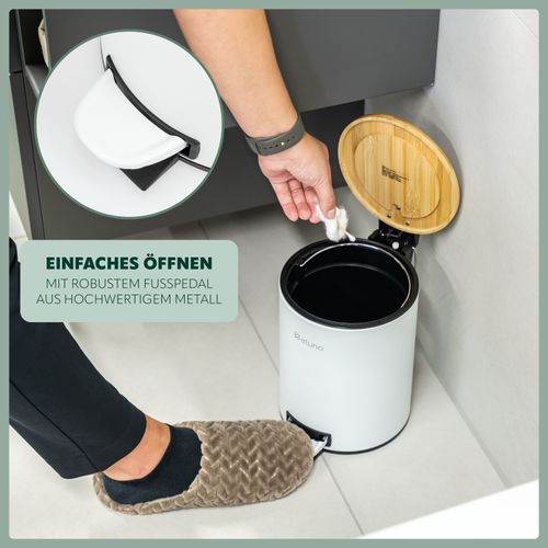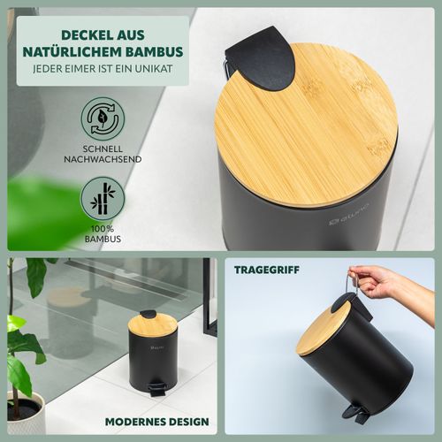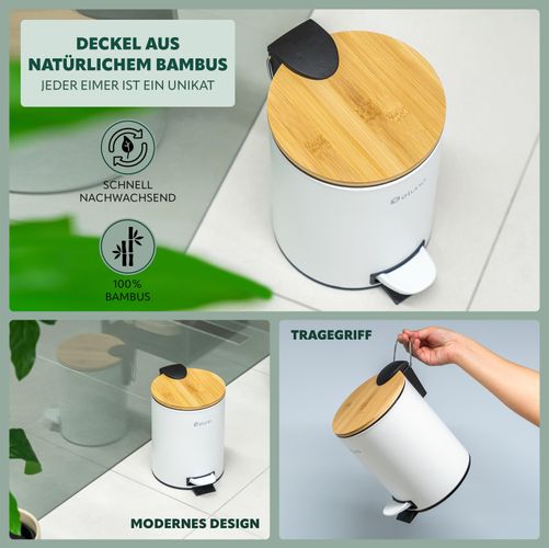 eluno Kosmetikeimer, Treteimer 3 Liter aus Bambus und Metall