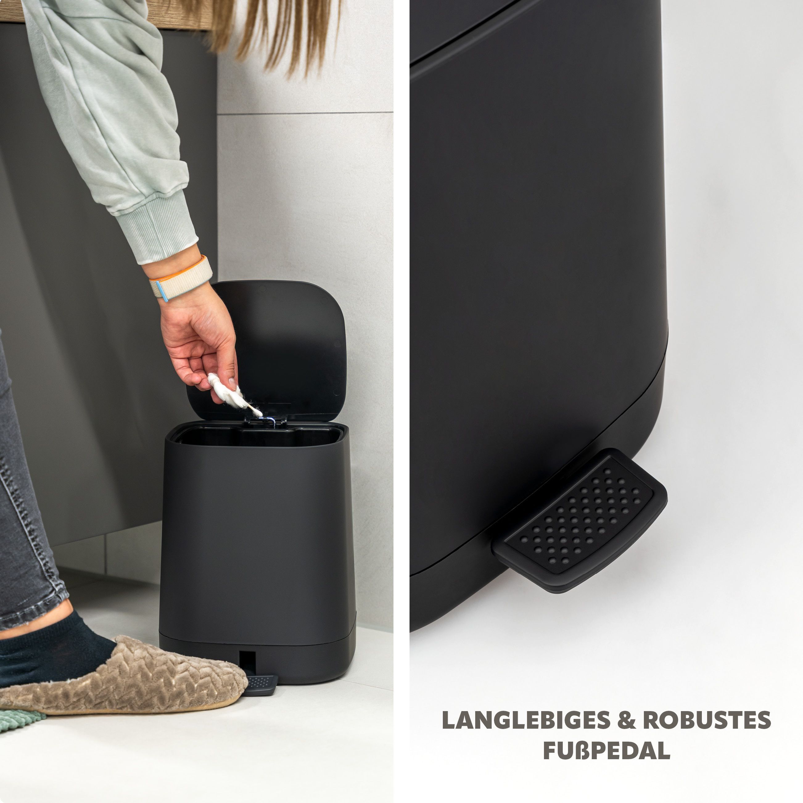 eluno Kosmetikeimer VALONA, Treteimer 4,5 Liter Liter aus Kunststoff in Schwarz
