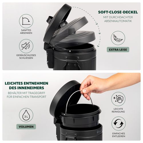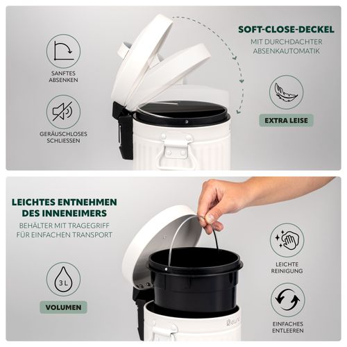 eluno Kosmetikeimer Vintage, Treteimer 3 Liter aus Metall