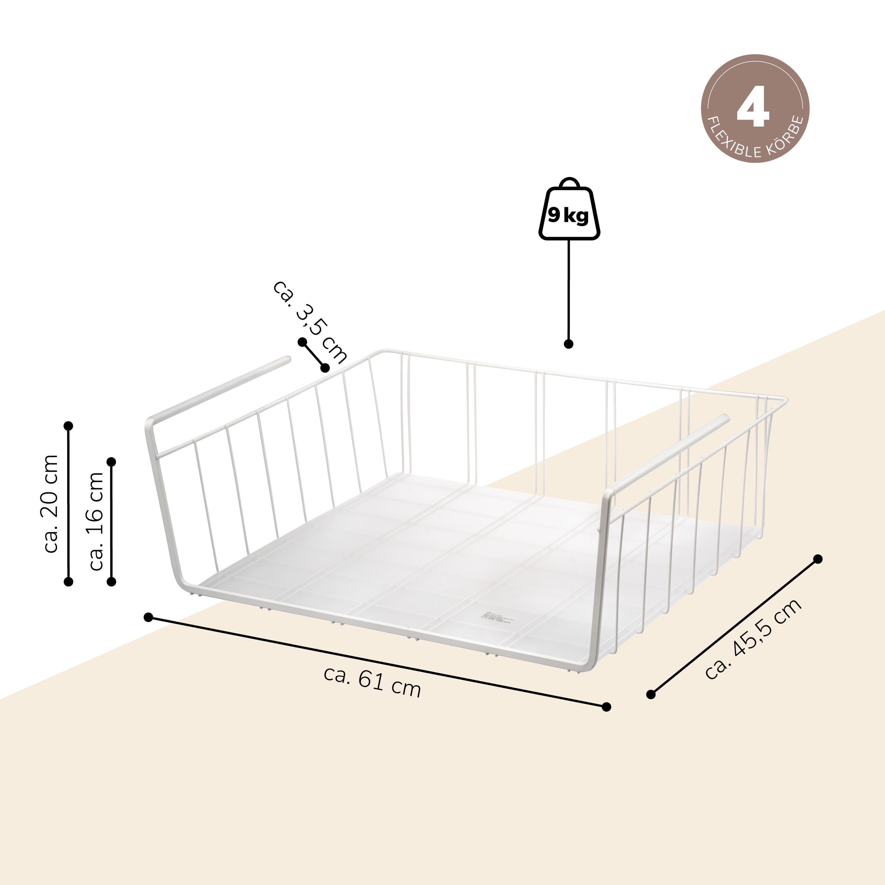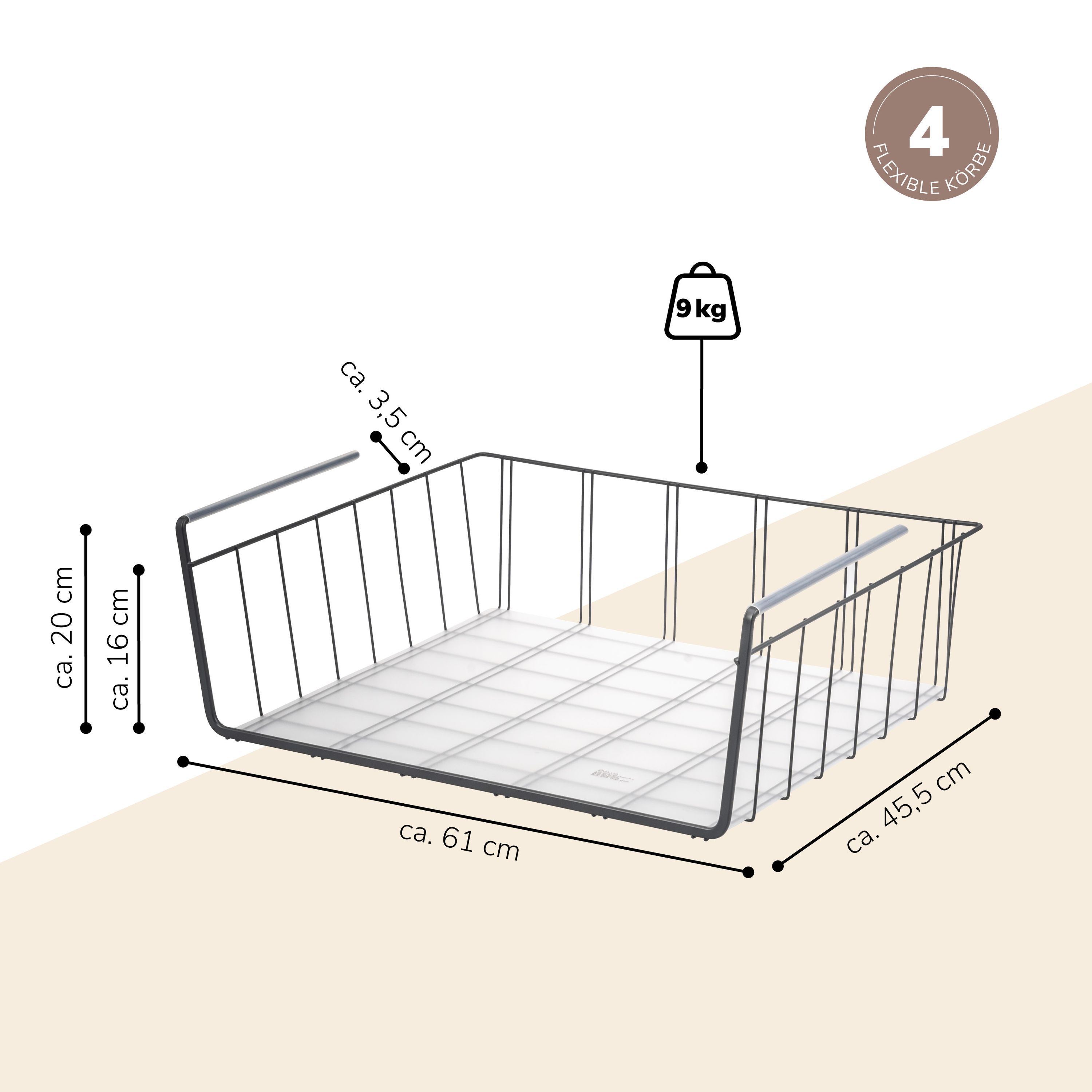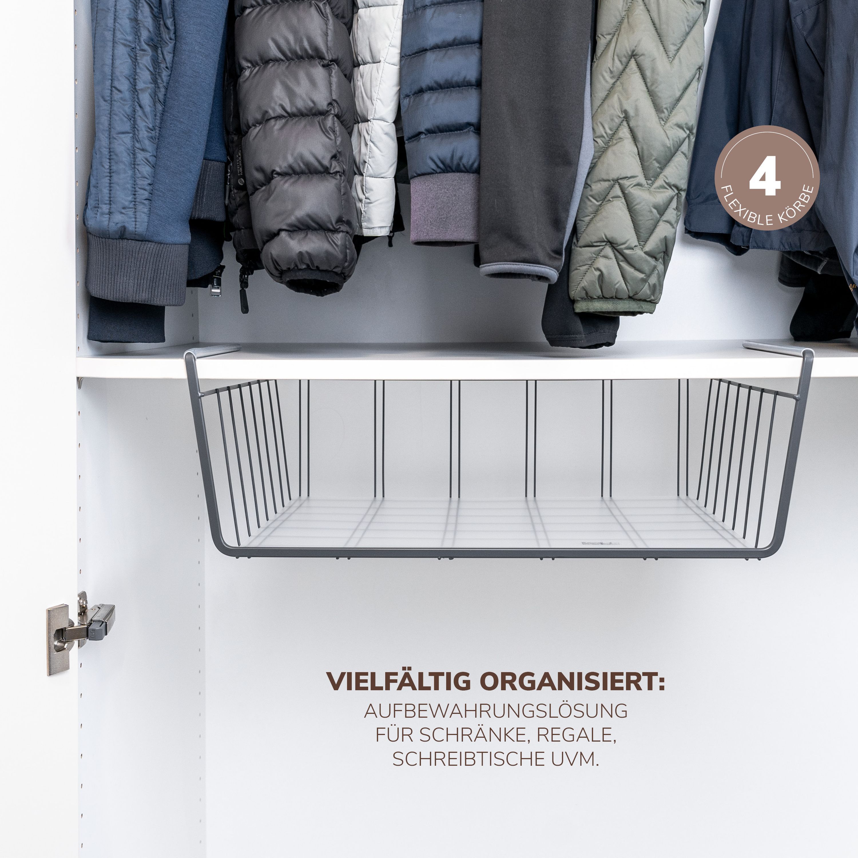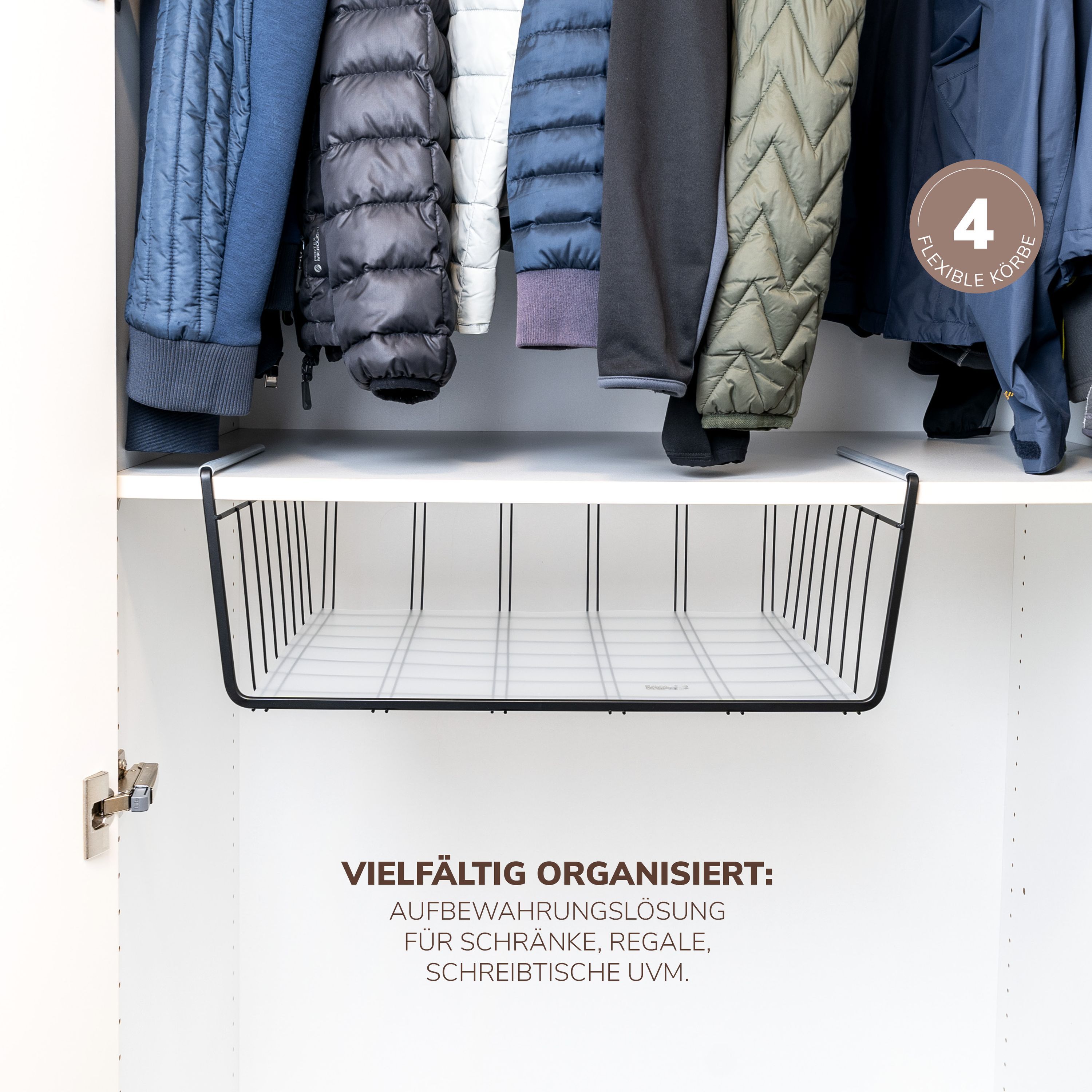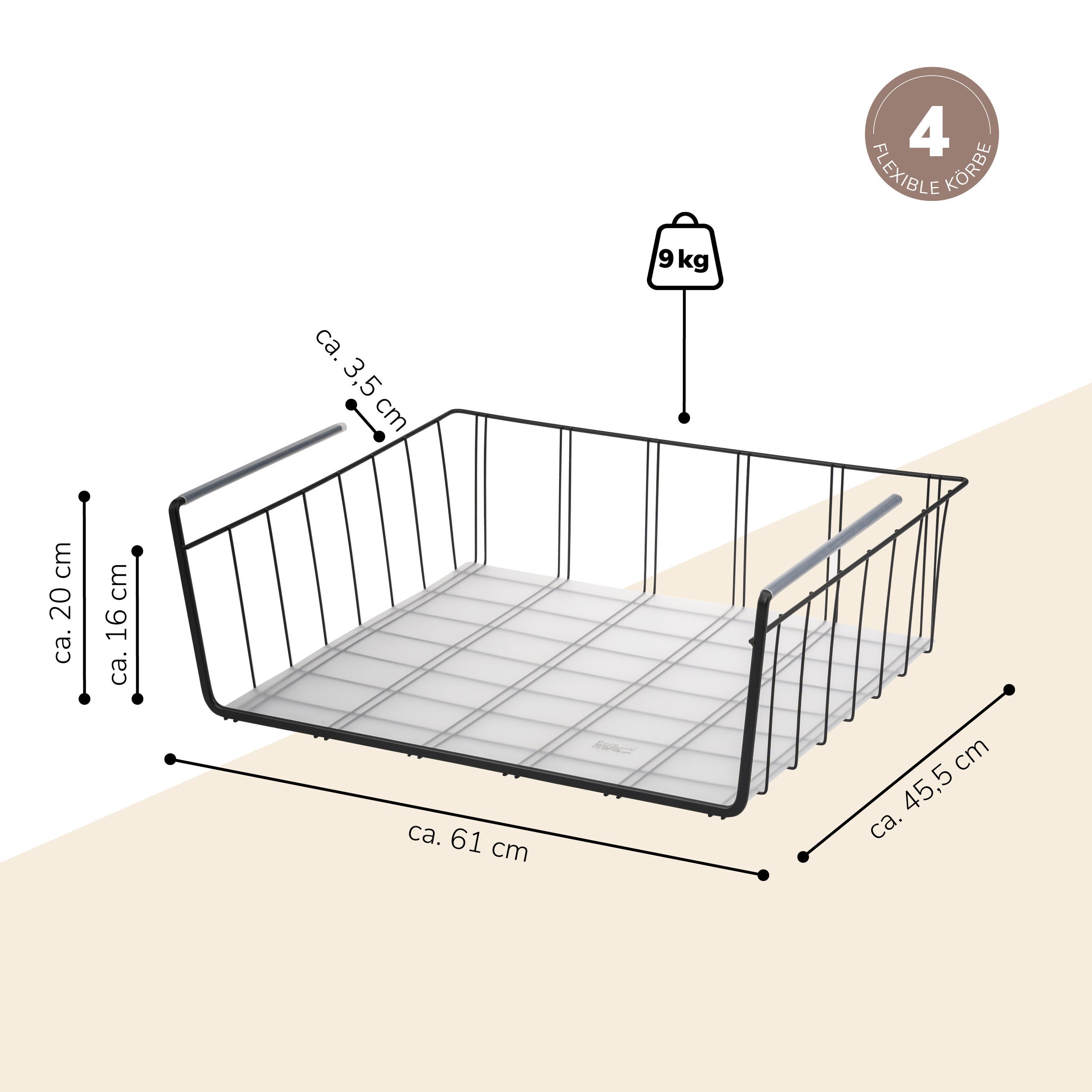 eluno Maxi-Schrankkörbe 4er Set inklusive Einlegeböden und Kratzschutz