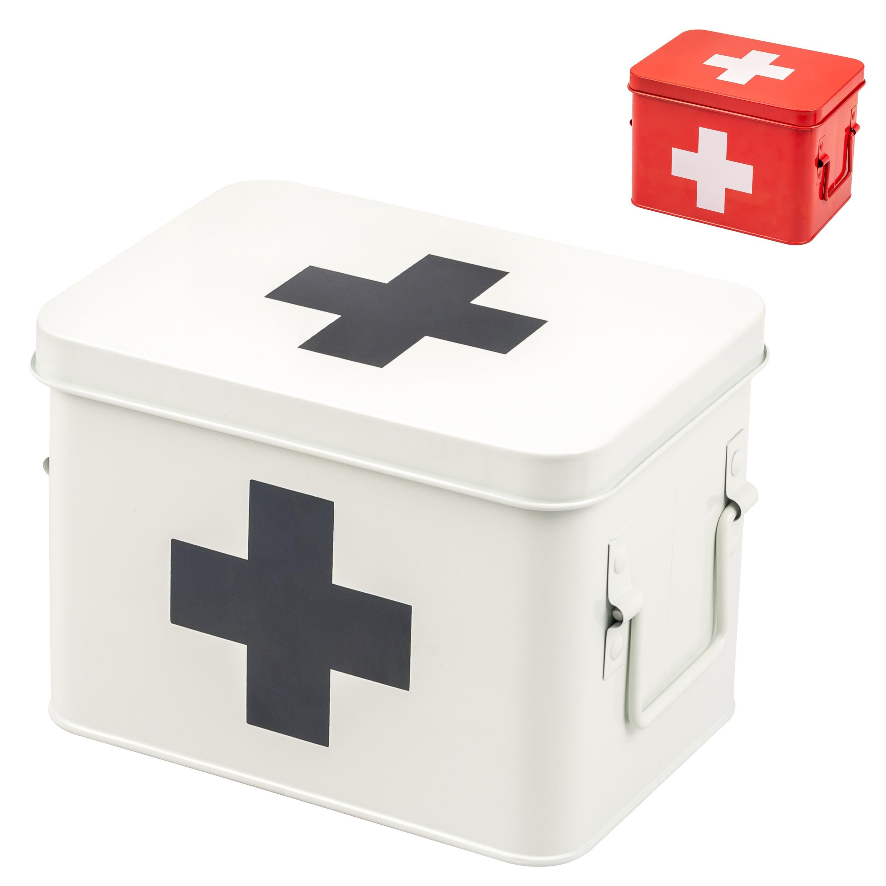 eluno Medizinbox, Erste-Hilfe-Kasten mit Tablett und 4 Fächern, Metall