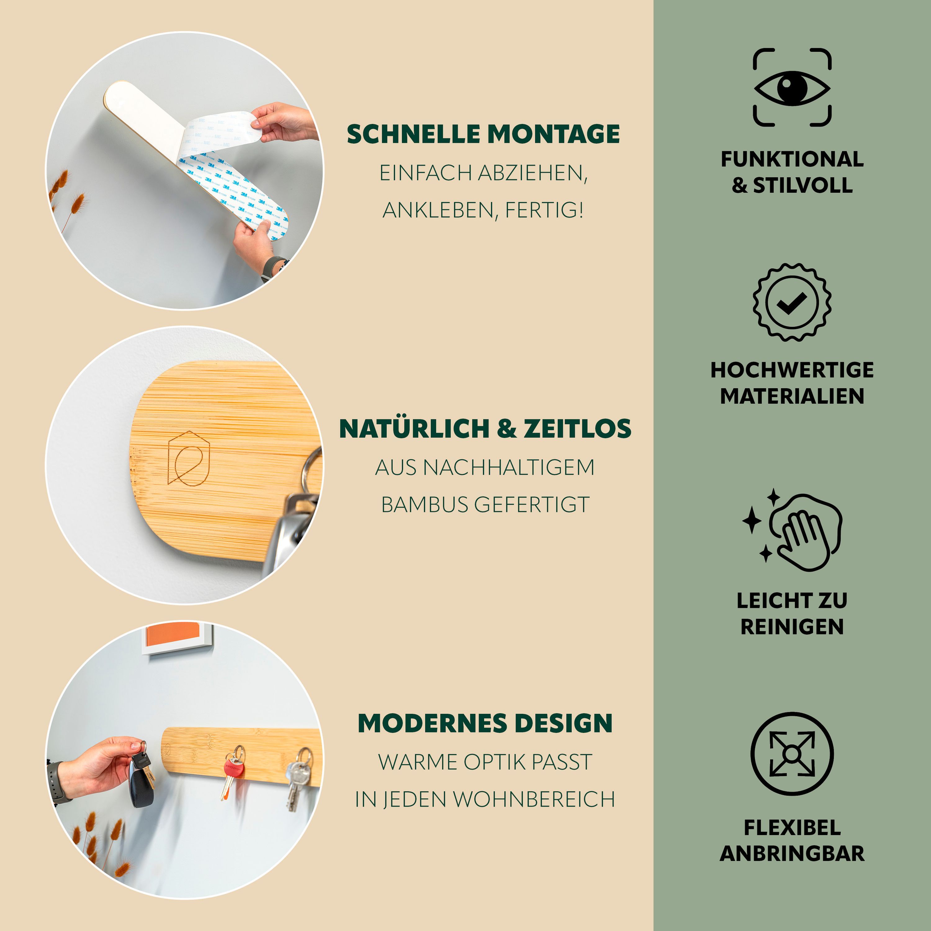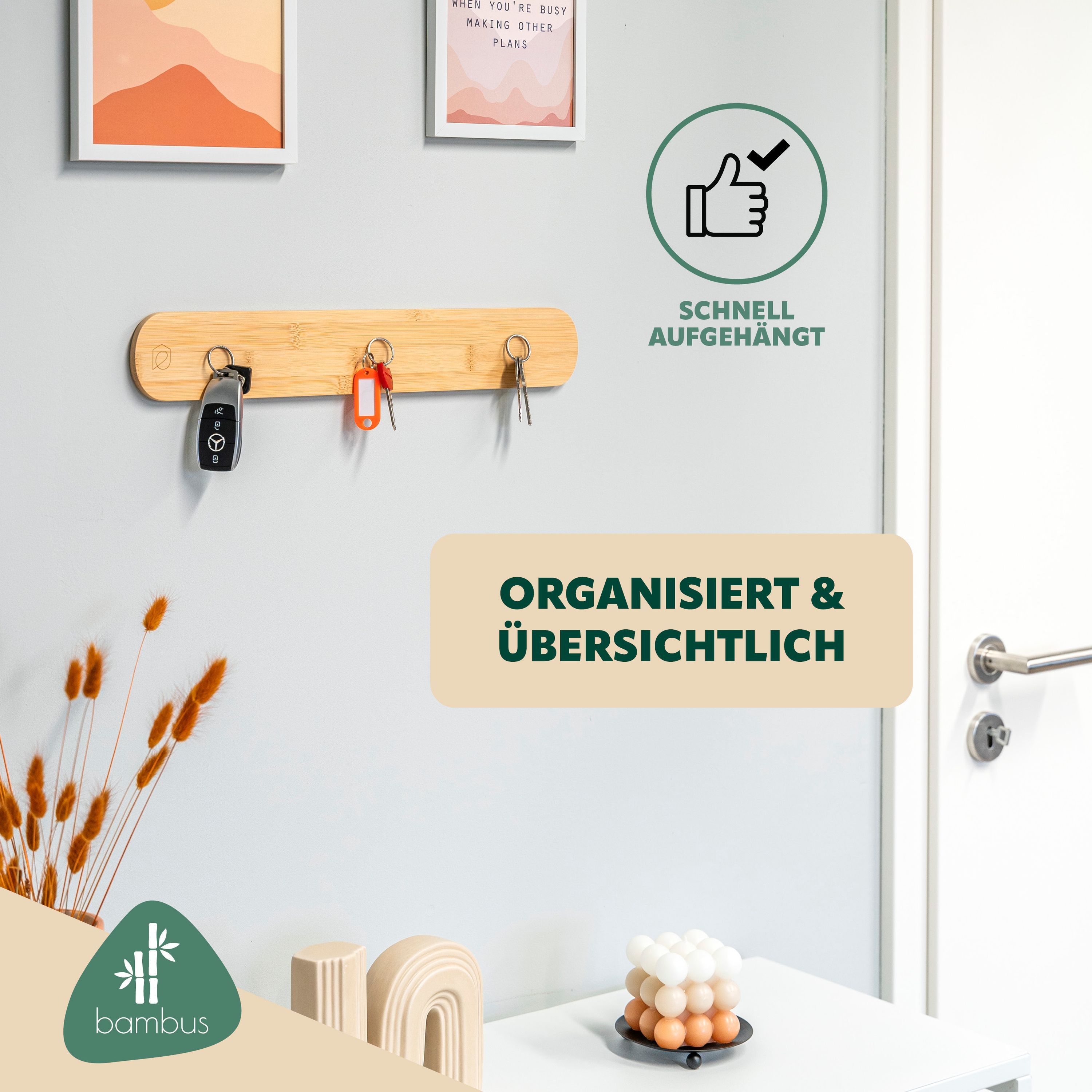 eluno Schlüsselbrett, magnetische Schlüsselleiste aus Bambus