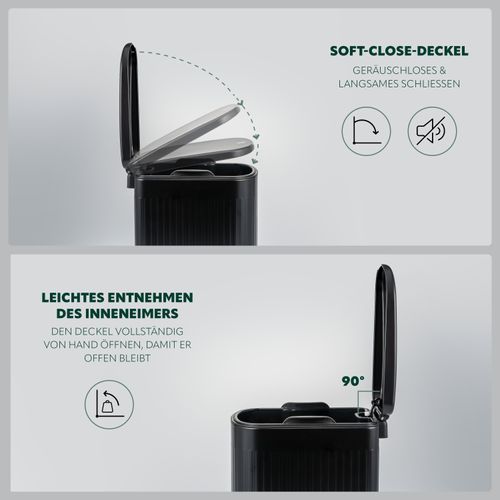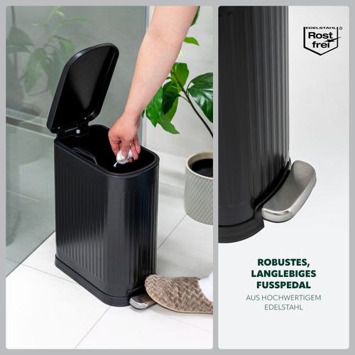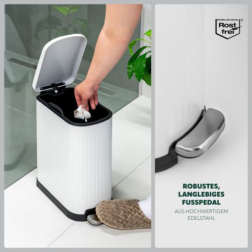 eluno schmaler Abfalleimer, Treteimer, 10 Liter Fassungsvermögen