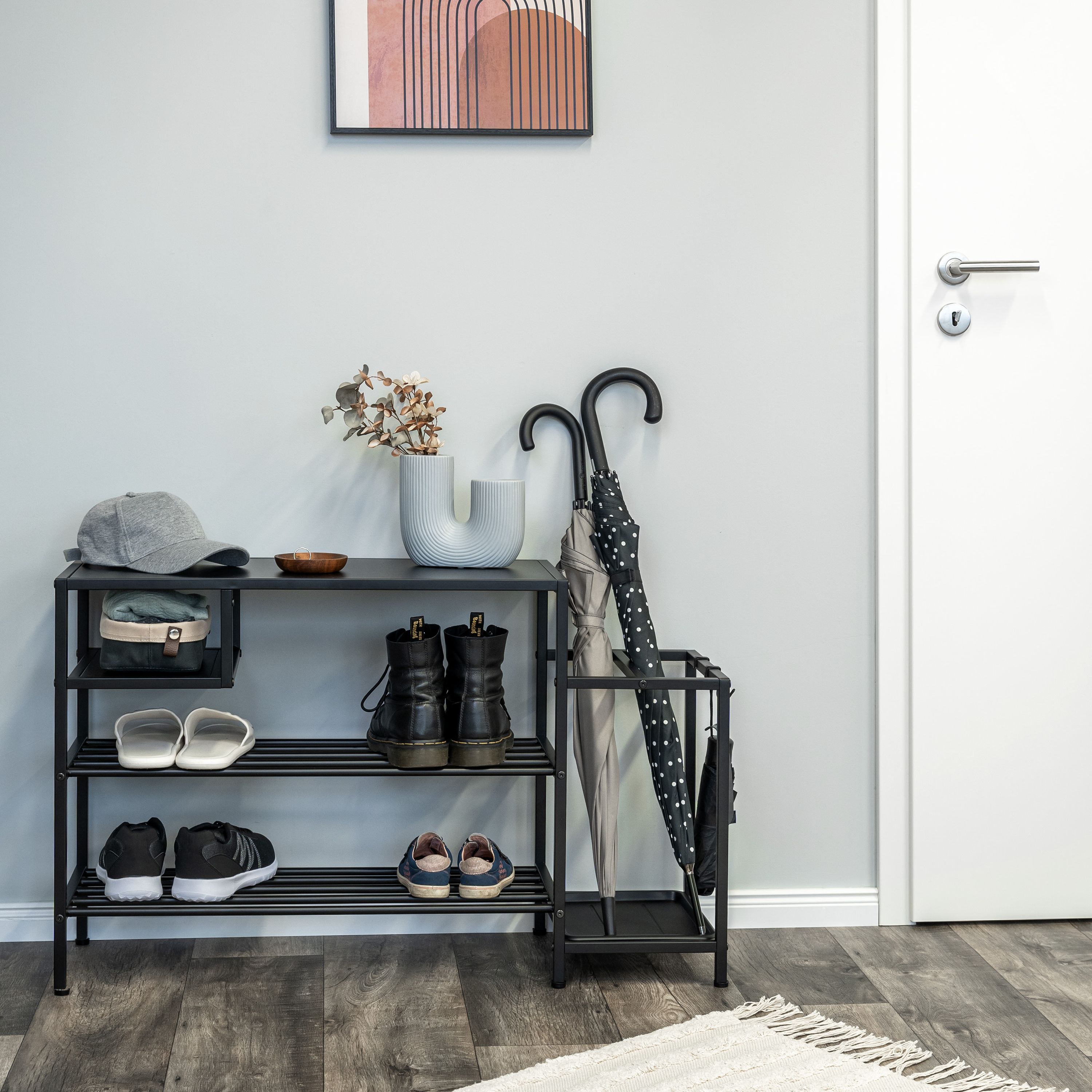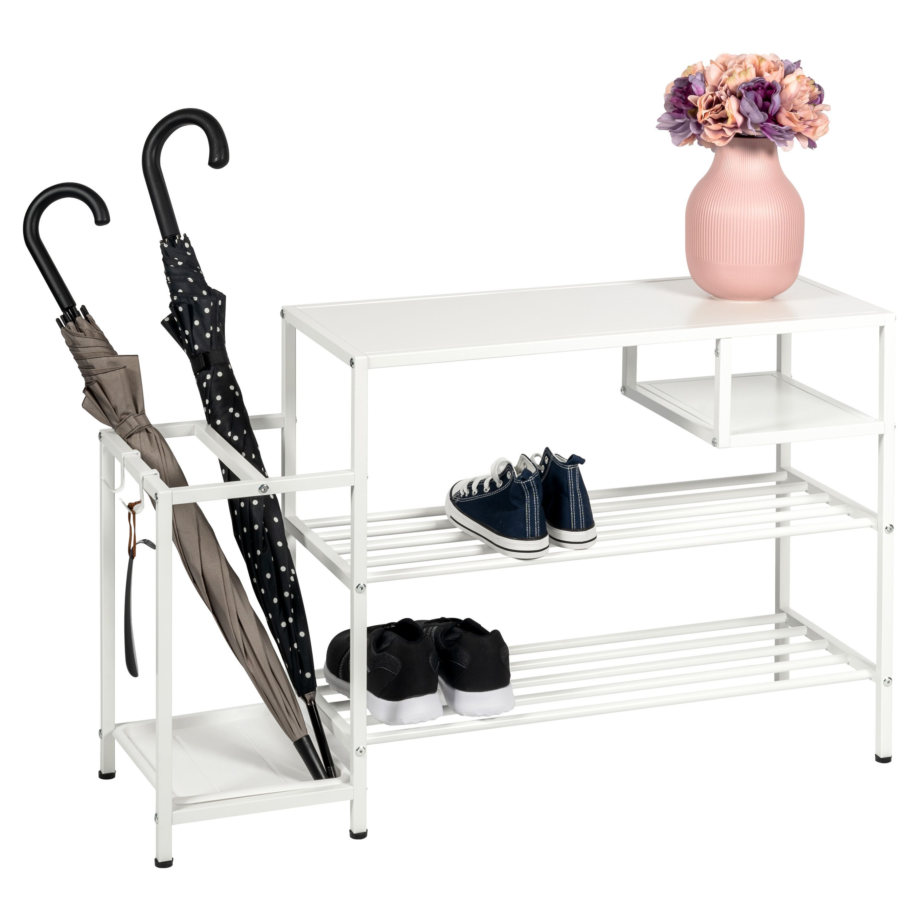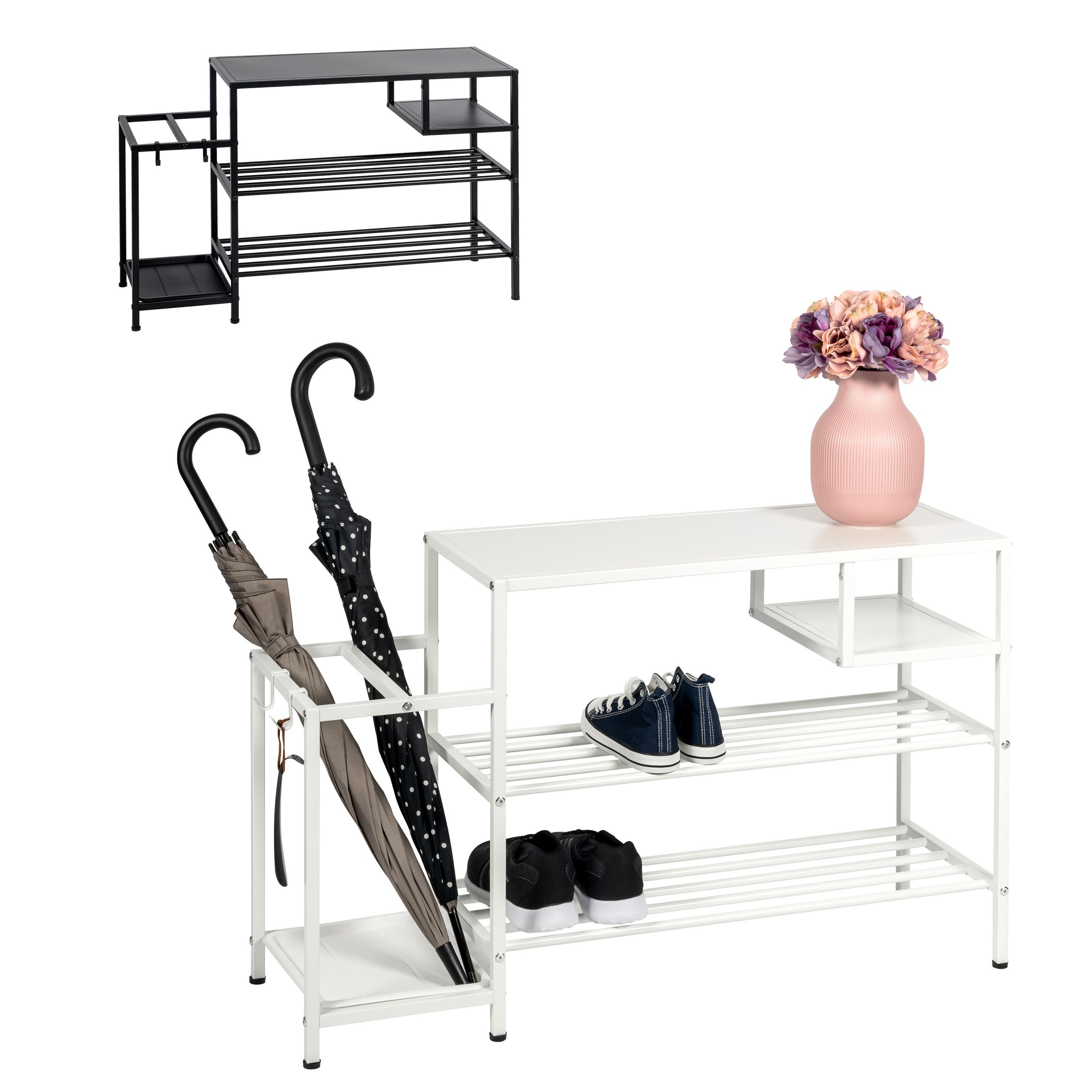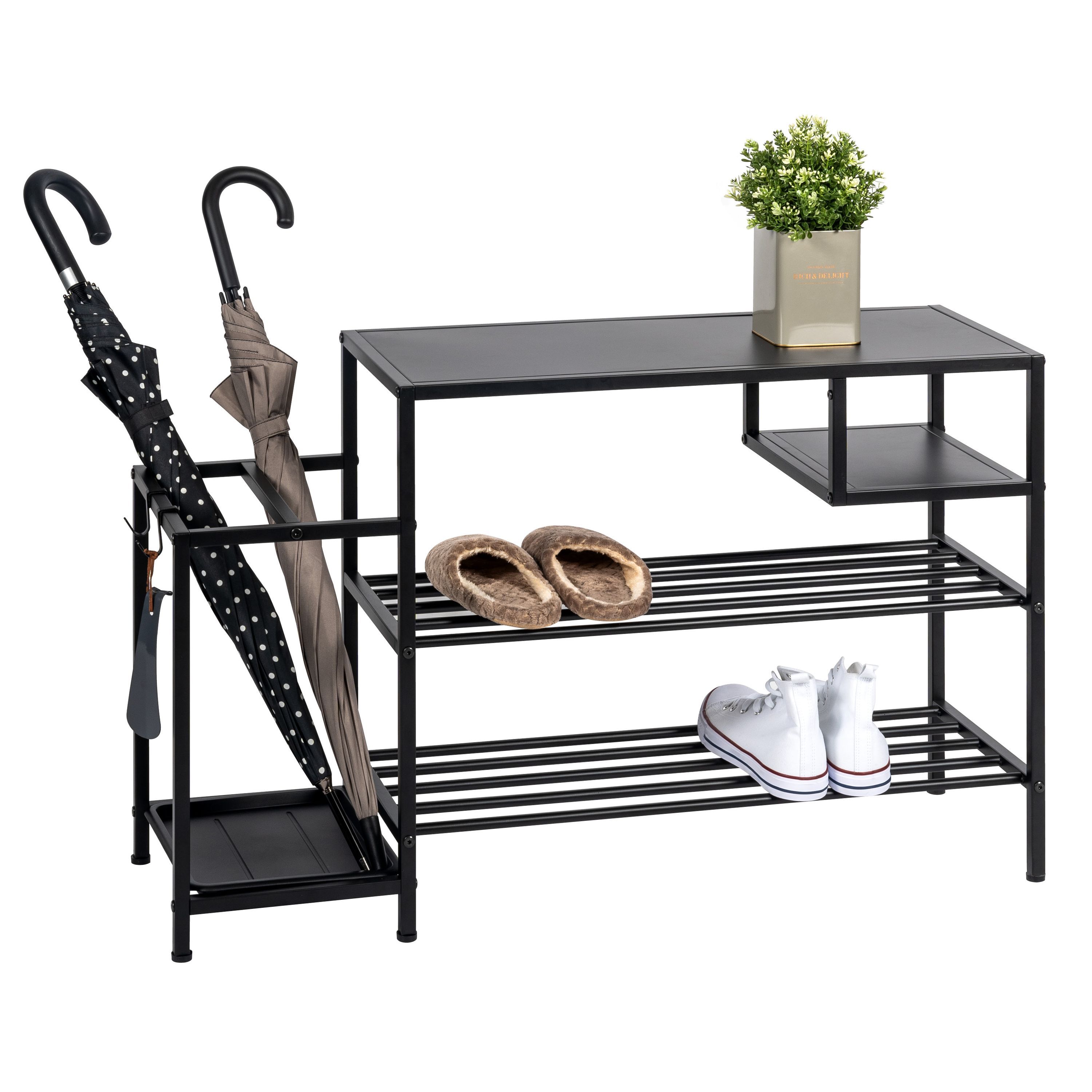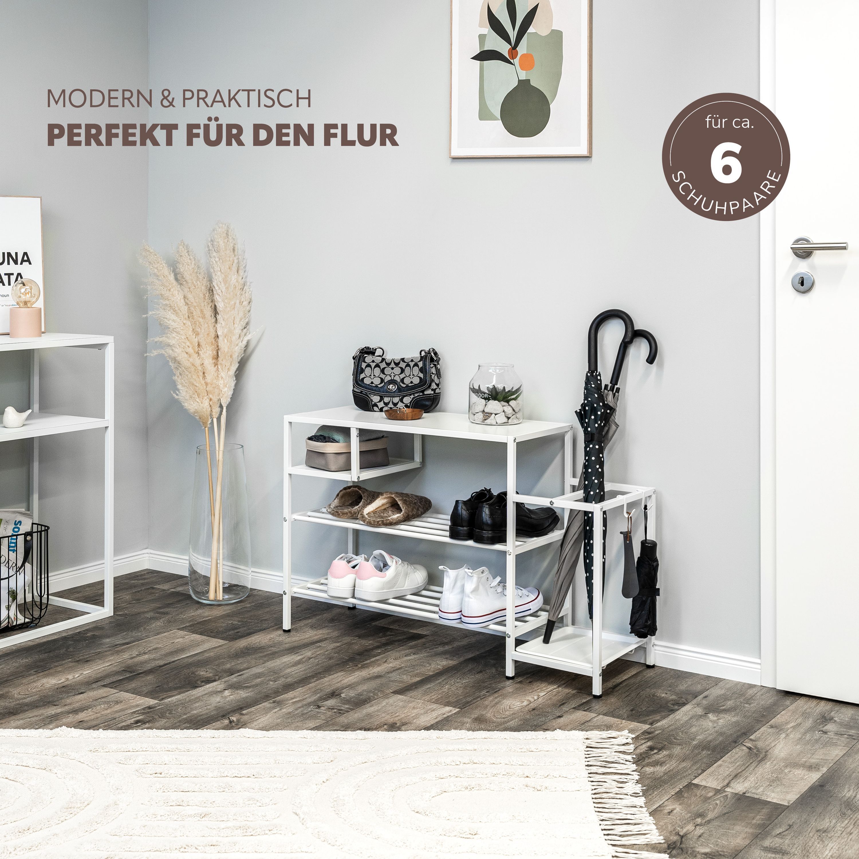 eluno Schuhregal für ca. 6 Paar Schuhe, 4 Ablagen und Schirmständer