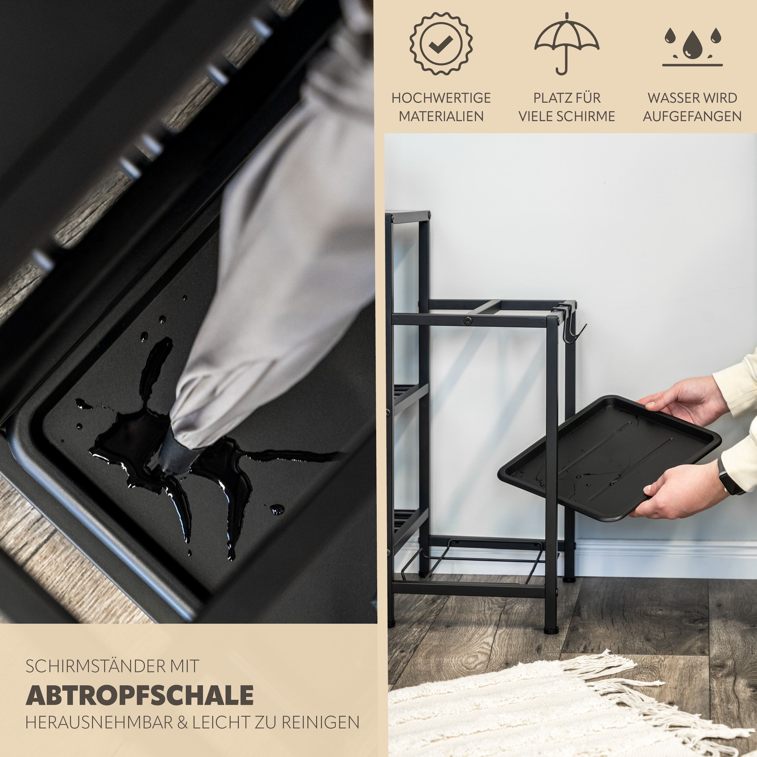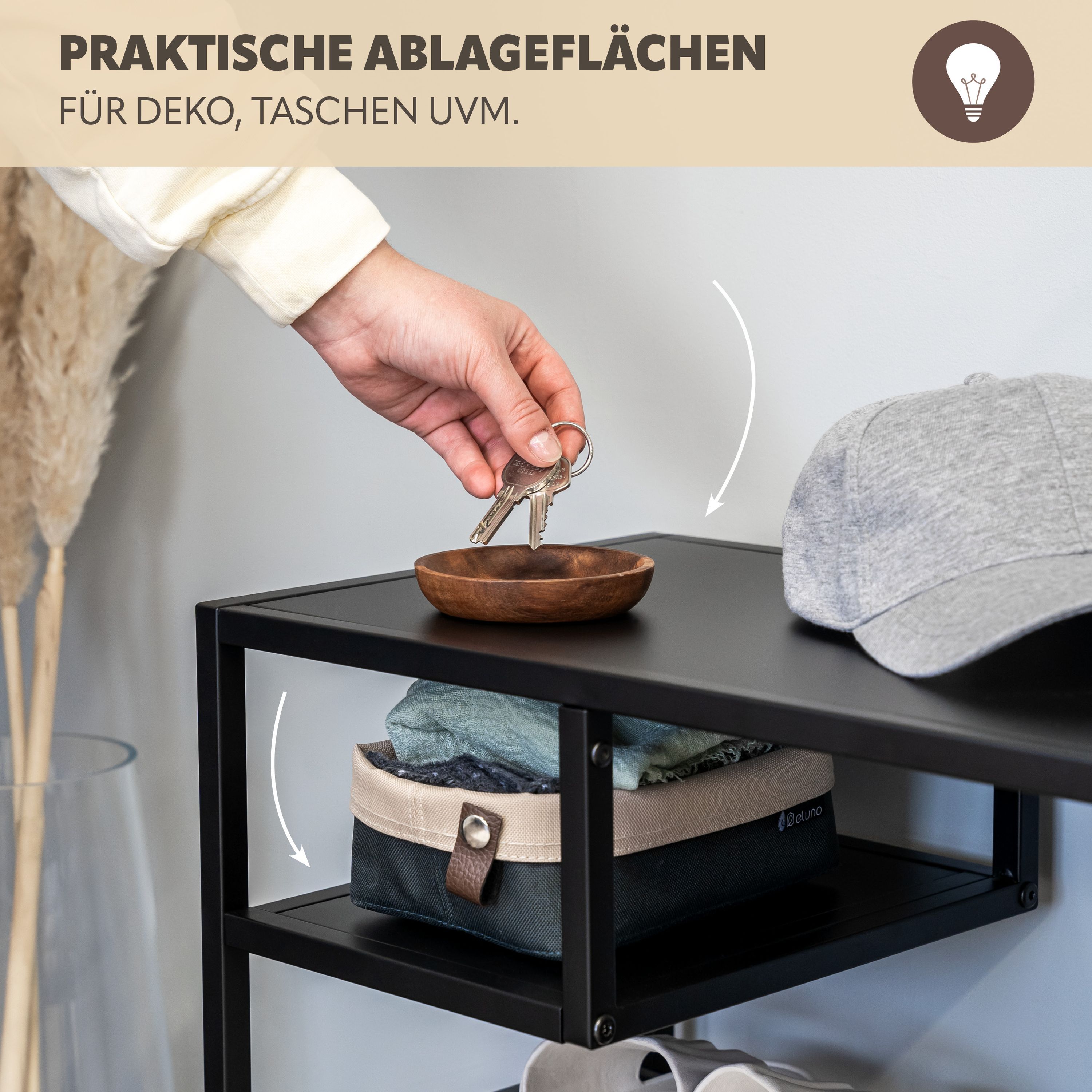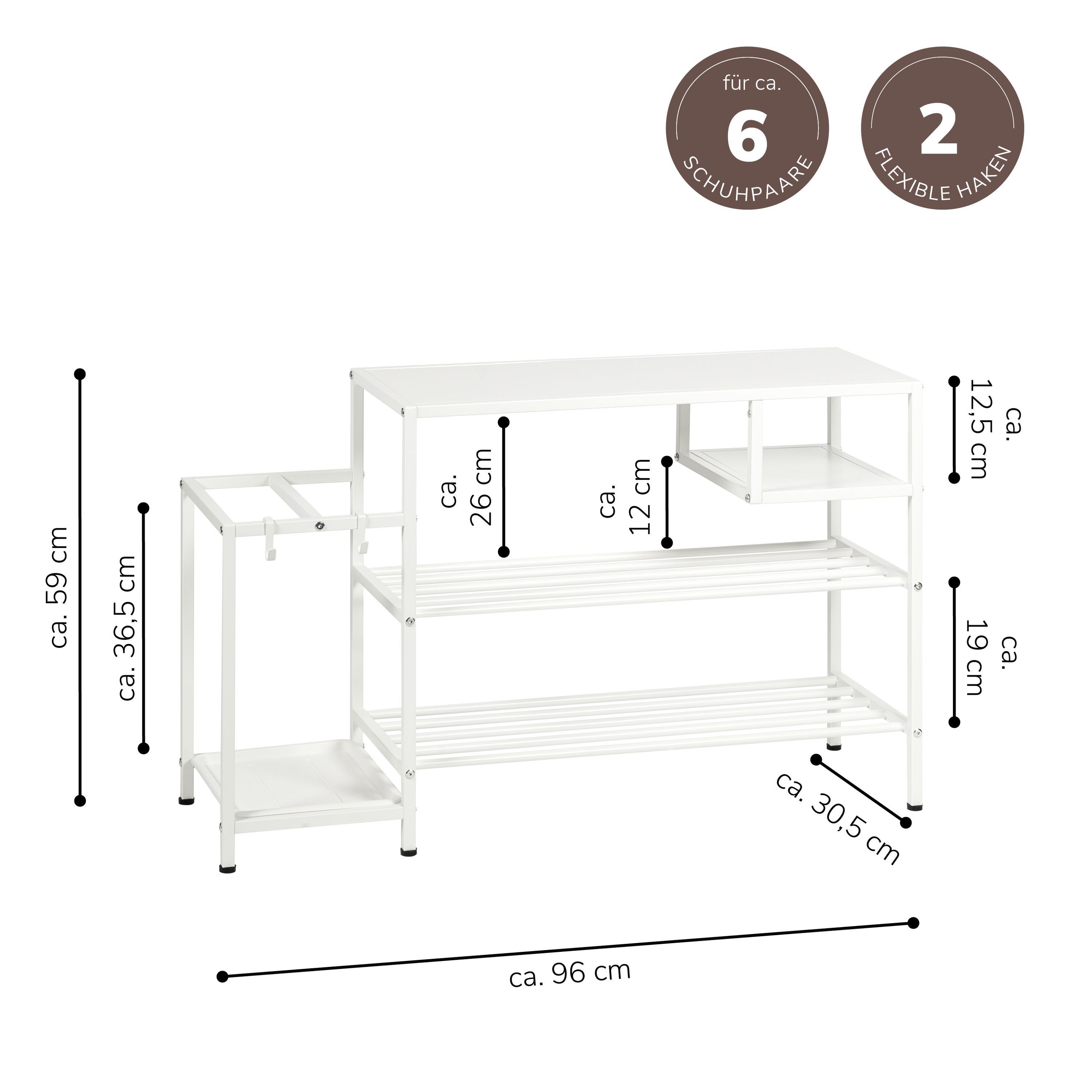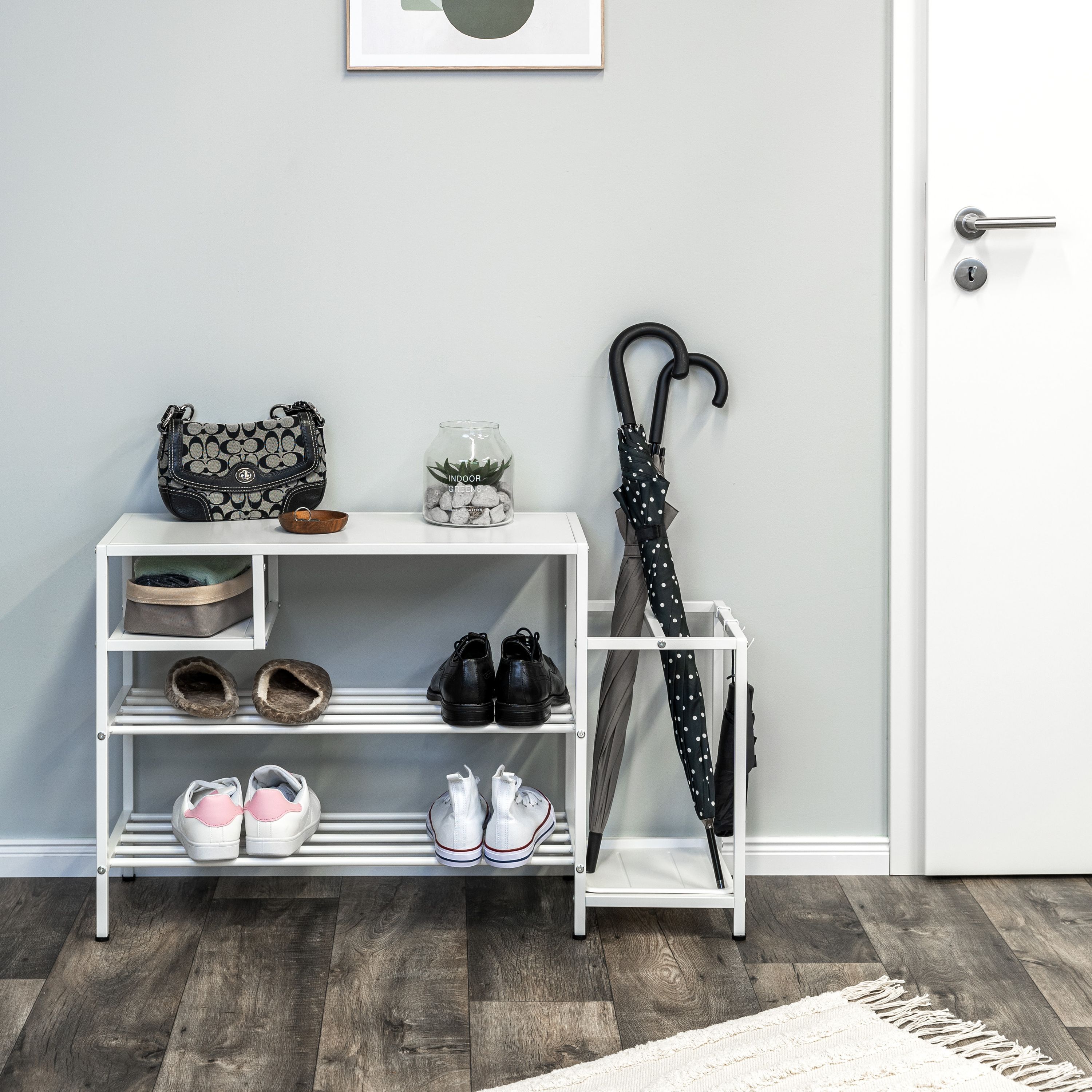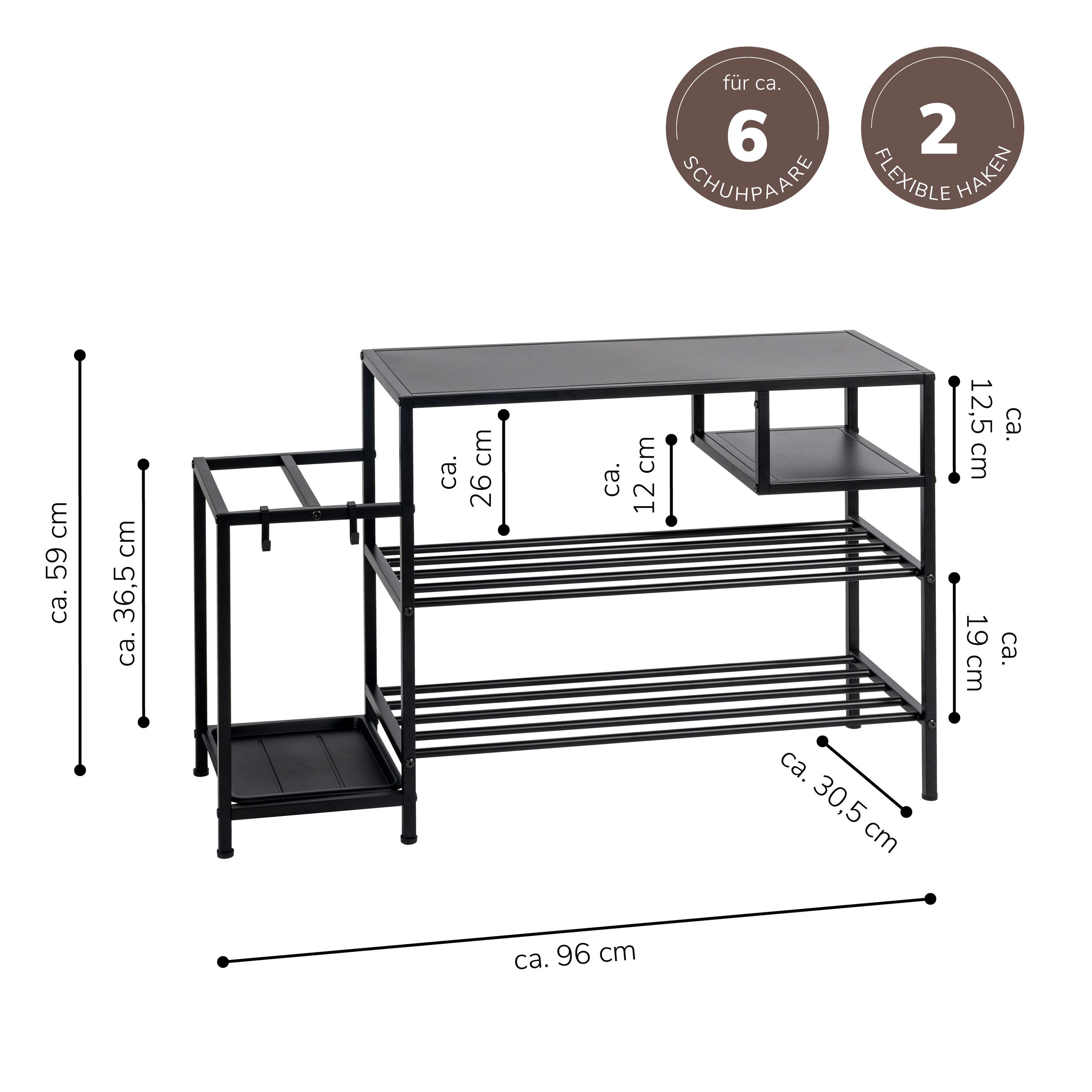 eluno Schuhregal für ca. 6 Paar Schuhe, 4 Ablagen und Schirmständer