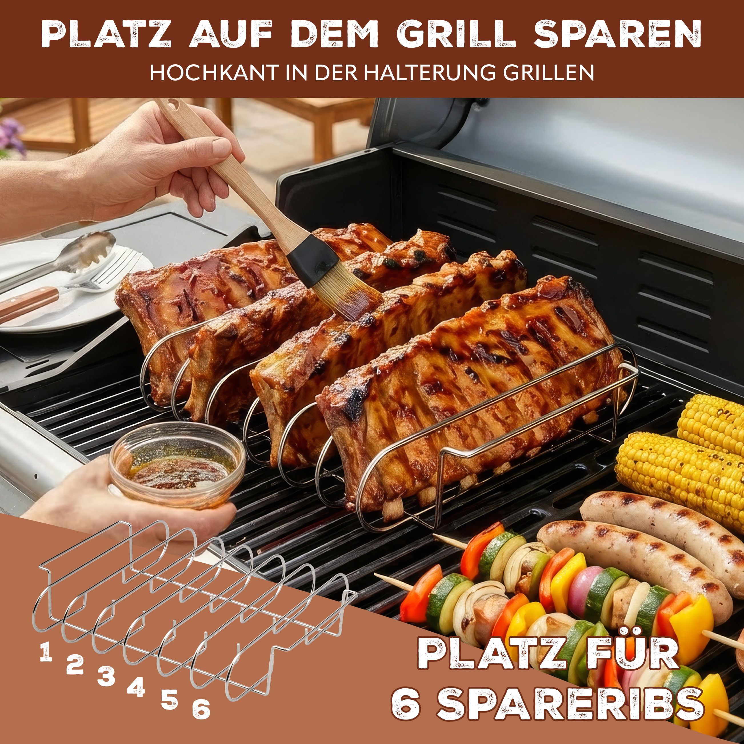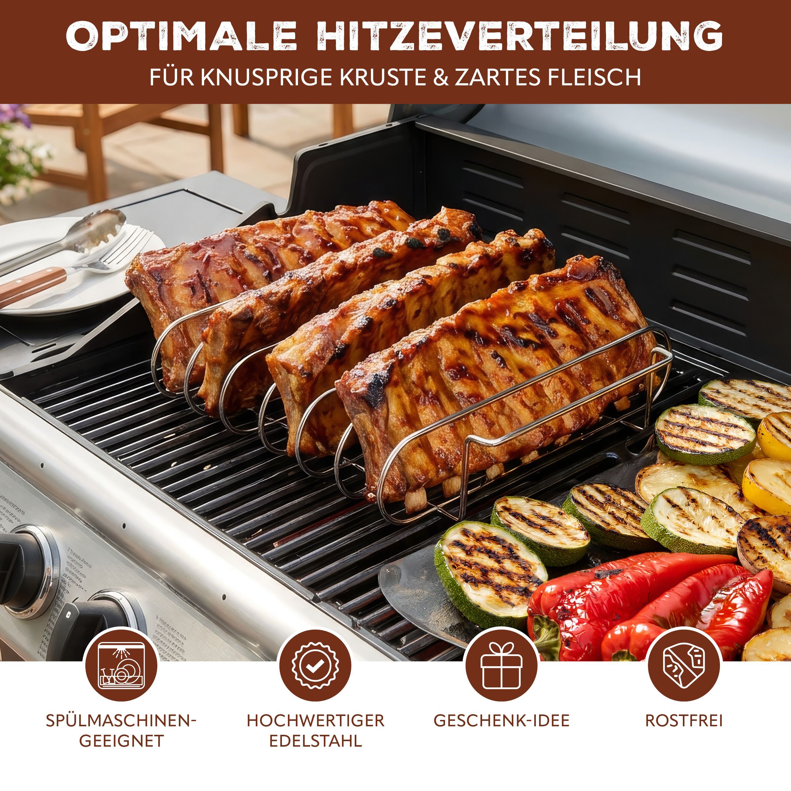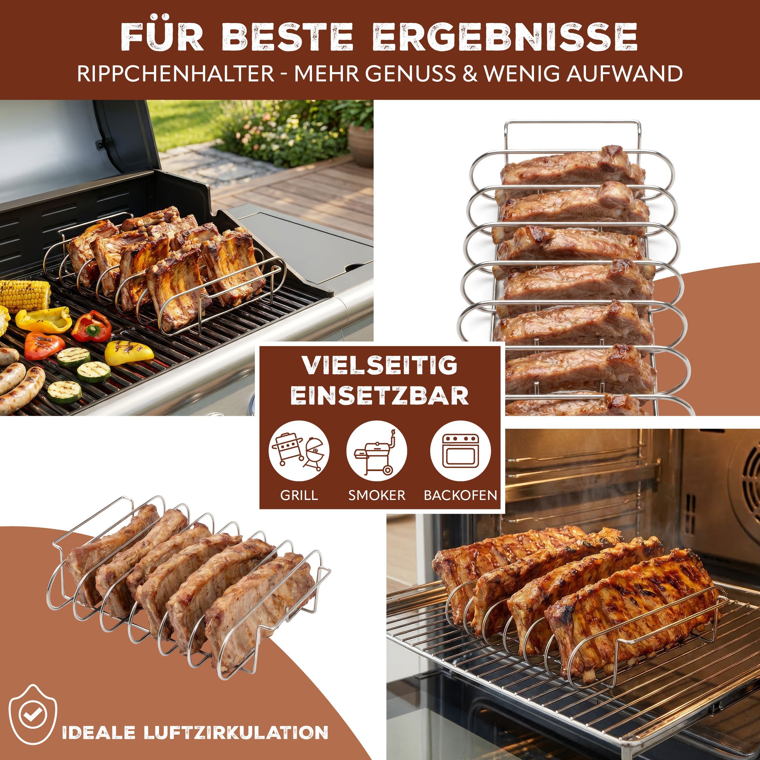 eluno Spareribs Halter, Rippchenhalter für Smoker, Grill und Backofen, Edelstahl