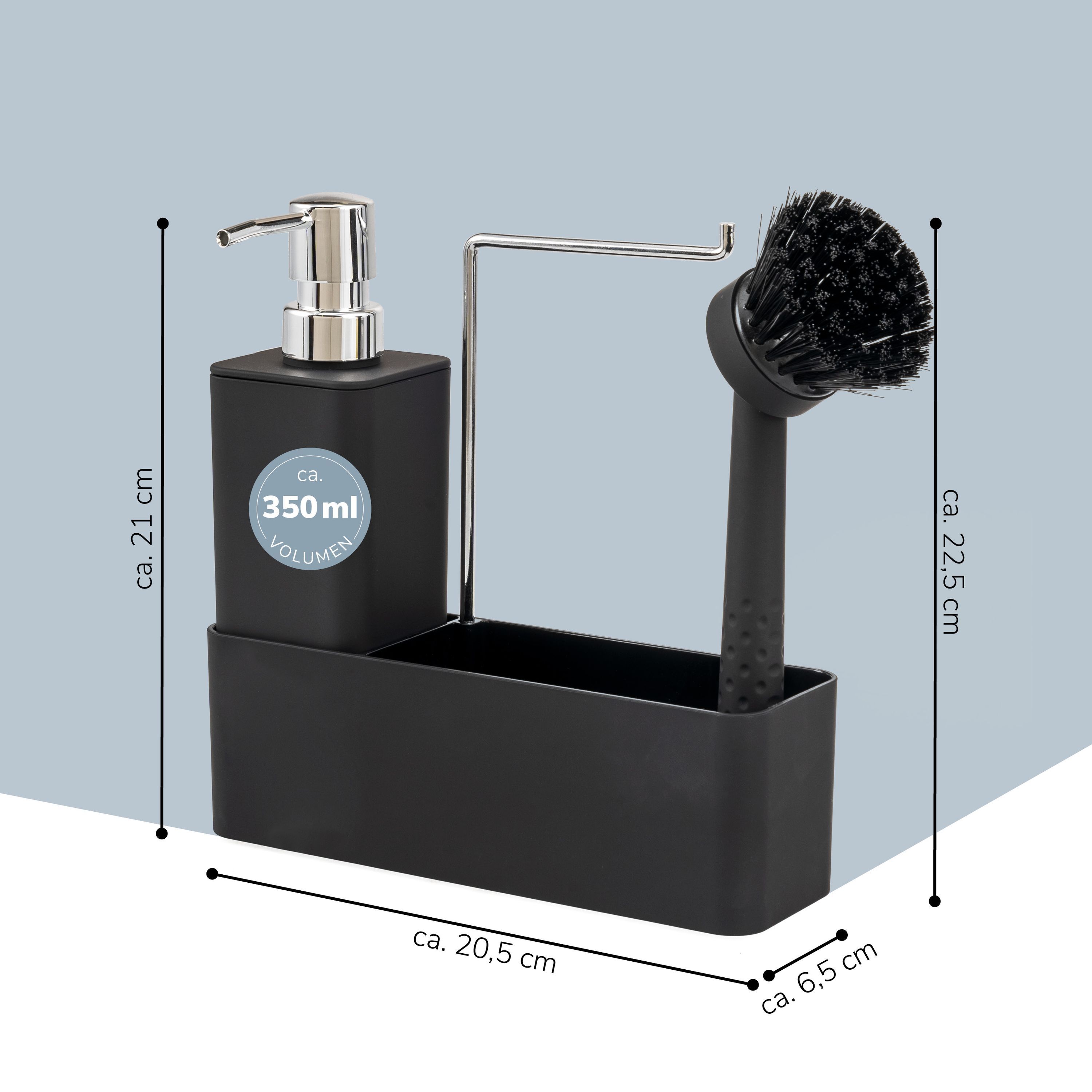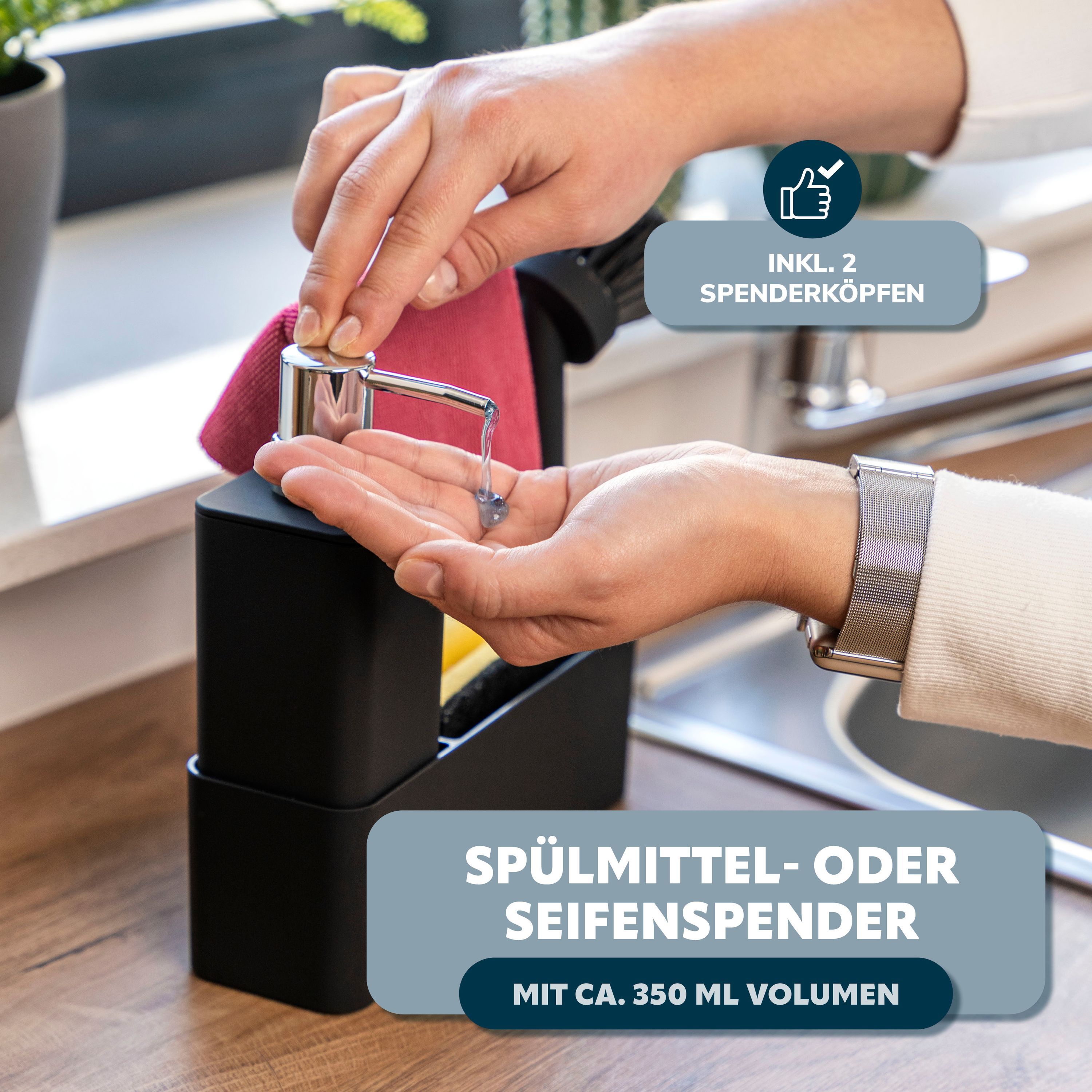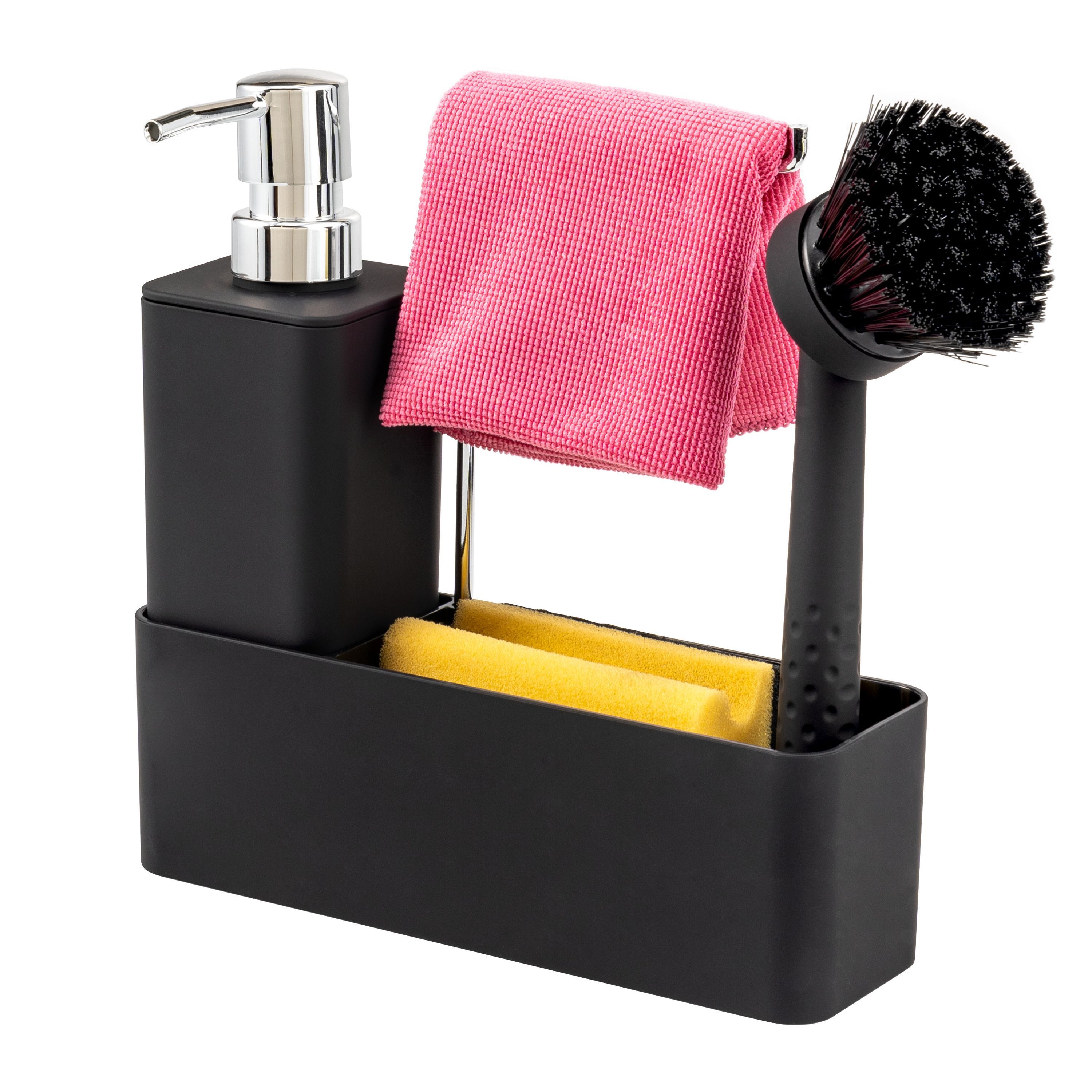 eluno Spülbecken Organizer, Seifenspender, Spülbürste und Tuchhalter, schwarz