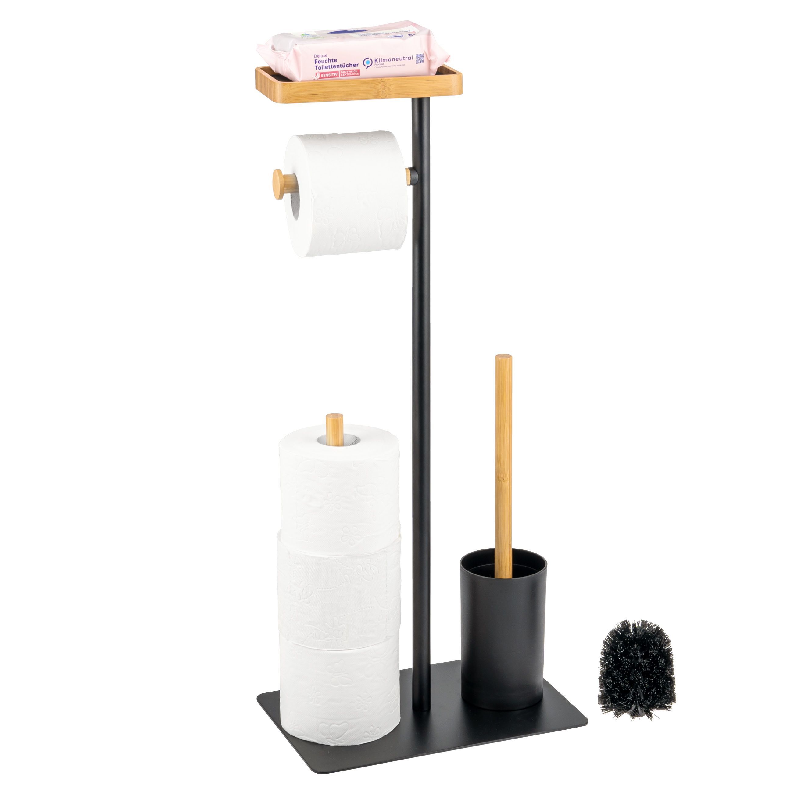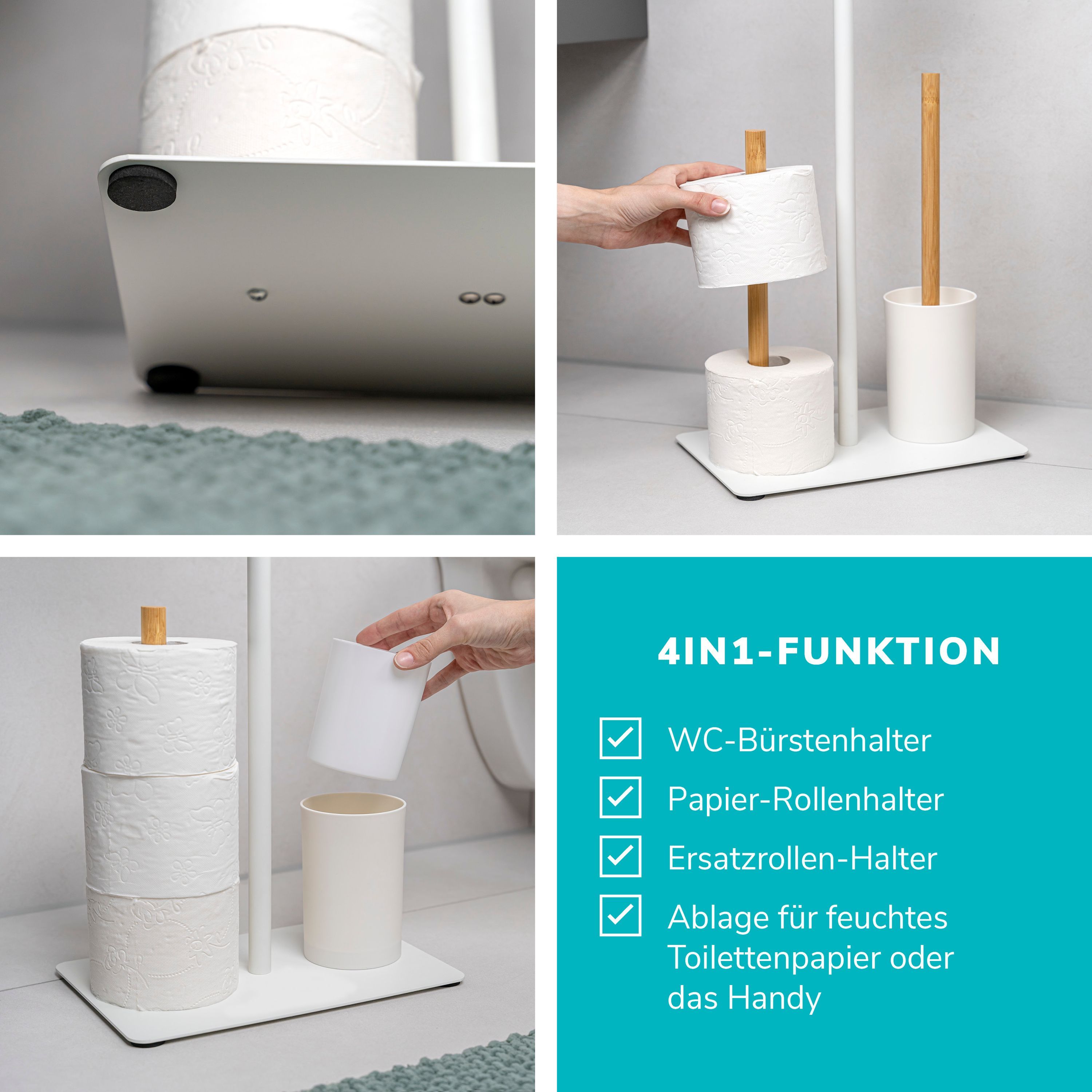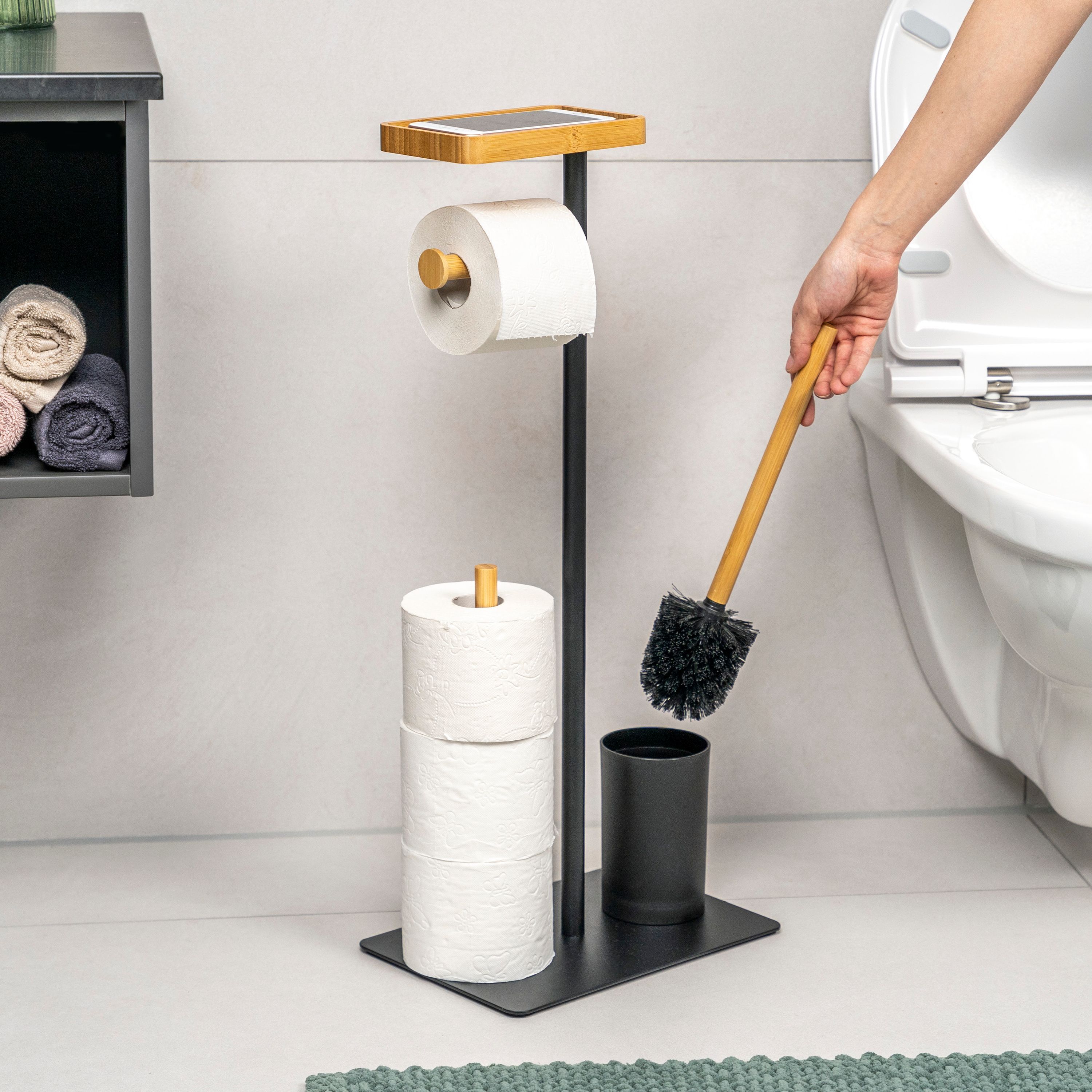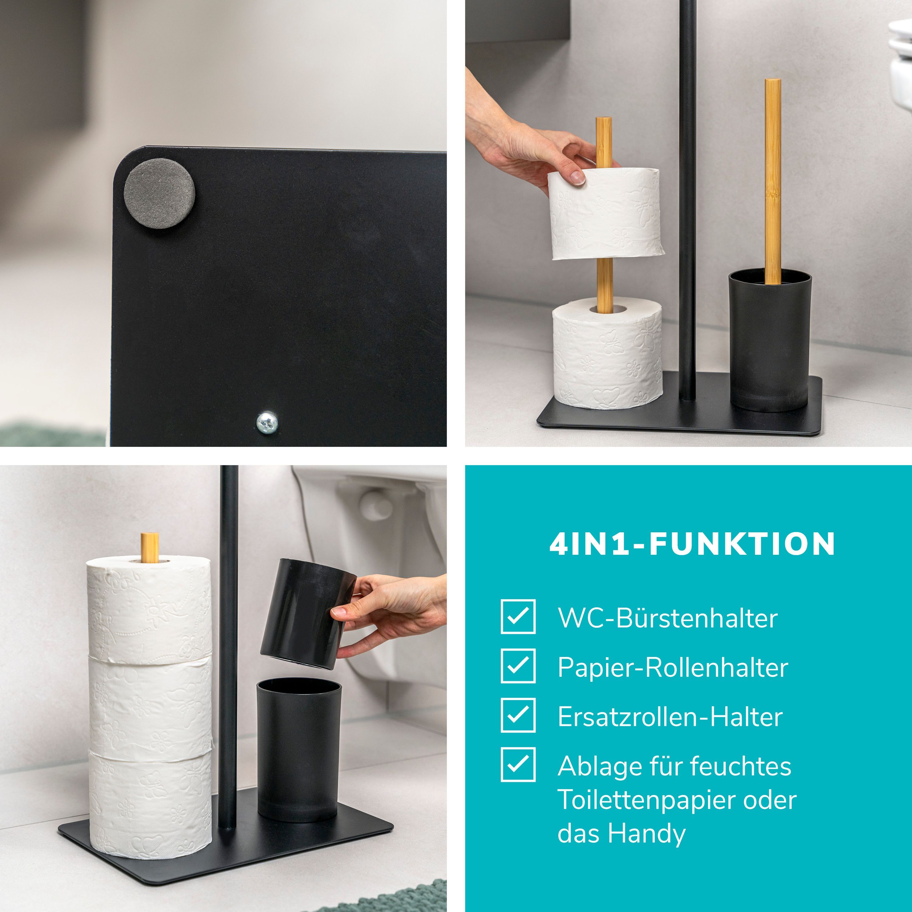 eluno Stand-WC-Garnitur 4in1, WC-Bürste, (Ersatz-)Rollenhalter, Ablage