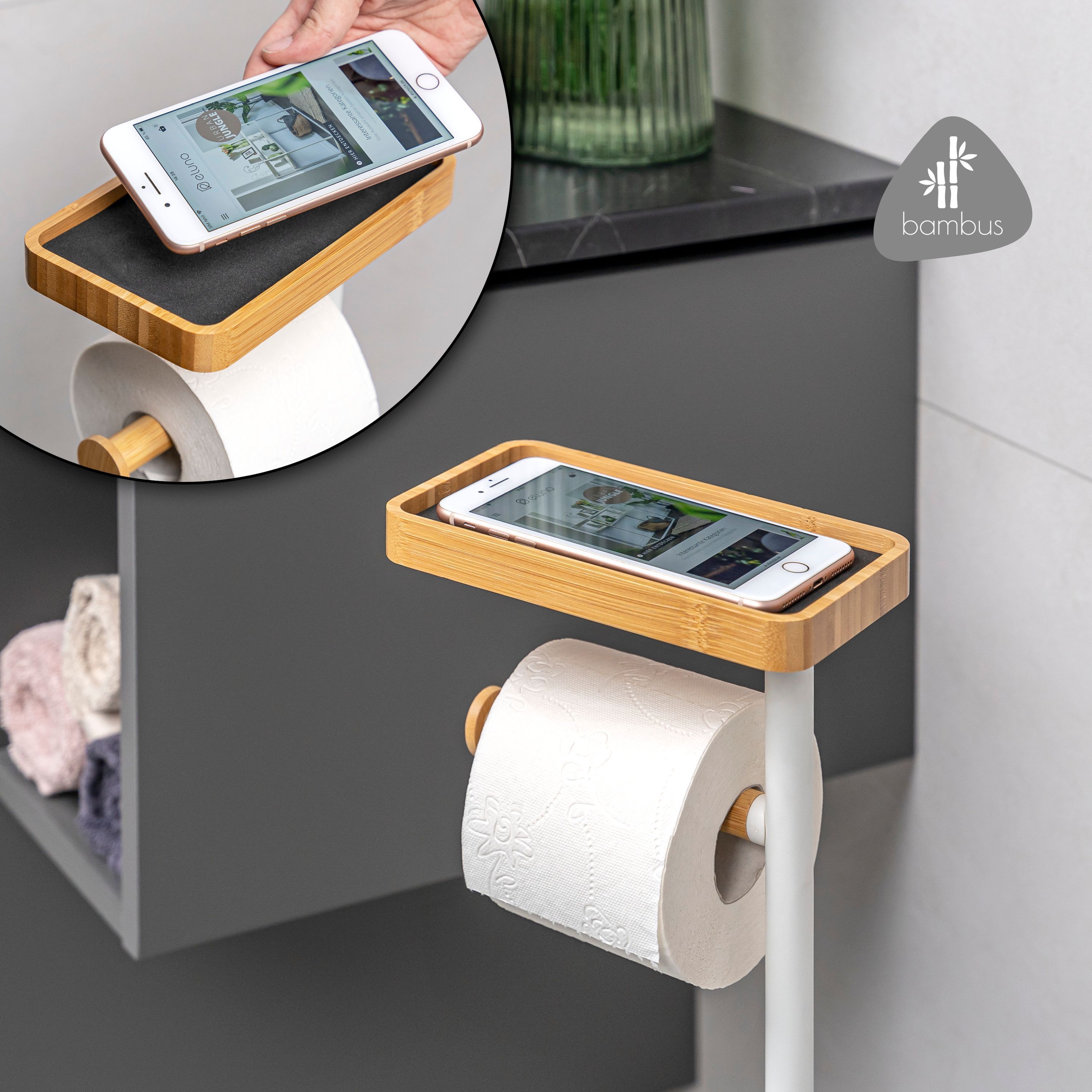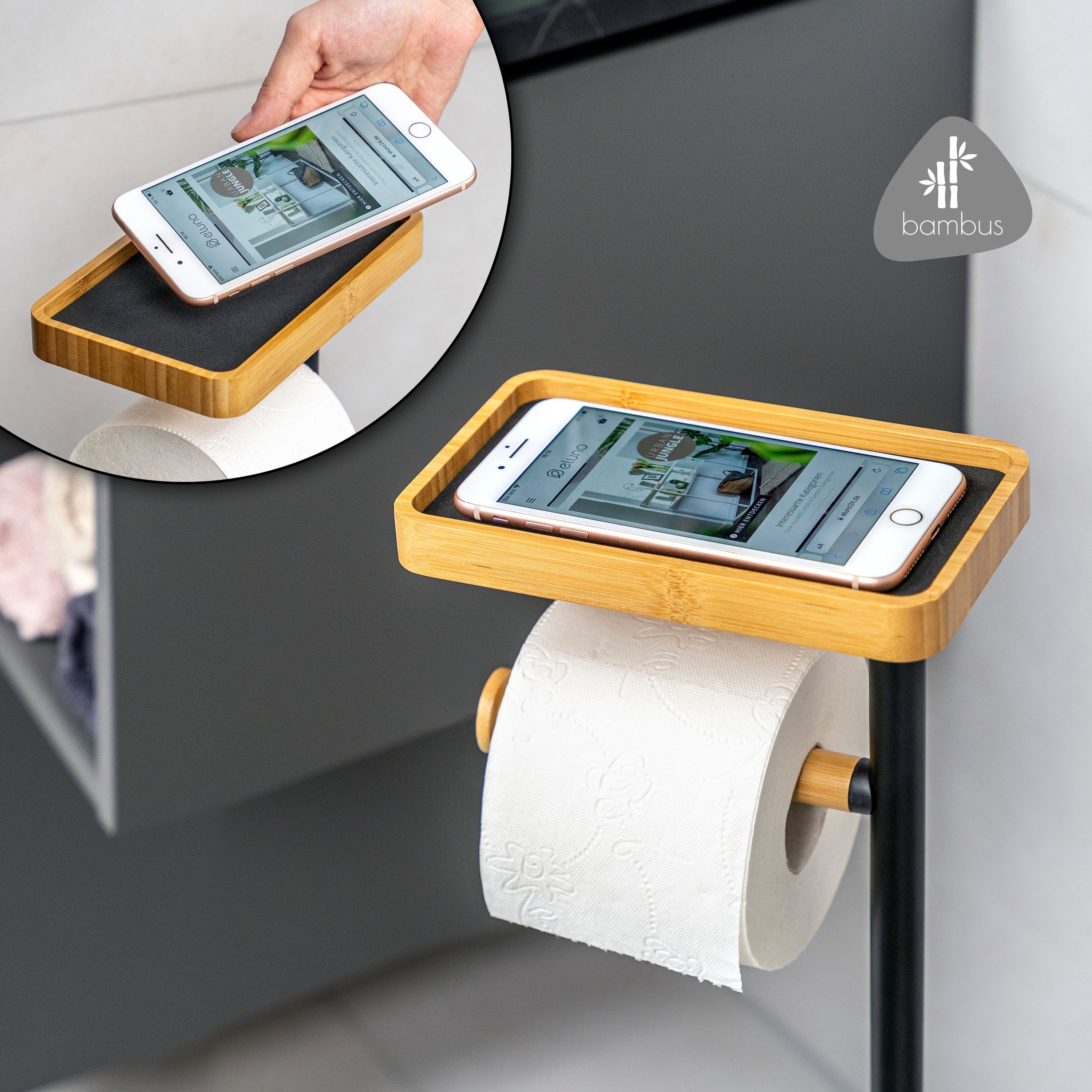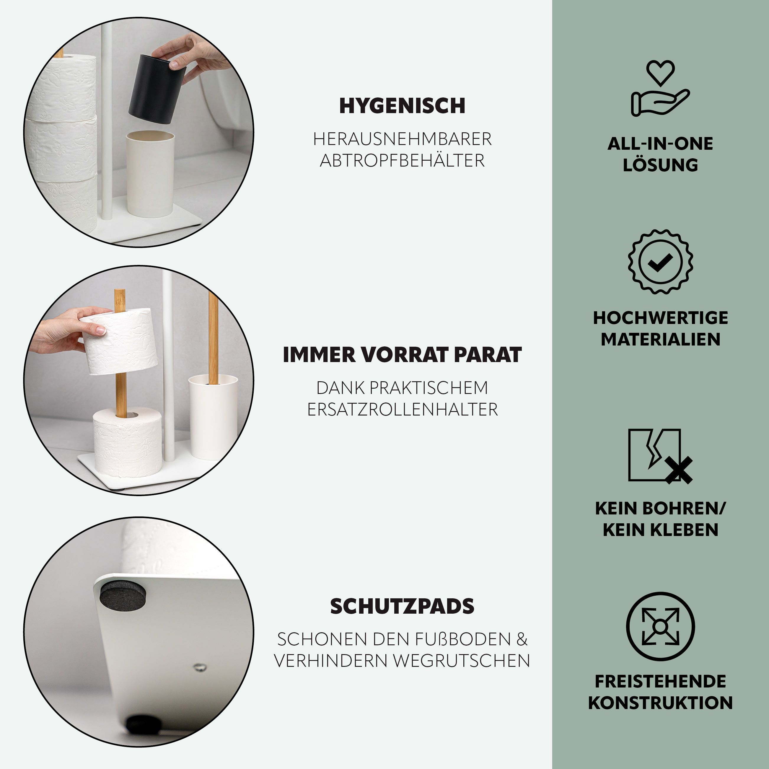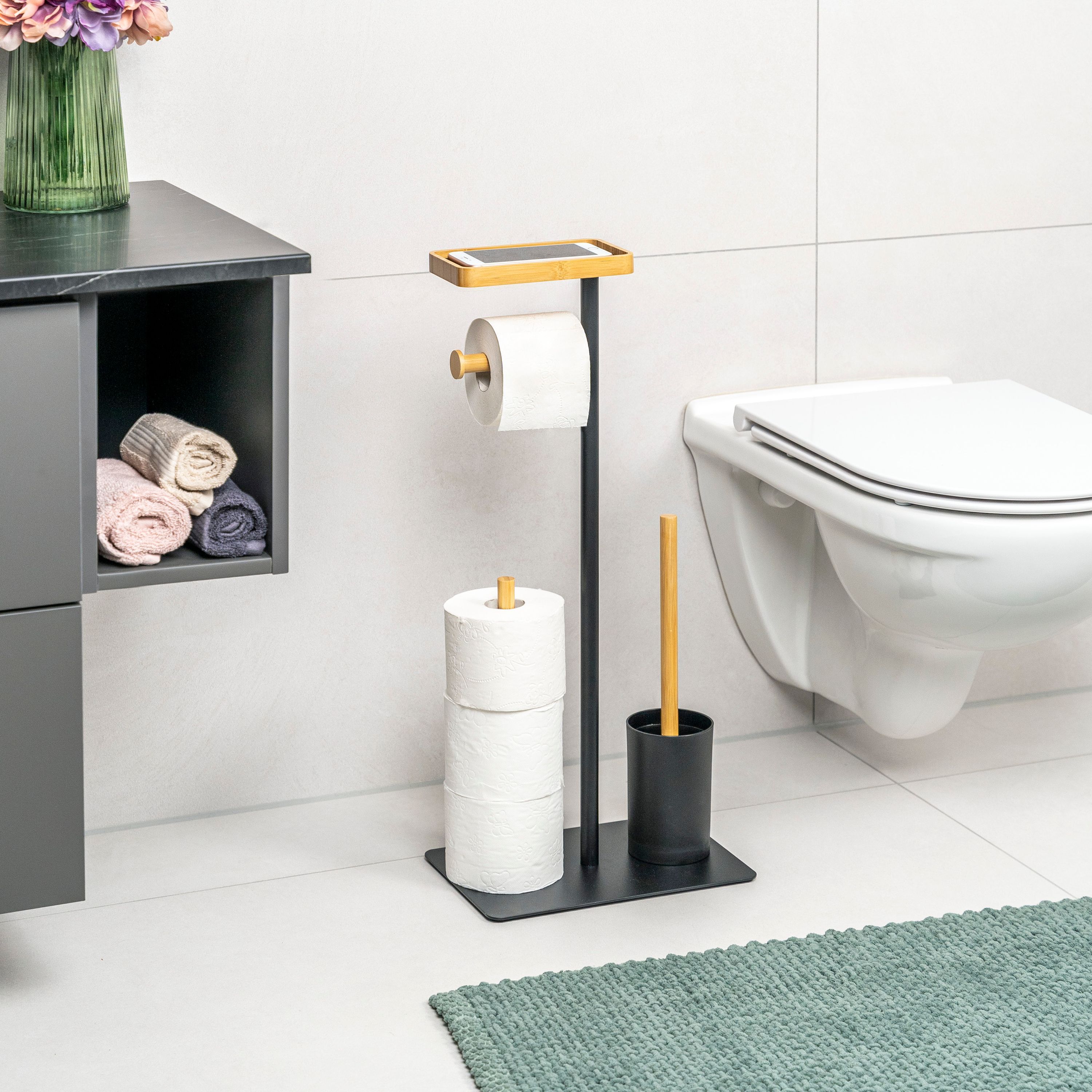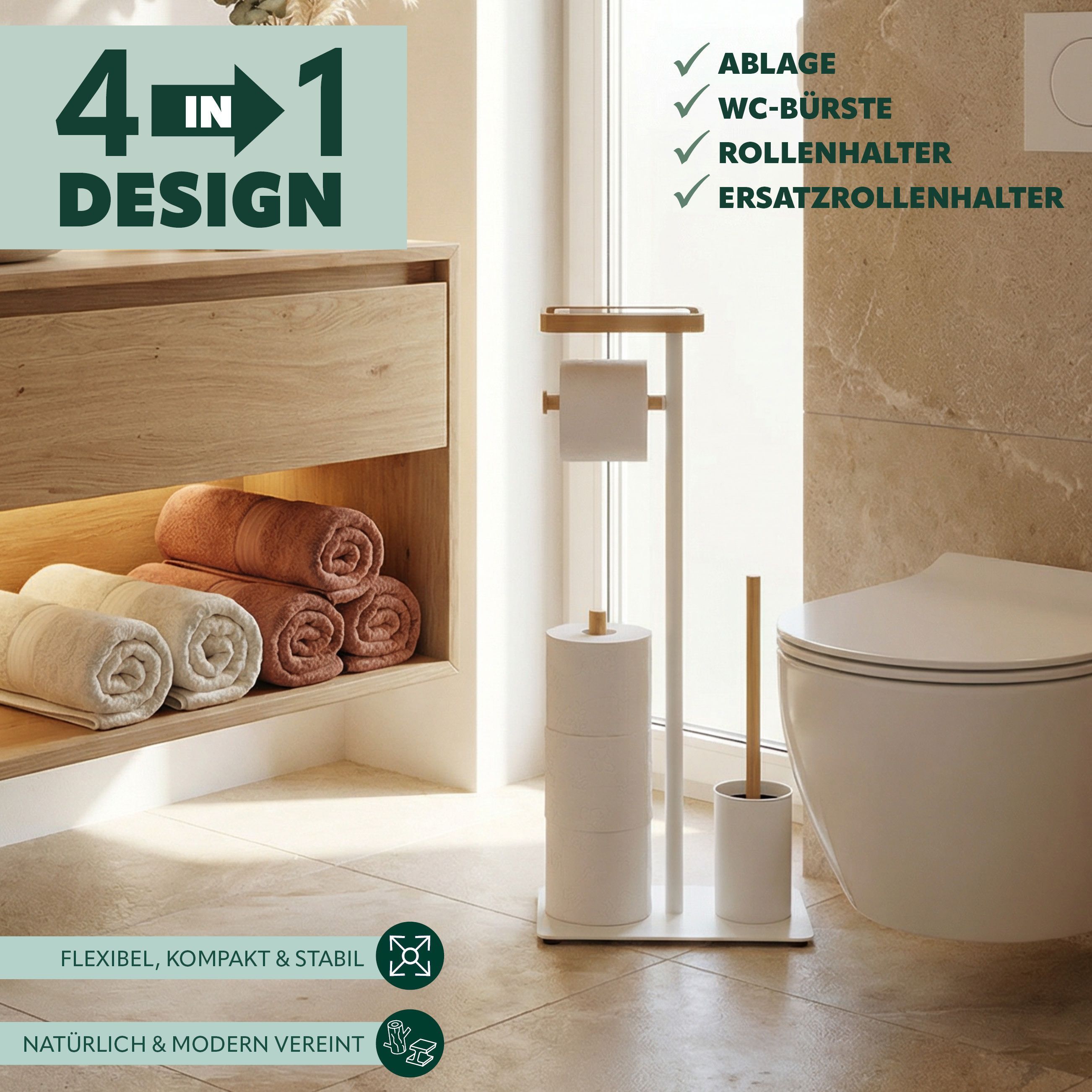 eluno Stand-WC-Garnitur 4in1, WC-Bürste, (Ersatz-)Rollenhalter, Ablage