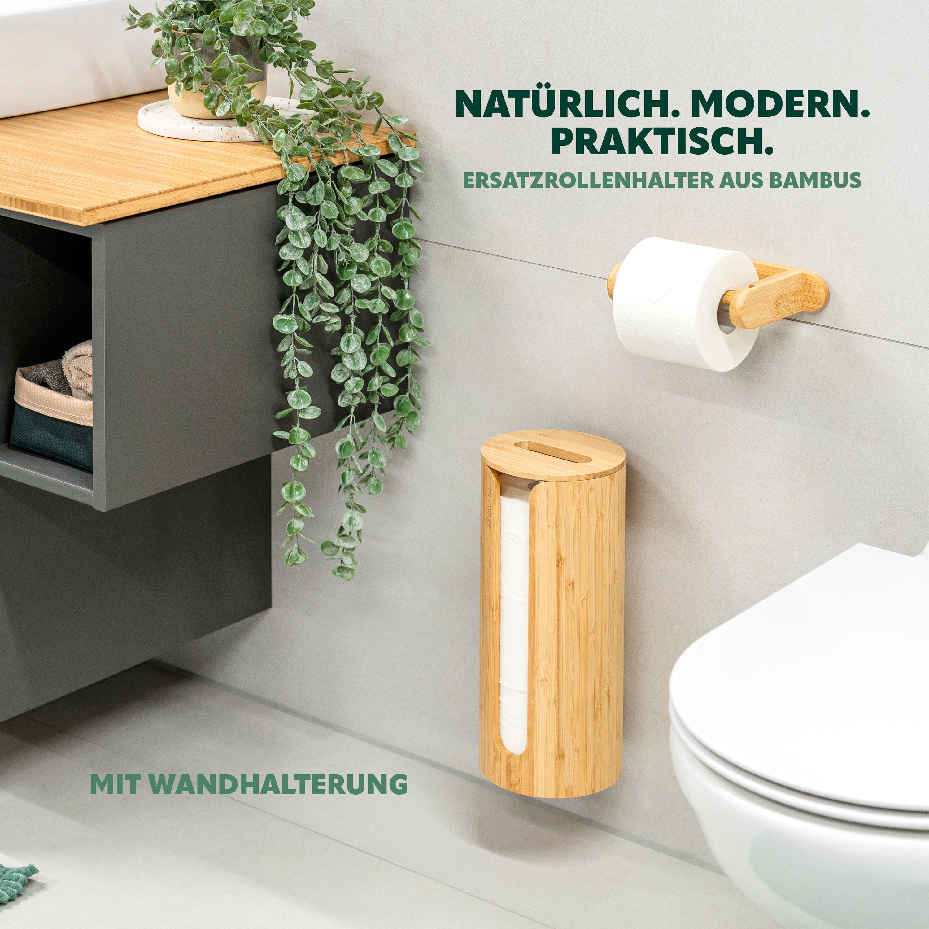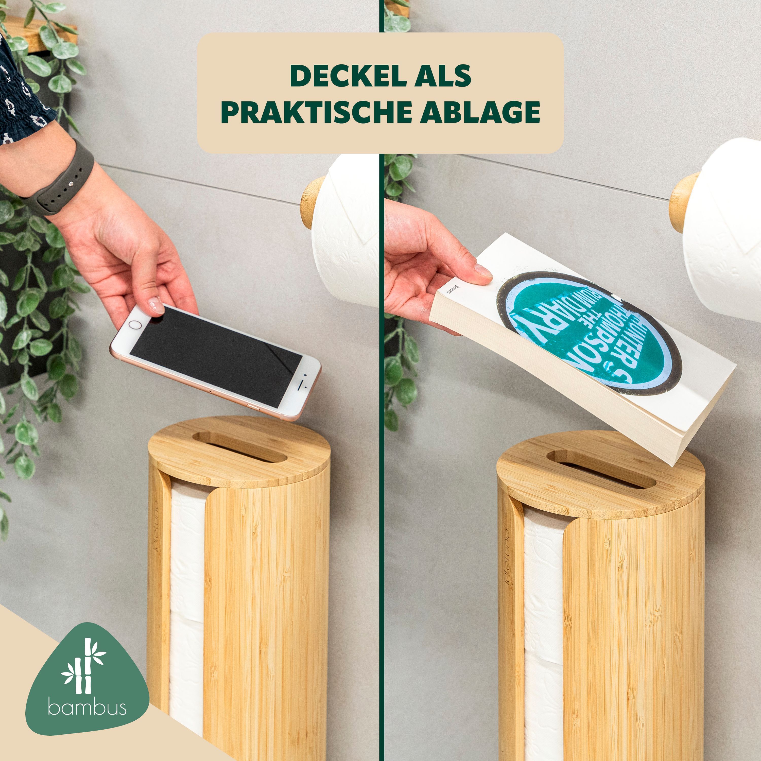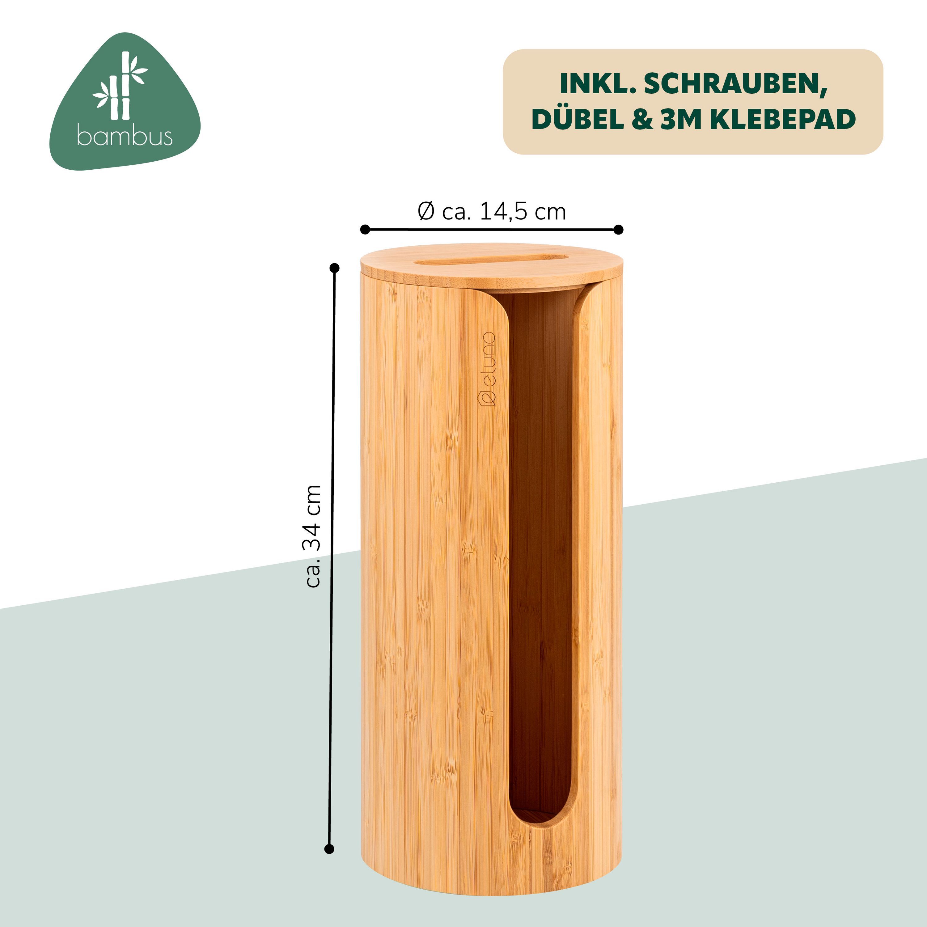 eluno Toilettenpapier Aufbewahrung für 3 Rrollen, rund, Bambus, zur Wandmontage