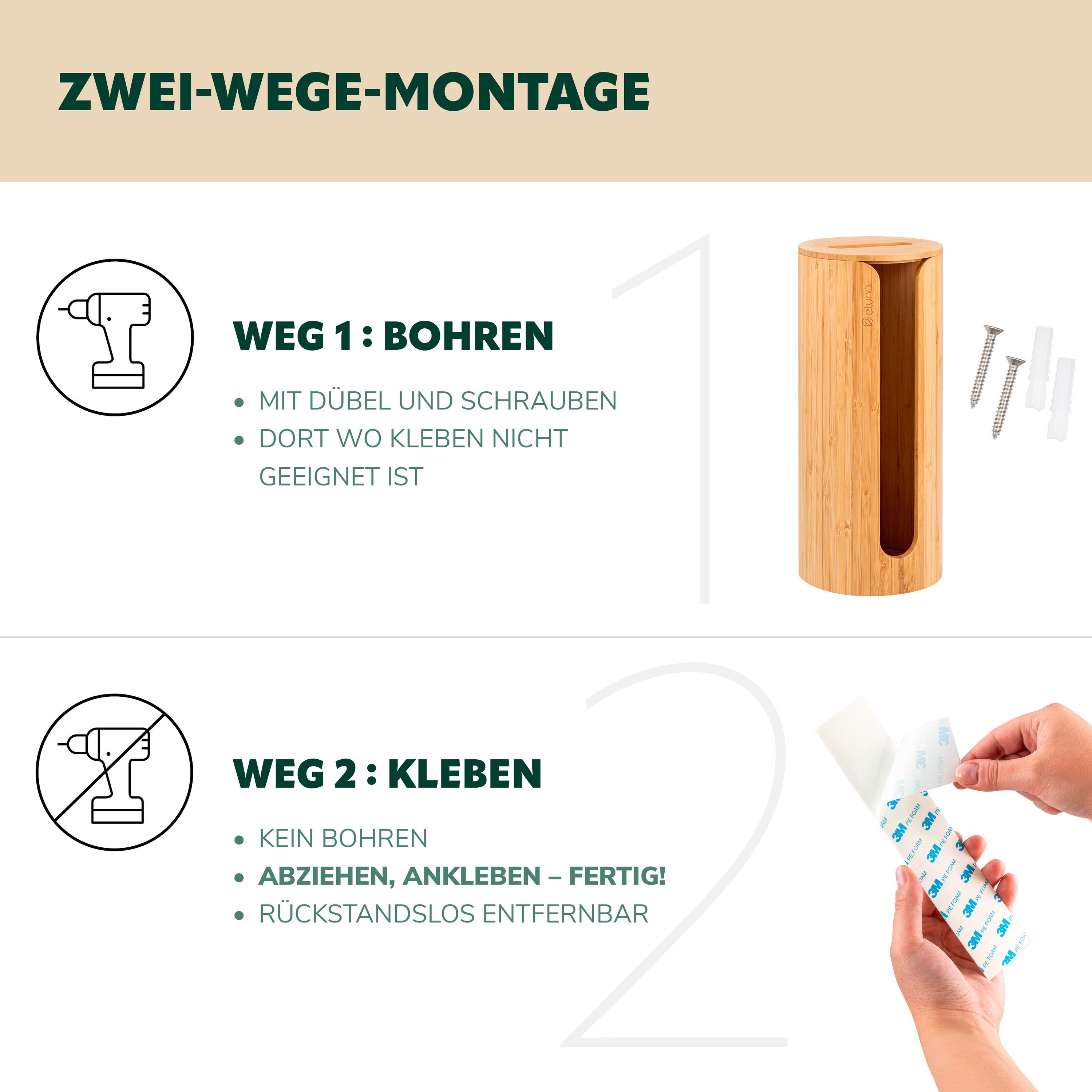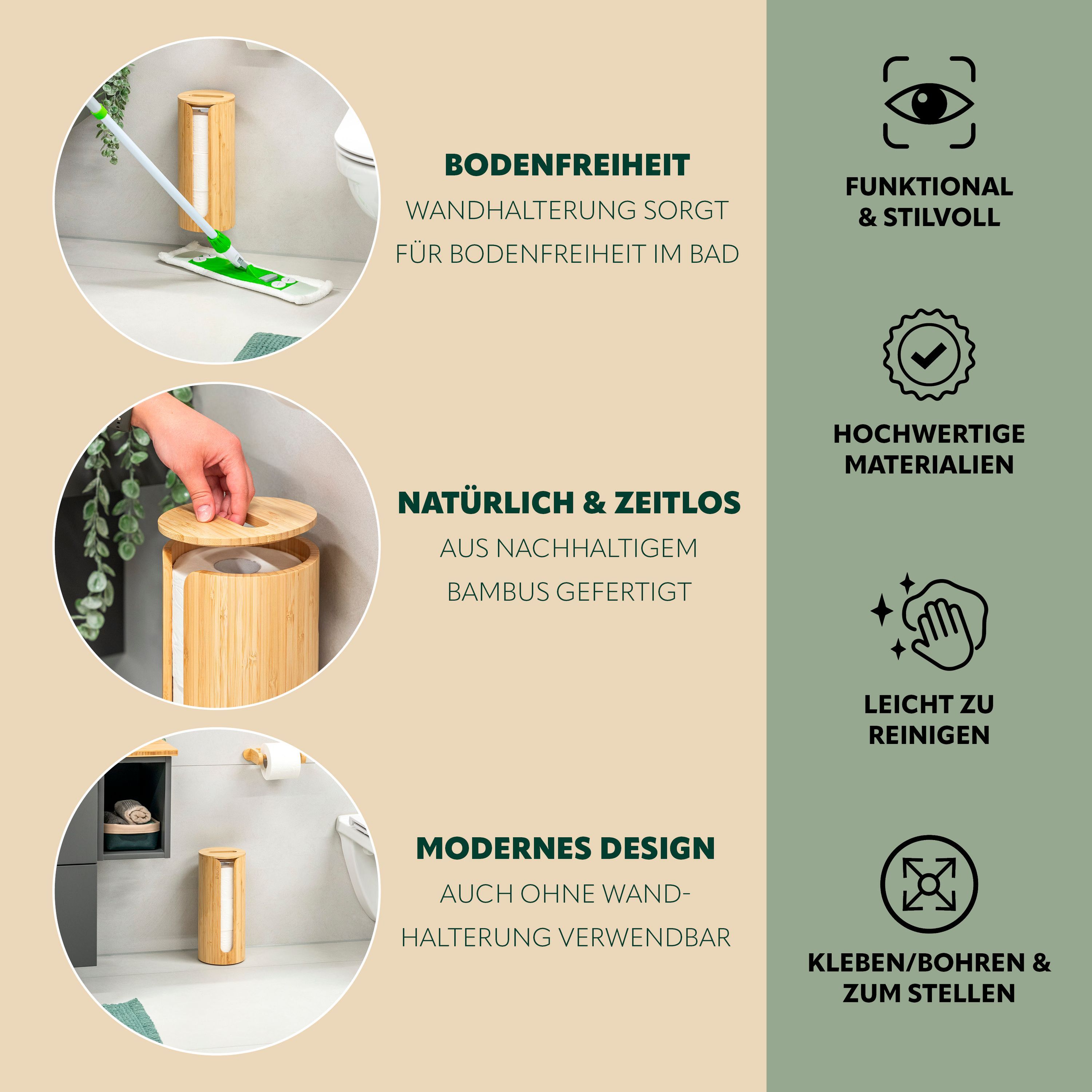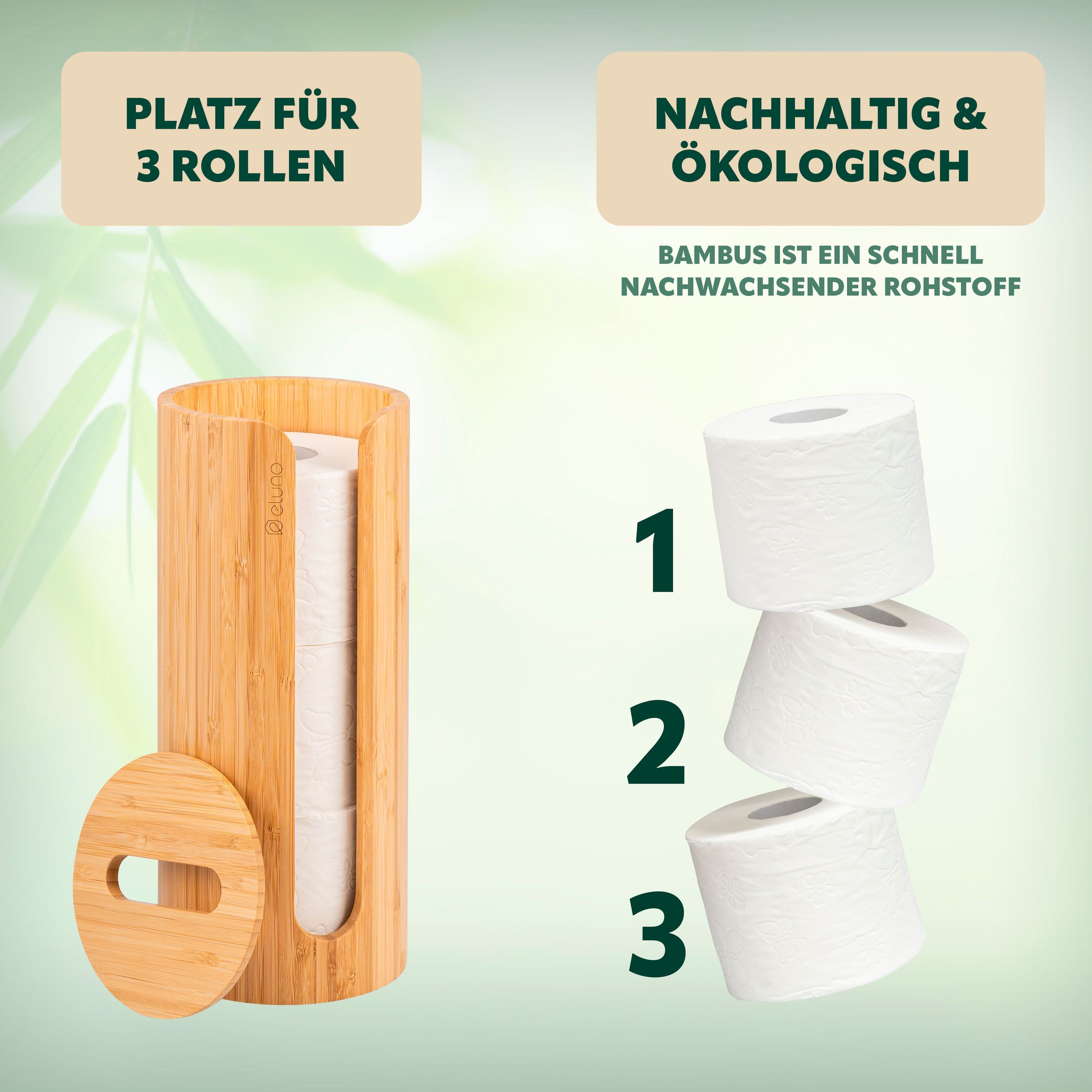 eluno Toilettenpapier Aufbewahrung für 3 Rrollen, rund, Bambus, zur Wandmontage