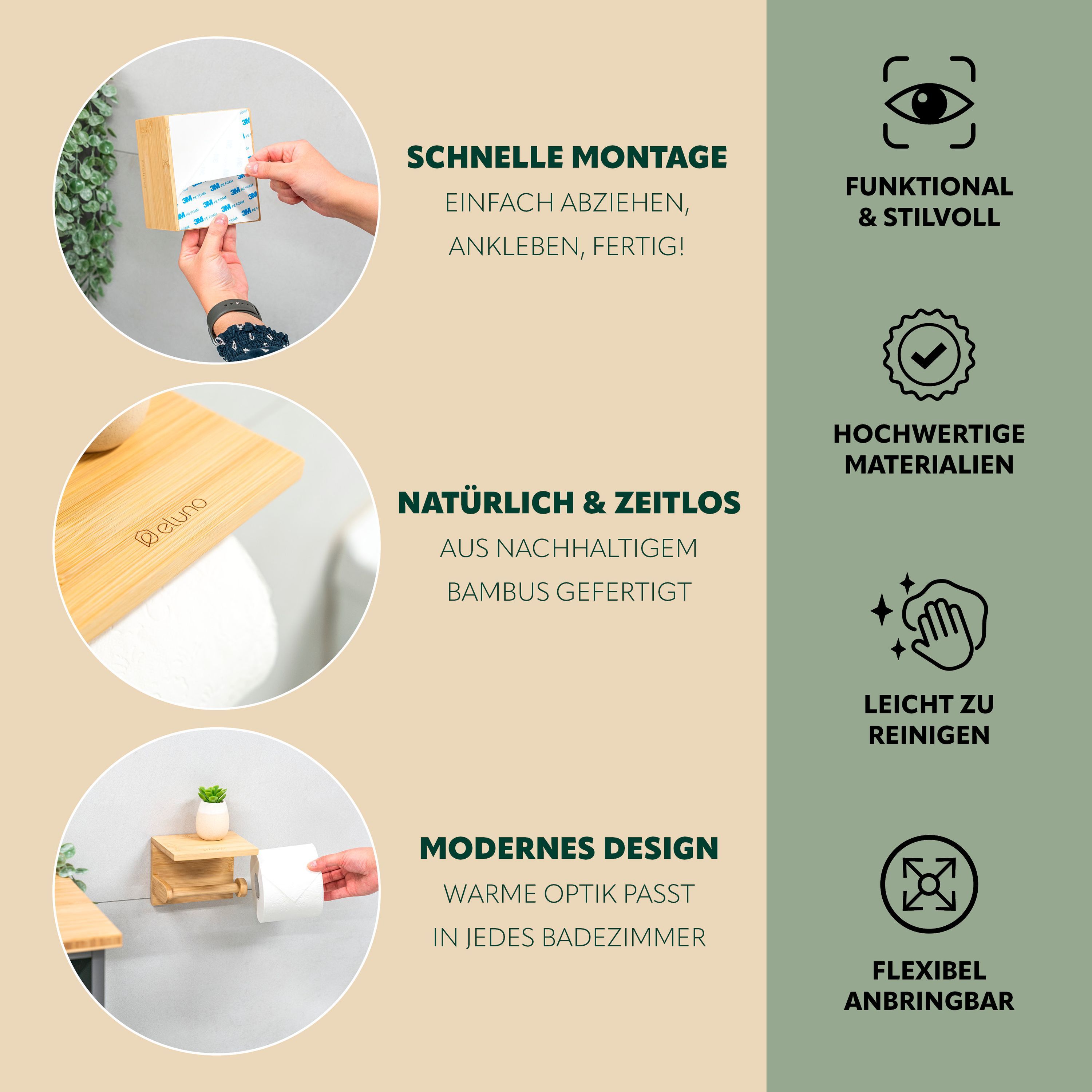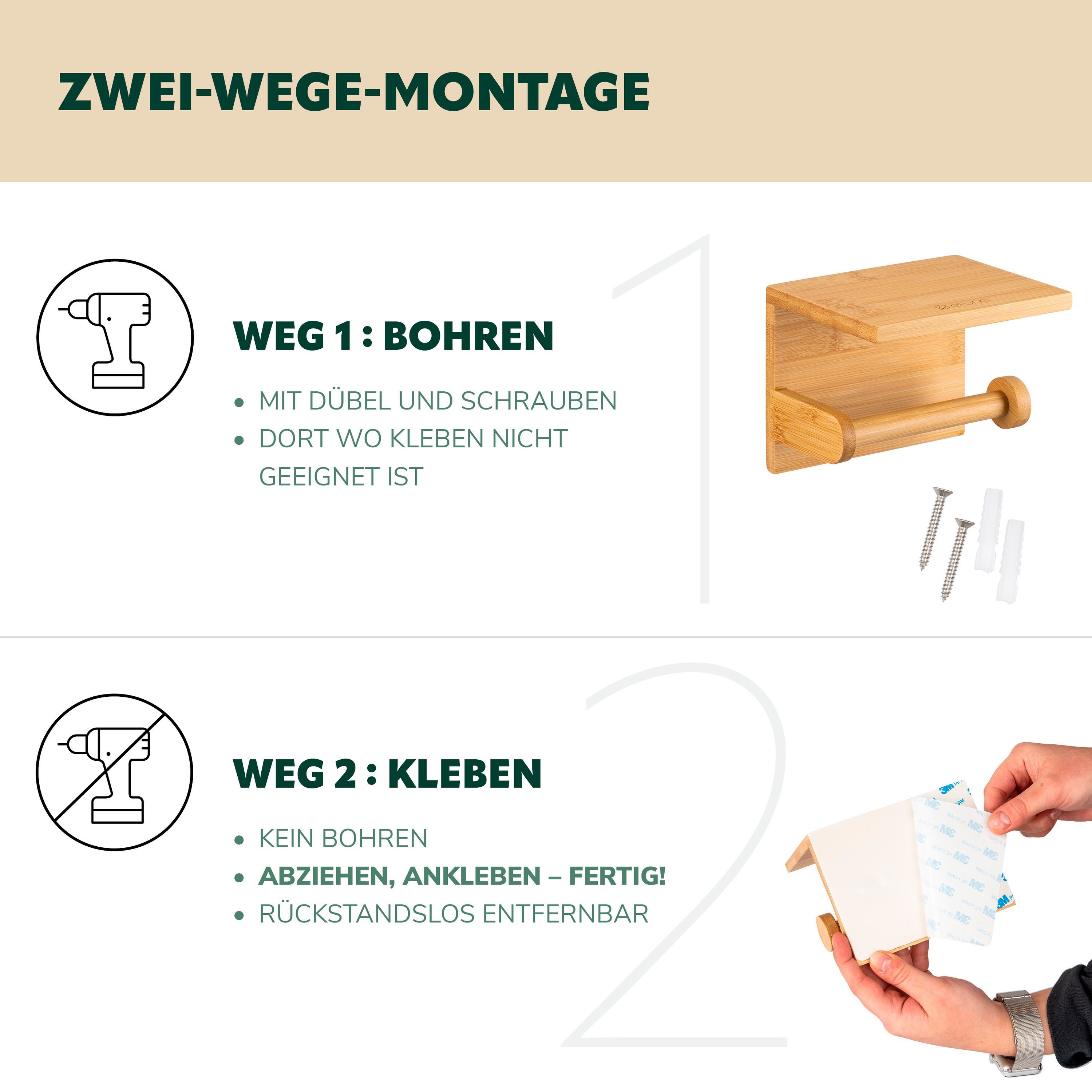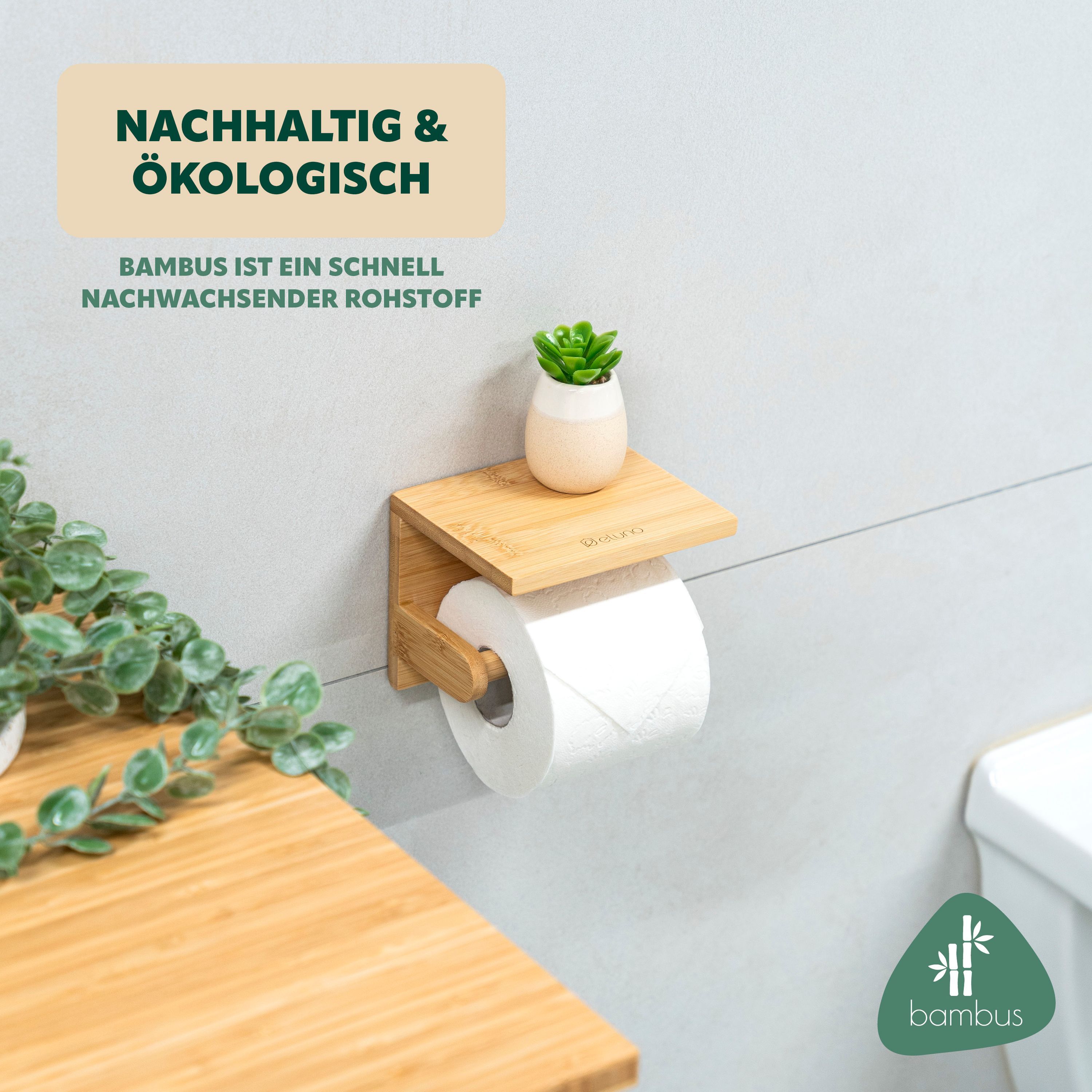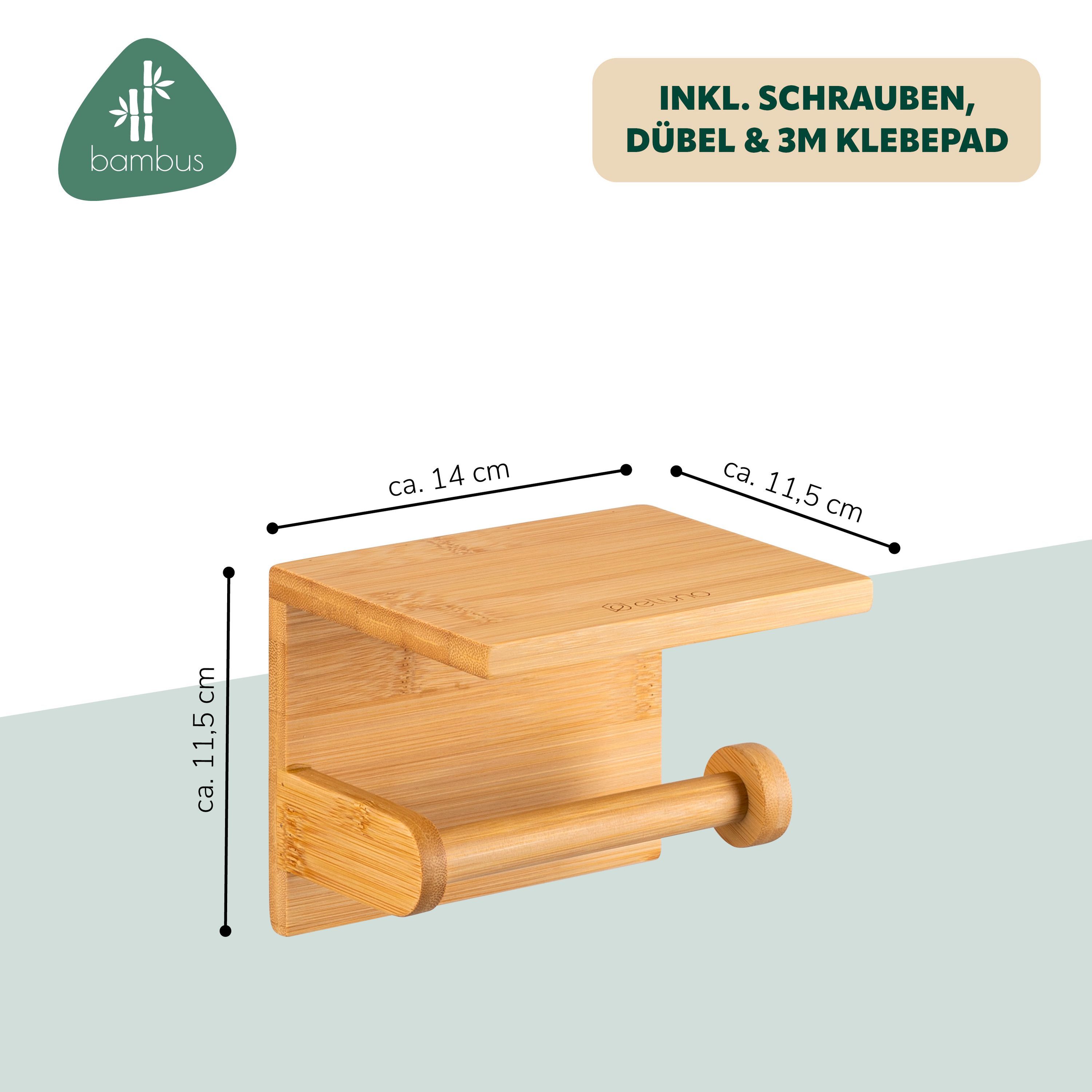 eluno Toilettenpapierhalter mit Ablage, WC-Rollenhalter aus Bambus