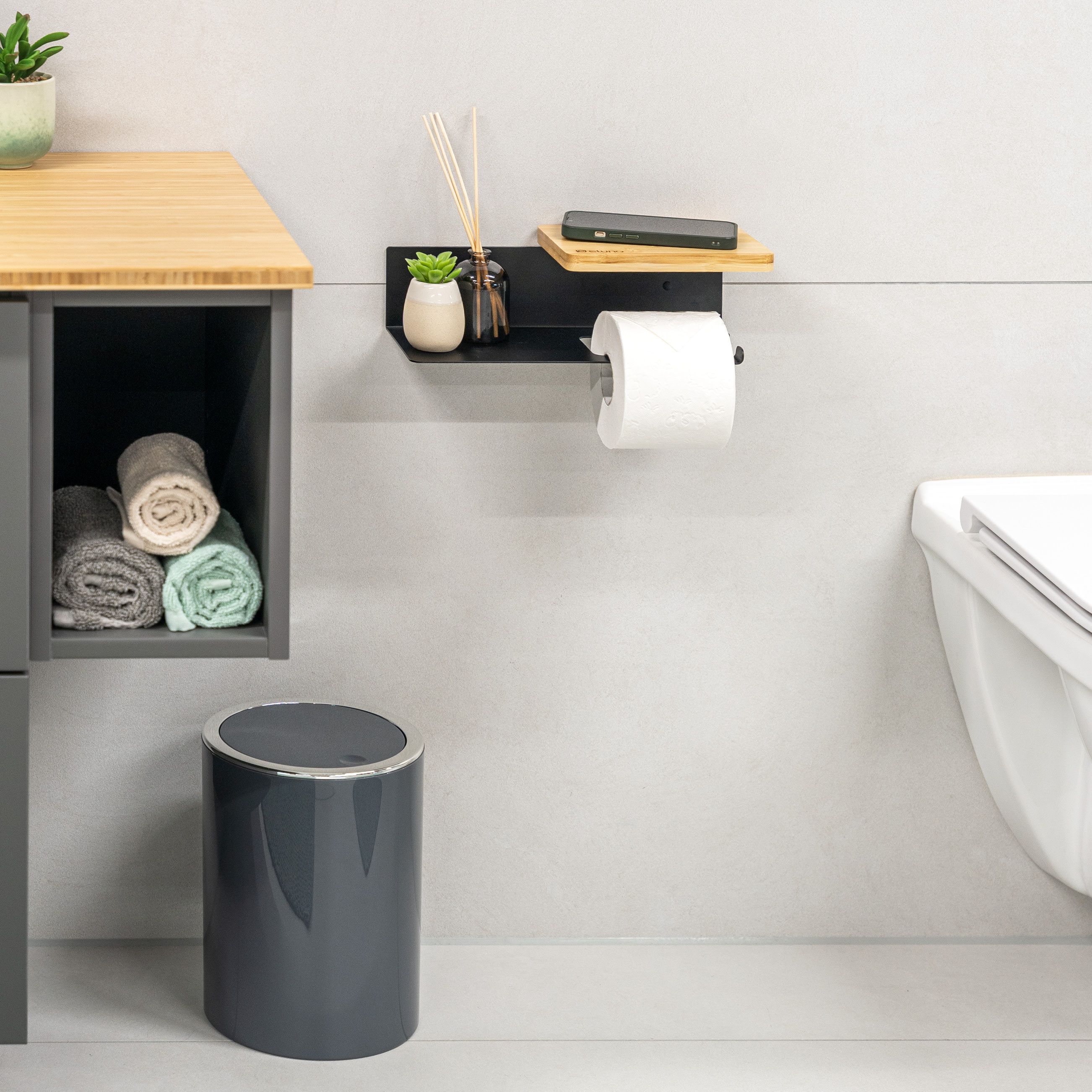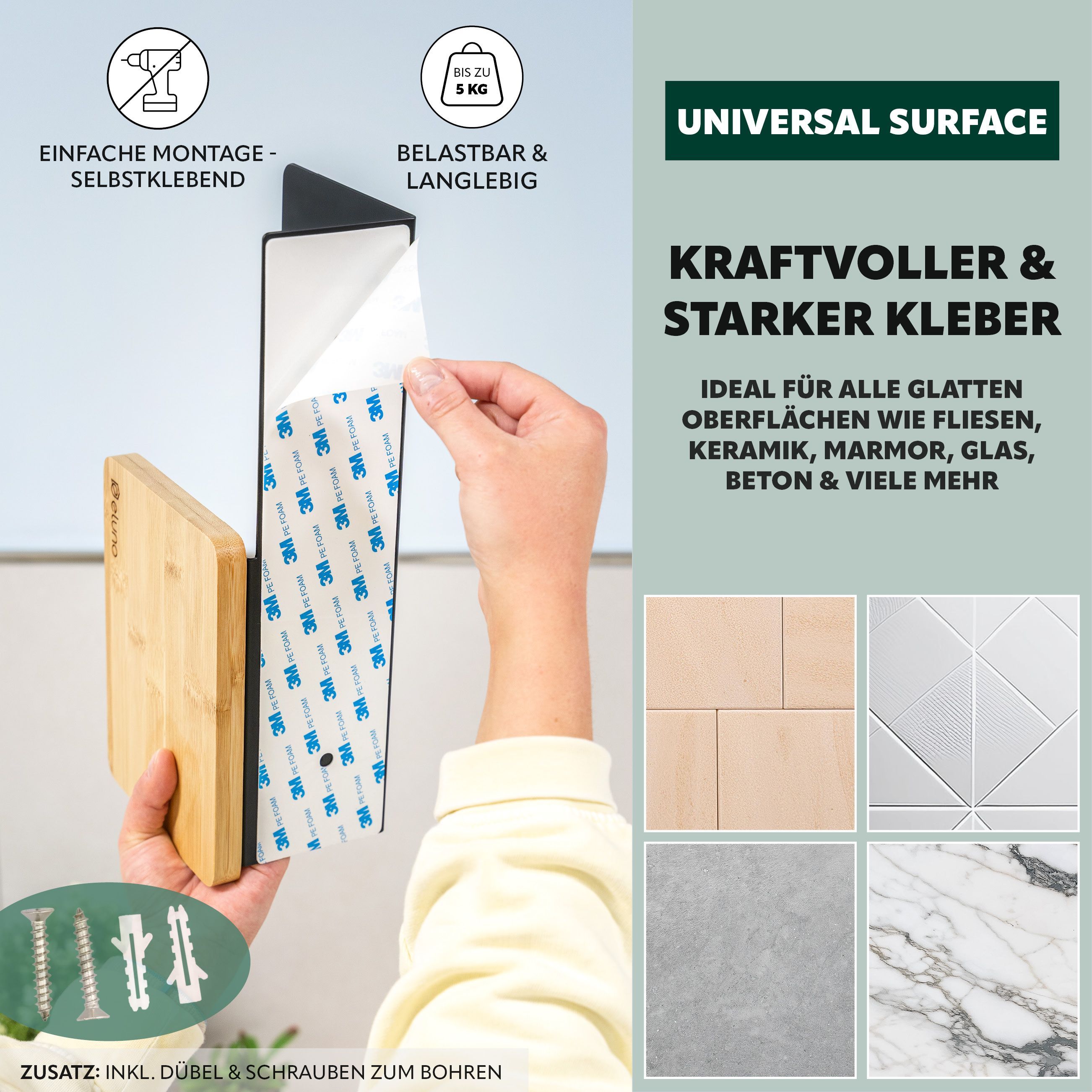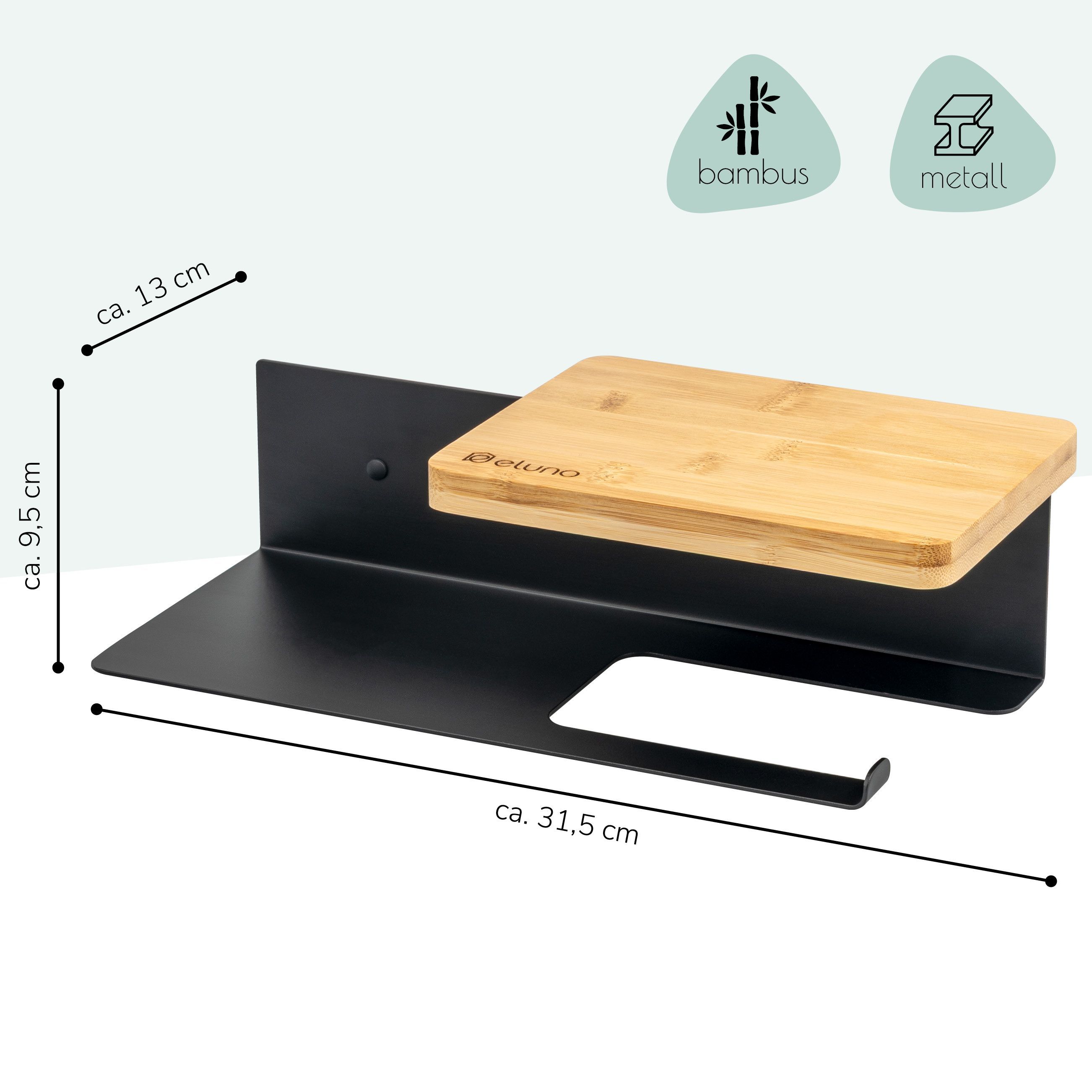 eluno Toilettenpapierhalter VARAZ mit 2 Ablage, selbstklebend aus Metall und Bambus