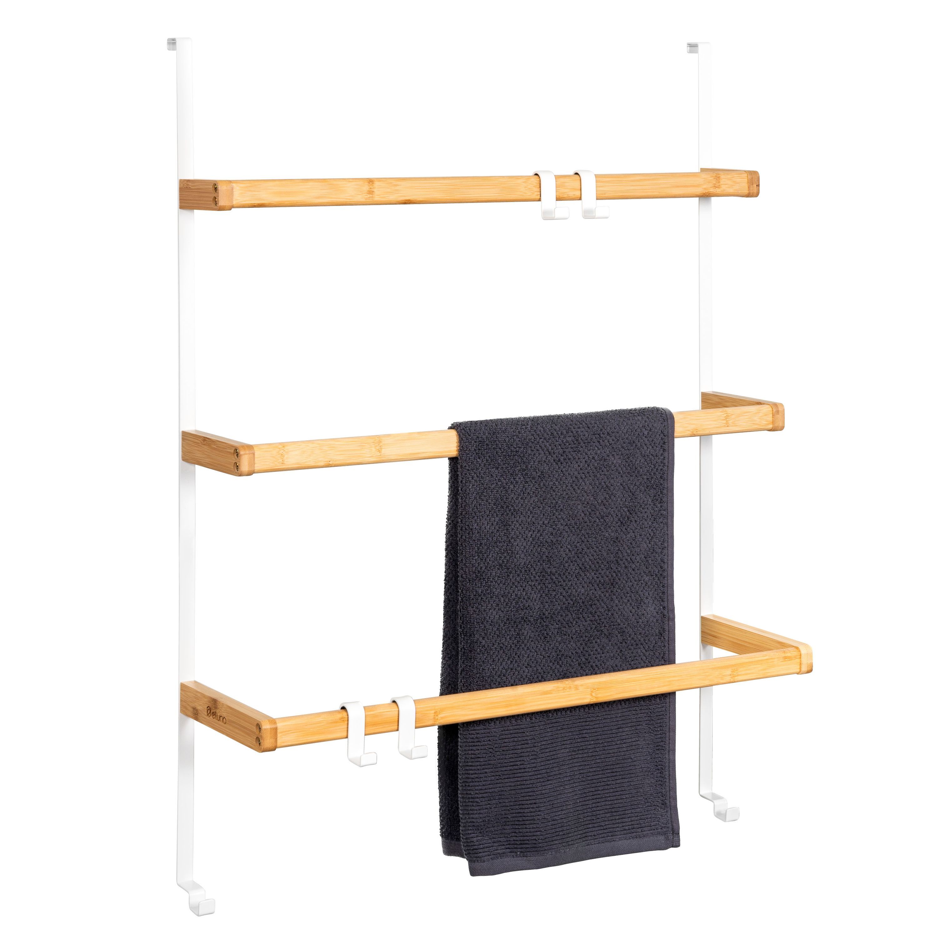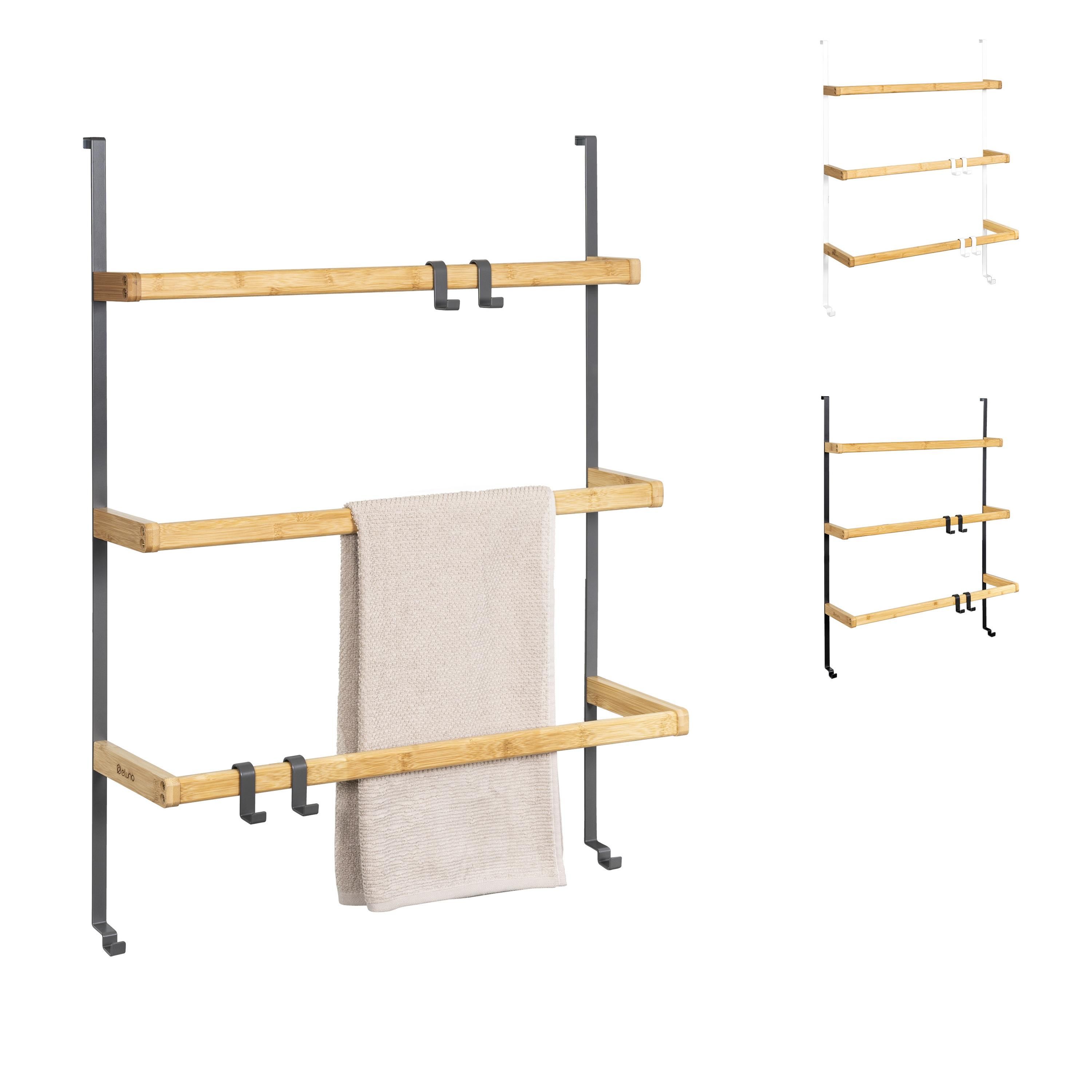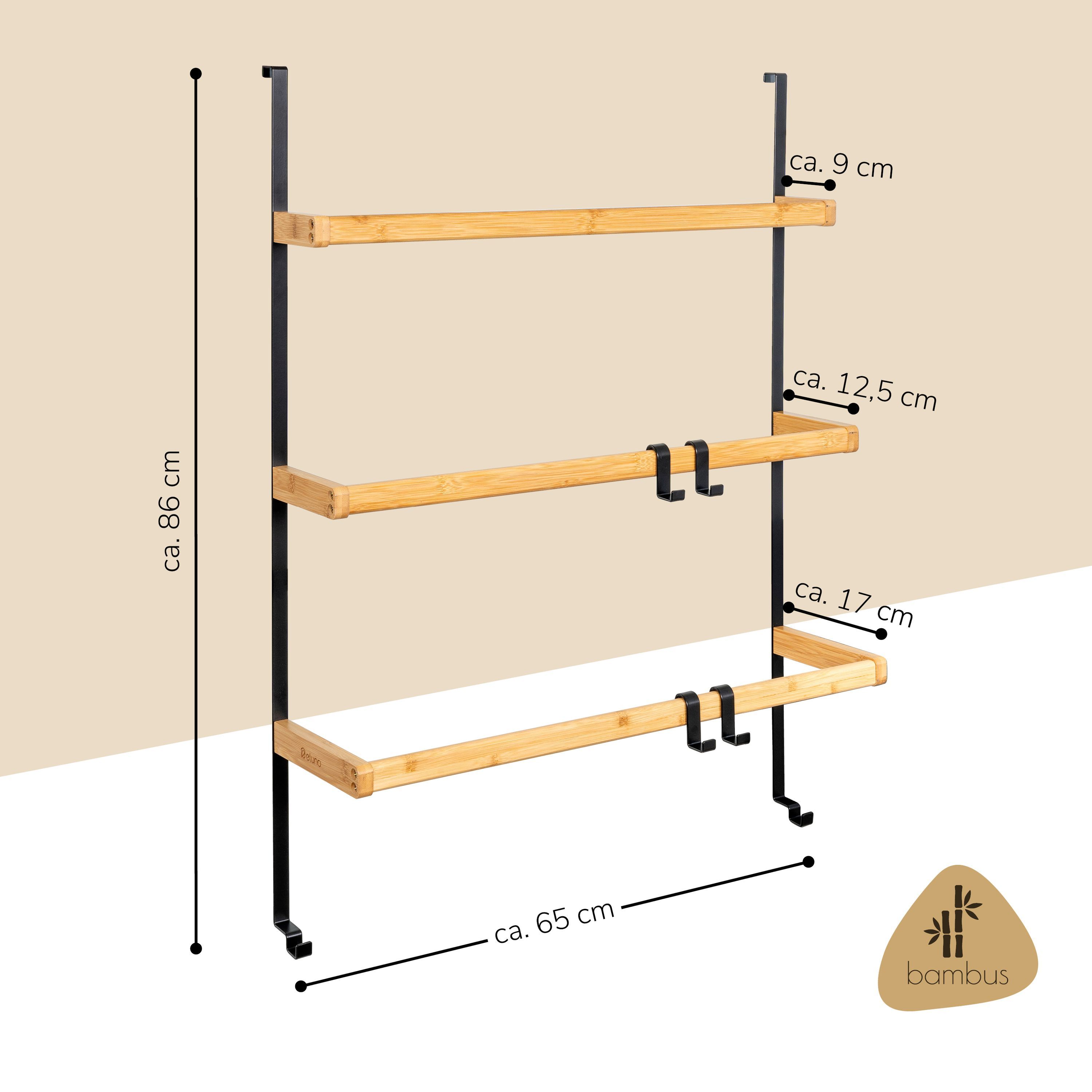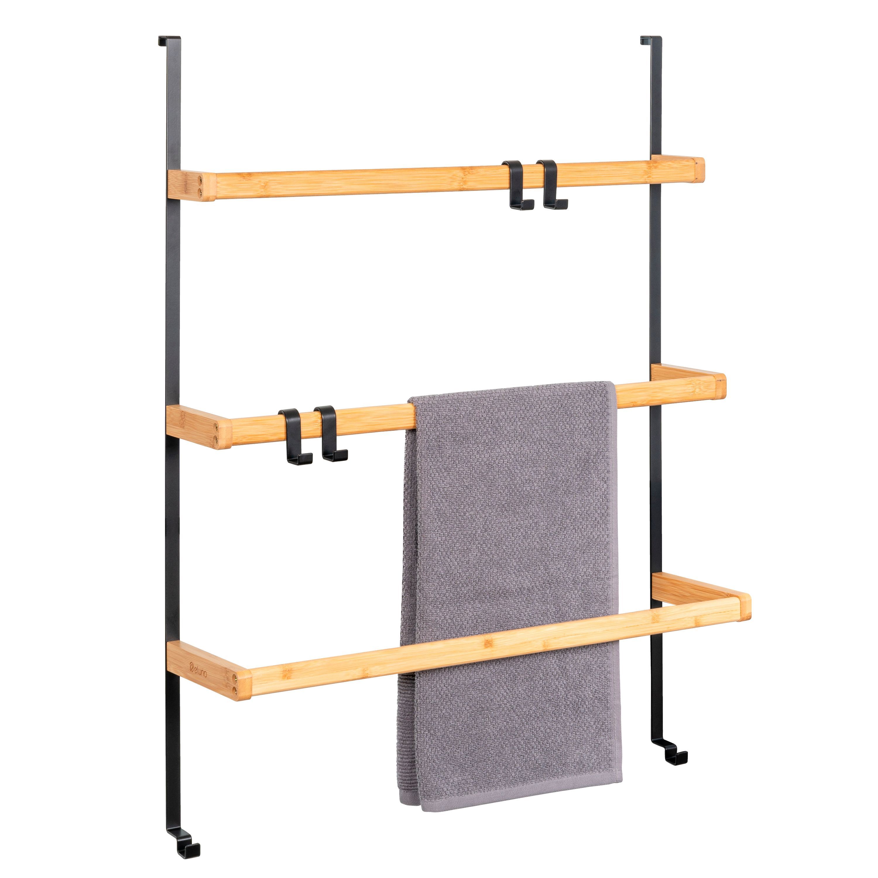 eluno Tür-Hängeregal aus Metall und Bambus, 3 Handtuchstangen, 4 Haken