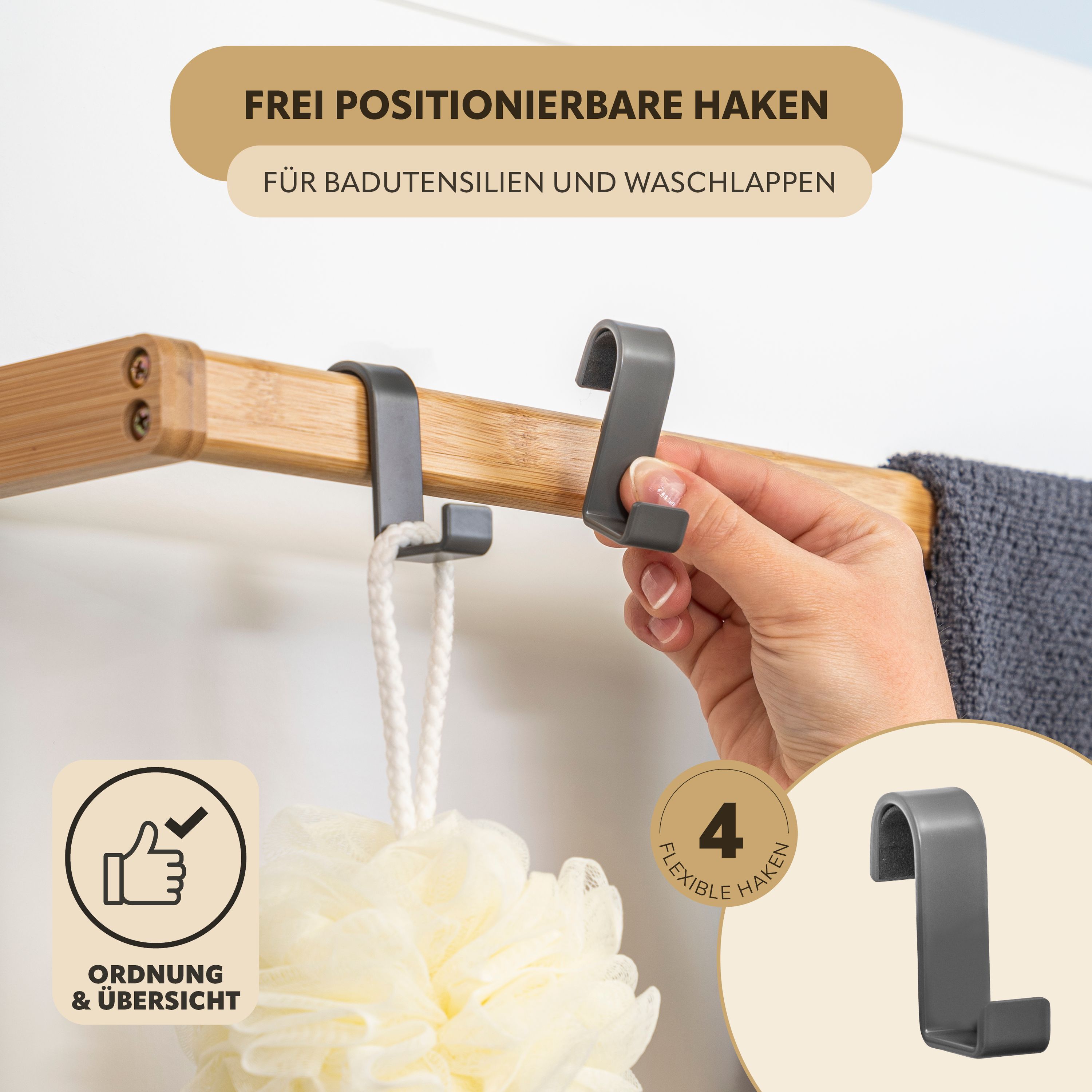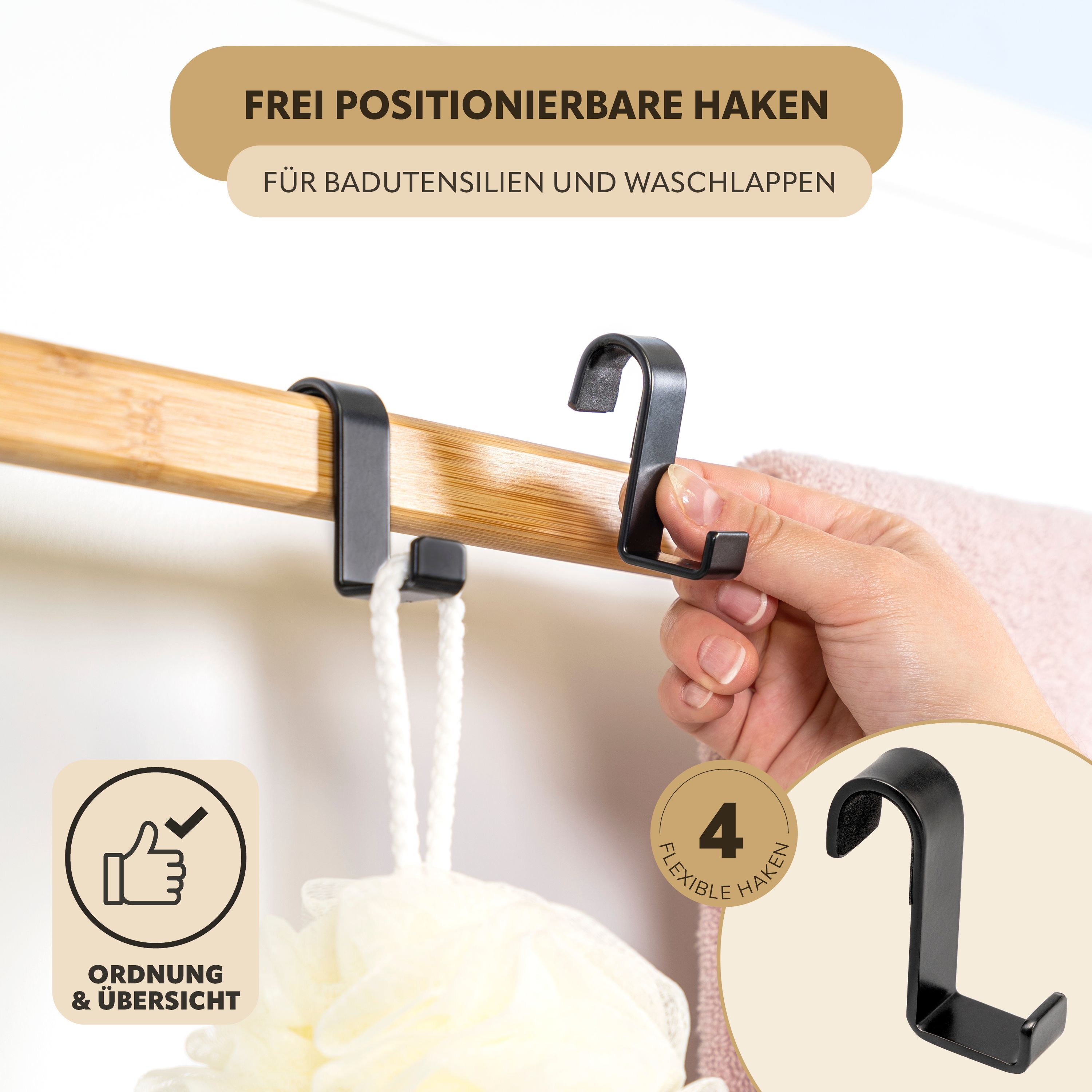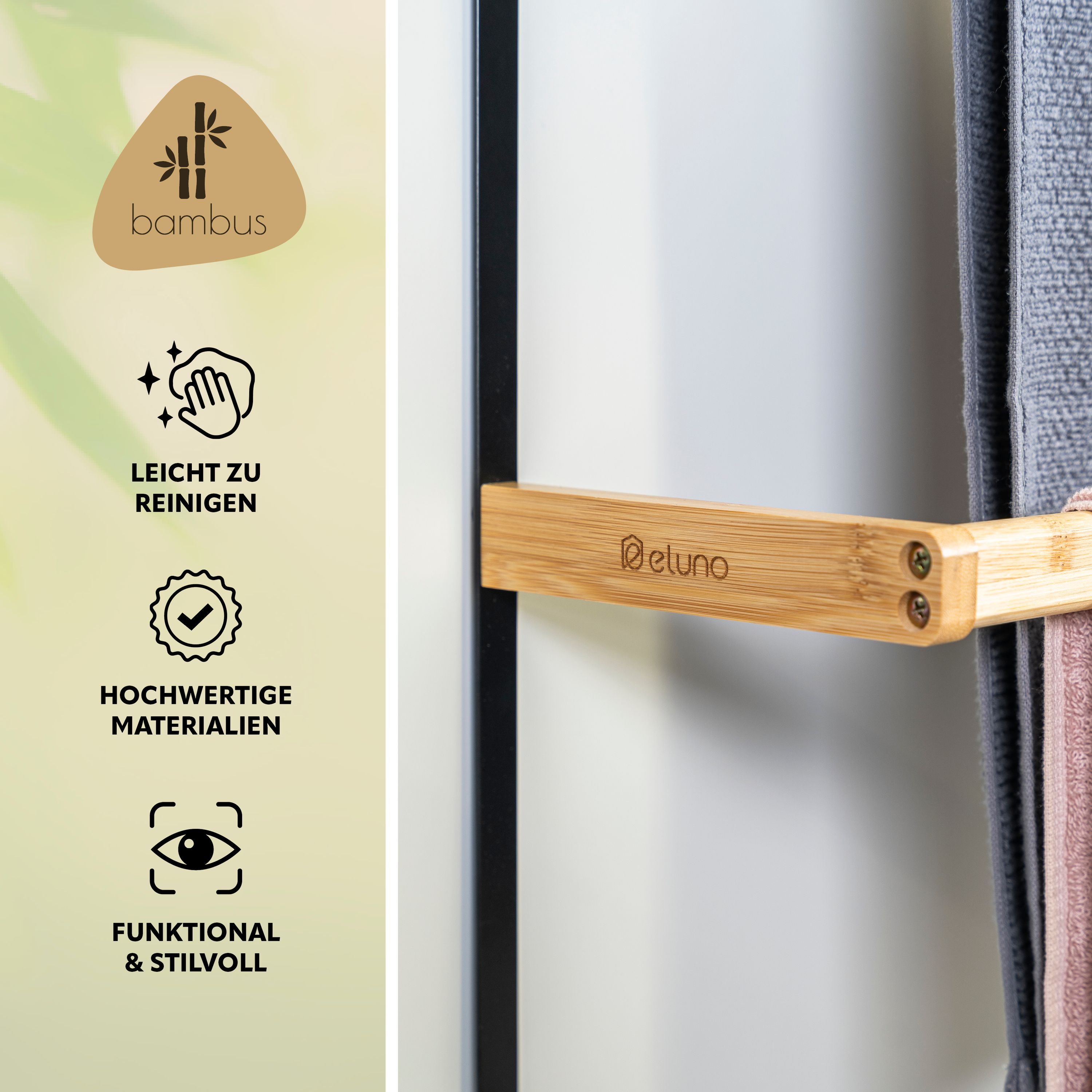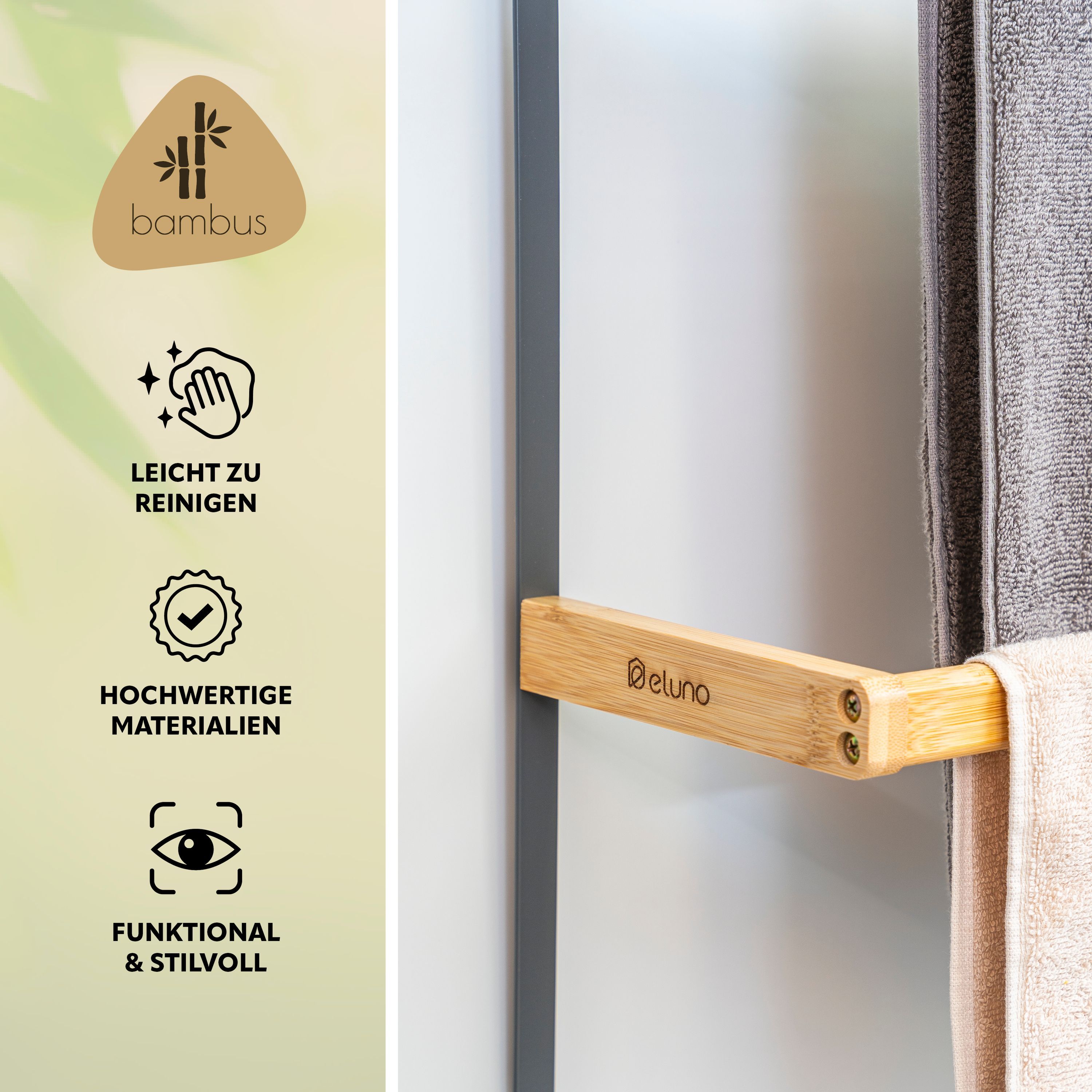 eluno Tür-Hängeregal aus Metall und Bambus, 3 Handtuchstangen, 4 Haken