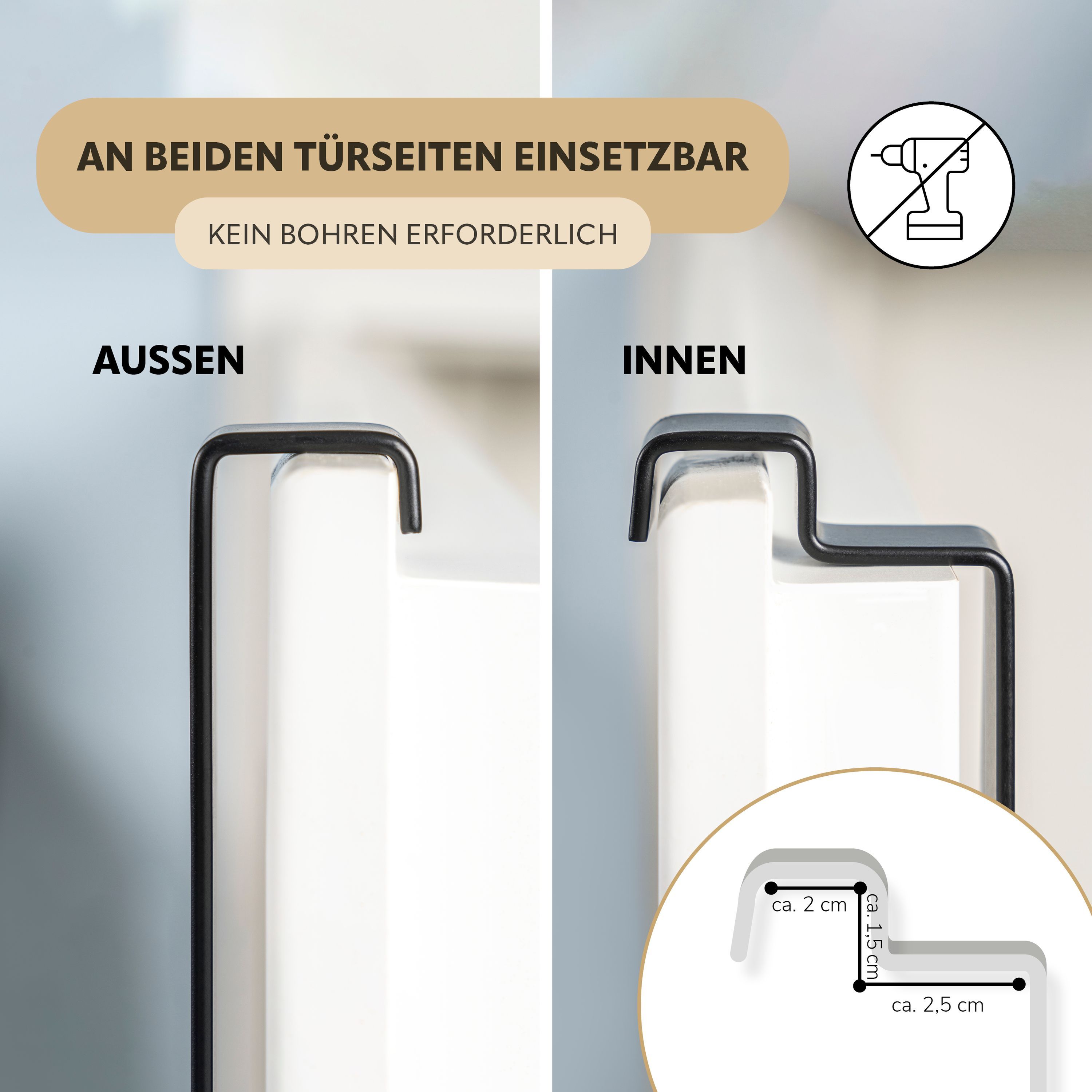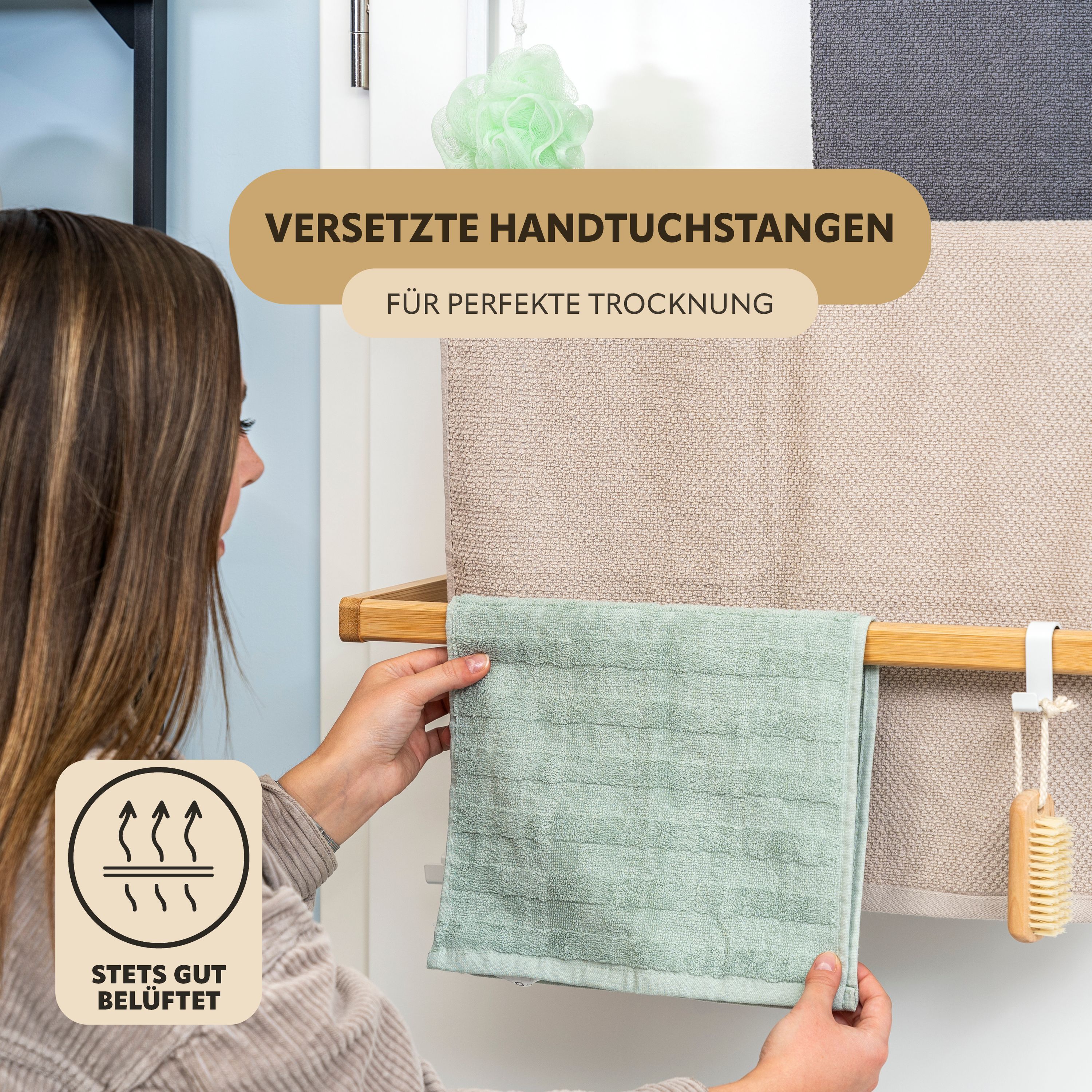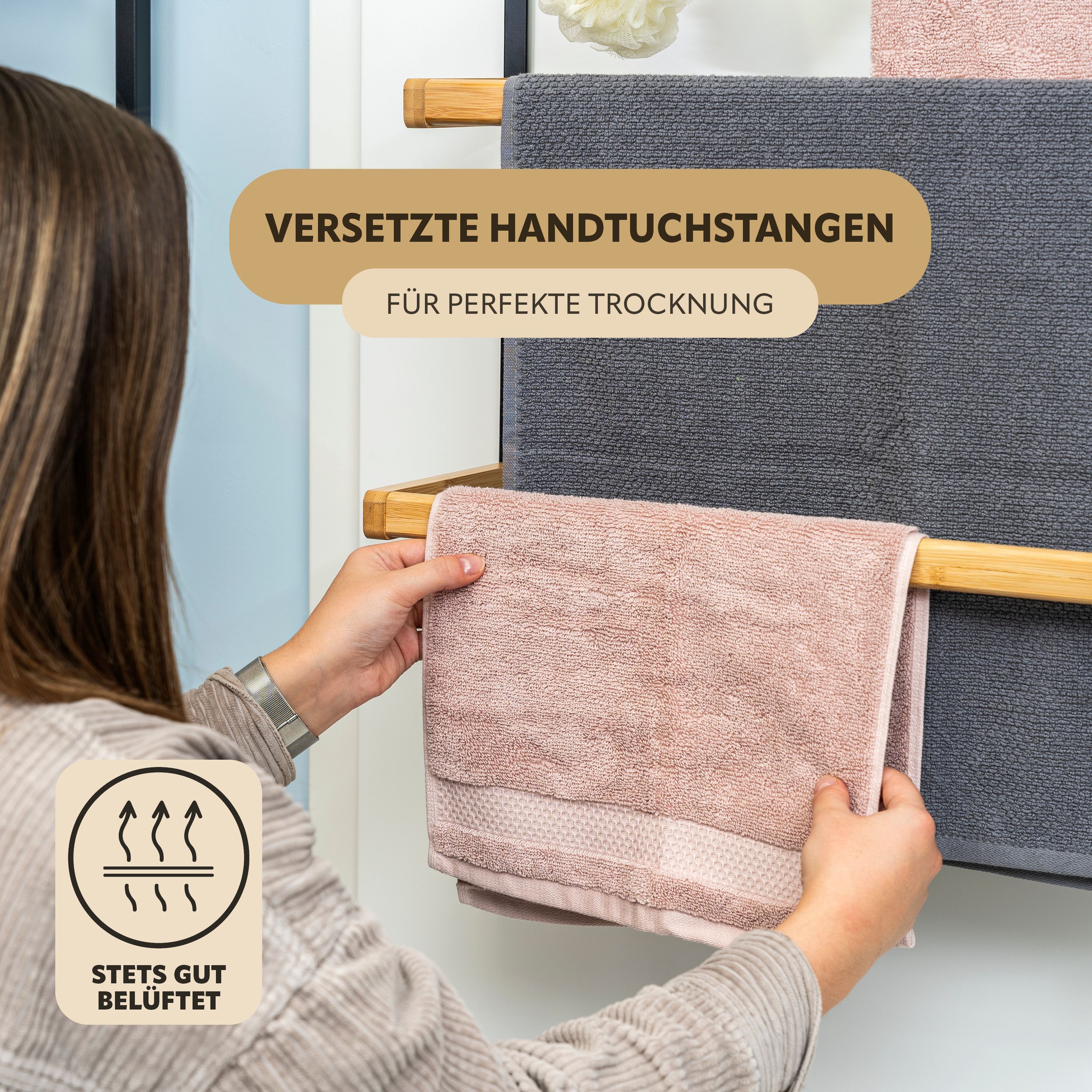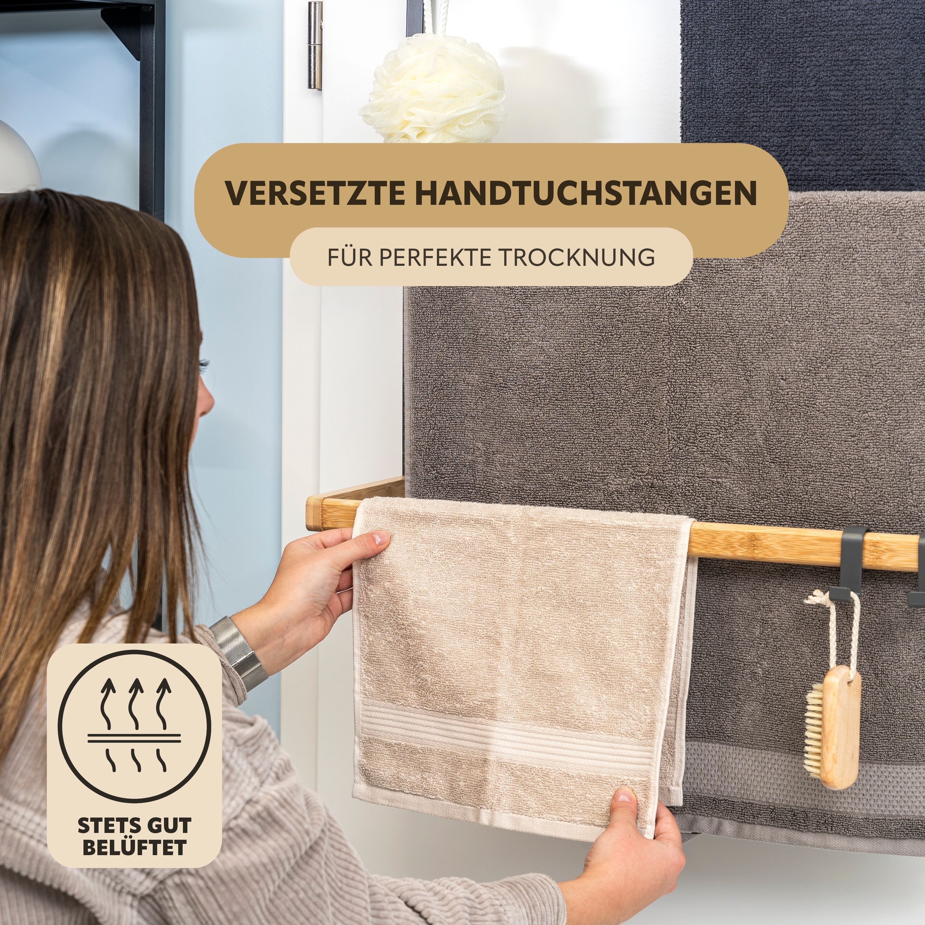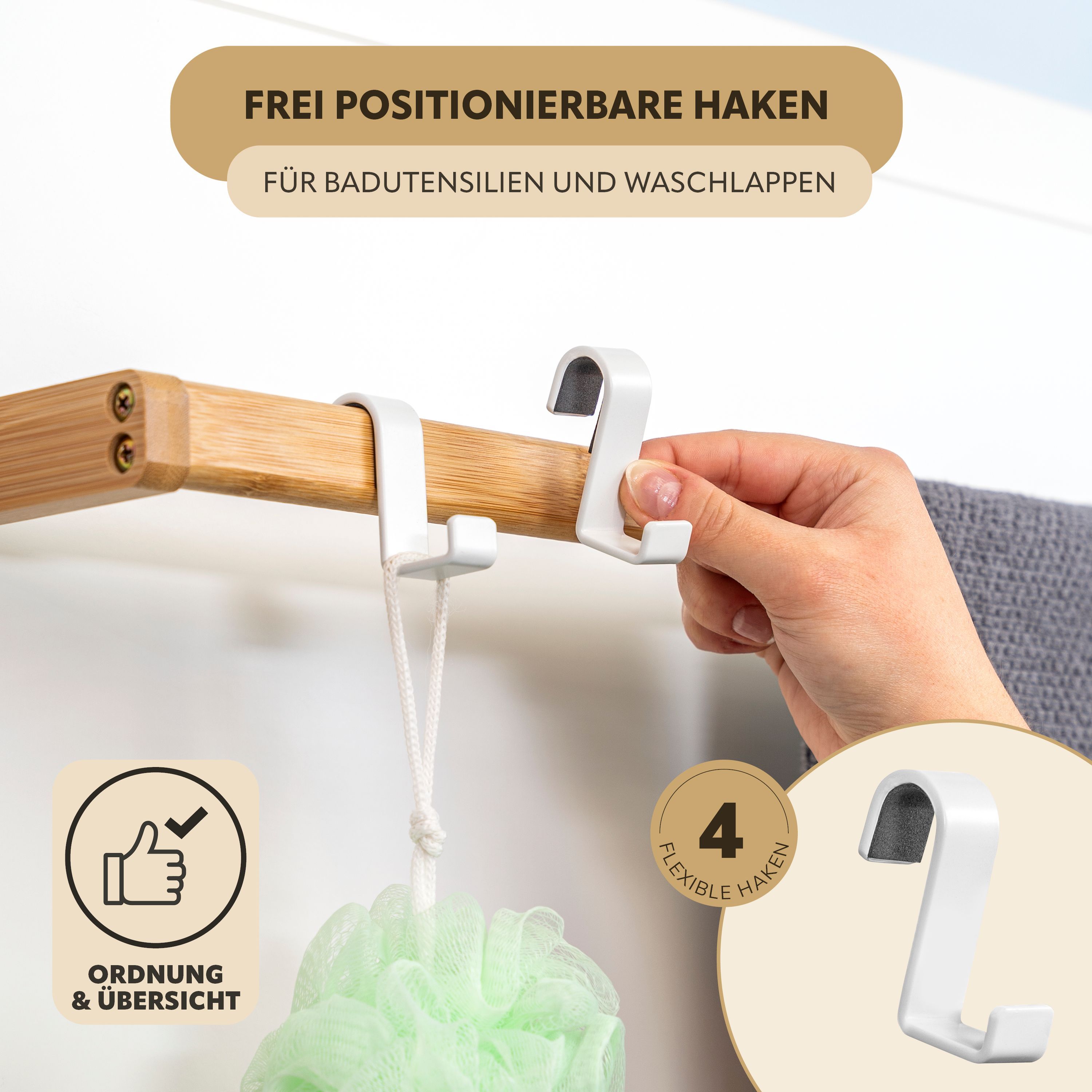 eluno Tür-Hängeregal aus Metall und Bambus, 3 Handtuchstangen, 4 Haken