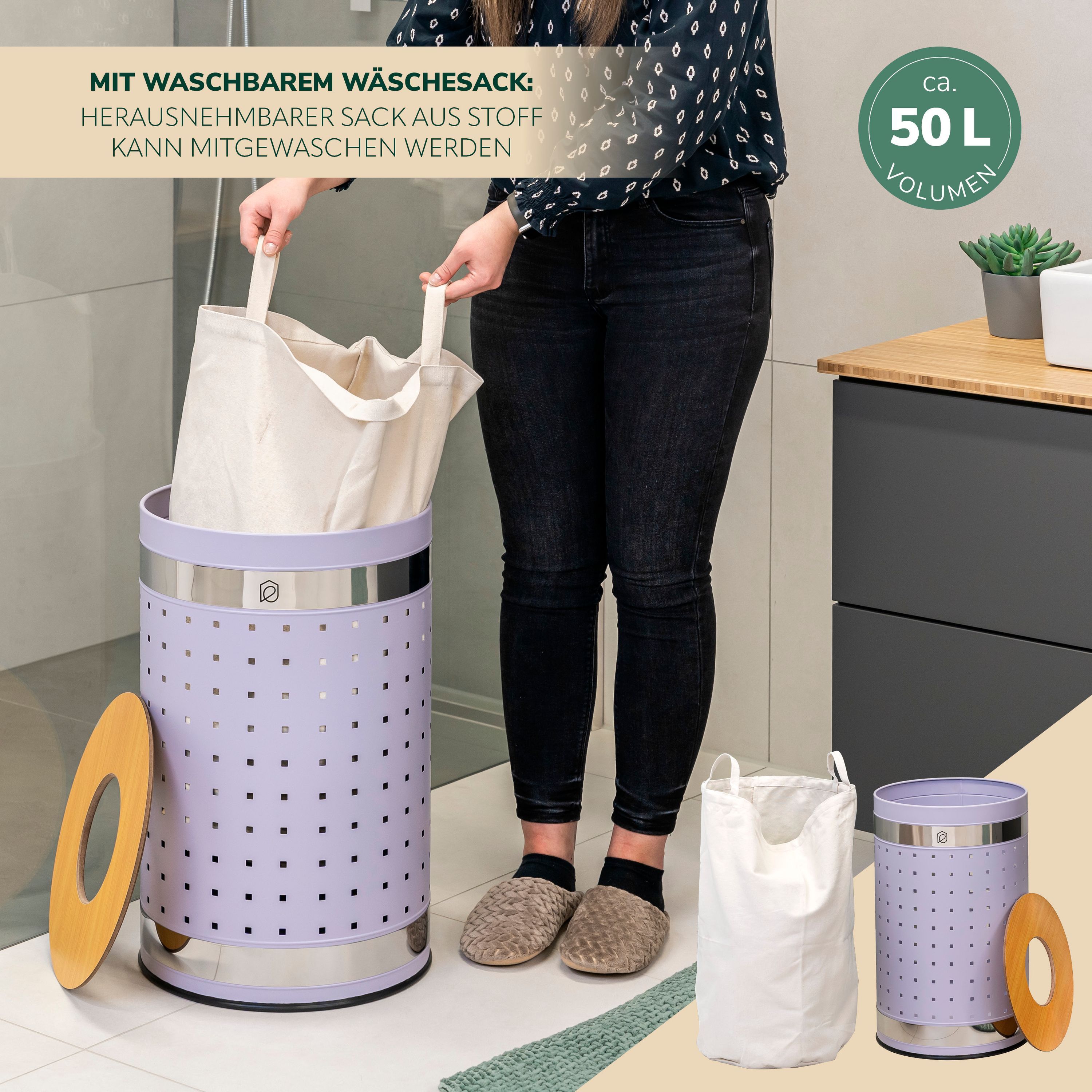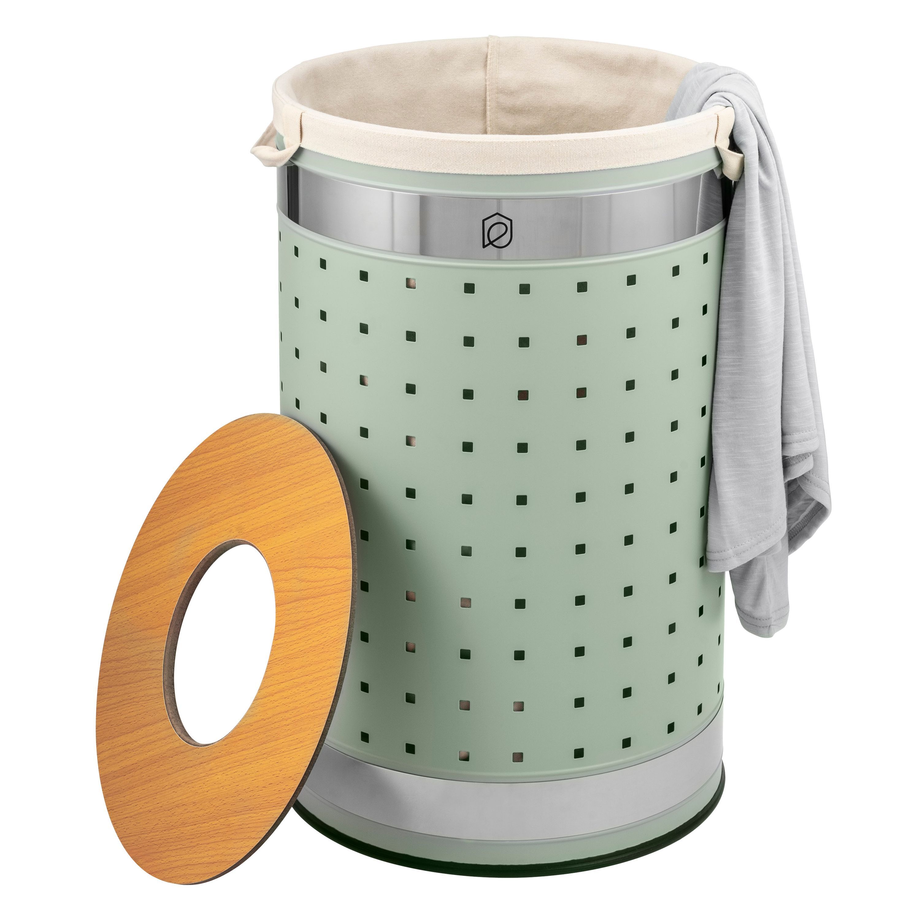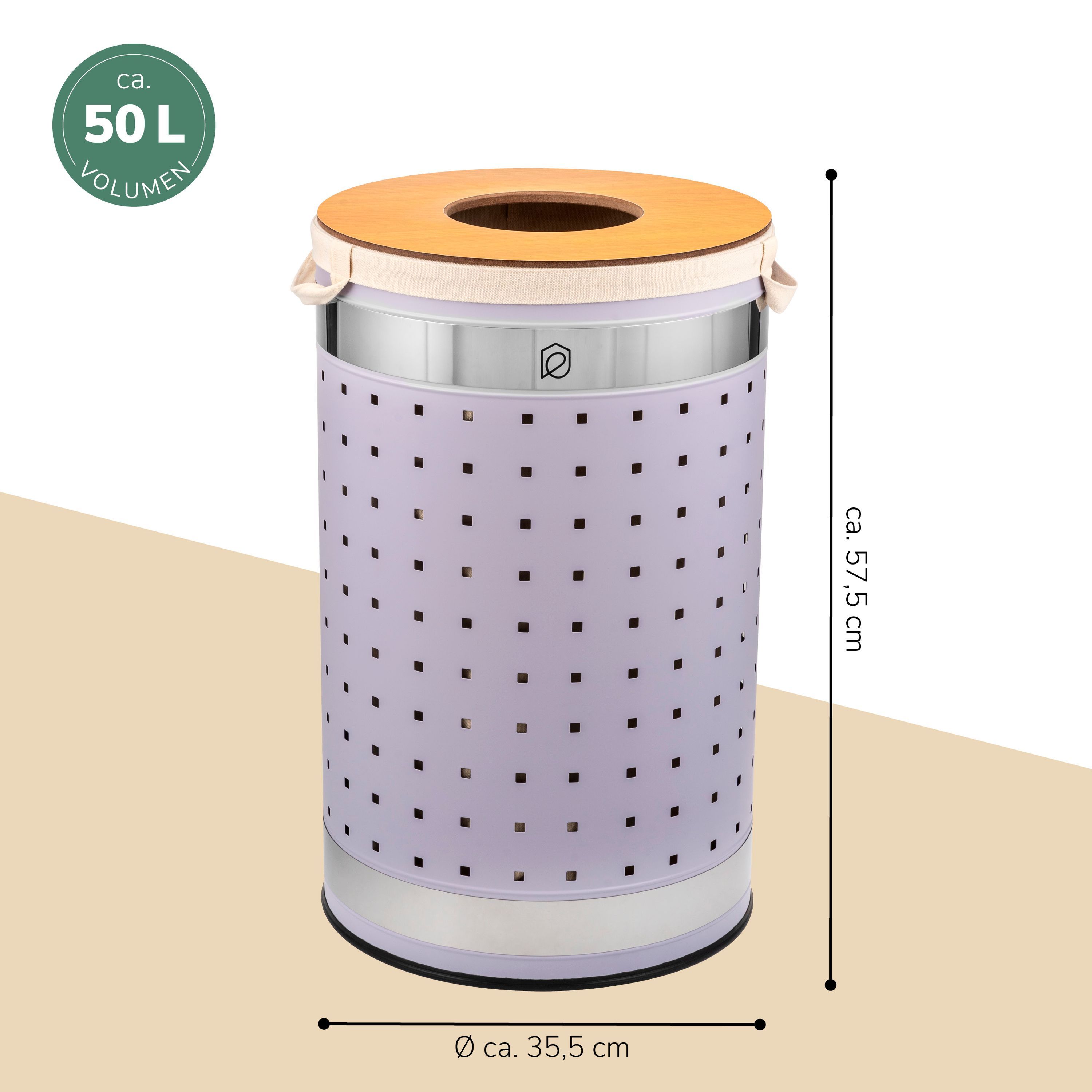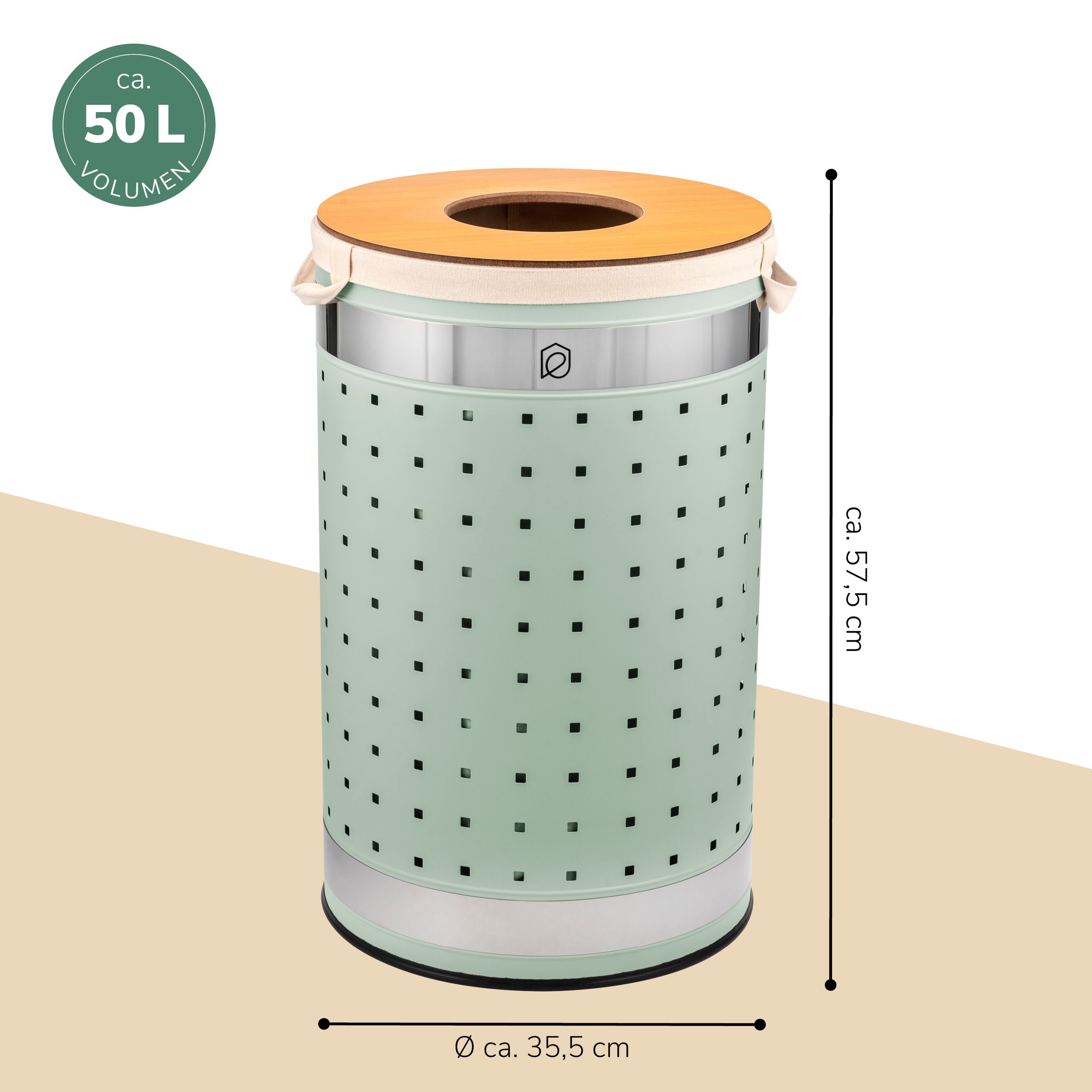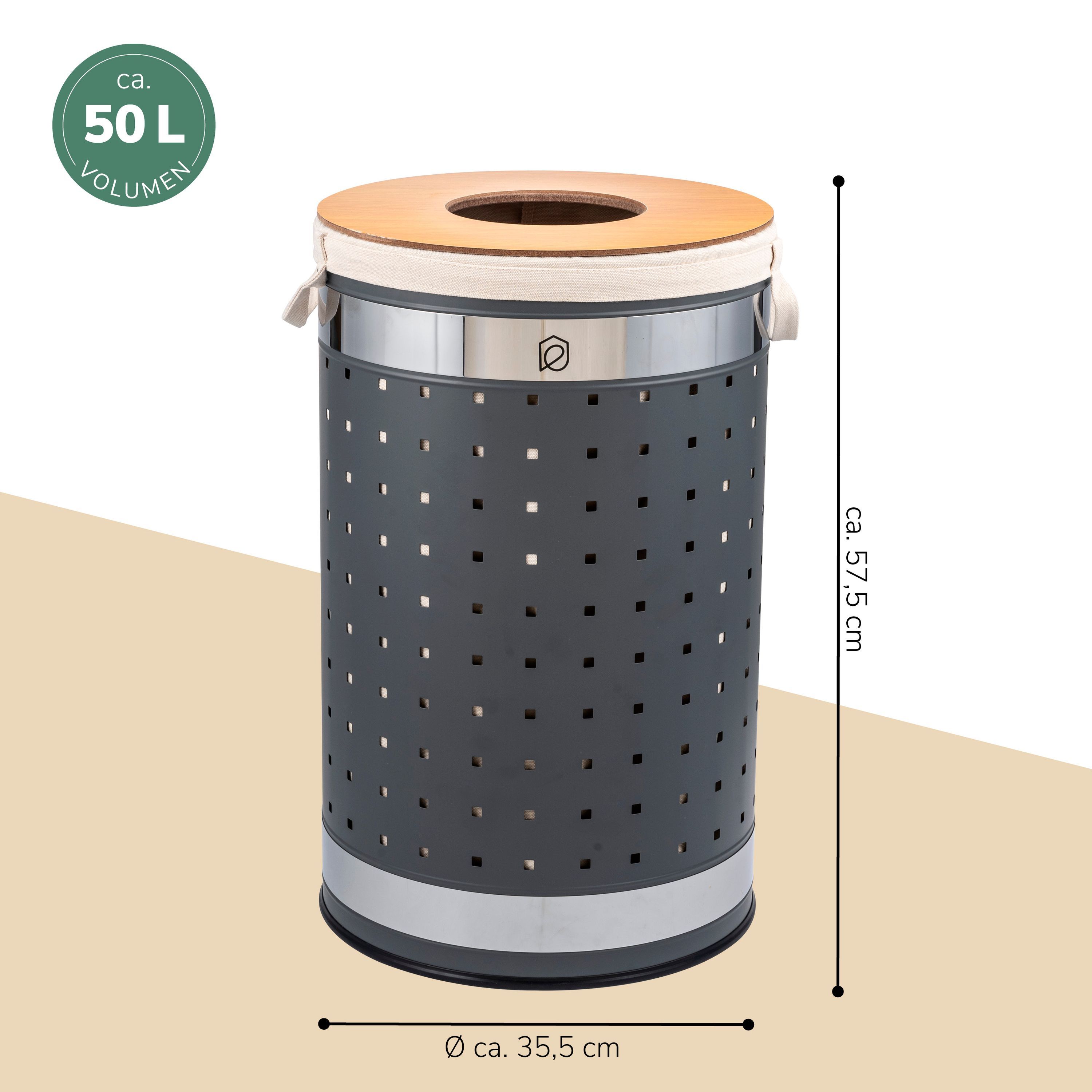 eluno Wäschetonne mit Deckel und Wäschesack rund 50L, aus Metall