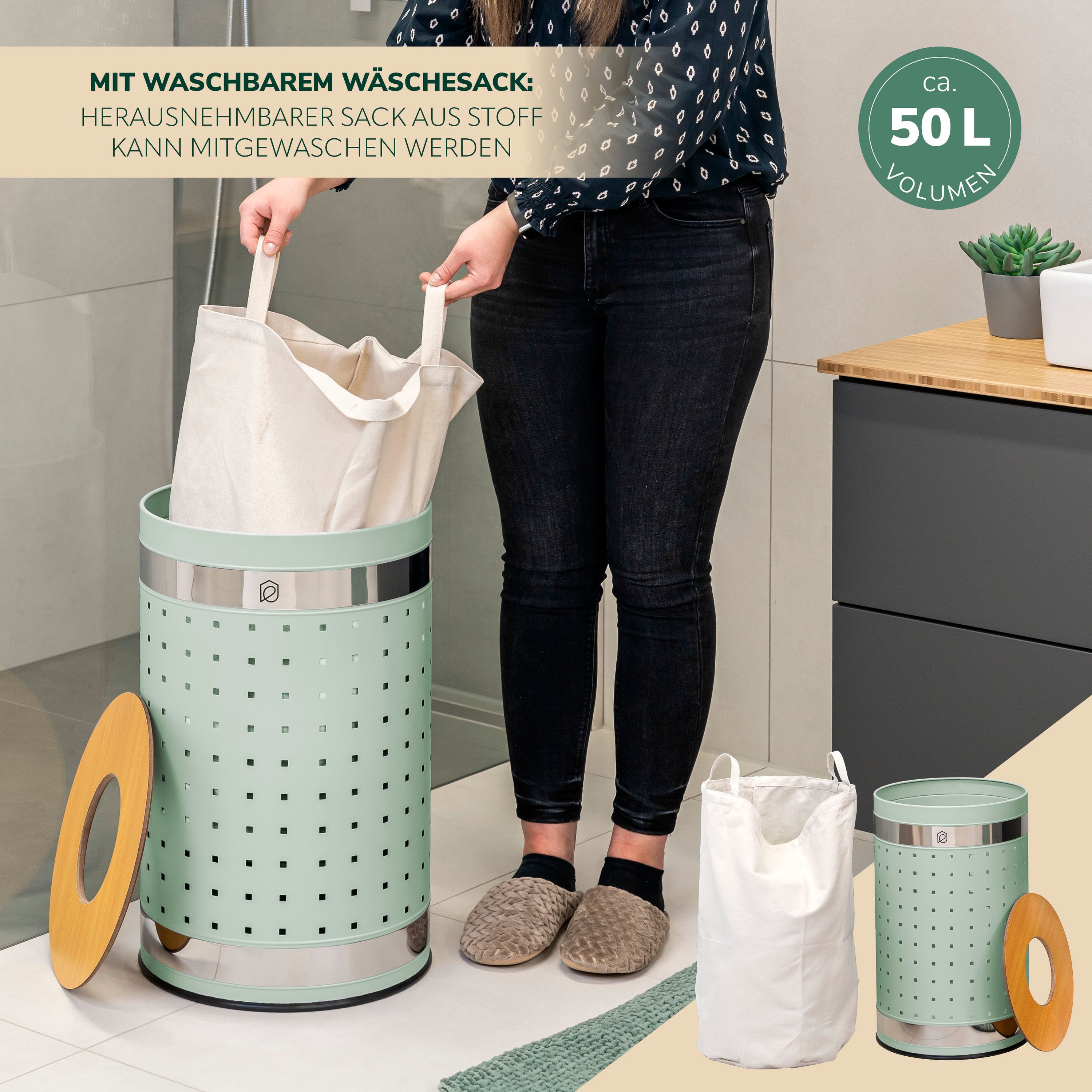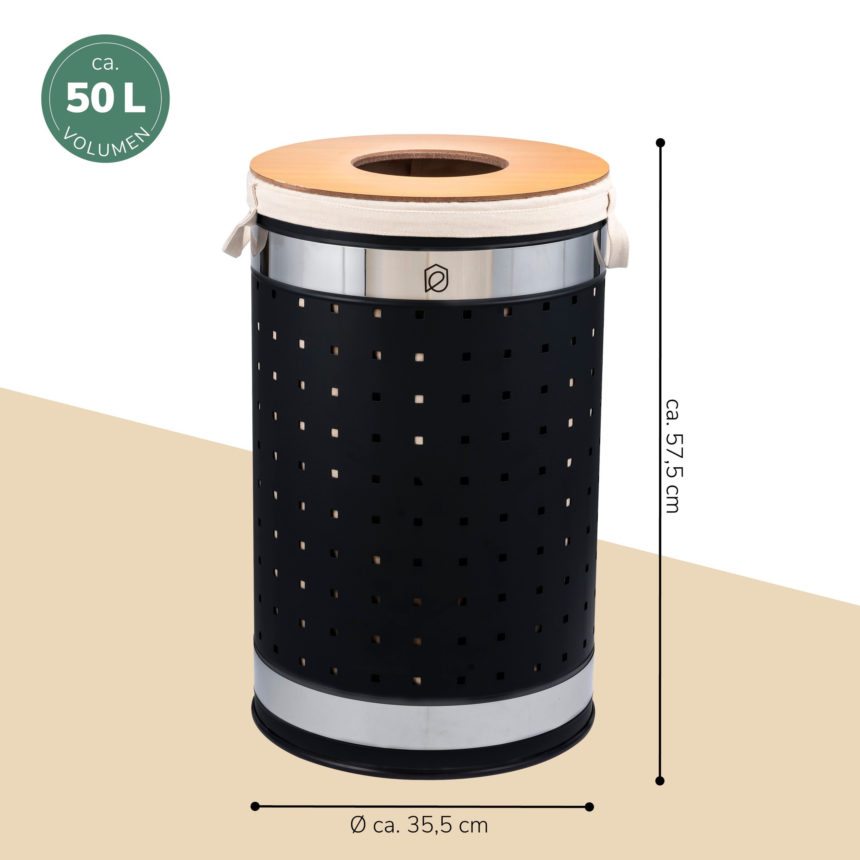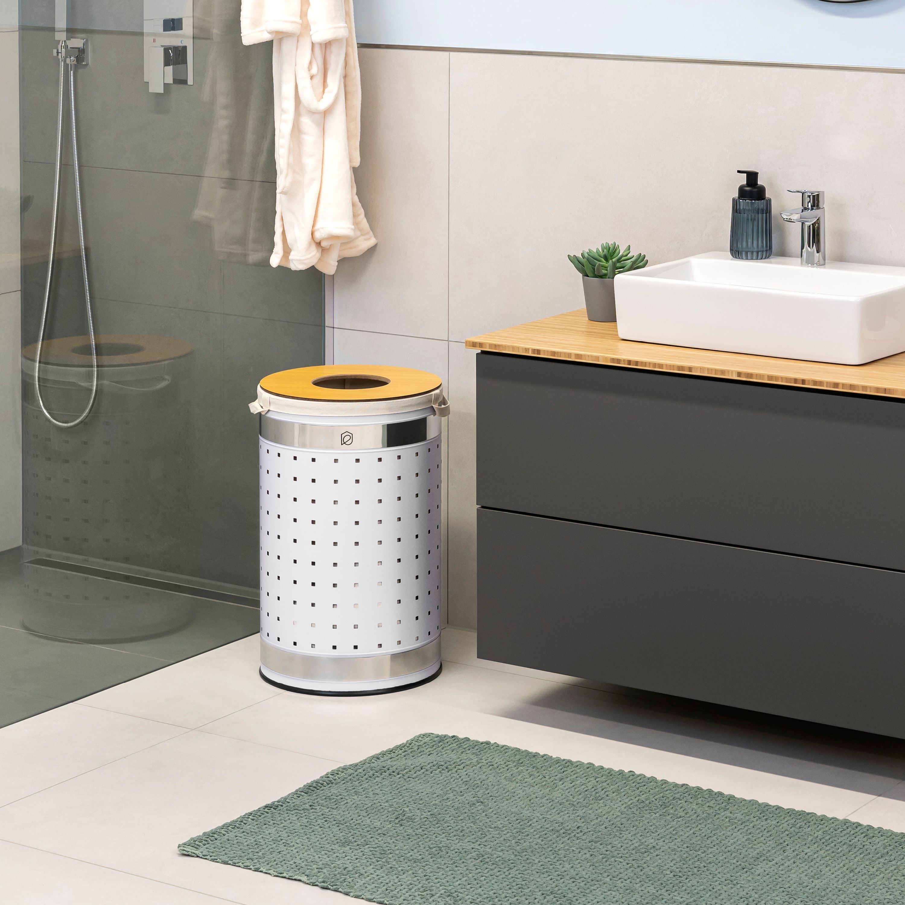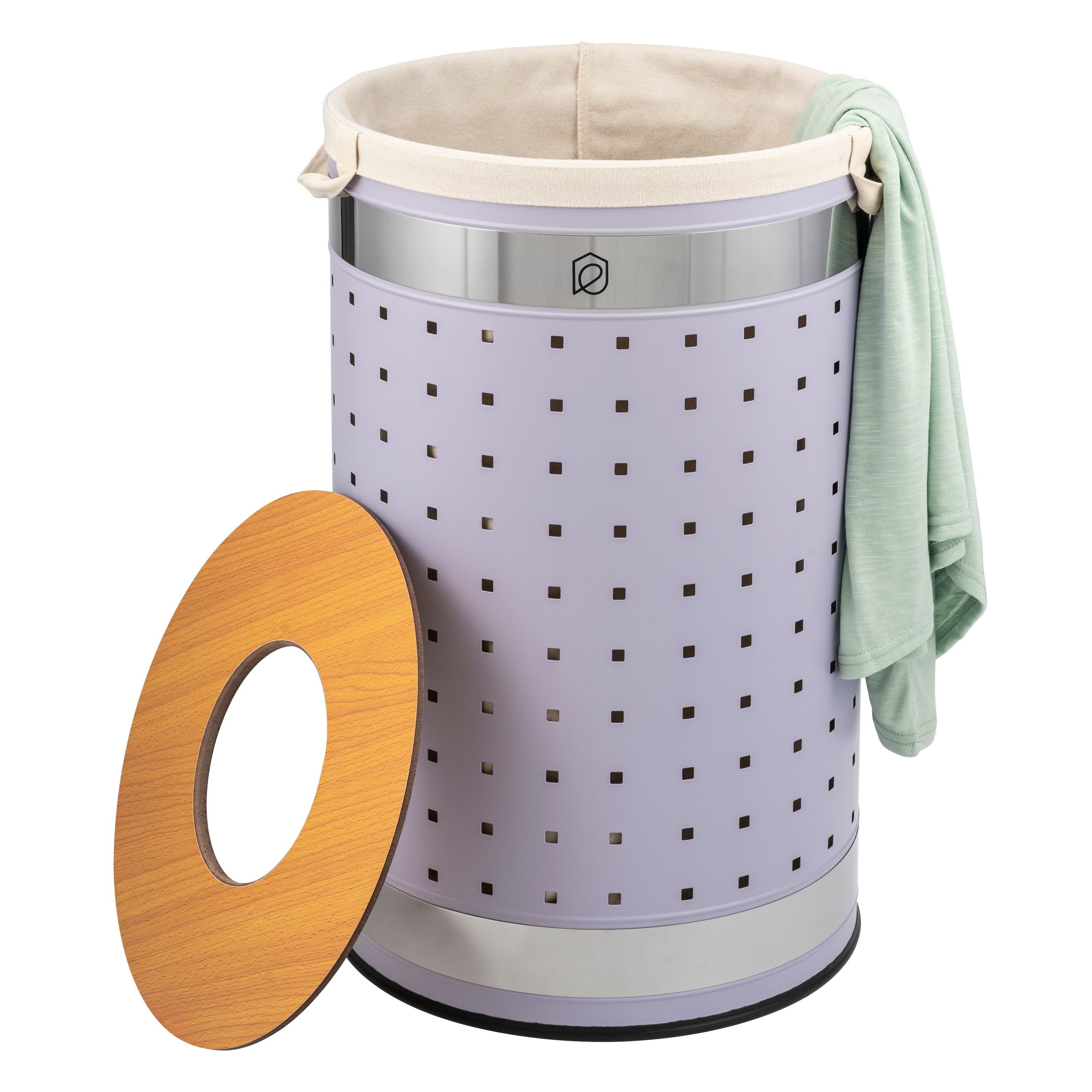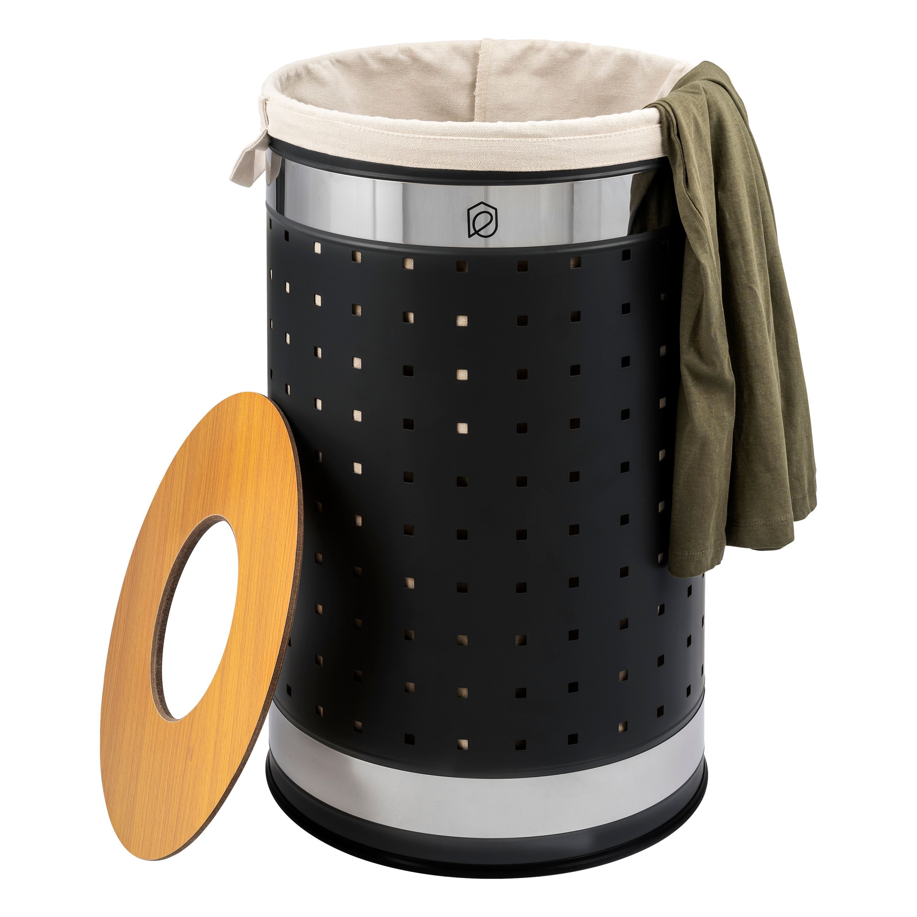 eluno Wäschetonne mit Deckel und Wäschesack rund 50L, aus Metall